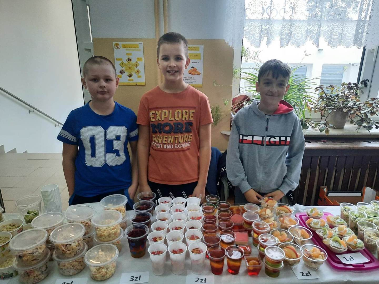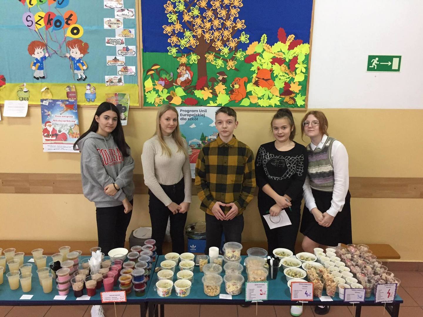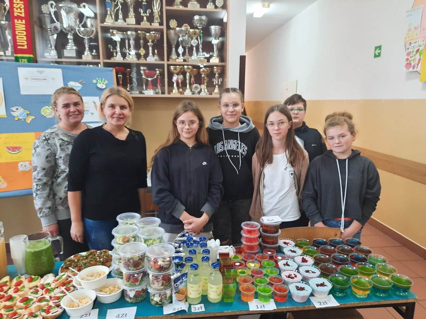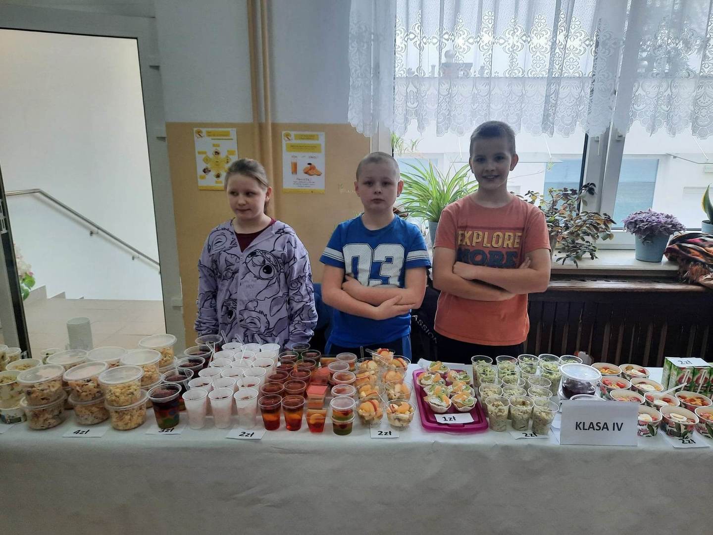 Dzisiaj klasy 4 - 8 szkoły podstawowej przygotowały pyszne i zdrowe sałatki, surówki oraz przekąski, które następnie sprzedawały całej społeczności szkolnej. Przed degustacją odbyła się prelekcja dla uczniów Samorządu Uczniowskiego ze Szkoły Podstawowej w Pukininie, którzy przyjechali do nas z rewizytą. Uczniowie wysłuchali wielu ciekawych informacji nt. zdrowej żywności, a następnie wzięli udział w kiermaszu. Po części oficjalnej Goście zostali oprowadzeni po szkole, po czym poszli na mały poczęstunek do sali świetlicowej, gdzie przedstawiciele naszej szkoły wymienili spostrzeżenia nt. ciekawych przedsięwzięć. Naszym Gościom serdecznie dziękujemy za wizytę, a wszystkim uczniom i ich Rodzicom dziękujemy za wspaniałe witaminowe przyjęcie:)