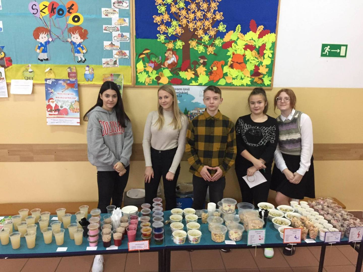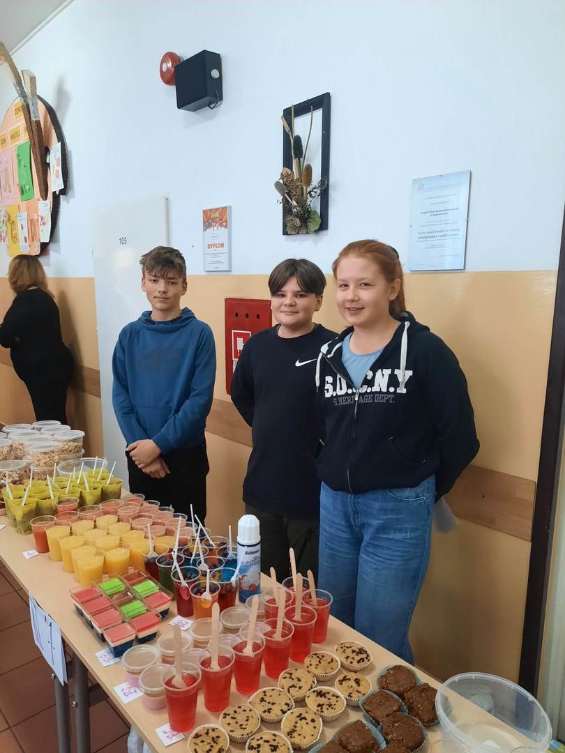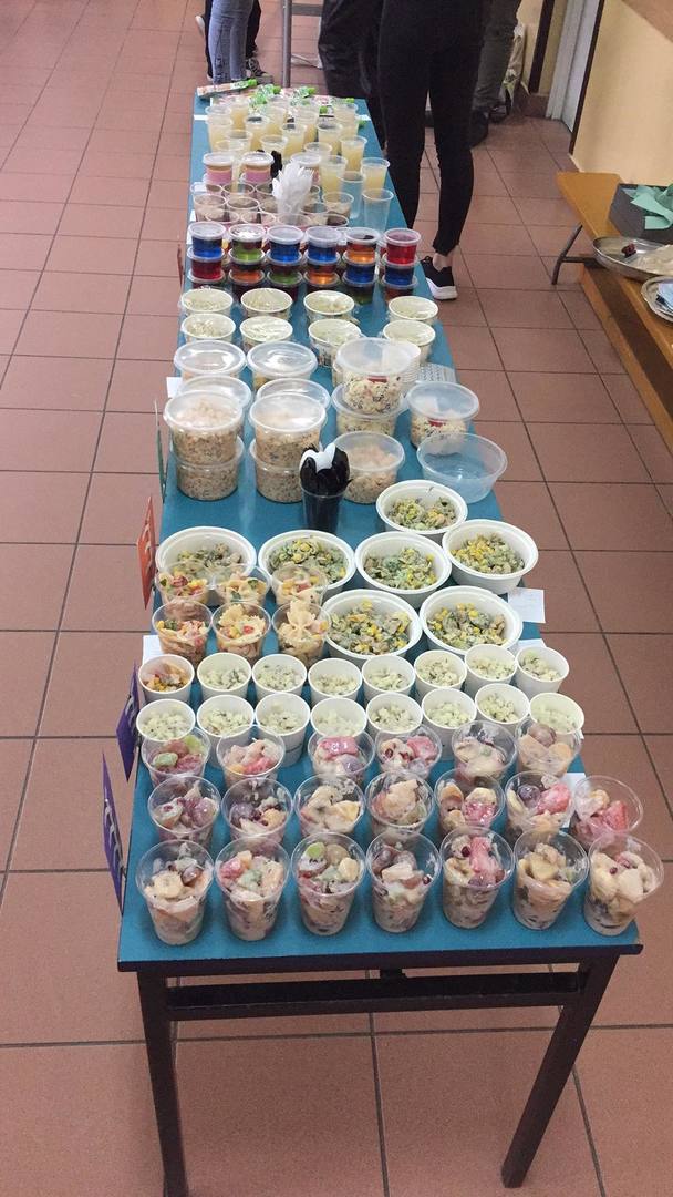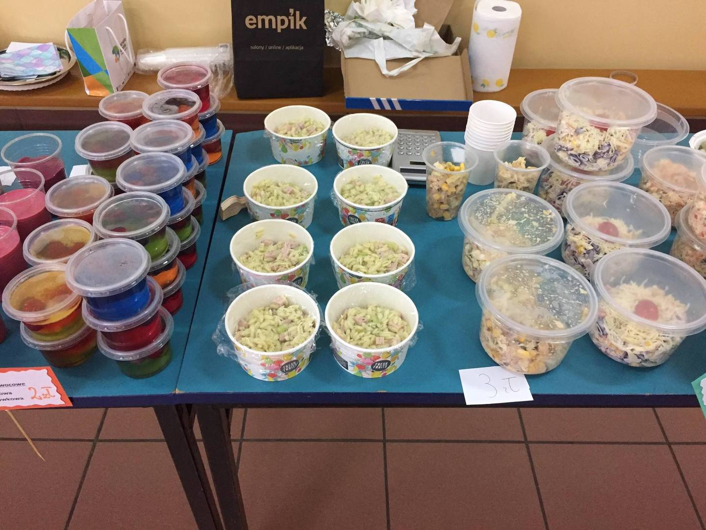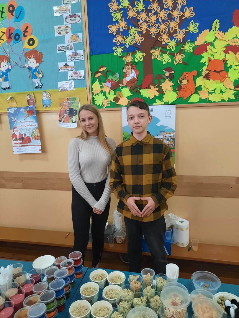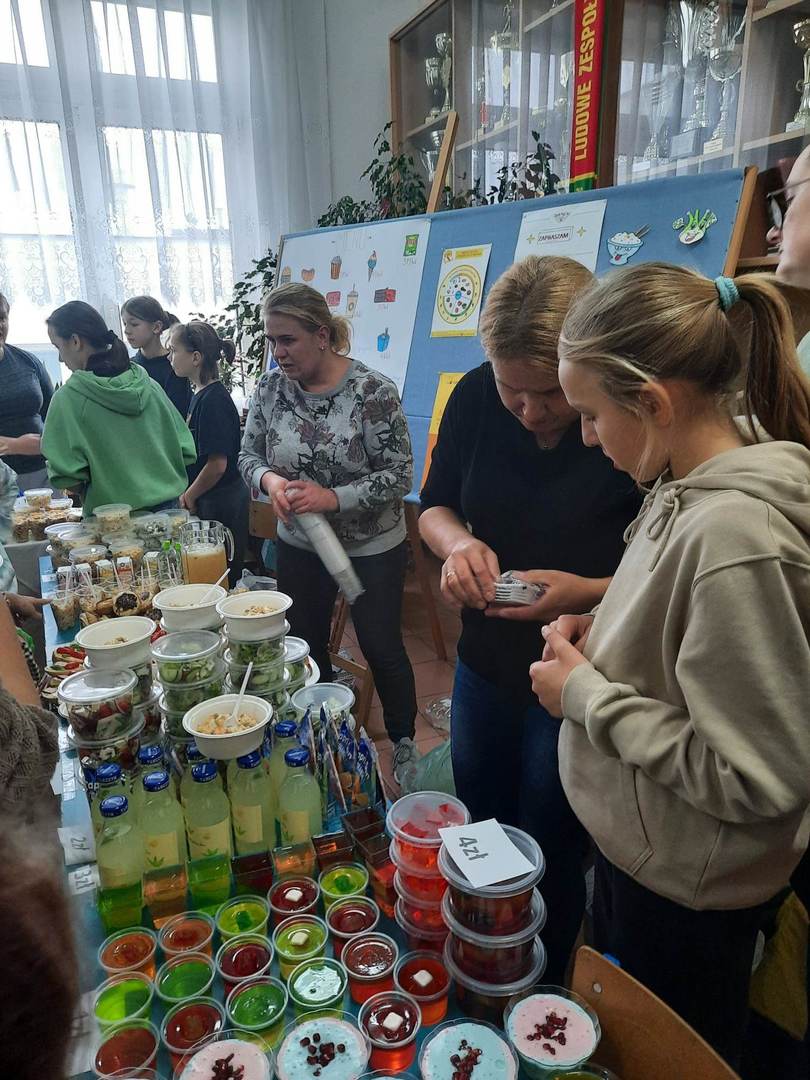 Dzisiaj klasy 4 - 8 szkoły podstawowej przygotowały pyszne i zdrowe sałatki, surówki oraz przekąski, które następnie sprzedawały całej społeczności szkolnej. Przed degustacją odbyła się prelekcja dla uczniów Samorządu Uczniowskiego ze Szkoły Podstawowej w Pukininie, którzy przyjechali do nas z rewizytą. Uczniowie wysłuchali wielu ciekawych informacji nt. zdrowej żywności, a następnie wzięli udział w kiermaszu. Po części oficjalnej Goście zostali oprowadzeni po szkole, po czym poszli na mały poczęstunek do sali świetlicowej, gdzie przedstawiciele naszej szkoły wymienili spostrzeżenia nt. ciekawych przedsięwzięć. Naszym Gościom serdecznie dziękujemy za wizytę, a wszystkim uczniom i ich Rodzicom dziękujemy za wspaniałe witaminowe przyjęcie:)