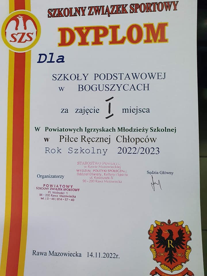Za nami Mistrzostwa Powiatu w Pi艂ce R臋cznej Ch艂opców w kat. kl. VII-VIII. Mi艂o jest nam poinformowa膰, 偶e nasza dru偶yna ze Szko艂y Podstawowej w Boguszycach zdoby艂a I