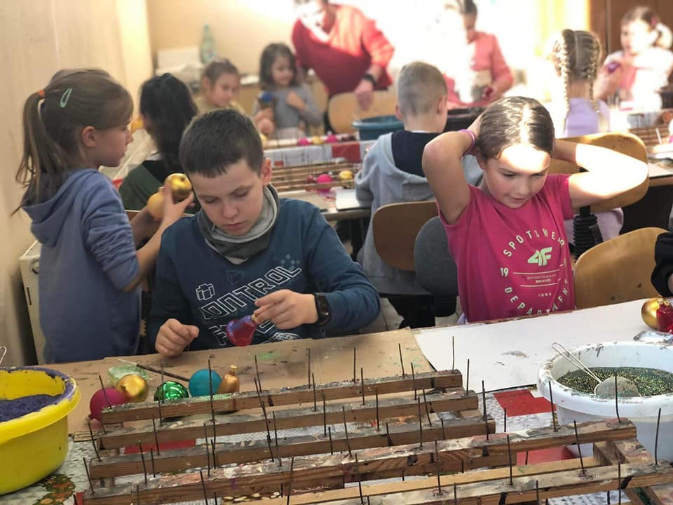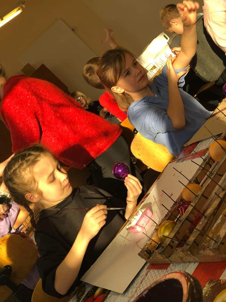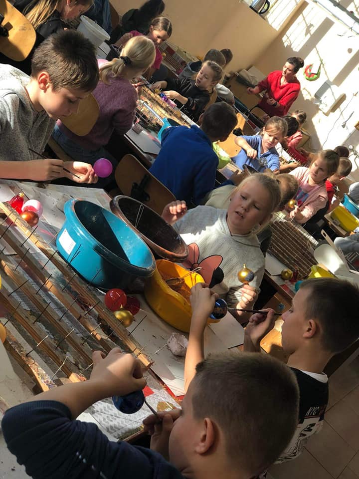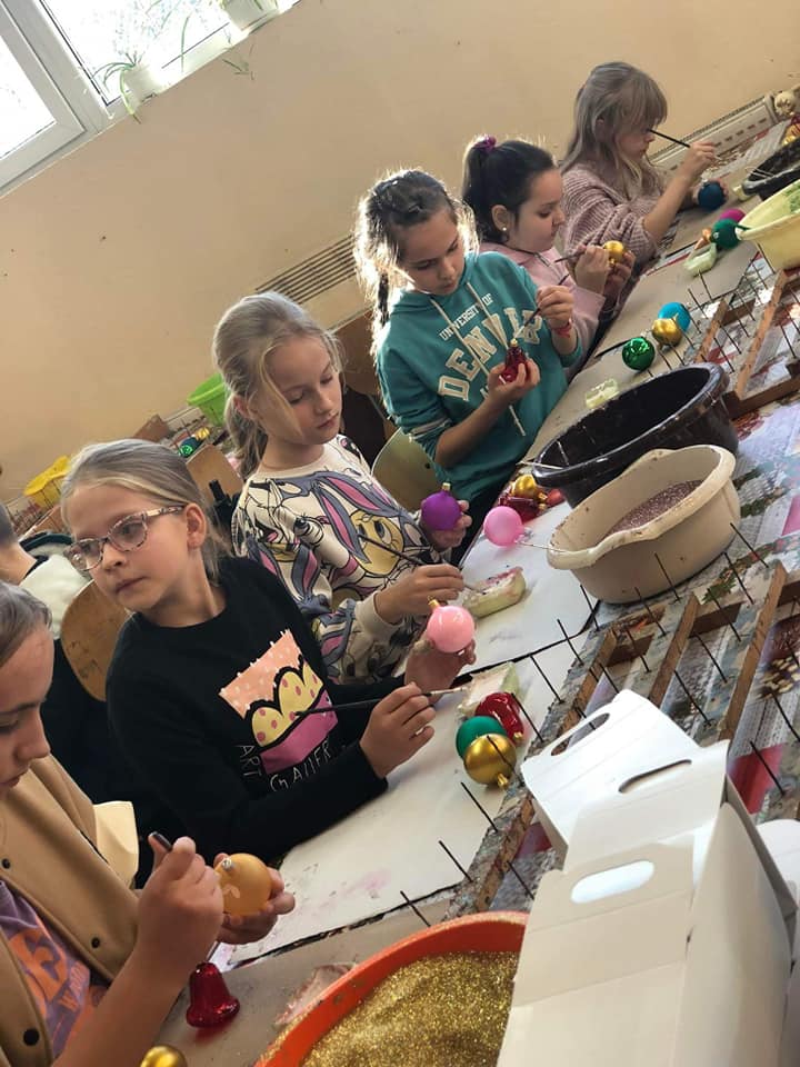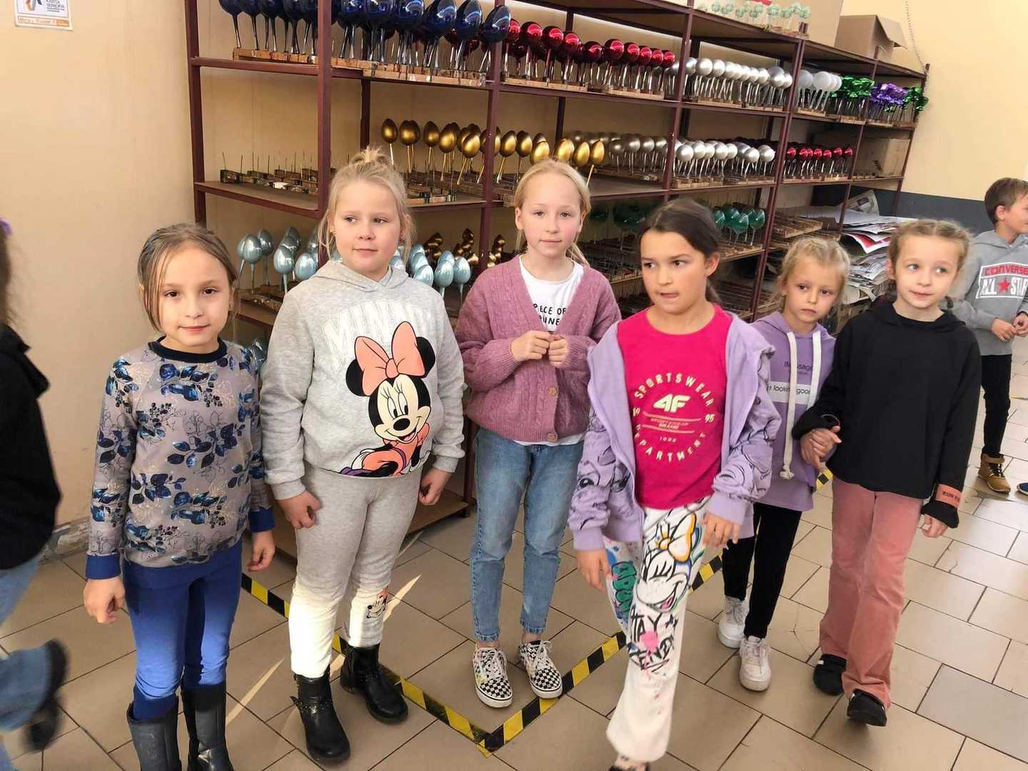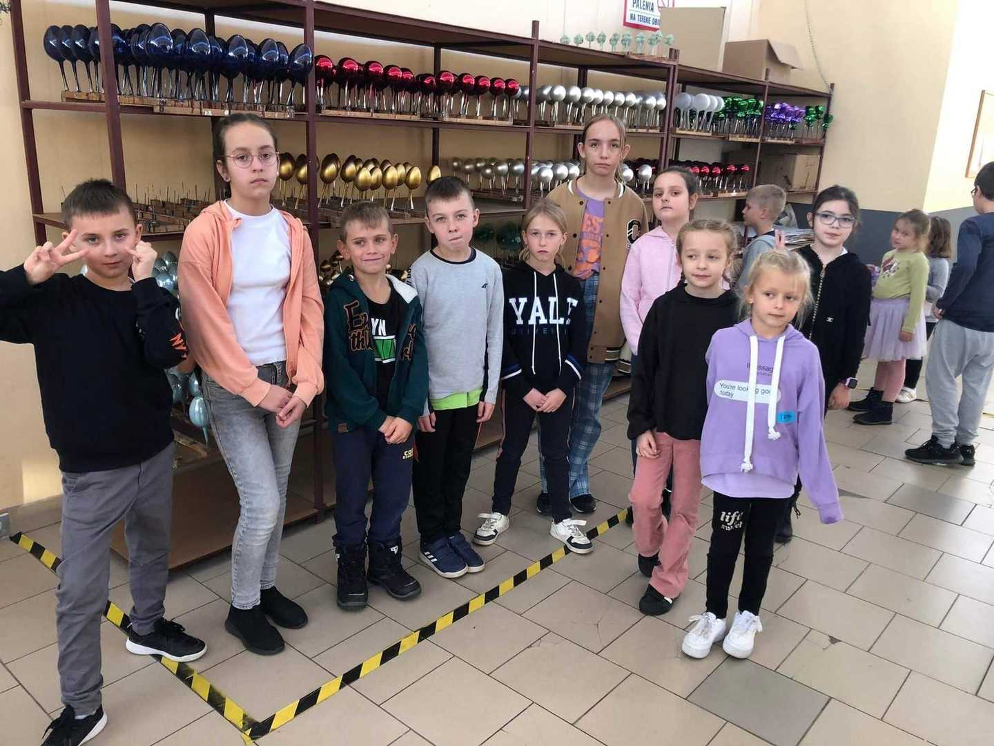 8 listopada 2022r. dzieci z zerówki oraz z klasy 2, 3a i 3b wybrały się na wycieczkę do fabryki bombek „Szkło-Decor” w Piotrkowie Trybunalskim. Pani przewodnik oprowadzając po fabryce wprowadziła dzieciaki w tajniki produkcji przepięknych bombek świątecznych. Zwiedzanie zaczęli od dmuchalni szkła, gdzie powstają różnego kształtu bombki. Kolejnym pomieszczeniem było miejsce, gdzie bombki zostają srebrzone w specjalnym płynie. Następnie przeszli do farbiarni i malarni, w których panie ręcznie malują i ozdabiają bombki koralikami, cekinami oraz kolorowymi brokatami. Każda bombeczka wykonana została z ogromną precyzją .Po zwiedzeniu fabryki, dzieci wzięły udział w warsztatach, na których same mogły udekorować i zabrać do domu kilka bombek. Ostatnim etapem wycieczki były zakupy w bombkowym sklepiku..
