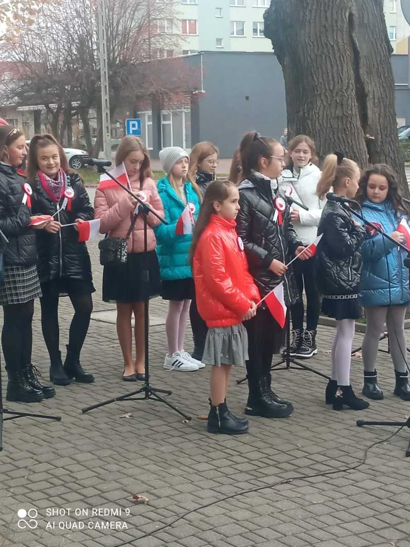 Młodzież ze Szkoły Podstawowej w Boguszycach uświetniła występem wokalnym gminne obchody Narodowego Święta Niepodległości 11.11.2022r.