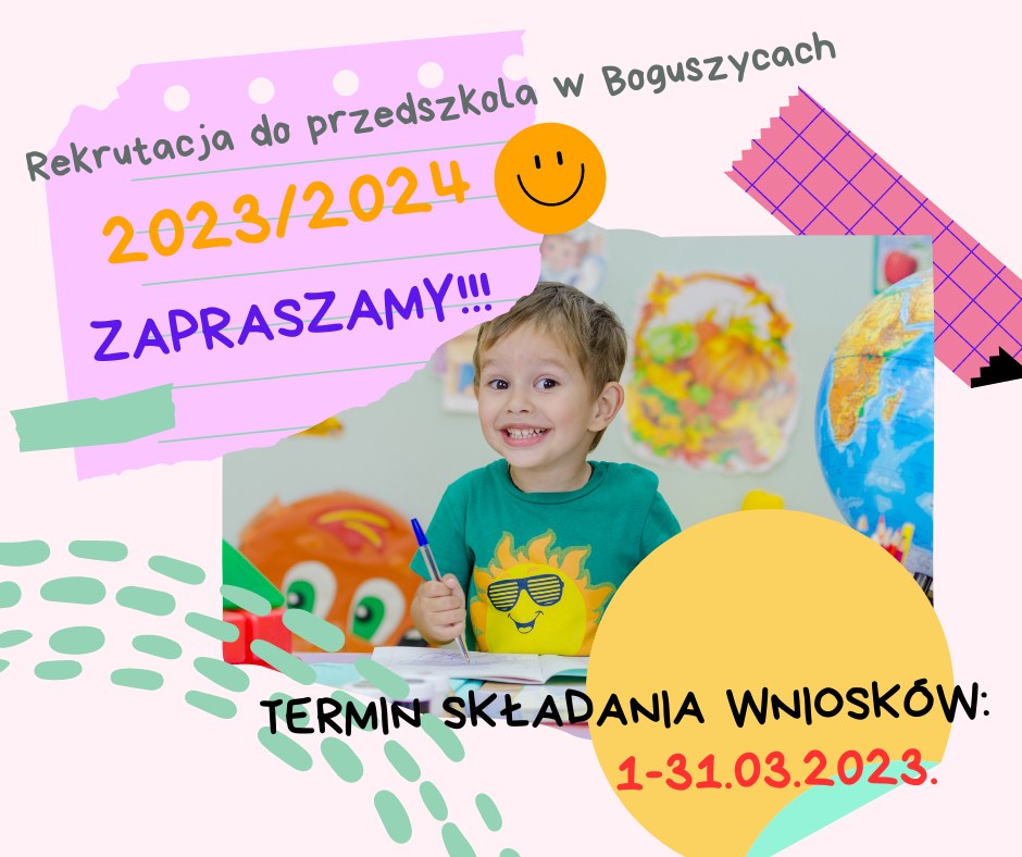 Jednocześnie informujemy, że regulamin postępowania rekrutacyjnego, wnioski, karty zgłoszeń oraz pozostałe dokumenty dostępne są na stronie internetowej placówki https://spboguszyce.edu.pl/cms/21584/rekrutacja
