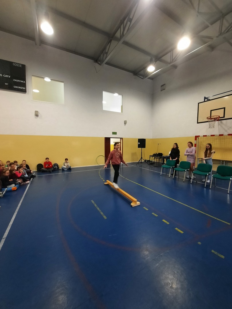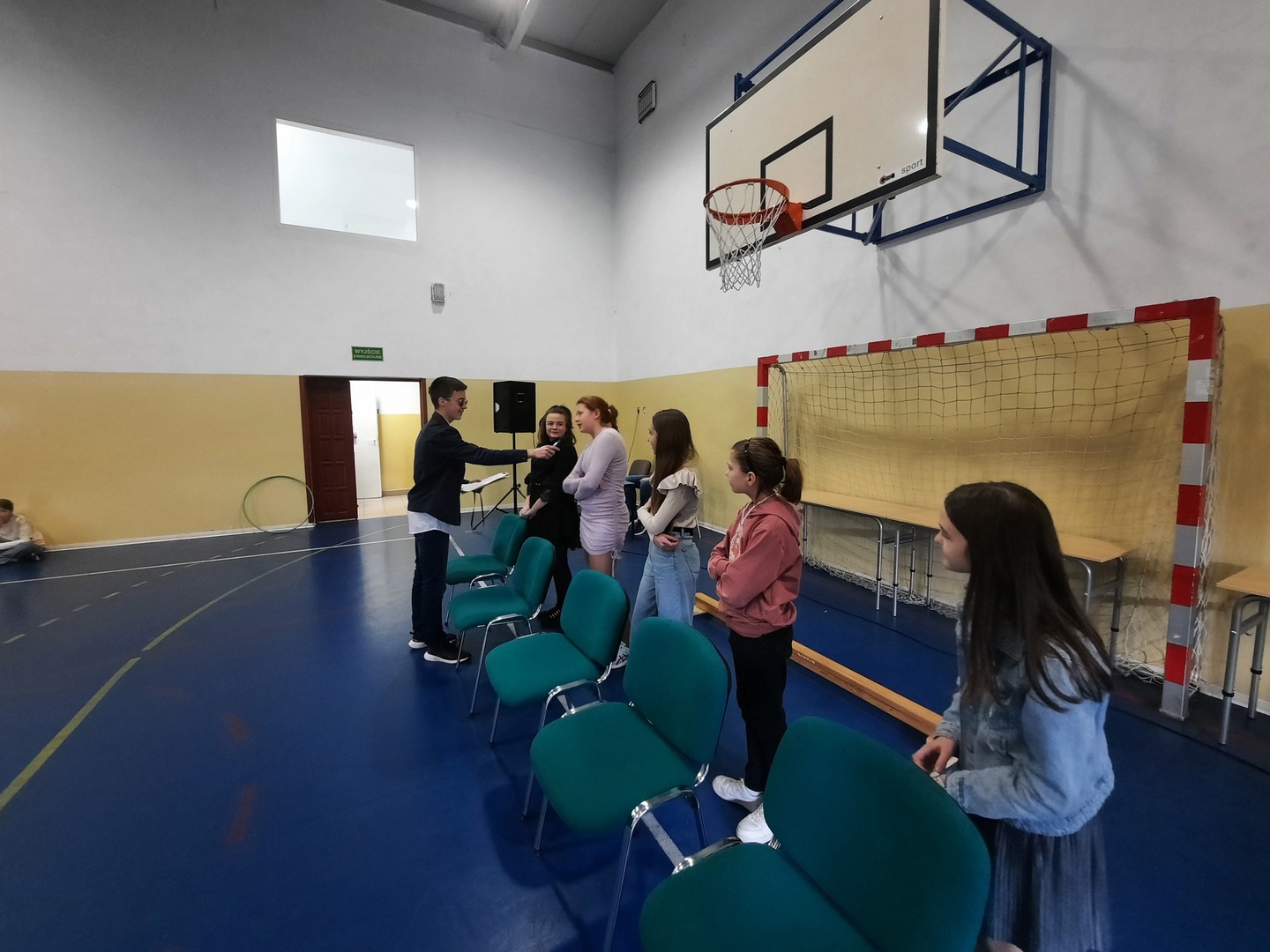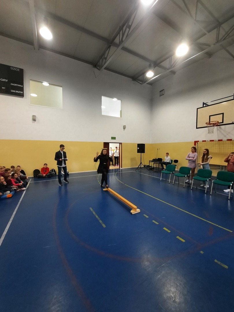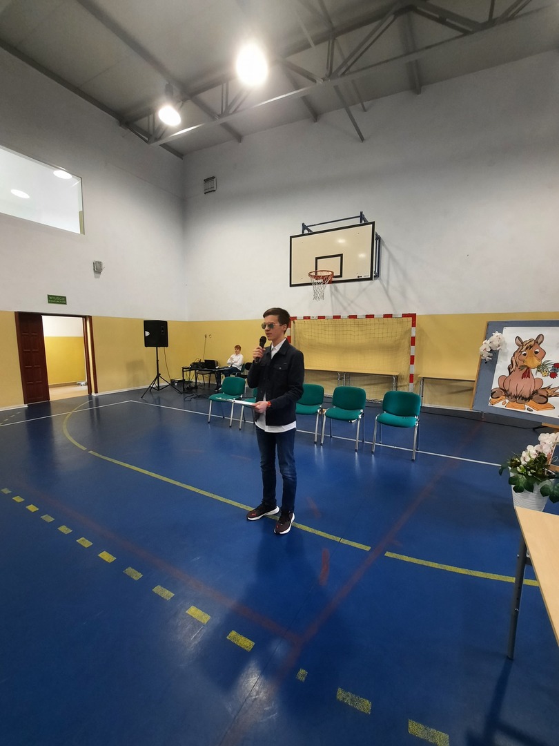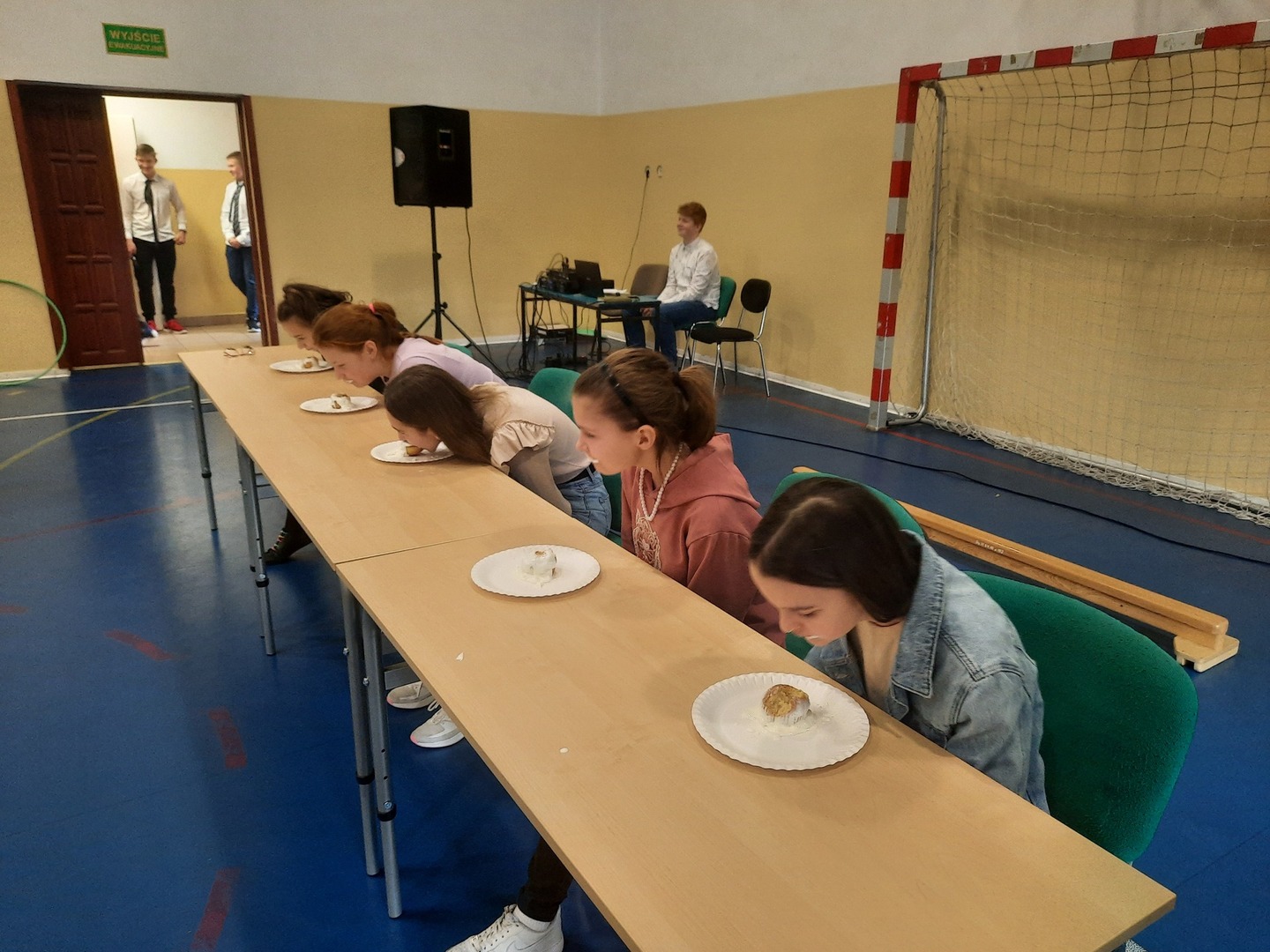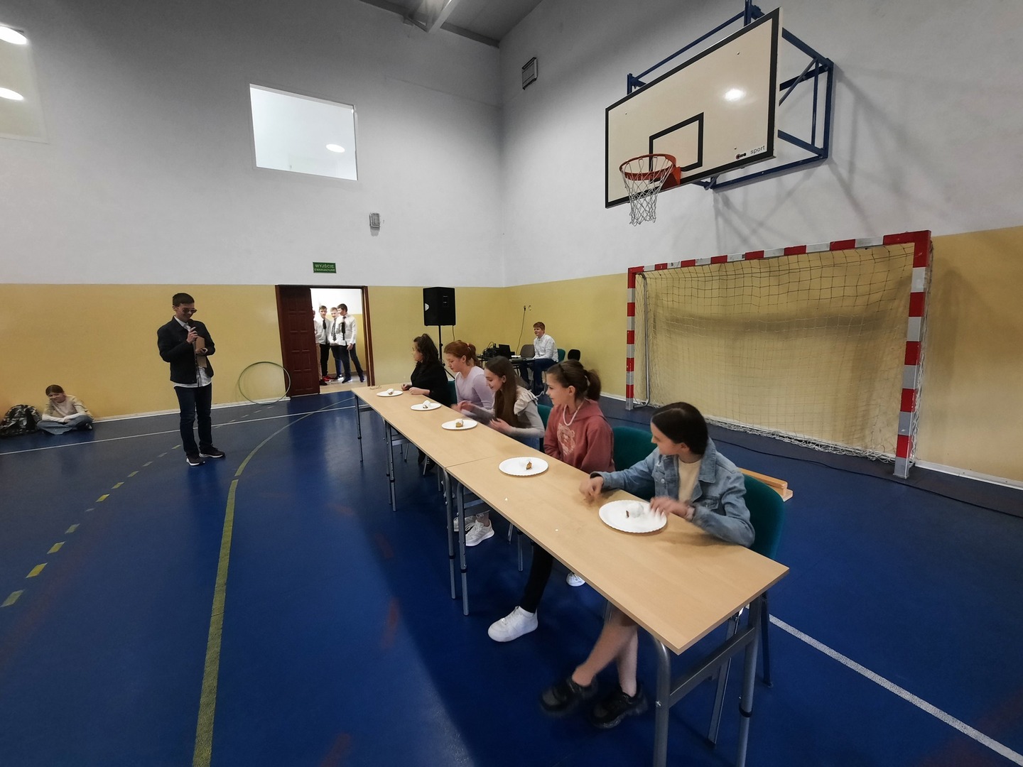 Następnie chłopcy z klasy ośmej recytowali wiesze dedykowane dla małych i dużych kobiet. Kolejnym punktem programu było zaproszenie do wspólnej zabawy po jednej dziewczynce z klas IV - VIII. Dziewczynki brały udział w różnych konkurencjach m.in. wiązanie krawata, kręcenie hula – hop, czy jedzeniu na czas babeczki z kremem, które miały na cale wyłonienie najfajniejszej dziewczyny w szkole. Chłopcy zostali jurorami na czele z panem dyrektorem M. Bazylakiem. Wszyscy bawili się dobrze, publiczność biła brawa , a komisja konkursowa przyznała tytuł „super – dziewczyny” - Oliwii Pietrzyk z klasy 5. Po zabawach młode damy zostały obdarowane przez naszych dżentelmenów słodkim upominkami, które sprawiły dużą radość. Występ przygotował p. Zbigniew Stępniak wraz z chłopcami z klasy 8. Klasowe imprezy z okazji tego święta odbyły się w różnych dniach dogodnych dla danej klasy.
