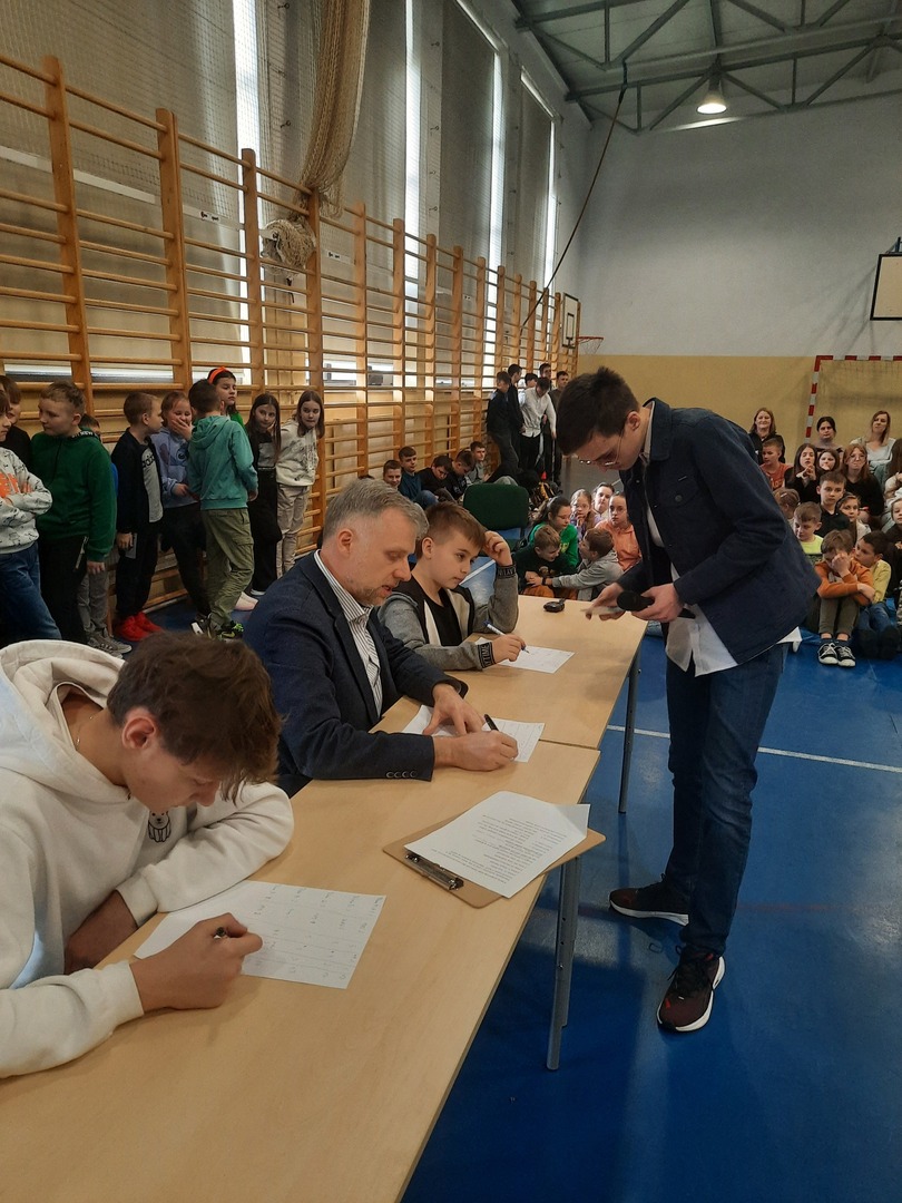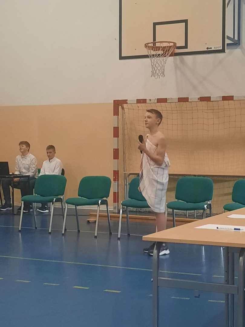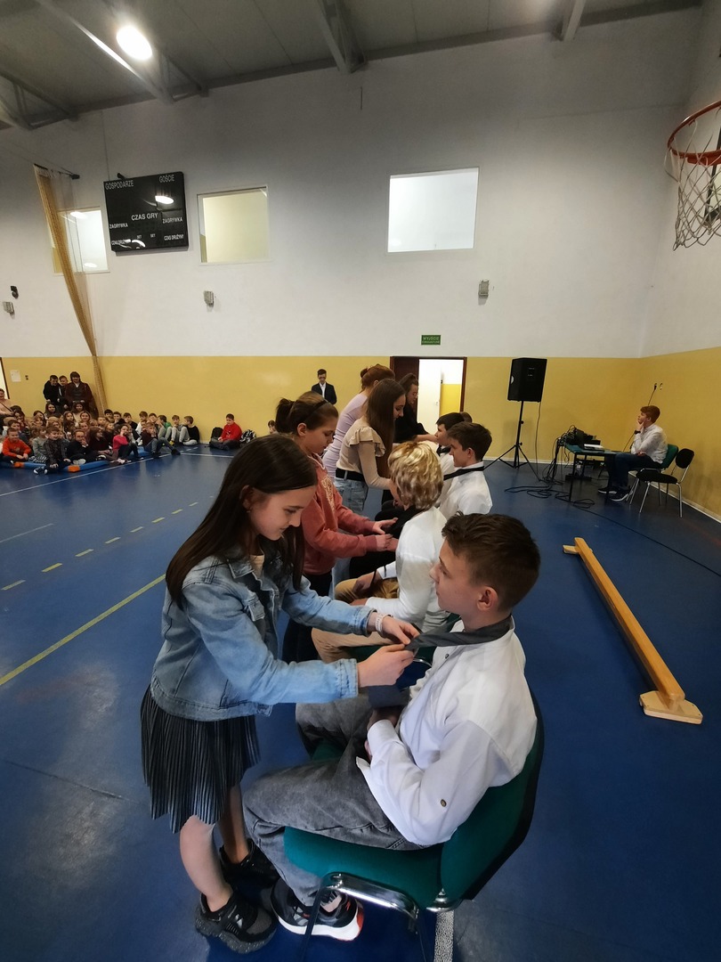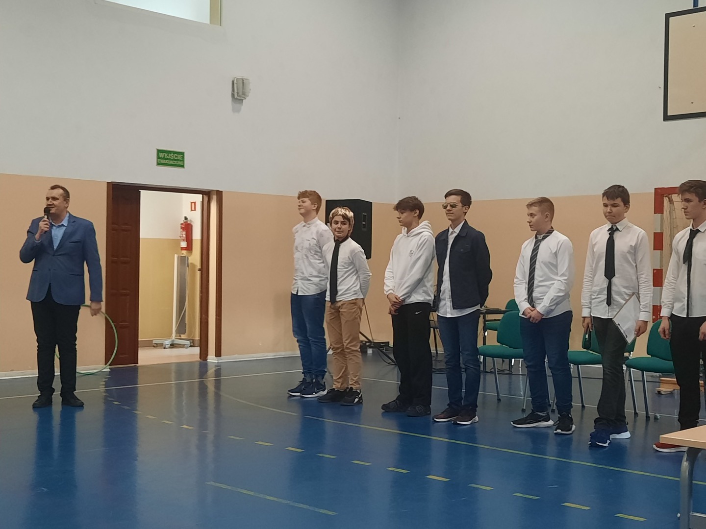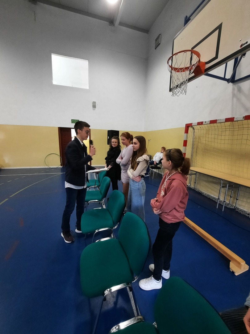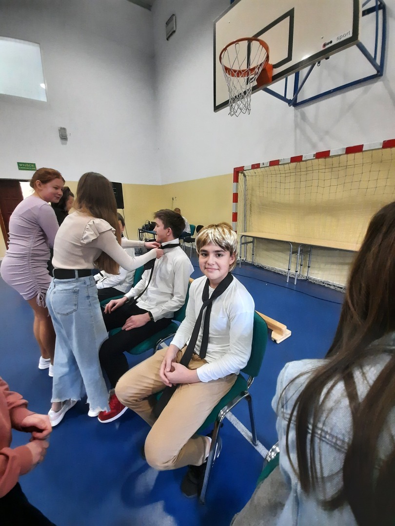 Następnie chłopcy z klasy ośmej recytowali wiesze dedykowane dla małych i dużych kobiet. Kolejnym punktem programu było zaproszenie do wspólnej zabawy po jednej dziewczynce z klas IV - VIII. Dziewczynki brały udział w różnych konkurencjach m.in. wiązanie krawata, kręcenie hula – hop, czy jedzeniu na czas babeczki z kremem, które miały na cale wyłonienie najfajniejszej dziewczyny w szkole. Chłopcy zostali jurorami na czele z panem dyrektorem M. Bazylakiem. Wszyscy bawili się dobrze, publiczność biła brawa , a komisja konkursowa przyznała tytuł „super – dziewczyny” - Oliwii Pietrzyk z klasy 5. Po zabawach młode damy zostały obdarowane przez naszych dżentelmenów słodkim upominkami, które sprawiły dużą radość. Występ przygotował p. Zbigniew Stępniak wraz z chłopcami z klasy 8. Klasowe imprezy z okazji tego święta odbyły się w różnych dniach dogodnych dla danej klasy.