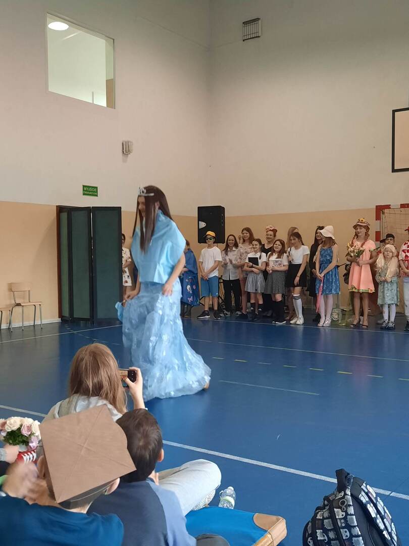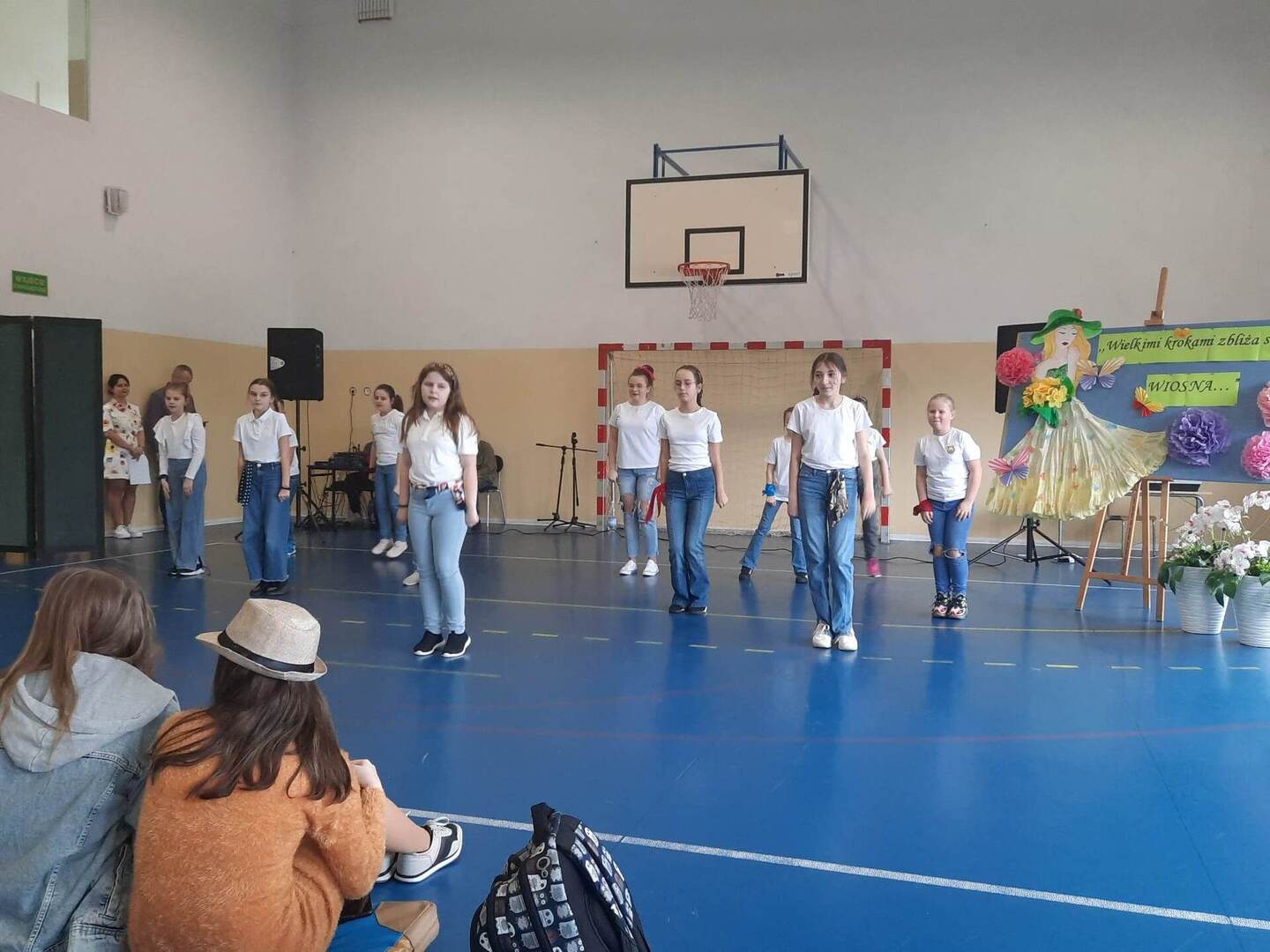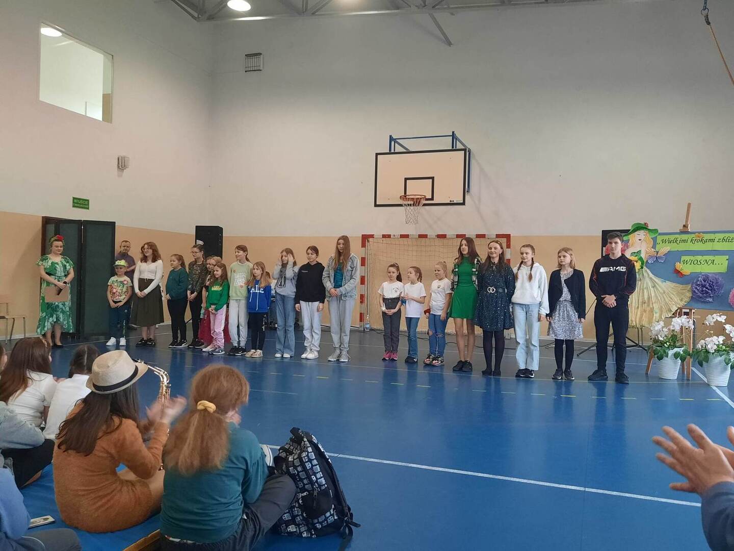 W dniu dzisiejszym przywitaliśmy Wiosnę śpiewająco, kolorowo i z humorem. Wesołe świętowanie rozpoczęliśmy od pokazu talentów, a tych wśród naszych uczniów z pewnością nie brakuje. Prezentowaliśmy nasze umiejętności wokalne, taneczne i sportowe. Graliśmy na instrumentach muzycznych. Można również było podziwiać rysunki, obrazy i rzeźby na wystawie naszych „dzieł sztuki”. Następnie odbył się wiosenny pokaz mody, w którym zaproponowaliśmy stroje na różne okazje. Nie zabrakło propozycji kreacji wieczorowych, sportowych czy też letnich. Na wybiegu pojawili się też modele prezentujący najnowsze trendy w modzie ślubnej, „księżniczkowej” czy biznesowej. Zawitały również Panie Wiosny. Pierwszy Dzień Wiosny był w szkole dniem bez plecaka, a pomysłowość uczniów została nagrodzona przez Jury. Wszyscy uczestnicy zabawy zostali nagrodzeni słodkim podarunkiem. Uroczystość przygotowali: P. Dorota Goc P. Anna Rzeźnicka P. Monika Gierach P. Wojciech Szymański P. Agnieszka Dzierżawska Imprezę poprowadzili: Julia Rymarczyk Kasia Galach Lena Szymczak Wiktoria Ziętek Przemysław Wójcik