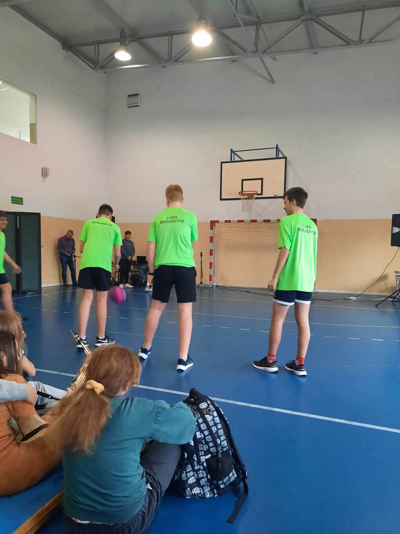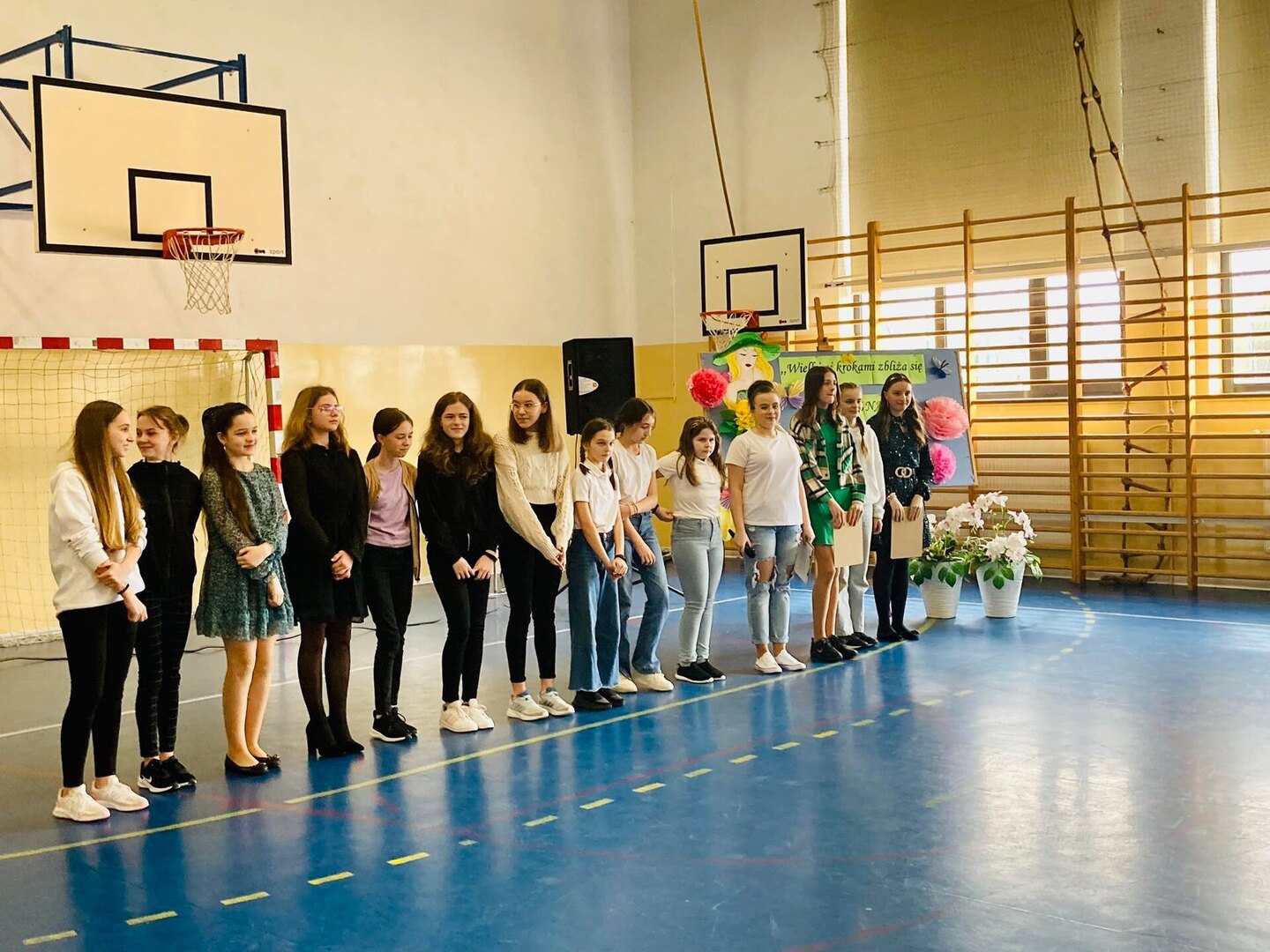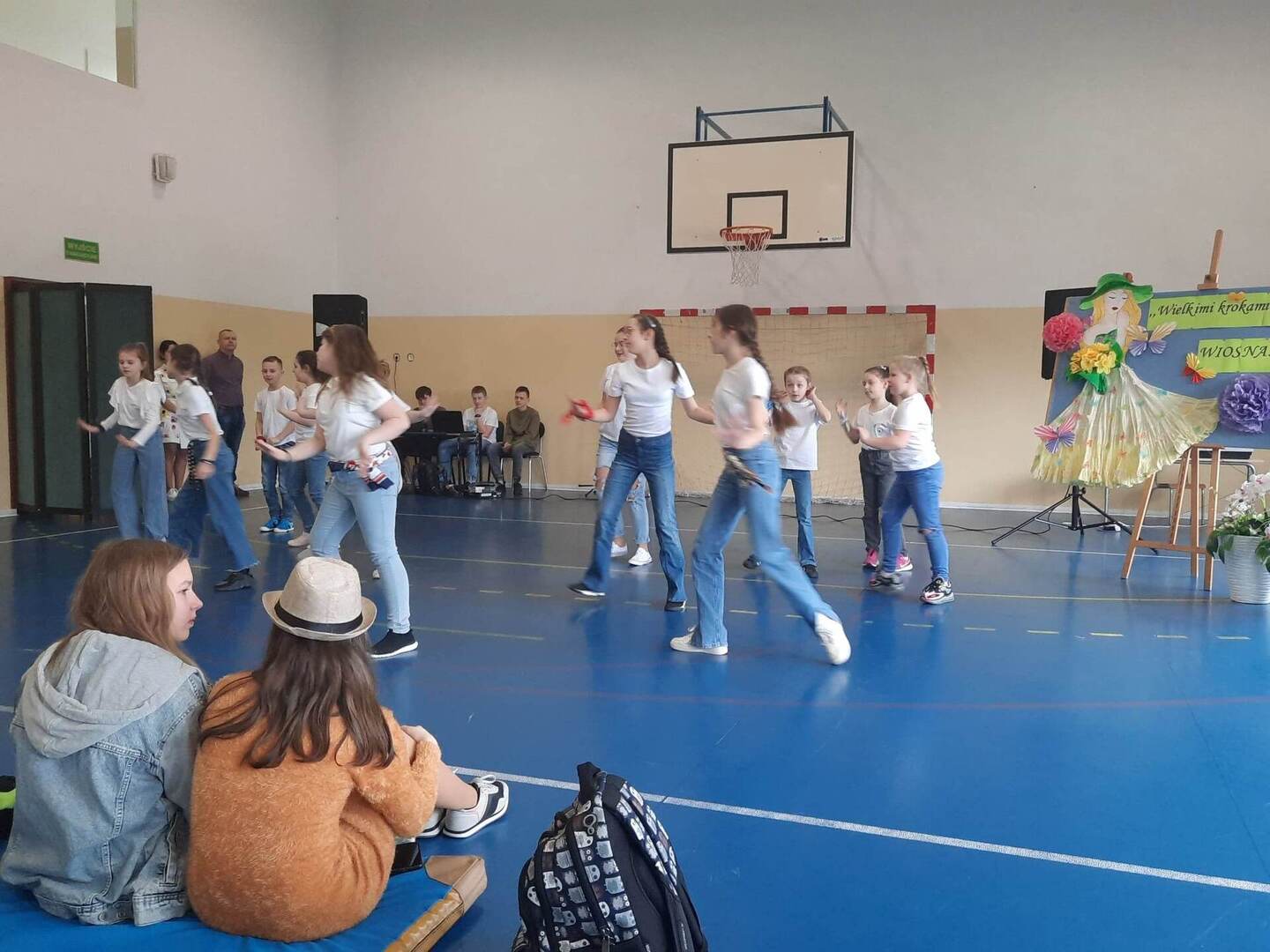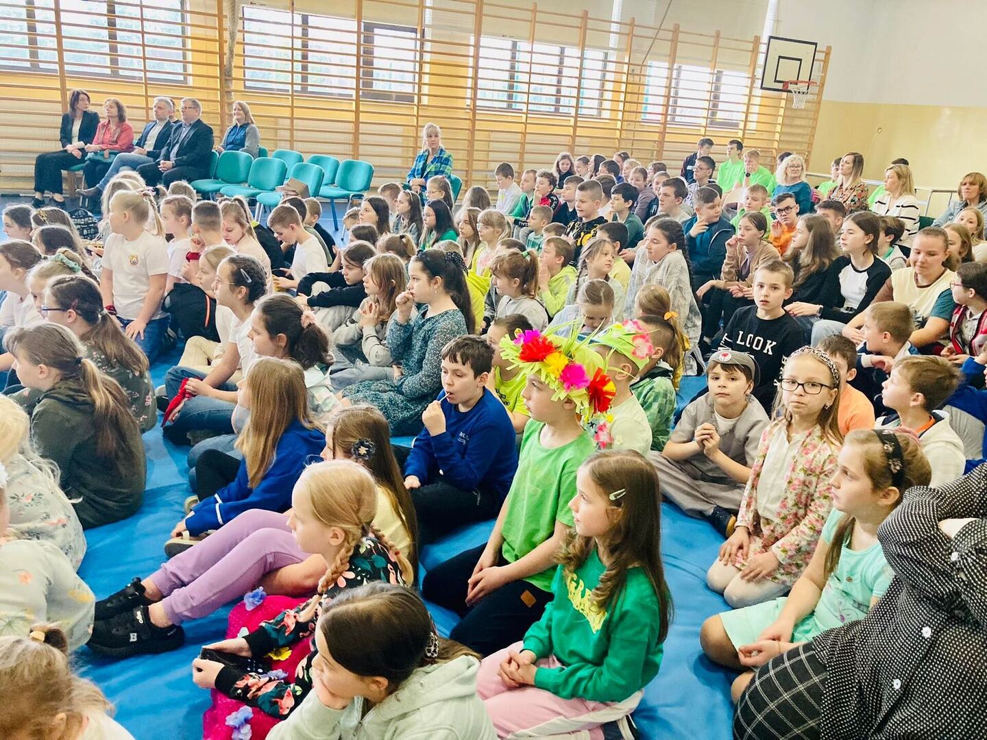 W dniu dzisiejszym przywitaliśmy Wiosnę śpiewająco, kolorowo i z humorem. Wesołe świętowanie rozpoczęliśmy od pokazu talentów, a tych wśród naszych uczniów z pewnością nie brakuje. Prezentowaliśmy nasze umiejętności wokalne, taneczne i sportowe. Graliśmy na instrumentach muzycznych. Można również było podziwiać rysunki, obrazy i rzeźby na wystawie naszych „dzieł sztuki”. Następnie odbył się wiosenny pokaz mody, w którym zaproponowaliśmy stroje na różne okazje. Nie zabrakło propozycji kreacji wieczorowych, sportowych czy też letnich. Na wybiegu pojawili się też modele prezentujący najnowsze trendy w modzie ślubnej, „księżniczkowej” czy biznesowej. Zawitały również Panie Wiosny. Pierwszy Dzień Wiosny był w szkole dniem bez plecaka, a pomysłowość uczniów została nagrodzona przez Jury. Wszyscy uczestnicy zabawy zostali nagrodzeni słodkim podarunkiem. Uroczystość przygotowali: P. Dorota Goc P. Anna Rzeźnicka P. Monika Gierach P. Wojciech Szymański P. Agnieszka Dzierżawska Imprezę poprowadzili: Julia Rymarczyk Kasia Galach Lena Szymczak Wiktoria Ziętek Przemysław Wójcik