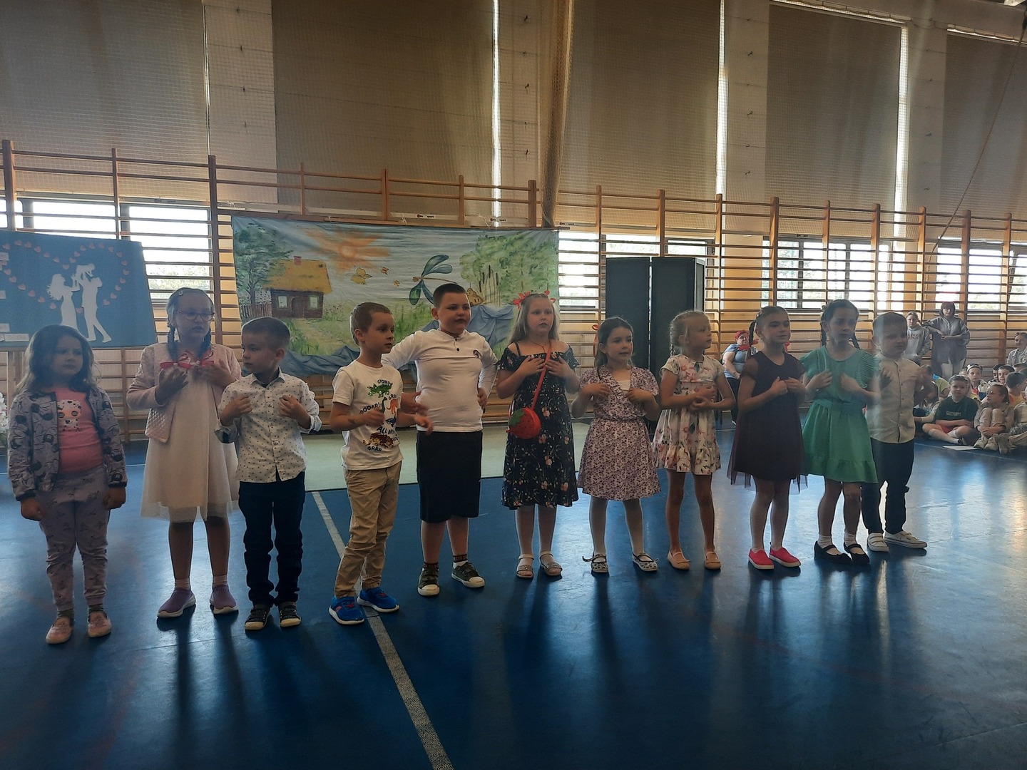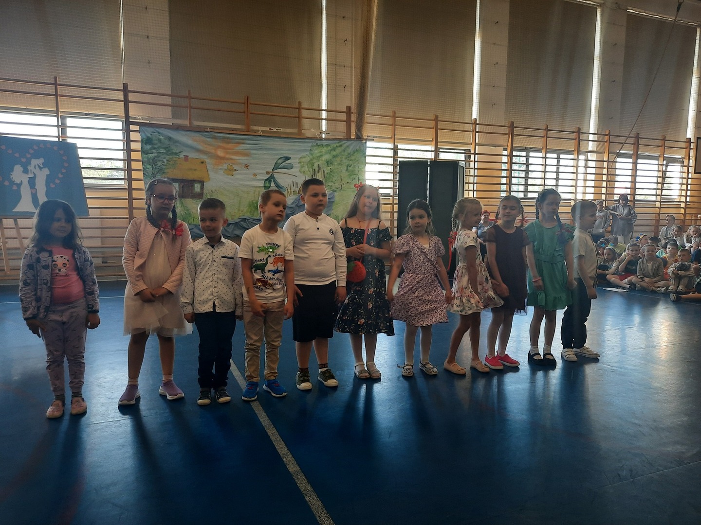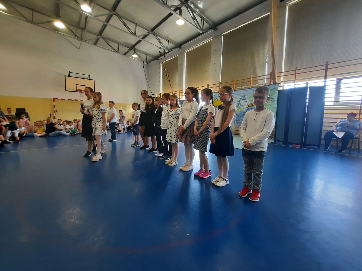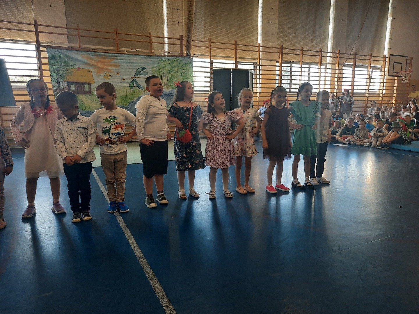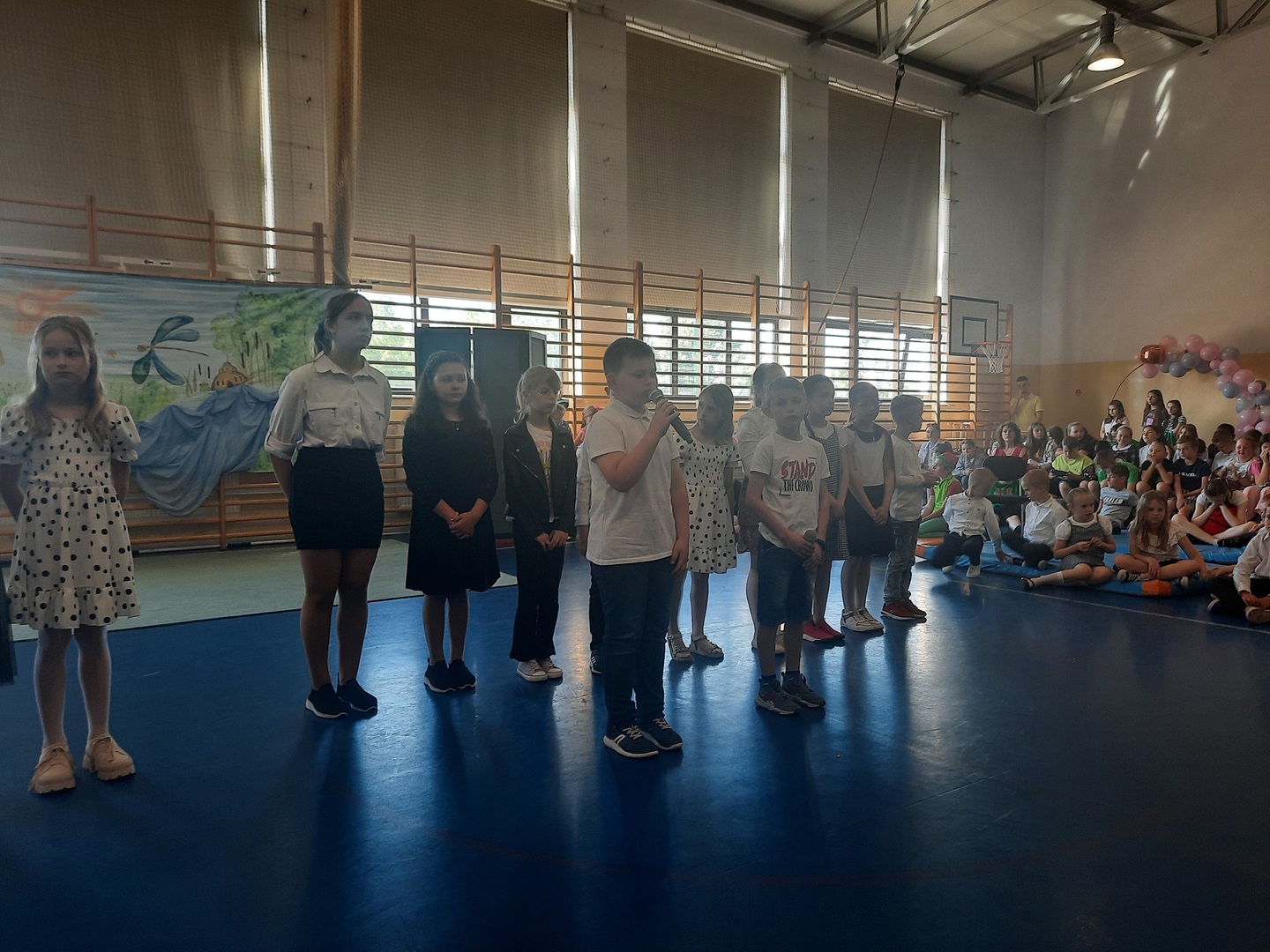 1 czerwca 2023 r. w naszej szkole obchodziliśmy Dzień Rodziny. Niezwykle ciekawie zaplanowano spędzenie tego dnia na terenie naszej szkoły. Świętowanie rozpoczęliśmy od uroczystej akademii w wykonaniu klas młodszych i przedszkolaków. Dzieci chcąc uczcić Dzień Mamy i Taty przygotowały wiersze, piosenki, tańce oraz najpiękniejsze życzenia płynące prosto z ich serc. Na twarzach rodziców było widać dumę, radość i wzruszenie. Po części artystycznej wszyscy udaliśmy się na wspólne świętowanie na dwór, gdzie od samego rana rozbrzmiewała wesoła muzyka. Na dzieci czekało tam wiele atrakcji m.in. barwny dmuchaniec, balonowa fotobudka czy salon urody, gdzie można było zrobić sobie tatuaż, makijaż oraz fryzurę. Tego dnia odbyły się również: Turniej szachowy, Turniej szkolny piłki nożnej, Biegi krótkie o Puchar Dyrektora Szkoły oraz szkolny konkurs „Mistrz układania kostki Rubika”. Aby jeszcze bardziej urozmaicić ten dzień uczniowie starszych klas mogli pograć w ulubione gry komputerowe. Całość imprezy dopełnił poczęstunek przygotowany przez rodziców. Uroczystość przebiegała w miłej i radosnej atmosferze. W przygotowanie i przebieg Dnia Rodziny aktywnie włączyli się rodzice, którym bardzo serdecznie dziękujemy. Wszystkim dzieciom życzymy słoneczka na każdy dzień