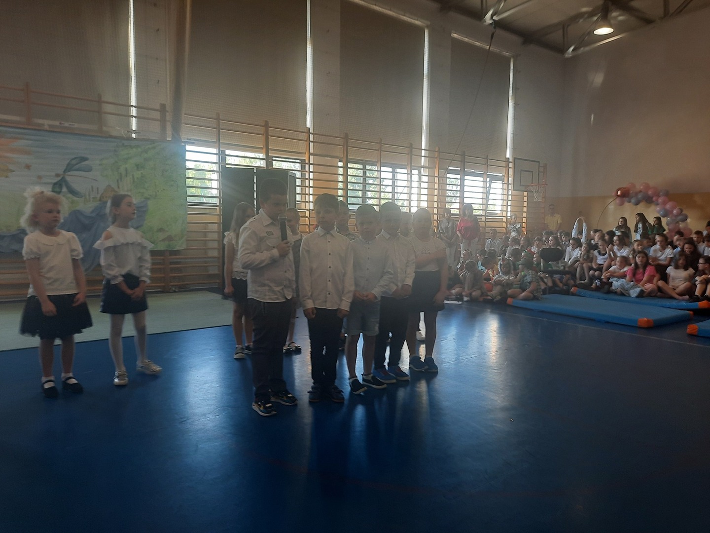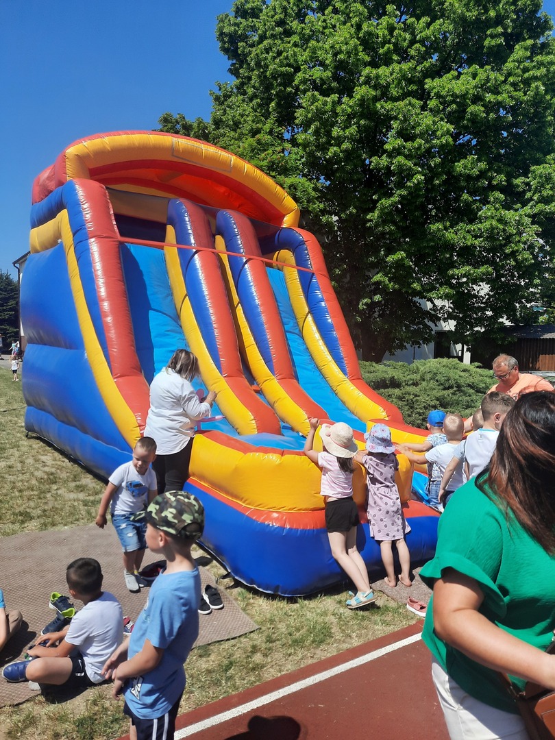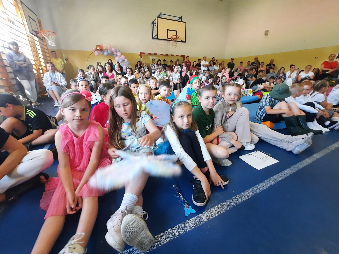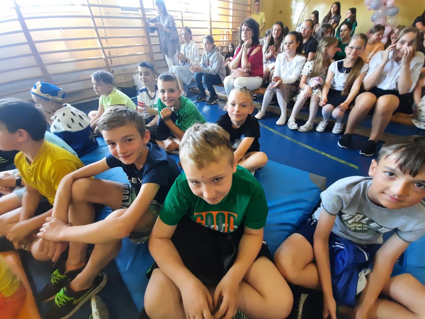 1 czerwca 2023 r. w naszej szkole obchodziliśmy Dzień Rodziny. Niezwykle ciekawie zaplanowano spędzenie tego dnia na terenie naszej szkoły. Świętowanie rozpoczęliśmy od uroczystej akademii w wykonaniu klas młodszych i przedszkolaków. Dzieci chcąc uczcić Dzień Mamy i Taty przygotowały wiersze, piosenki, tańce oraz najpiękniejsze życzenia płynące prosto z ich serc. Na twarzach rodziców było widać dumę, radość i wzruszenie. Po części artystycznej wszyscy udaliśmy się na wspólne świętowanie na dwór, gdzie od samego rana rozbrzmiewała wesoła muzyka. Na dzieci czekało tam wiele atrakcji m.in. barwny dmuchaniec, balonowa fotobudka czy salon urody, gdzie można było zrobić sobie tatuaż, makijaż oraz fryzurę. Tego dnia odbyły się również: Turniej szachowy, Turniej szkolny piłki nożnej, Biegi krótkie o Puchar Dyrektora Szkoły oraz szkolny konkurs „Mistrz układania kostki Rubika”. Aby jeszcze bardziej urozmaicić ten dzień uczniowie starszych klas mogli pograć w ulubione gry komputerowe. Całość imprezy dopełnił poczęstunek przygotowany przez rodziców. Uroczystość przebiegała w miłej i radosnej atmosferze. W przygotowanie i przebieg Dnia Rodziny aktywnie włączyli się rodzice, którym bardzo serdecznie dziękujemy. Wszystkim dzieciom życzymy słoneczka na każdy dzień