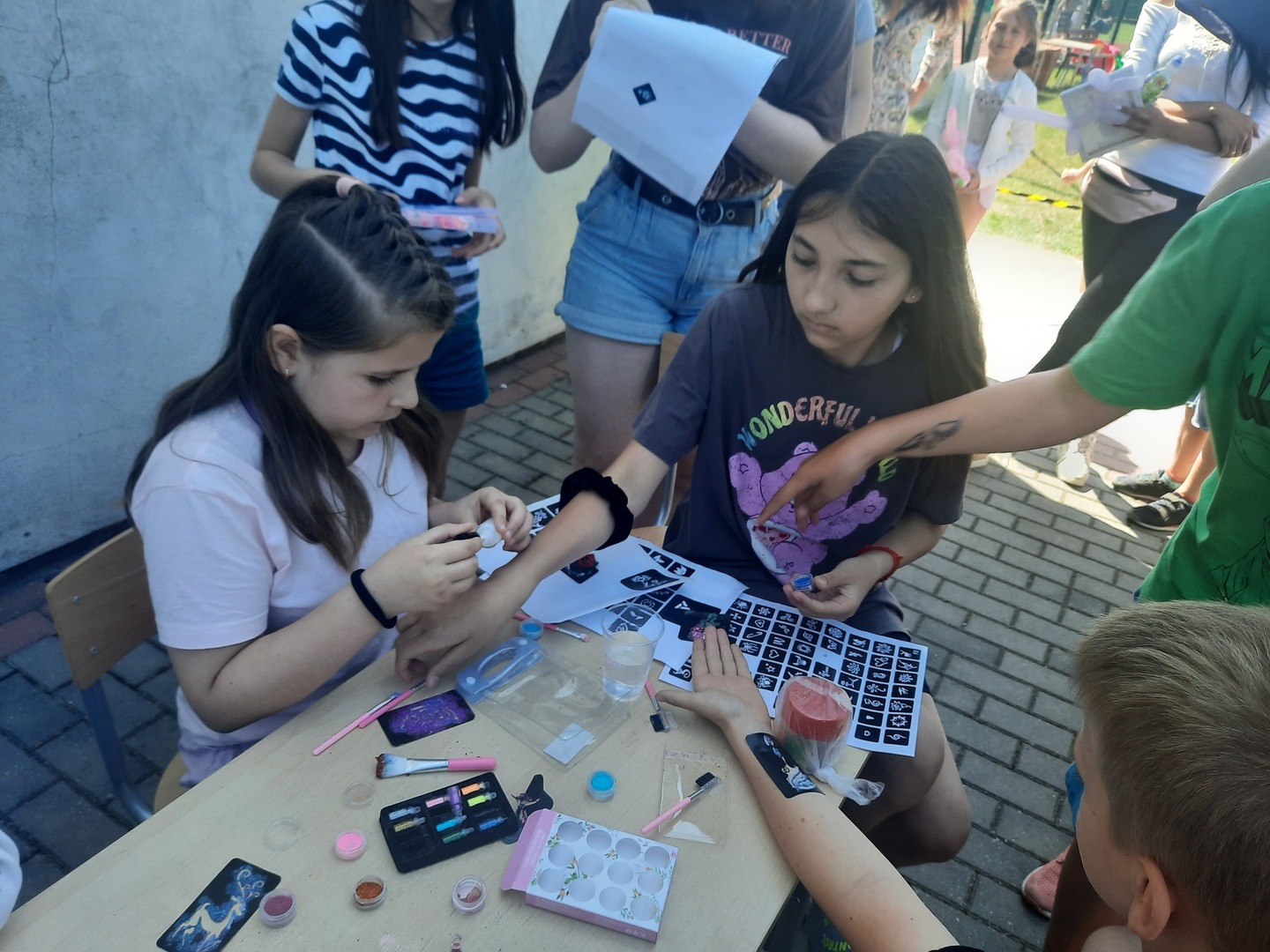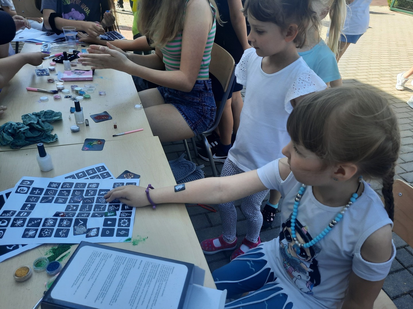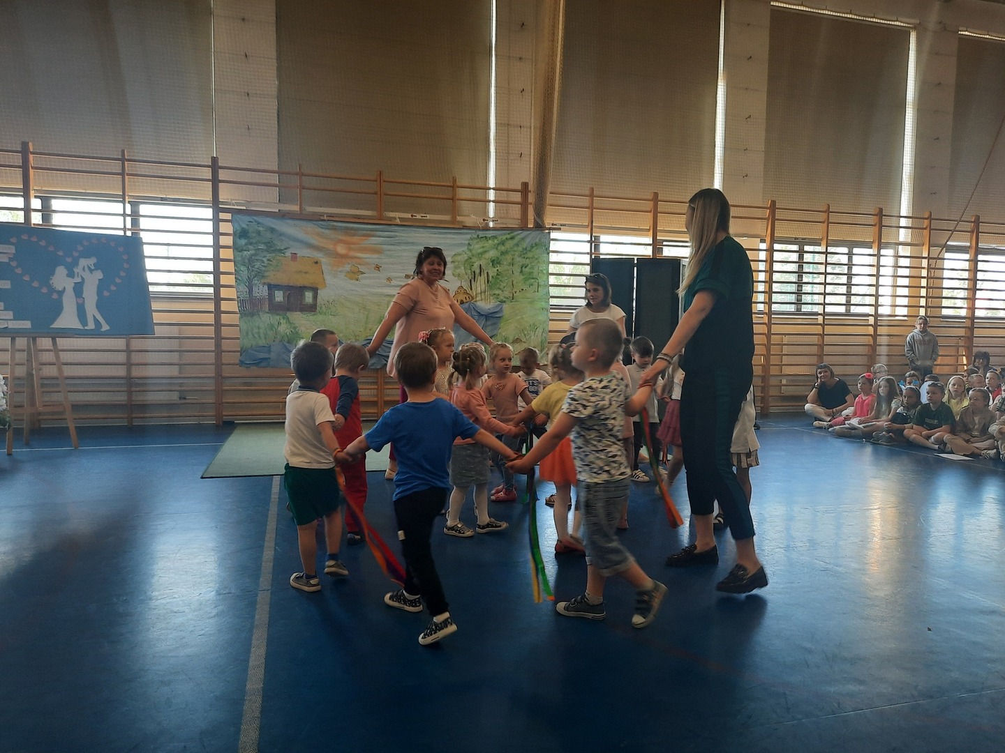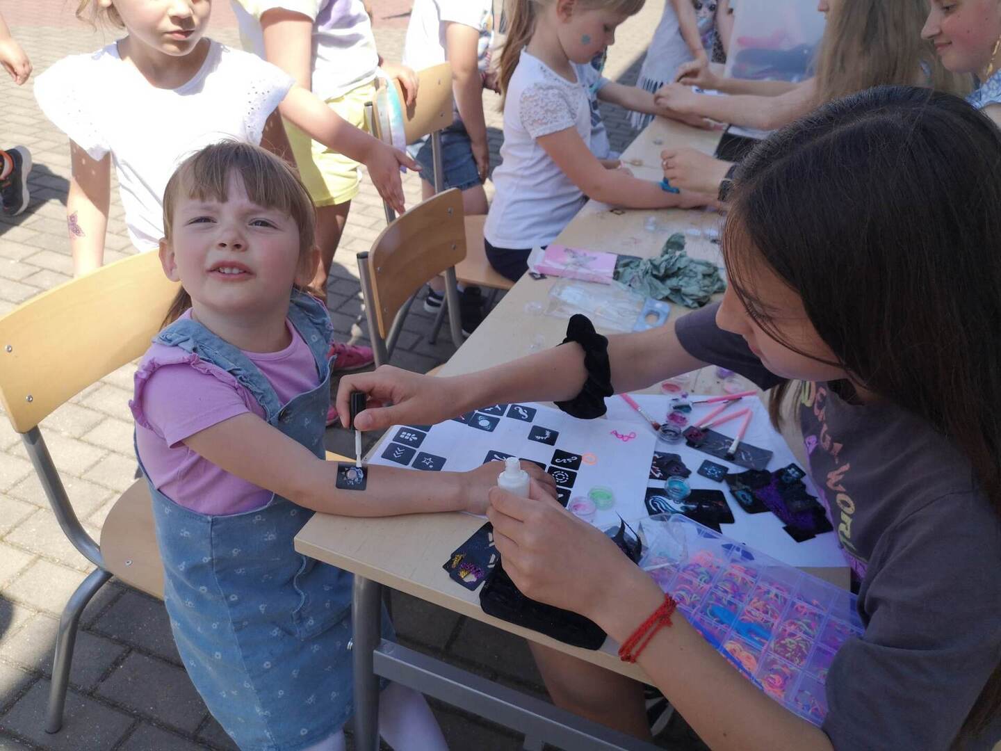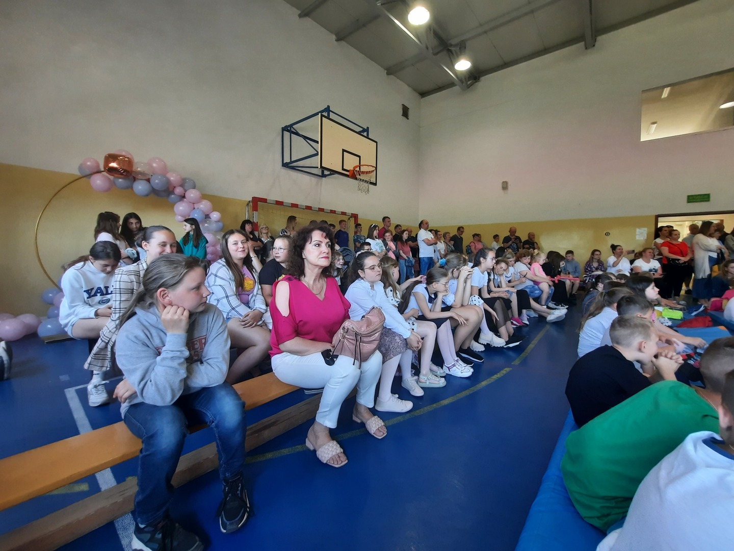 1 czerwca 2023 r. w naszej szkole obchodziliśmy Dzień Rodziny. Niezwykle ciekawie zaplanowano spędzenie tego dnia na terenie naszej szkoły. Świętowanie rozpoczęliśmy od uroczystej akademii w wykonaniu klas młodszych i przedszkolaków. Dzieci chcąc uczcić Dzień Mamy i Taty przygotowały wiersze, piosenki, tańce oraz najpiękniejsze życzenia płynące prosto z ich serc. Na twarzach rodziców było widać dumę, radość i wzruszenie. Po części artystycznej wszyscy udaliśmy się na wspólne świętowanie na dwór, gdzie od samego rana rozbrzmiewała wesoła muzyka. Na dzieci czekało tam wiele atrakcji m.in. barwny dmuchaniec, balonowa fotobudka czy salon urody, gdzie można było zrobić sobie tatuaż, makijaż oraz fryzurę. Tego dnia odbyły się również: Turniej szachowy, Turniej szkolny piłki nożnej, Biegi krótkie o Puchar Dyrektora Szkoły oraz szkolny konkurs „Mistrz układania kostki Rubika”. Aby jeszcze bardziej urozmaicić ten dzień uczniowie starszych klas mogli pograć w ulubione gry komputerowe. Całość imprezy dopełnił poczęstunek przygotowany przez rodziców. Uroczystość przebiegała w miłej i radosnej atmosferze. W przygotowanie i przebieg Dnia Rodziny aktywnie włączyli się rodzice, którym bardzo serdecznie dziękujemy. Wszystkim dzieciom życzymy słoneczka na każdy dzień