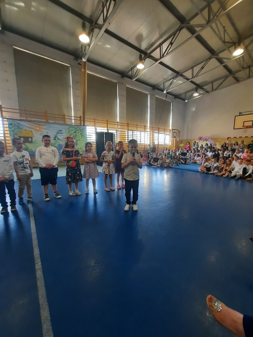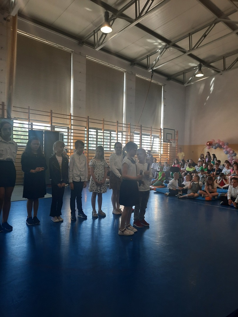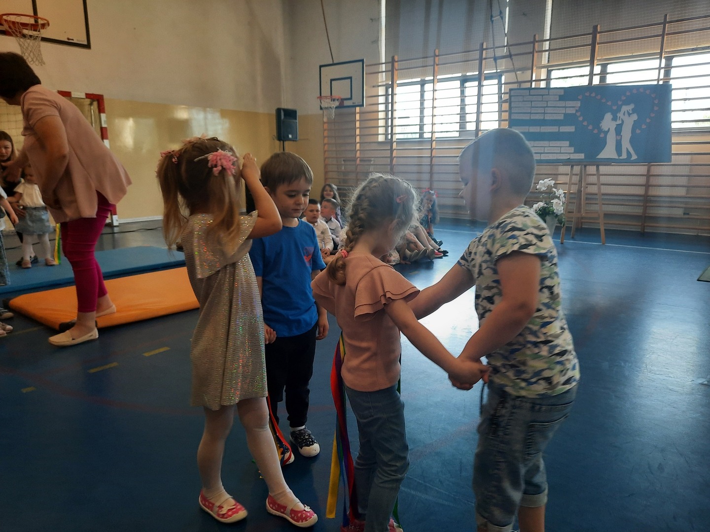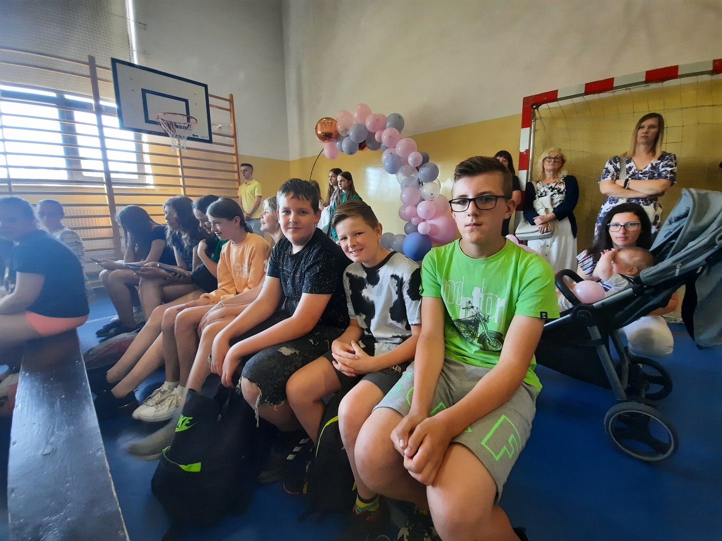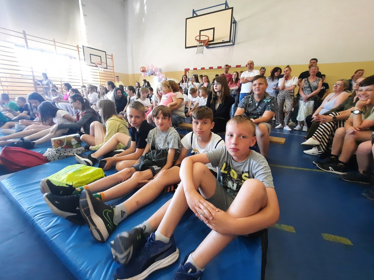 1 czerwca 2023 r. w naszej szkole obchodziliśmy Dzień Rodziny. Niezwykle ciekawie zaplanowano spędzenie tego dnia na terenie naszej szkoły. Świętowanie rozpoczęliśmy od uroczystej akademii w wykonaniu klas młodszych i przedszkolaków. Dzieci chcąc uczcić Dzień Mamy i Taty przygotowały wiersze, piosenki, tańce oraz najpiękniejsze życzenia płynące prosto z ich serc. Na twarzach rodziców było widać dumę, radość i wzruszenie. Po części artystycznej wszyscy udaliśmy się na wspólne świętowanie na dwór, gdzie od samego rana rozbrzmiewała wesoła muzyka. Na dzieci czekało tam wiele atrakcji m.in. barwny dmuchaniec, balonowa fotobudka czy salon urody, gdzie można było zrobić sobie tatuaż, makijaż oraz fryzurę. Tego dnia odbyły się również: Turniej szachowy, Turniej szkolny piłki nożnej, Biegi krótkie o Puchar Dyrektora Szkoły oraz szkolny konkurs „Mistrz układania kostki Rubika”. Aby jeszcze bardziej urozmaicić ten dzień uczniowie starszych klas mogli pograć w ulubione gry komputerowe. Całość imprezy dopełnił poczęstunek przygotowany przez rodziców. Uroczystość przebiegała w miłej i radosnej atmosferze. W przygotowanie i przebieg Dnia Rodziny aktywnie włączyli się rodzice, którym bardzo serdecznie dziękujemy. Wszystkim dzieciom życzymy słoneczka na każdy dzień