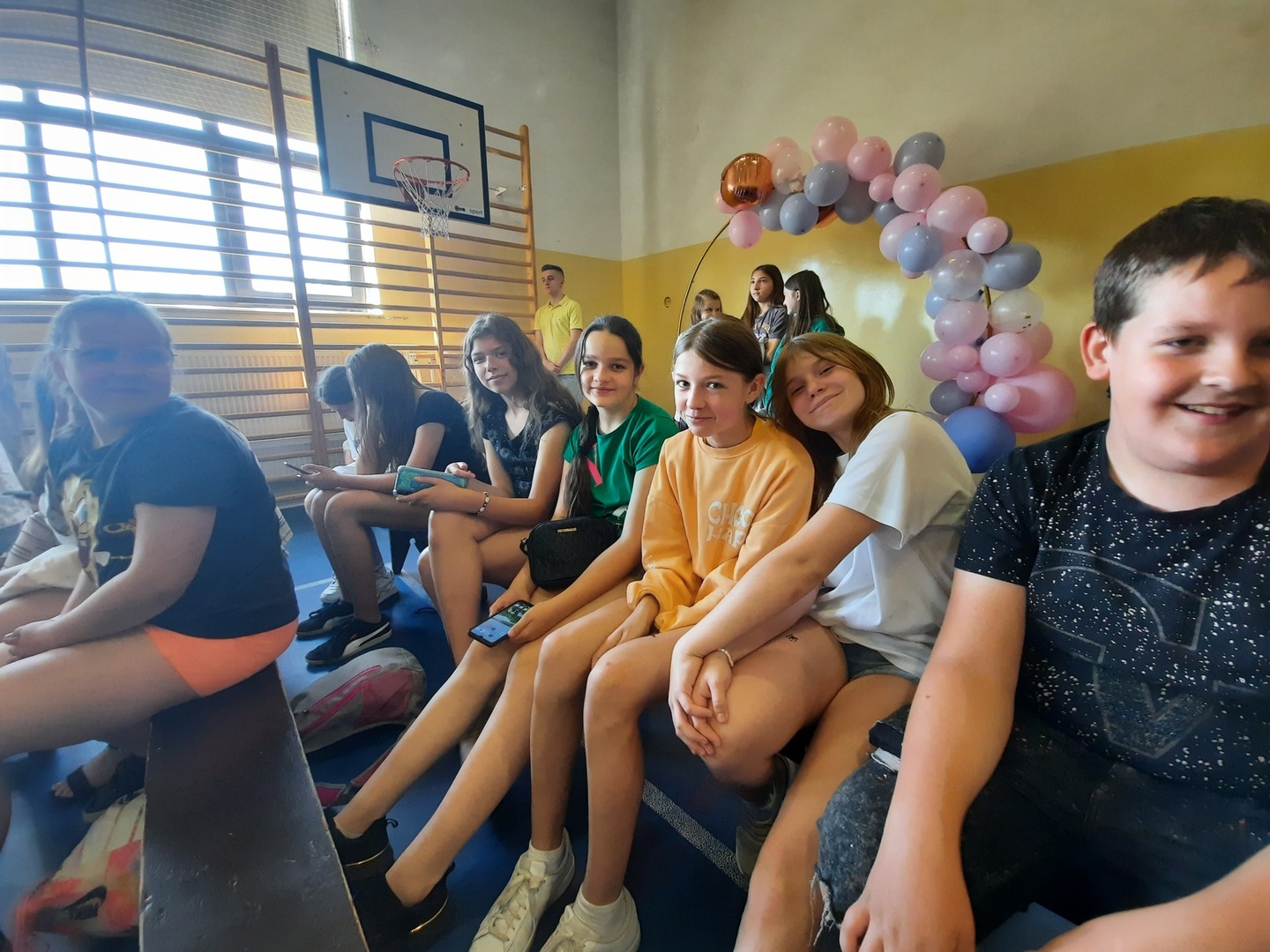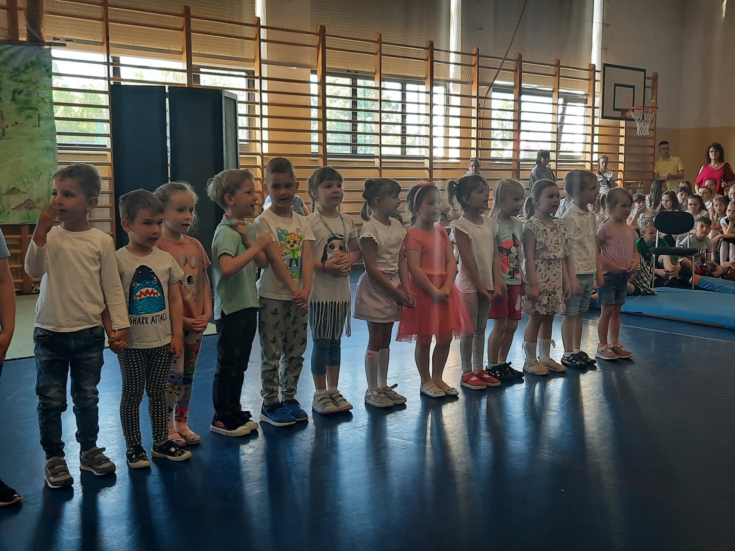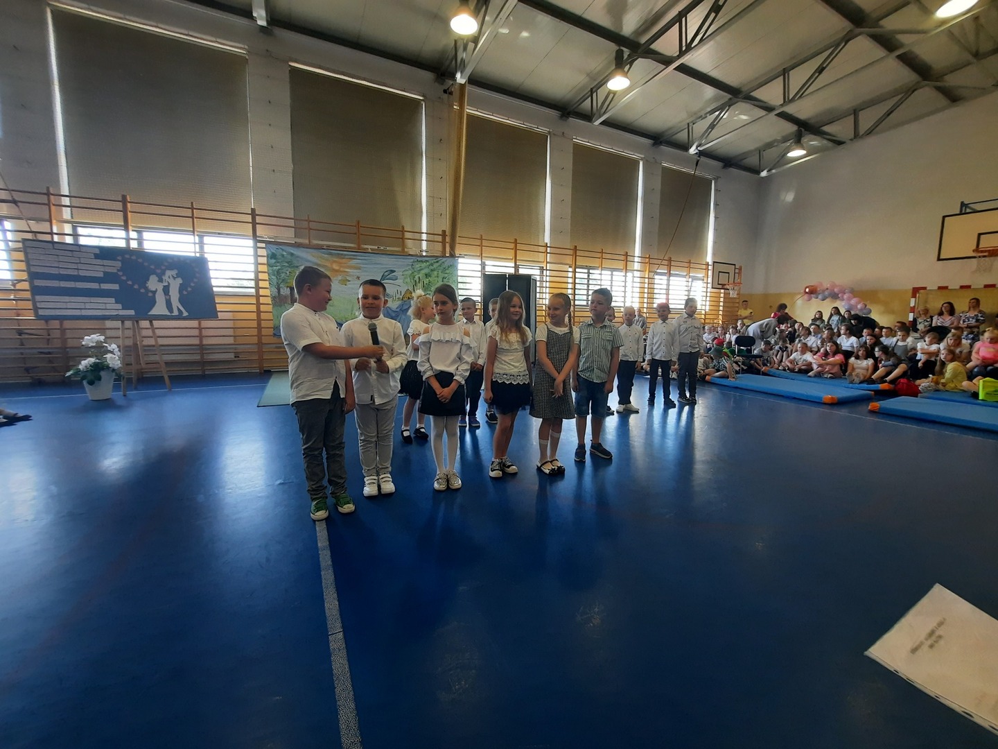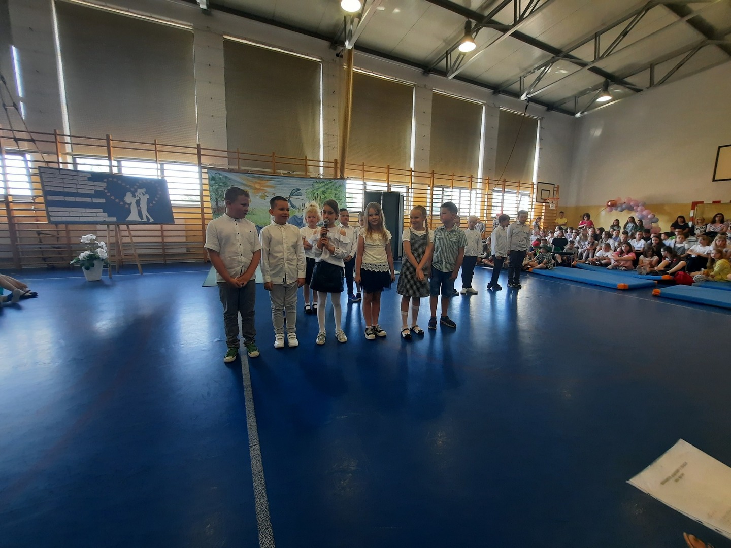 1 czerwca 2023 r. w naszej szkole obchodziliśmy Dzień Rodziny. Niezwykle ciekawie zaplanowano spędzenie tego dnia na terenie naszej szkoły. Świętowanie rozpoczęliśmy od uroczystej akademii w wykonaniu klas młodszych i przedszkolaków. Dzieci chcąc uczcić Dzień Mamy i Taty przygotowały wiersze, piosenki, tańce oraz najpiękniejsze życzenia płynące prosto z ich serc. Na twarzach rodziców było widać dumę, radość i wzruszenie. Po części artystycznej wszyscy udaliśmy się na wspólne świętowanie na dwór, gdzie od samego rana rozbrzmiewała wesoła muzyka. Na dzieci czekało tam wiele atrakcji m.in. barwny dmuchaniec, balonowa fotobudka czy salon urody, gdzie można było zrobić sobie tatuaż, makijaż oraz fryzurę. Tego dnia odbyły się również: Turniej szachowy, Turniej szkolny piłki nożnej, Biegi krótkie o Puchar Dyrektora Szkoły oraz szkolny konkurs „Mistrz układania kostki Rubika”. Aby jeszcze bardziej urozmaicić ten dzień uczniowie starszych klas mogli pograć w ulubione gry komputerowe. Całość imprezy dopełnił poczęstunek przygotowany przez rodziców. Uroczystość przebiegała w miłej i radosnej atmosferze. W przygotowanie i przebieg Dnia Rodziny aktywnie włączyli się rodzice, którym bardzo serdecznie dziękujemy. Wszystkim dzieciom życzymy słoneczka na każdy dzień