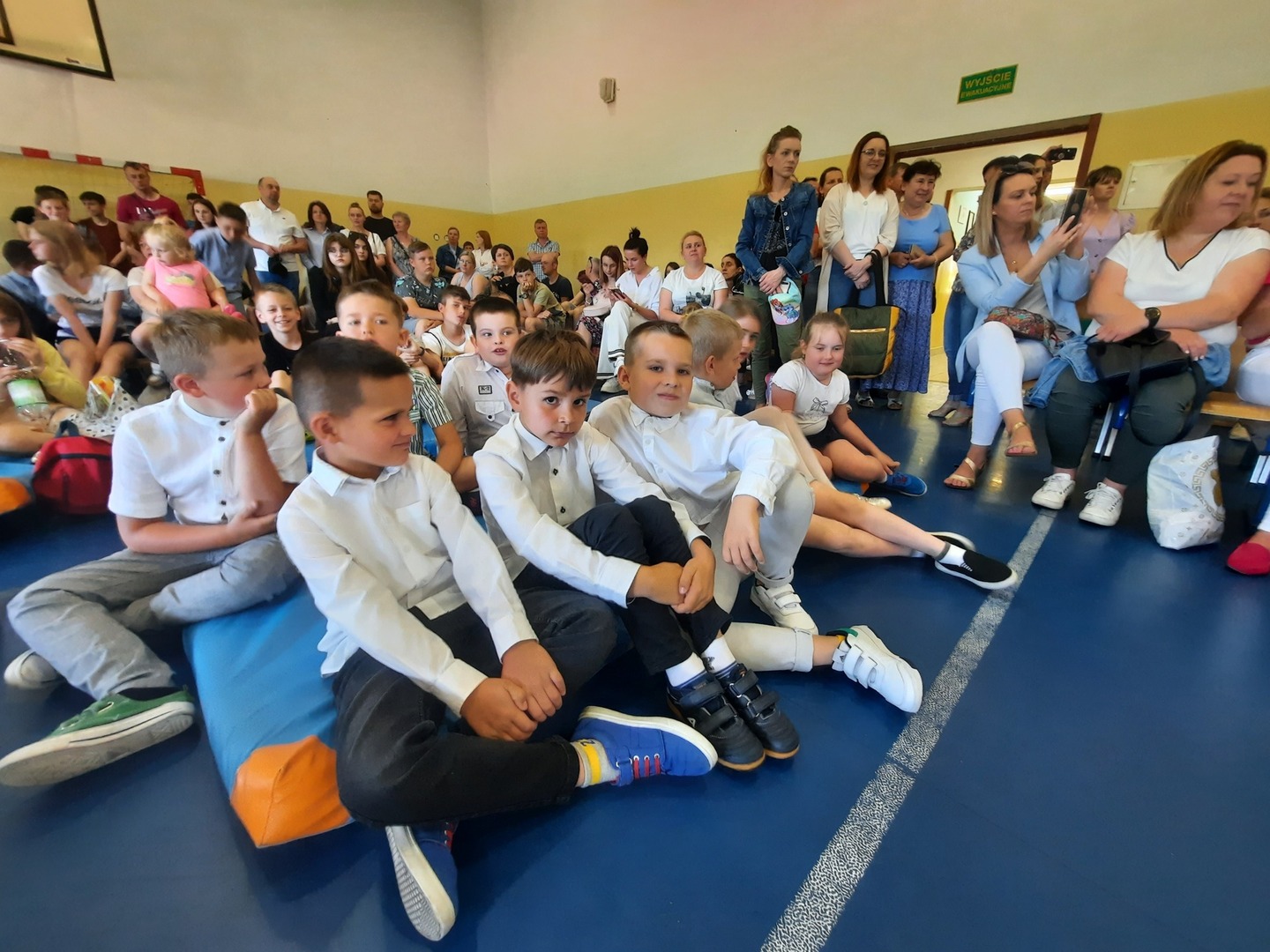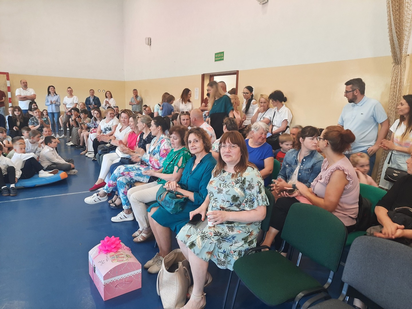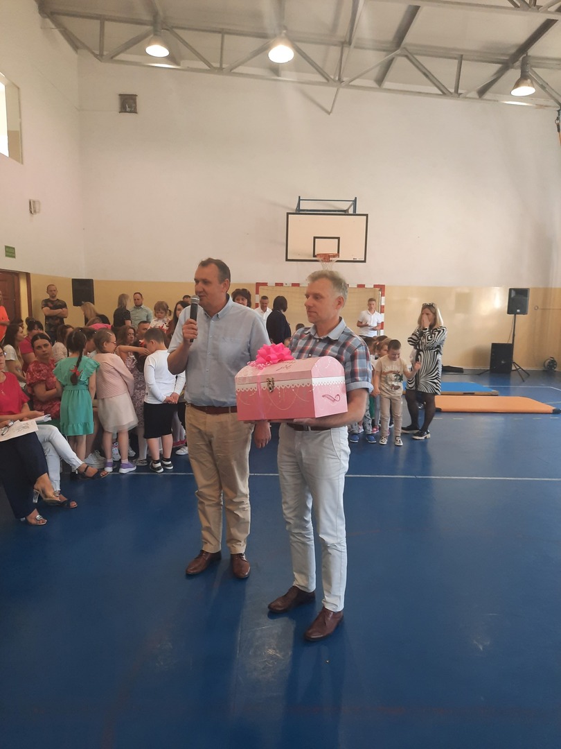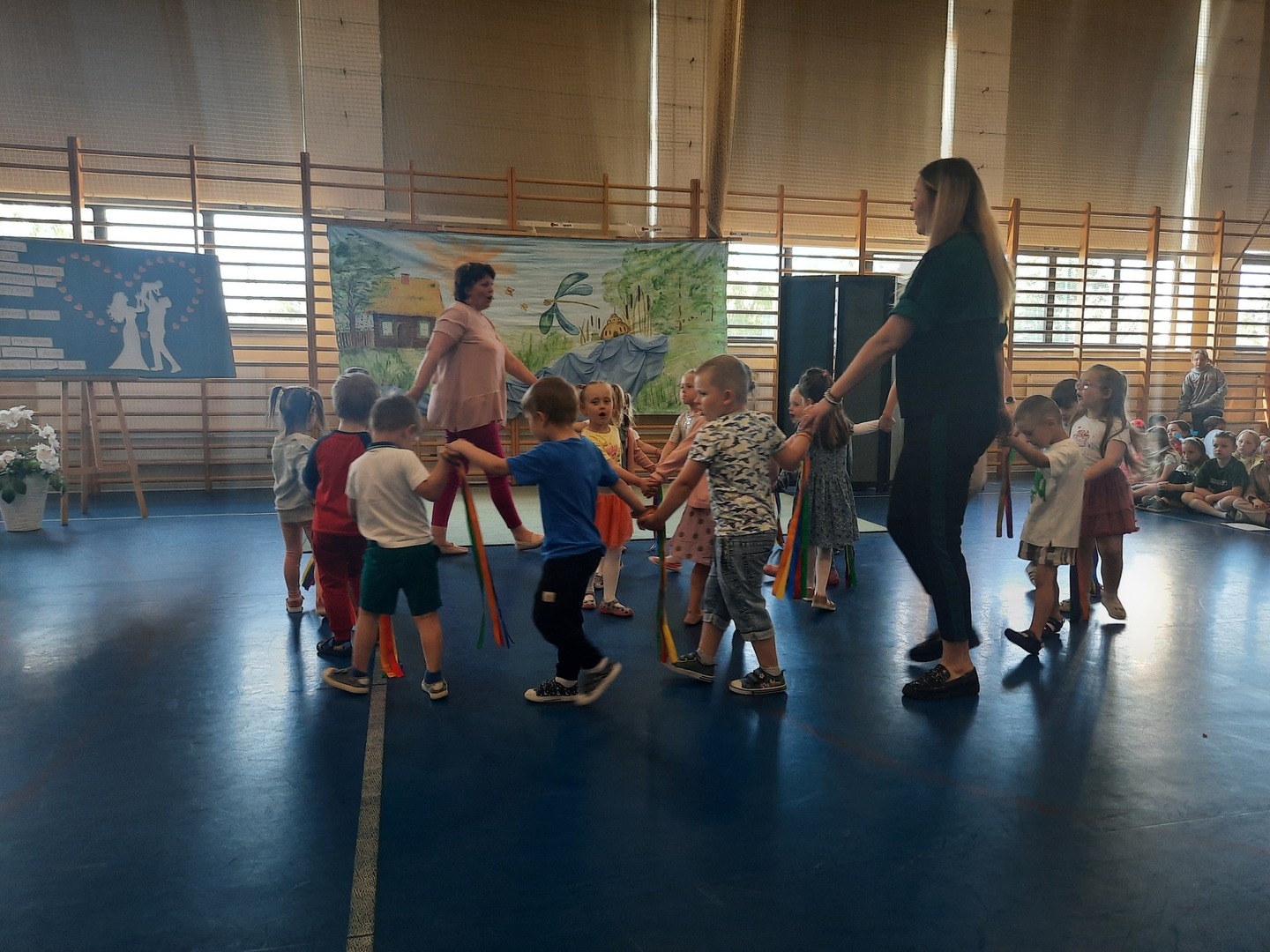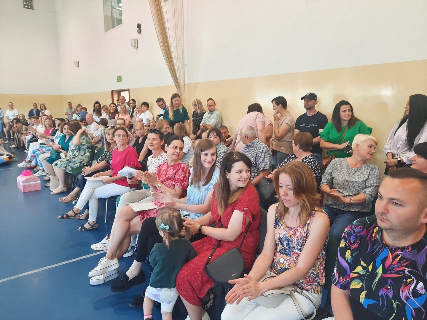 1 czerwca 2023 r. w naszej szkole obchodziliśmy Dzień Rodziny. Niezwykle ciekawie zaplanowano spędzenie tego dnia na terenie naszej szkoły. Świętowanie rozpoczęliśmy od uroczystej akademii w wykonaniu klas młodszych i przedszkolaków. Dzieci chcąc uczcić Dzień Mamy i Taty przygotowały wiersze, piosenki, tańce oraz najpiękniejsze życzenia płynące prosto z ich serc. Na twarzach rodziców było widać dumę, radość i wzruszenie. Po części artystycznej wszyscy udaliśmy się na wspólne świętowanie na dwór, gdzie od samego rana rozbrzmiewała wesoła muzyka. Na dzieci czekało tam wiele atrakcji m.in. barwny dmuchaniec, balonowa fotobudka czy salon urody, gdzie można było zrobić sobie tatuaż, makijaż oraz fryzurę. Tego dnia odbyły się również: Turniej szachowy, Turniej szkolny piłki nożnej, Biegi krótkie o Puchar Dyrektora Szkoły oraz szkolny konkurs „Mistrz układania kostki Rubika”. Aby jeszcze bardziej urozmaicić ten dzień uczniowie starszych klas mogli pograć w ulubione gry komputerowe. Całość imprezy dopełnił poczęstunek przygotowany przez rodziców. Uroczystość przebiegała w miłej i radosnej atmosferze. W przygotowanie i przebieg Dnia Rodziny aktywnie włączyli się rodzice, którym bardzo serdecznie dziękujemy. Wszystkim dzieciom życzymy słoneczka na każdy dzień