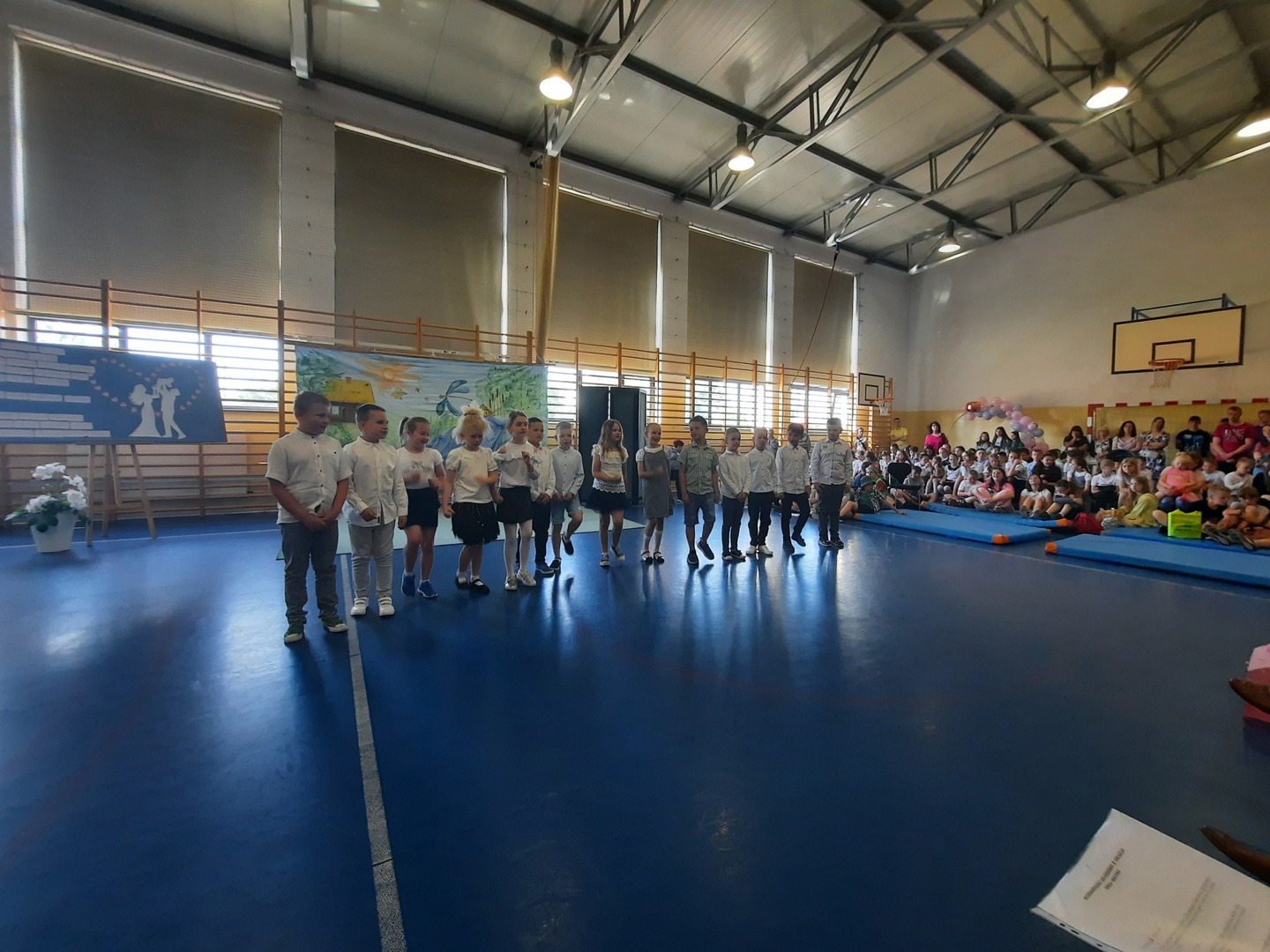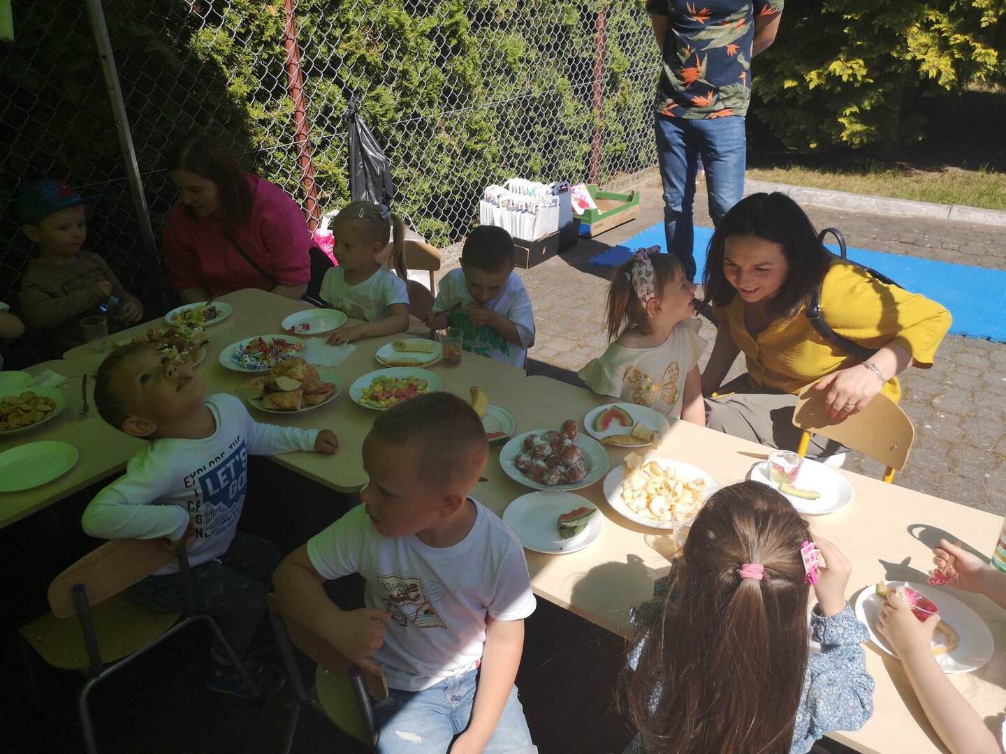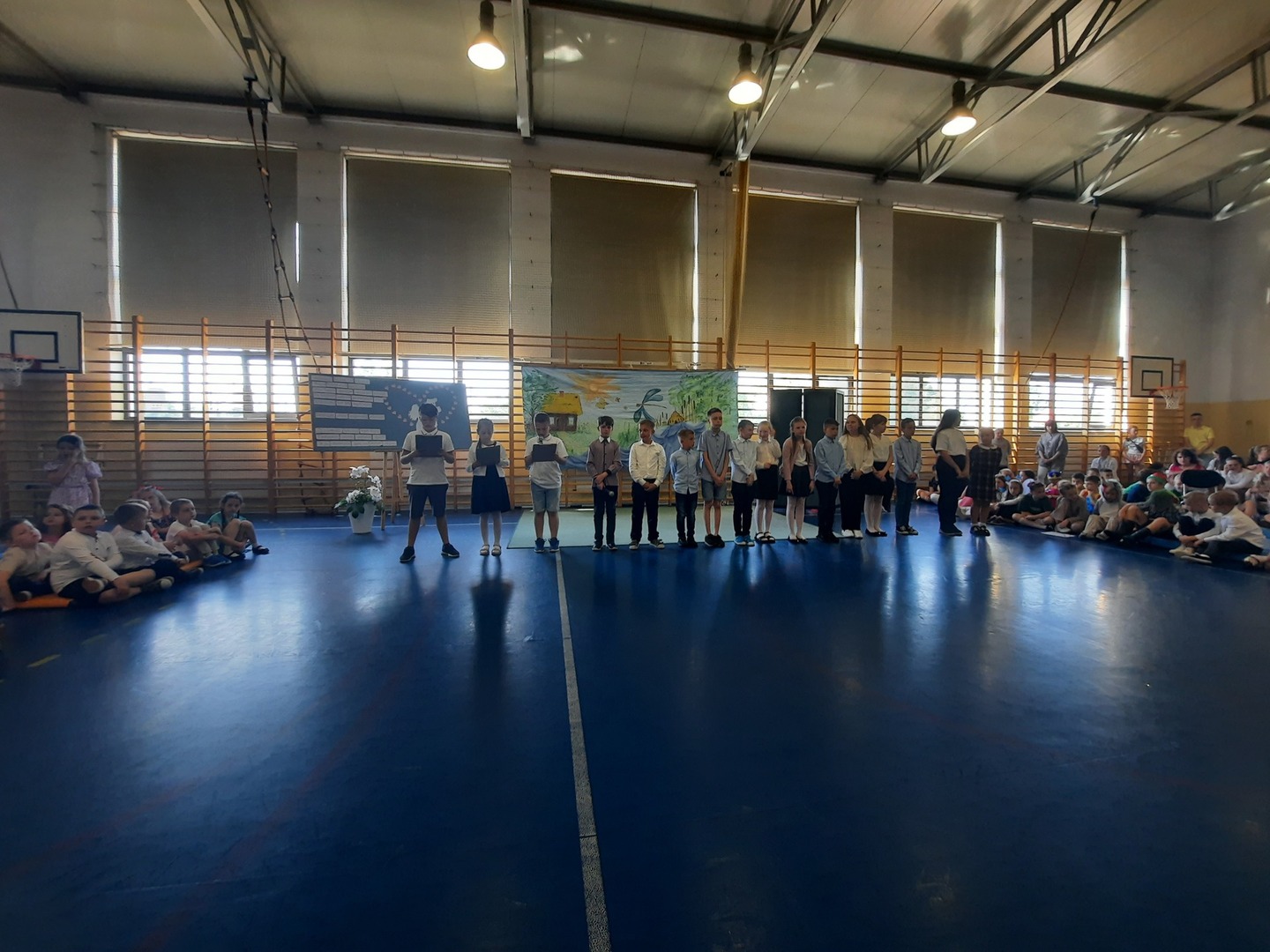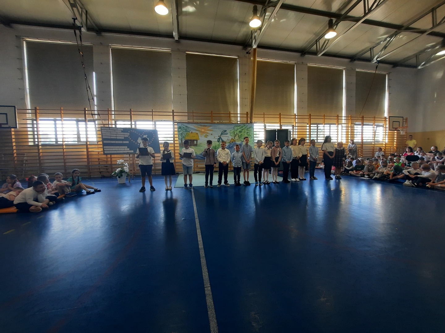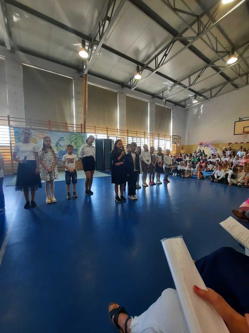 1 czerwca 2023 r. w naszej szkole obchodziliśmy Dzień Rodziny. Niezwykle ciekawie zaplanowano spędzenie tego dnia na terenie naszej szkoły. Świętowanie rozpoczęliśmy od uroczystej akademii w wykonaniu klas młodszych i przedszkolaków. Dzieci chcąc uczcić Dzień Mamy i Taty przygotowały wiersze, piosenki, tańce oraz najpiękniejsze życzenia płynące prosto z ich serc. Na twarzach rodziców było widać dumę, radość i wzruszenie. Po części artystycznej wszyscy udaliśmy się na wspólne świętowanie na dwór, gdzie od samego rana rozbrzmiewała wesoła muzyka. Na dzieci czekało tam wiele atrakcji m.in. barwny dmuchaniec, balonowa fotobudka czy salon urody, gdzie można było zrobić sobie tatuaż, makijaż oraz fryzurę. Tego dnia odbyły się również: Turniej szachowy, Turniej szkolny piłki nożnej, Biegi krótkie o Puchar Dyrektora Szkoły oraz szkolny konkurs „Mistrz układania kostki Rubika”. Aby jeszcze bardziej urozmaicić ten dzień uczniowie starszych klas mogli pograć w ulubione gry komputerowe. Całość imprezy dopełnił poczęstunek przygotowany przez rodziców. Uroczystość przebiegała w miłej i radosnej atmosferze. W przygotowanie i przebieg Dnia Rodziny aktywnie włączyli się rodzice, którym bardzo serdecznie dziękujemy. Wszystkim dzieciom życzymy słoneczka na każdy dzień