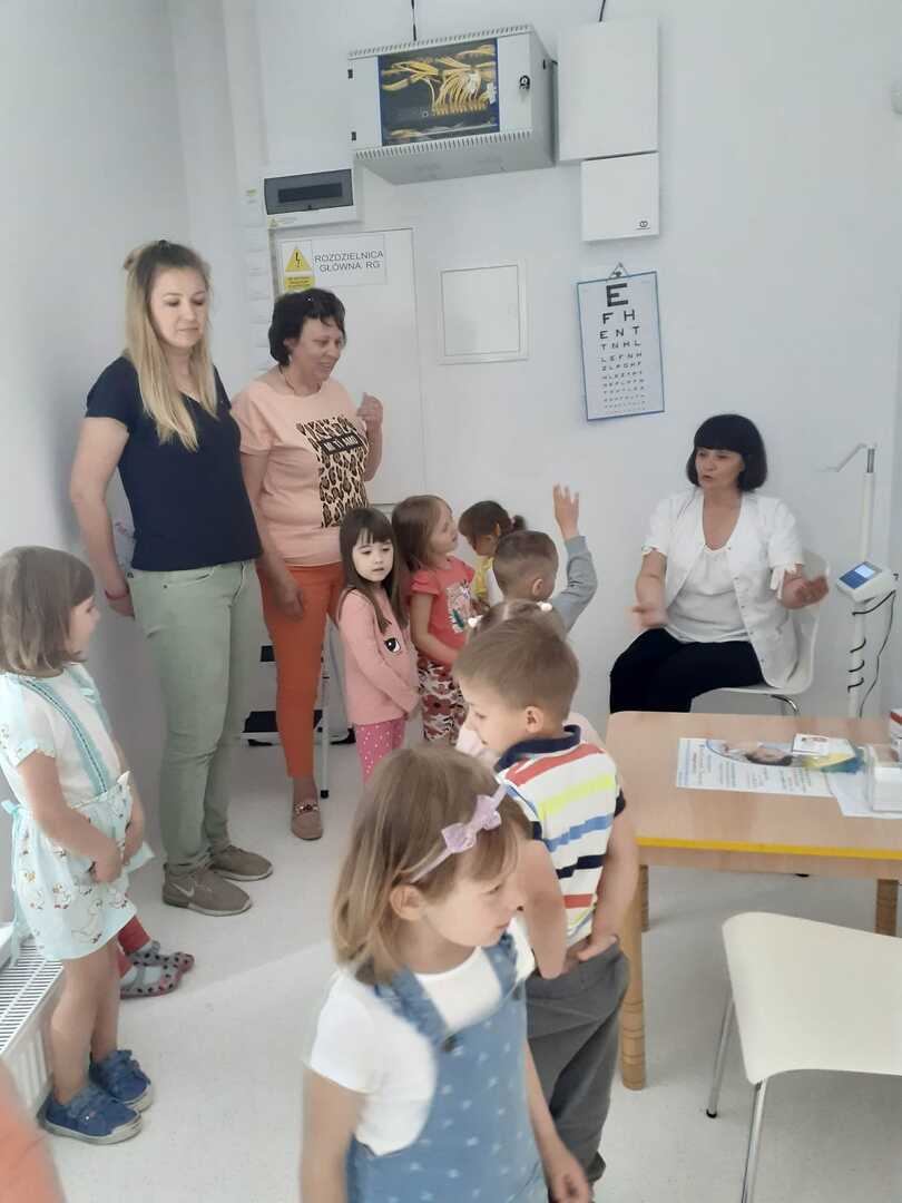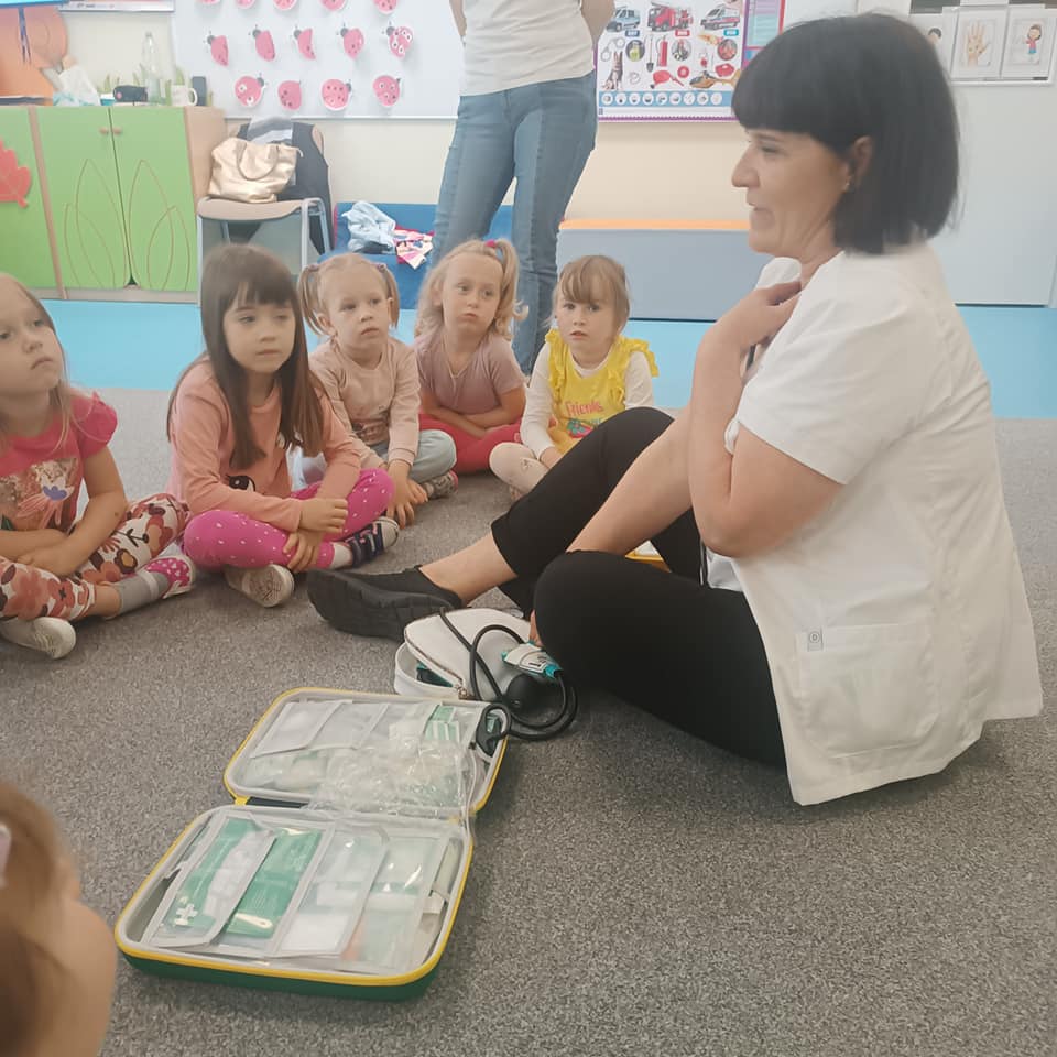 Czy moje serduszko pracuje prawidłowo? Odpowiedzi podczas zajęć udzieliła najmłodszym przedszkolakom pani pielęgniarka Beata Jarecka, która zademonstrowała w jakim celu i w jaki sposób korzystać z ciśnieniomierza mogą również dzieci. Dziękujemy za cenną lekcję i sprawny instruktaż.
