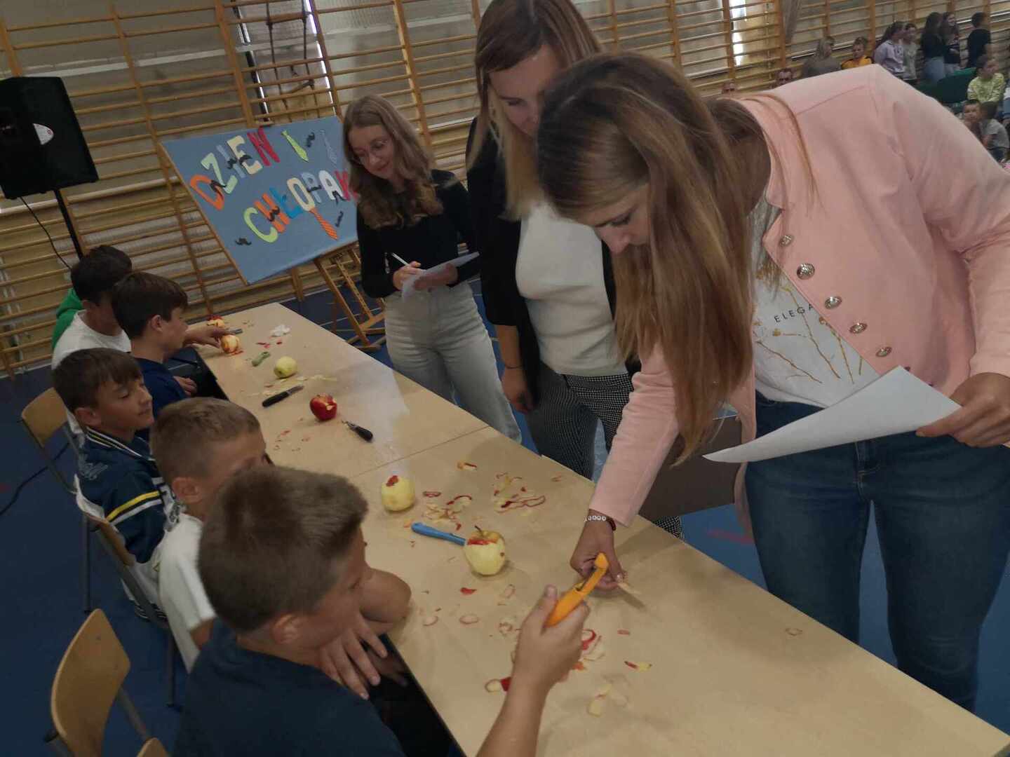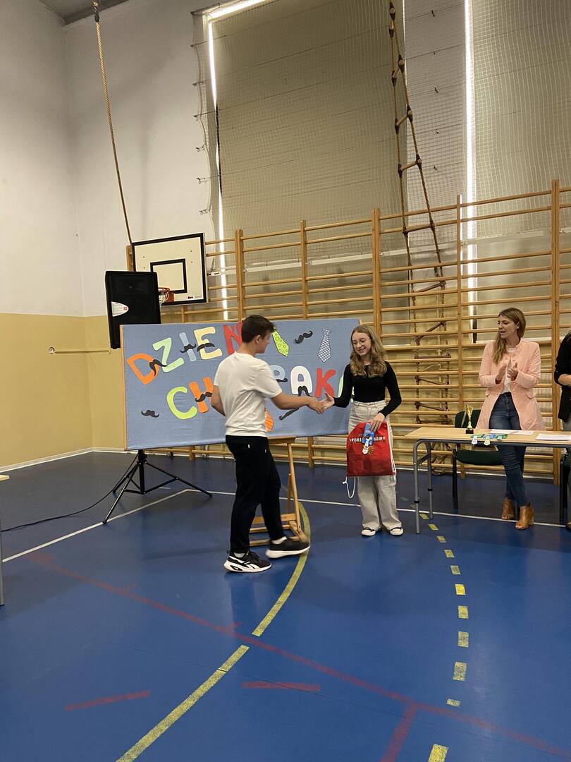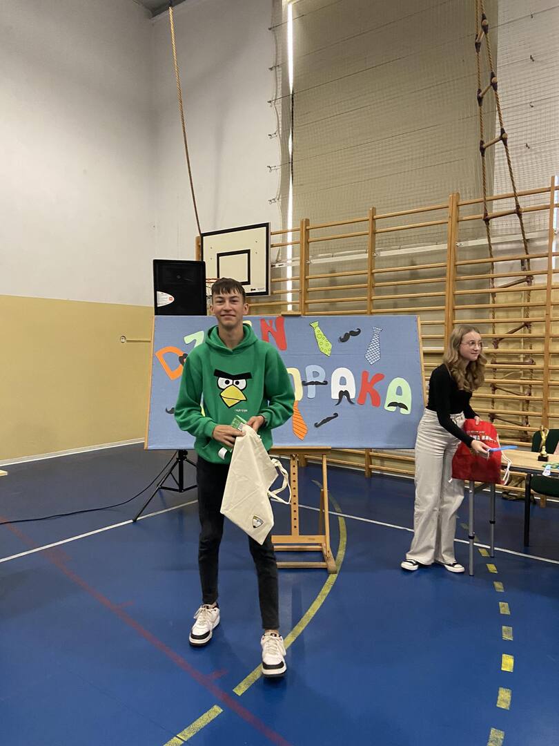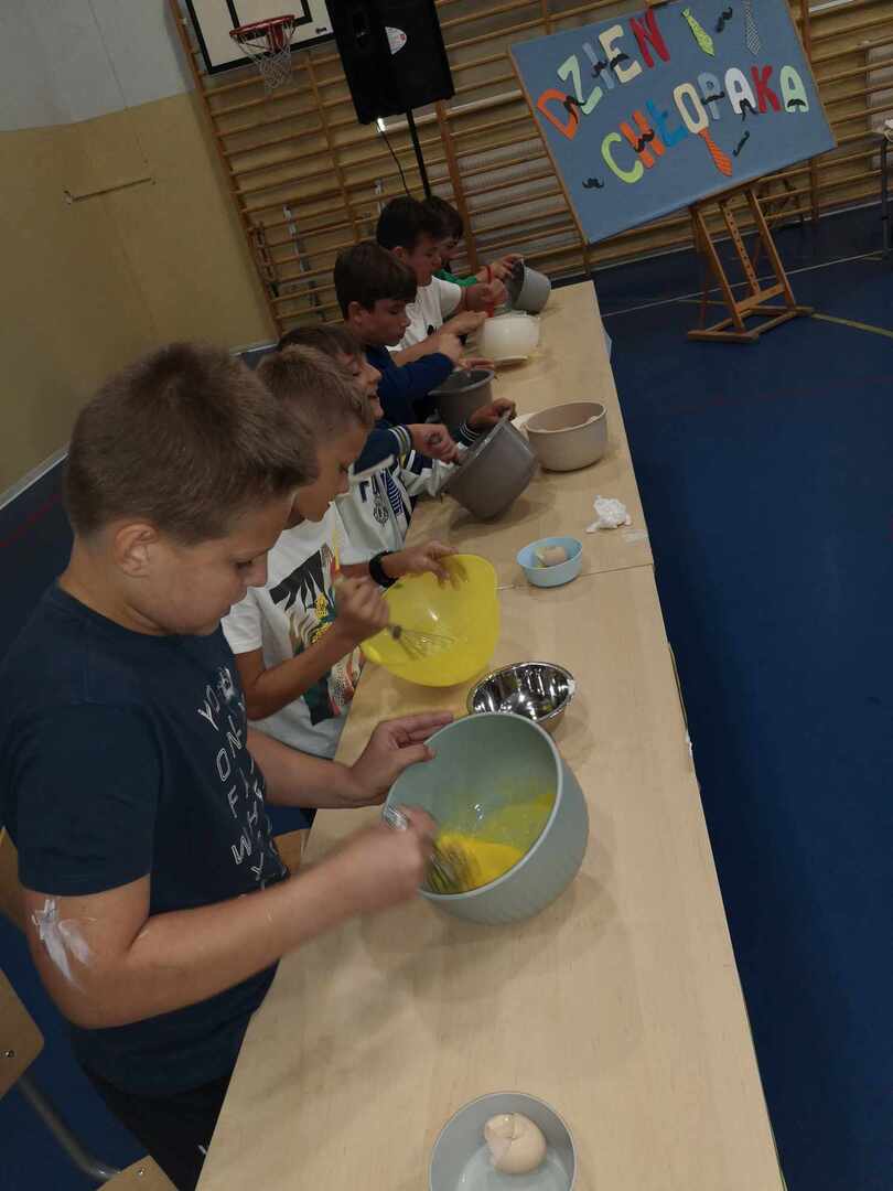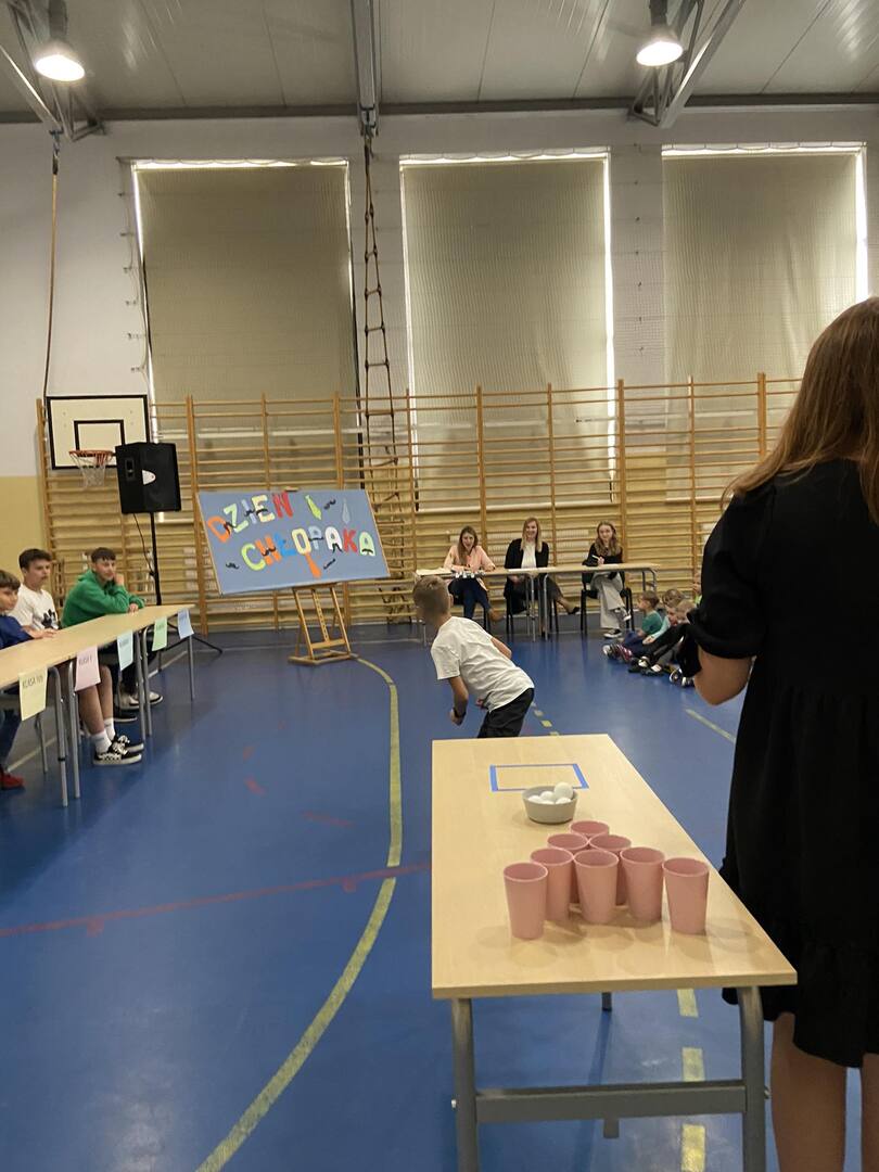 W dniu 2 października w naszej szkole odbył się Dzień Chłopaka, który zorganizowały uczennice klasy VIII wraz z nauczycielkami p. Kamilą Stańdo i p. Katarzyną Zglińską. Wybrani chłopcy z klas IV - VIII zmagali się o tytuł Super Chłopaka. Do pokonania mieli 8 konkurencji m.in. ubijanie białka, rozpoznawanie marek samochodów, rzucanie piłeczką pingpongową do kubka czy obieranie jabłka. Wszyscy dzielnie walczyli o zdobycie tytułu. Śmiechom i wiwatom nie było końca. Tytuł Super Chłopaka uzyskał Kacper Łopatka z klasy VII, II miejsce zajął Kacper Socha z klasy VIII, natomiast III miejsce Kacper Wlaczak z klasy IVb. Wszystkim chłopcom gratulujemy.
