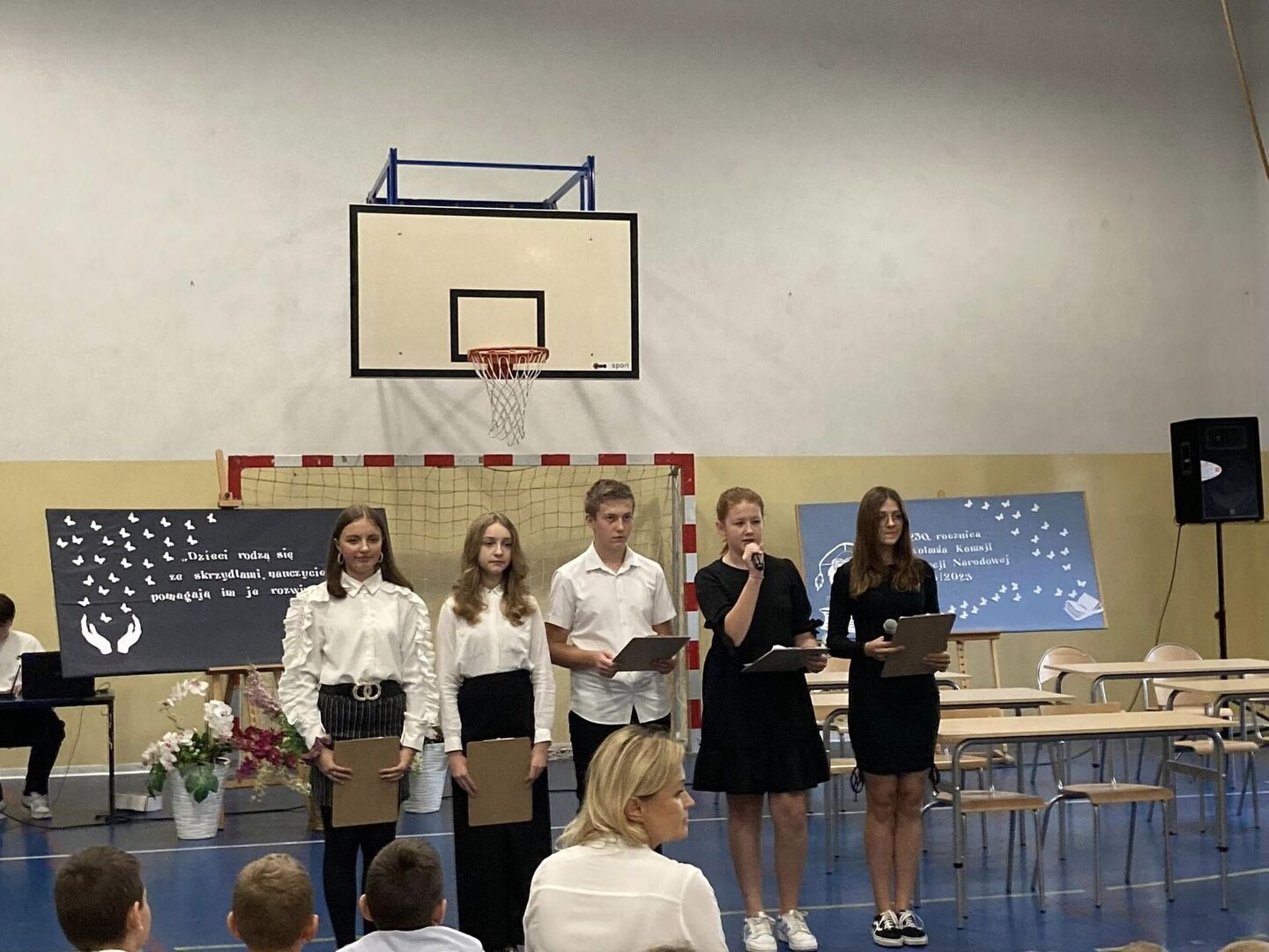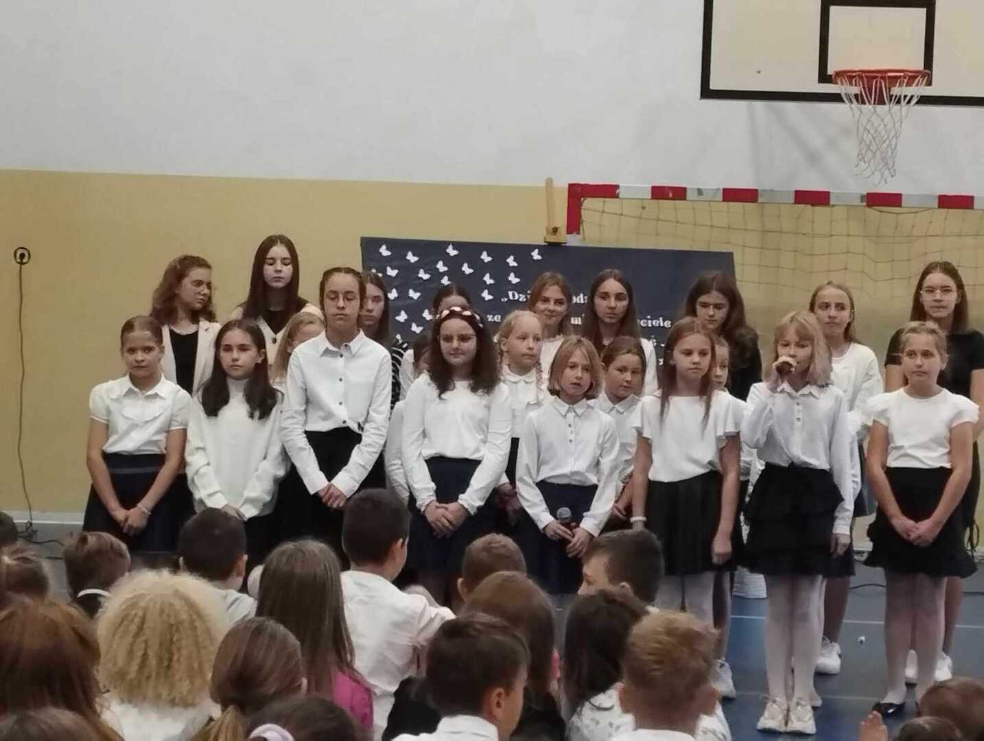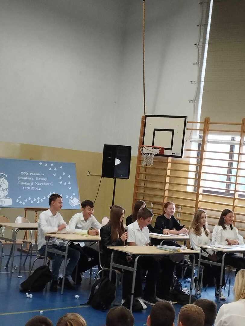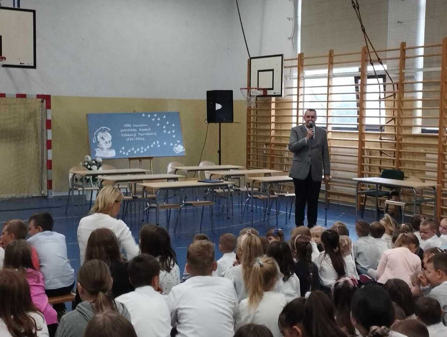 13 października 2023 obchodziliśmy 250. rocznicę powstania Komisji Edukacji Narodowej. W naszej szkole był to dzień pełen pozytywnych wzruszeń. O godzinie 9.15 zgromadzonych na uroczystości powitał Pan Dyrektor – Mariusz Muszyński. Po odśpiewaniu hymnu, przyszedł czas na występy artystyczne uczniów. Przedstawienie przygotowali uczniowie klasy 5 i 8 pod nadzorem Joanny Jędrzejczyk. Dzieci z młodszych klas śpiewały piosenki. Wiele ciepłych i miłych życzeń popłynęło w kierunku naszych nauczycieli. Na zakończenie akademii, uczniowie zaśpiewali swoim nauczycielom „Sto lat” i rozdały słodkie upominki przygotowane przez Radę Rodziców.