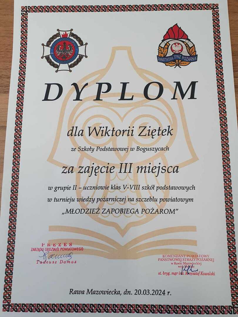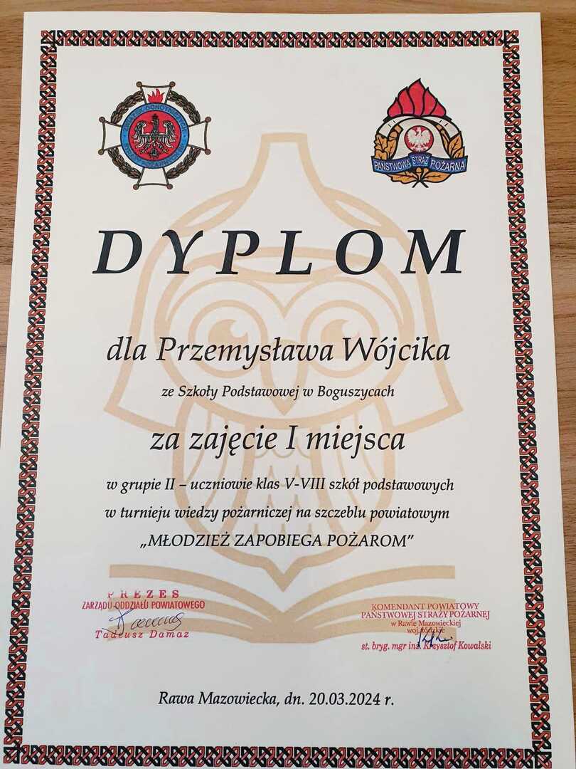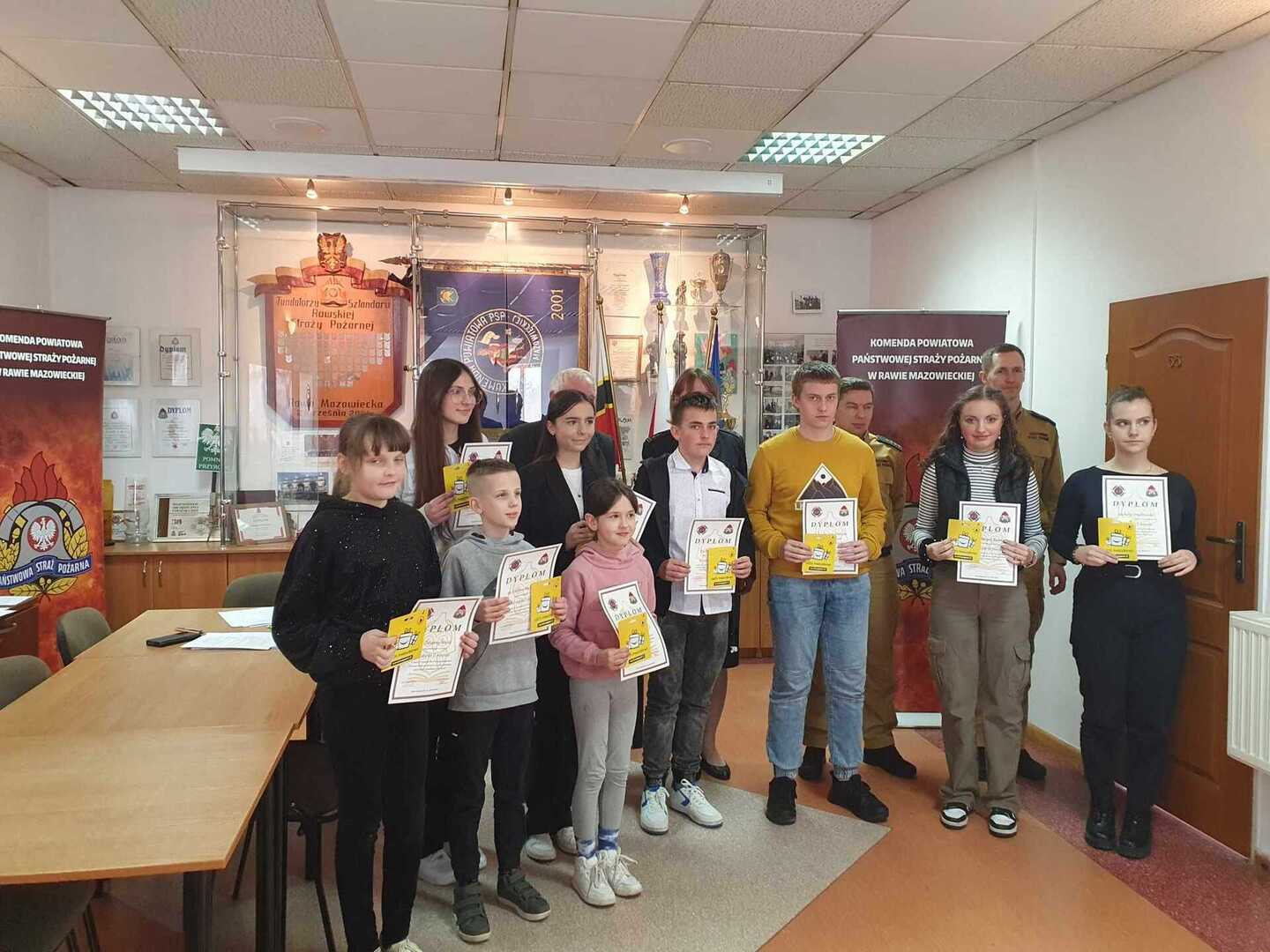 W środę 20 marca w Państwowej Straży Pożarnej w Rawie Mazowieckiej odbył się Powiatowy Turniej Wiedzy Pożarniczej. Naszą szkołę reprezentowali uczniowie klasy VIII: Hubert Filipczak, Przemek Wójcik, który zajął I miejsce, oraz Wiktoria Ziętek, która zajęła III miejsce. Przemek zakwalifikował się do turnieju wojewódzkiego, który odbędzie się w maju. Brawo . Serdecznie gratulujemy, dziękujemy za świetne wyniki i trzymamy kciuki za następny etap.