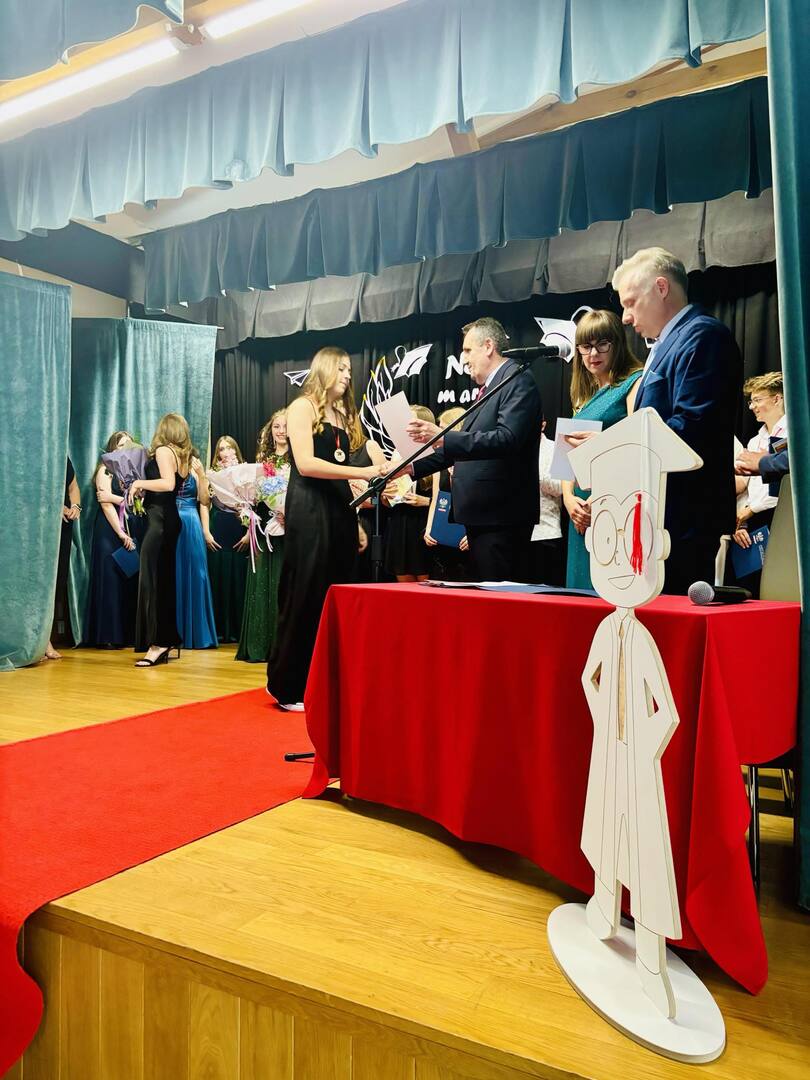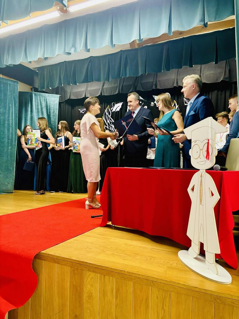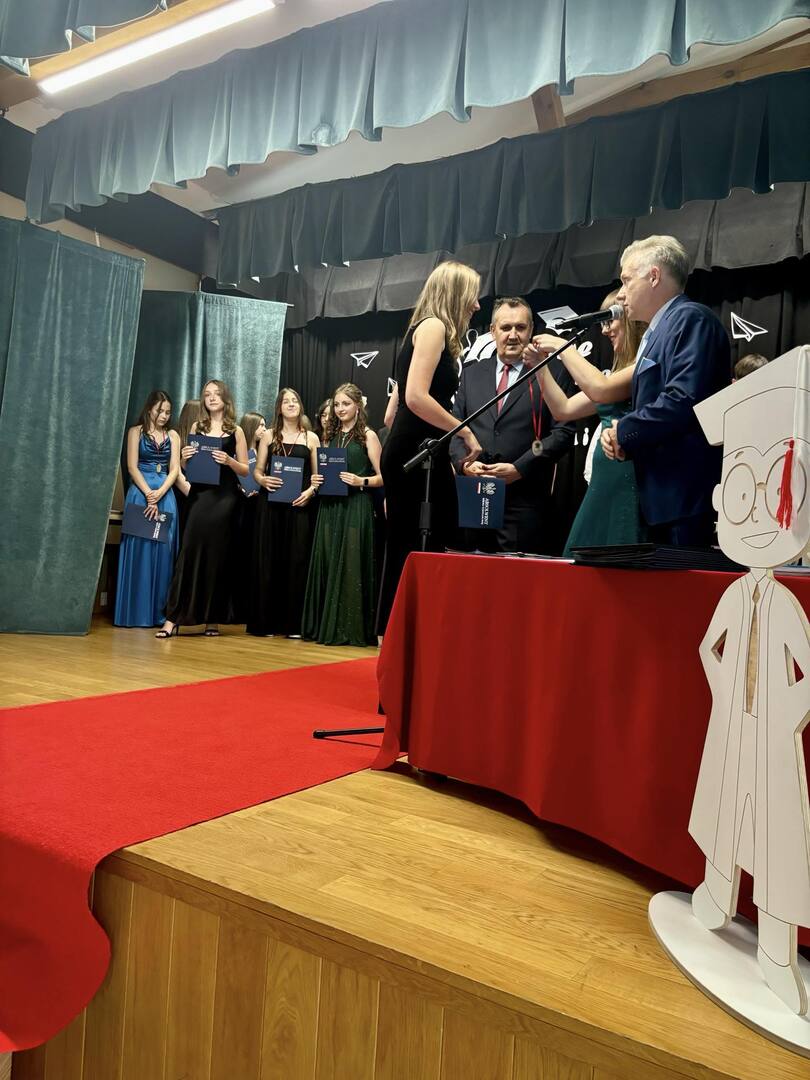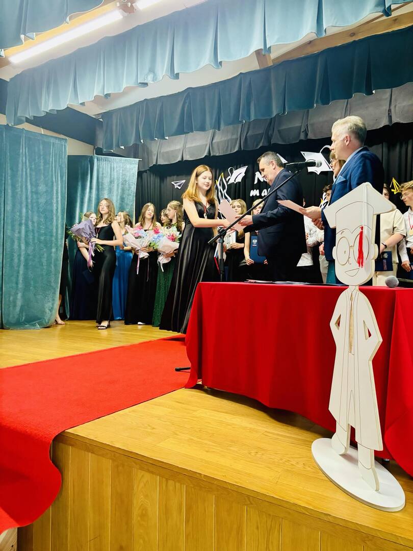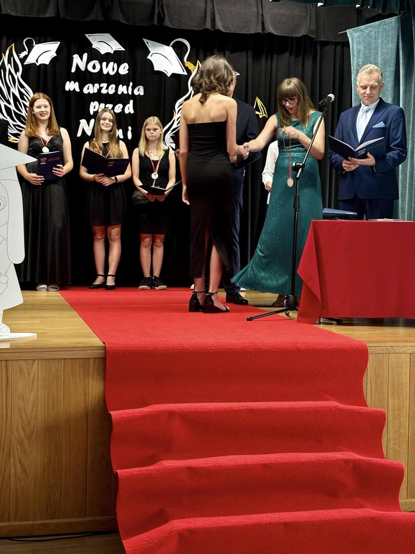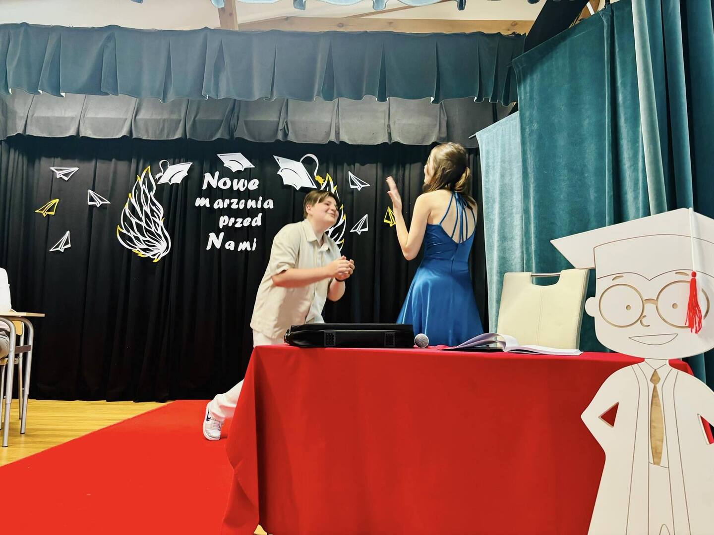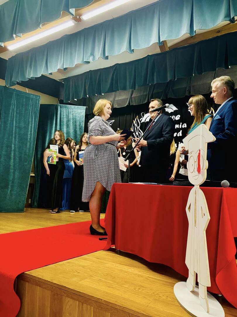Kolejnym punktem programu było rozdanie dyplomów absolwentom, nagród oraz stypendiów za bardzo dobre wyniki w nauce i wzorowe zachowanie. Nie zabrakło również podziękowań dla rodziców. Po oficjalnej części uczniowie zaprezentowali humorystyczne przedstawienie, które dostarczyło wszystkim wiele radości i śmiechu.
