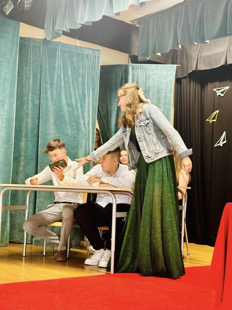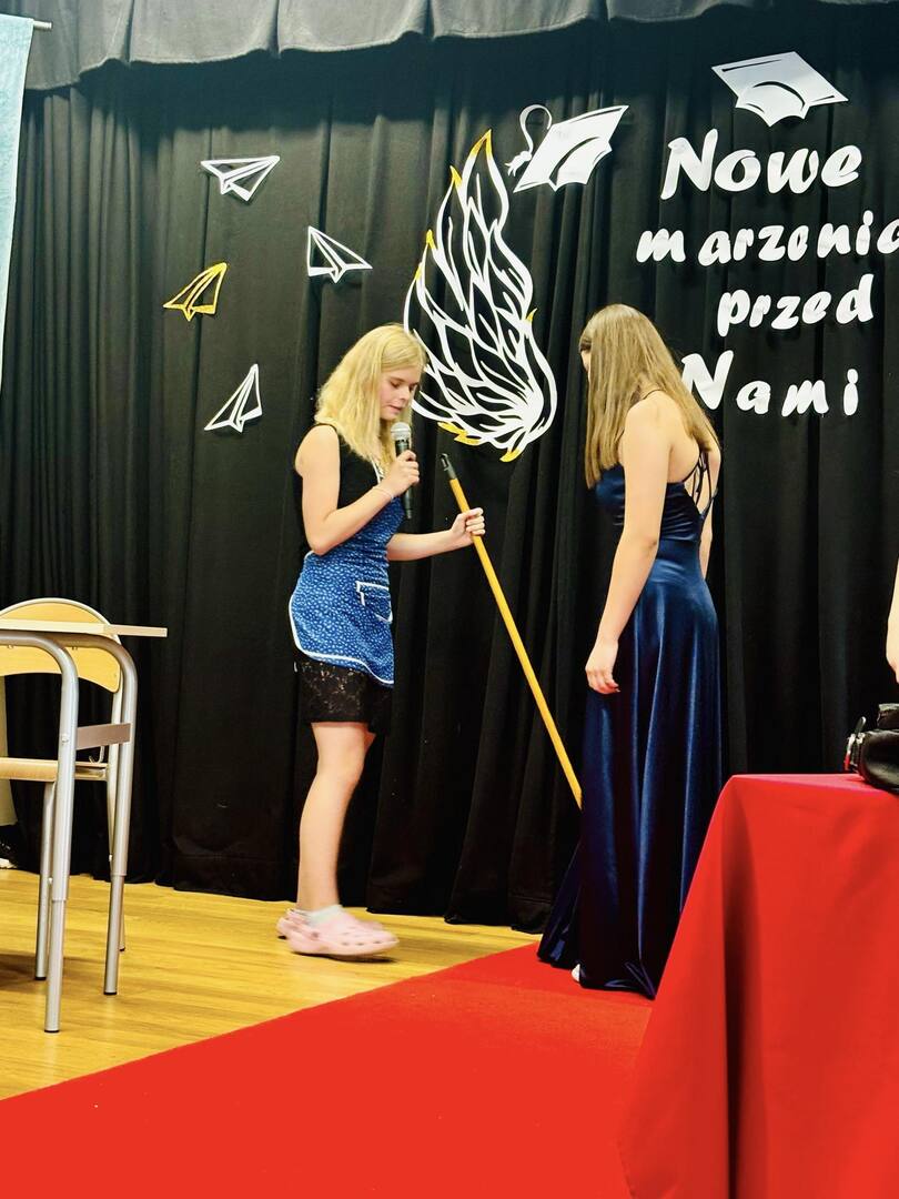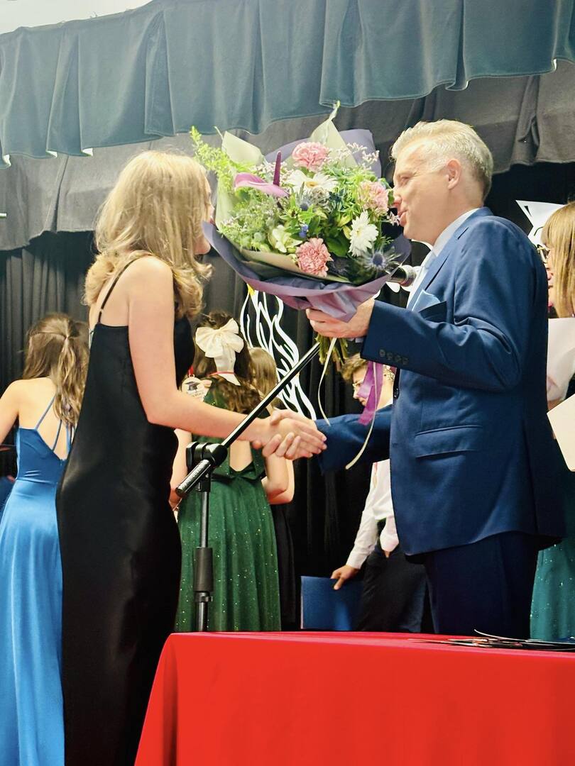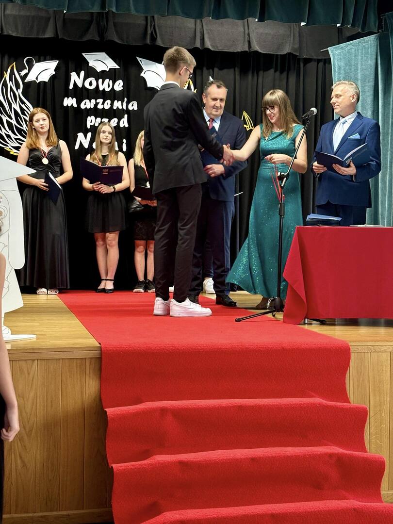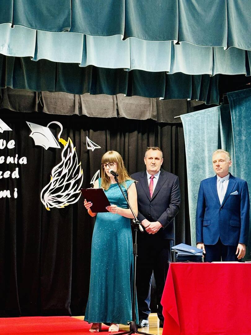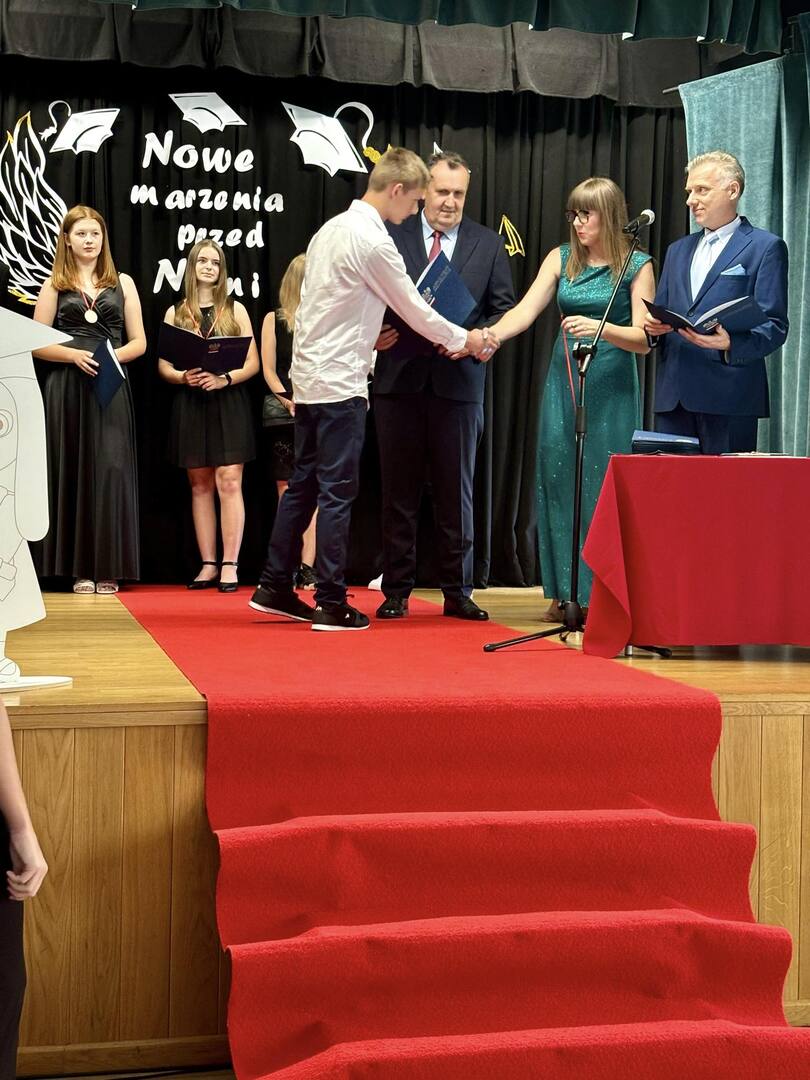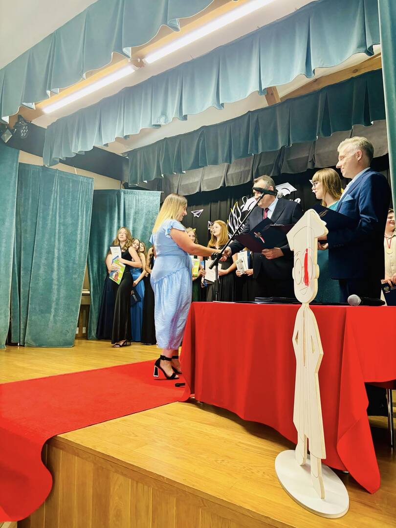 Kolejnym punktem programu było rozdanie dyplomów absolwentom, nagród oraz stypendiów za bardzo dobre wyniki w nauce i wzorowe zachowanie. Nie zabrakło również podziękowań dla rodziców. Po oficjalnej części uczniowie zaprezentowali humorystyczne przedstawienie, które dostarczyło wszystkim wiele radości i śmiechu.
