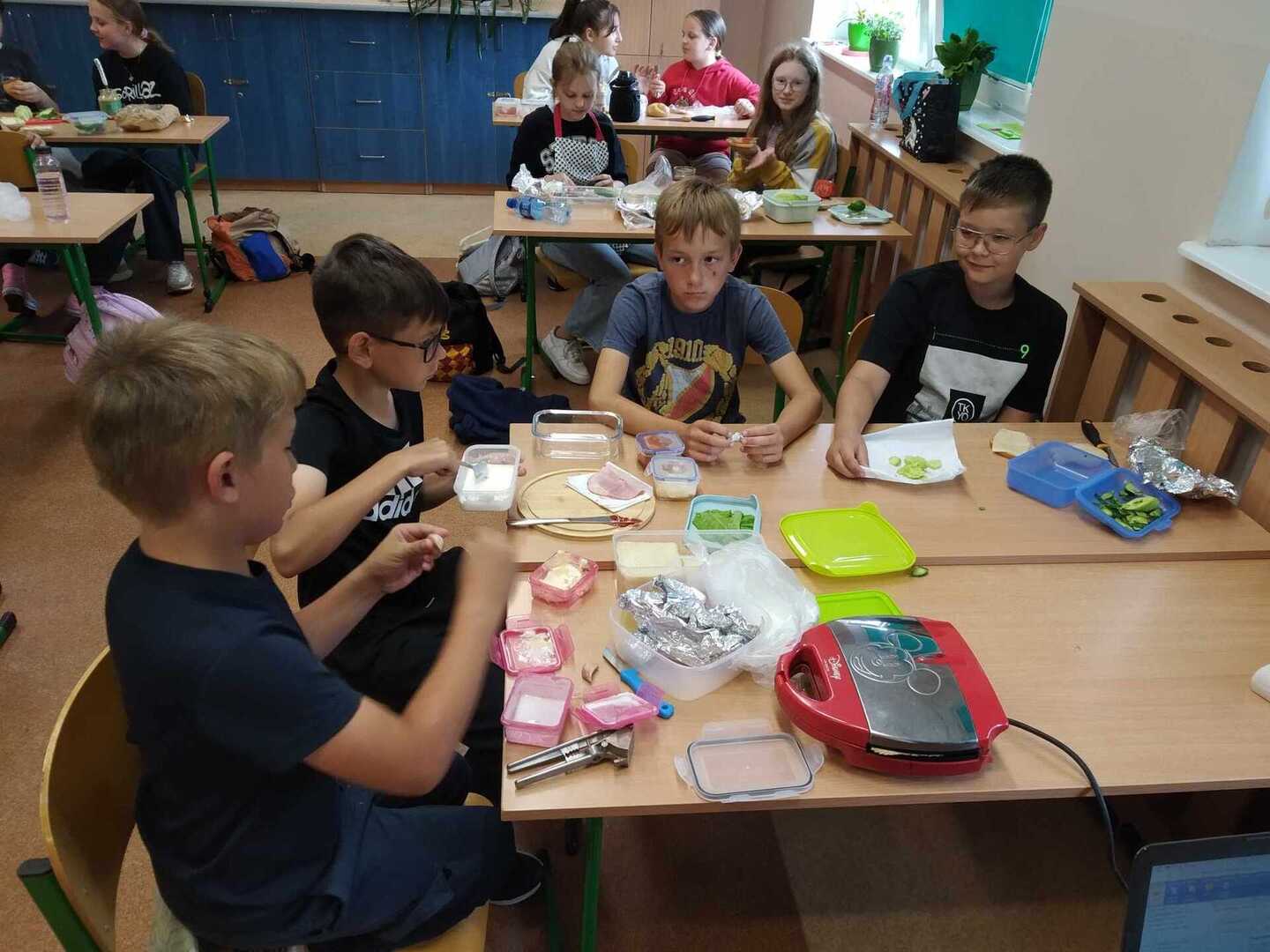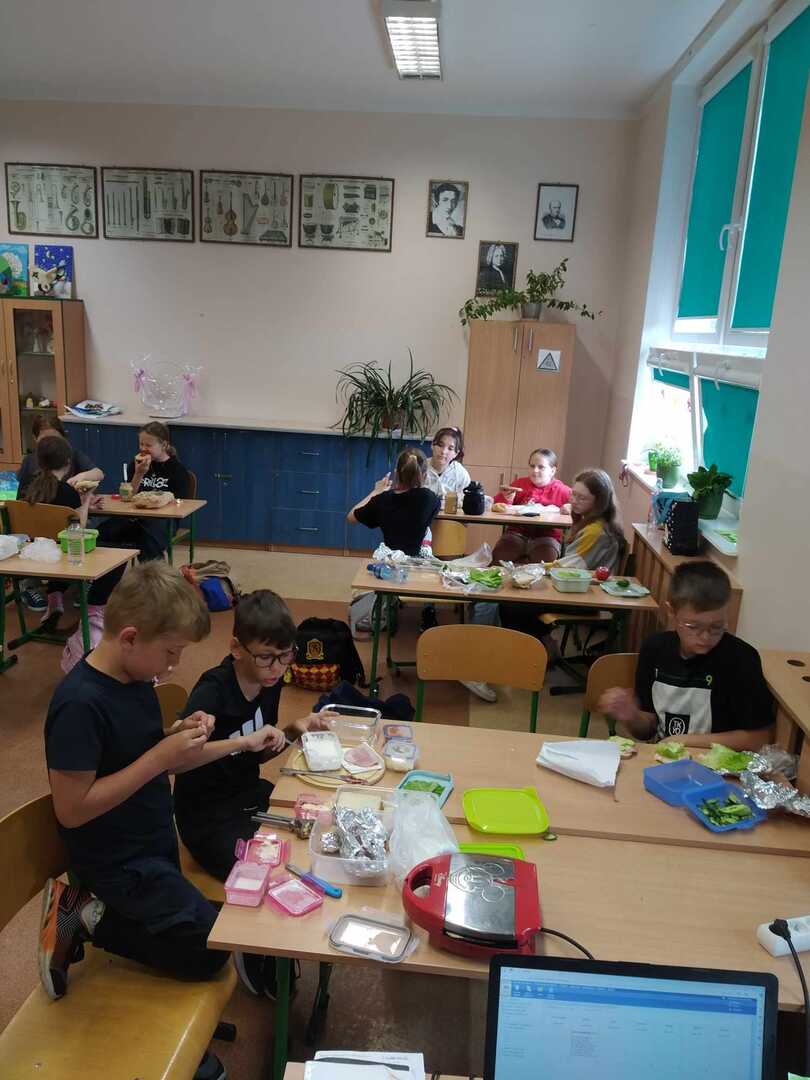 13 czerwca uczniowie klasy 4a mogli zaprezentować swoje umiejętności kulinarne przygotowując pyszne i zdrowe kanapki. Opowiadali również w języku angielskim z czego składa się ich kanapka.