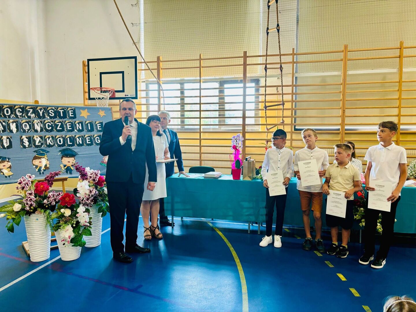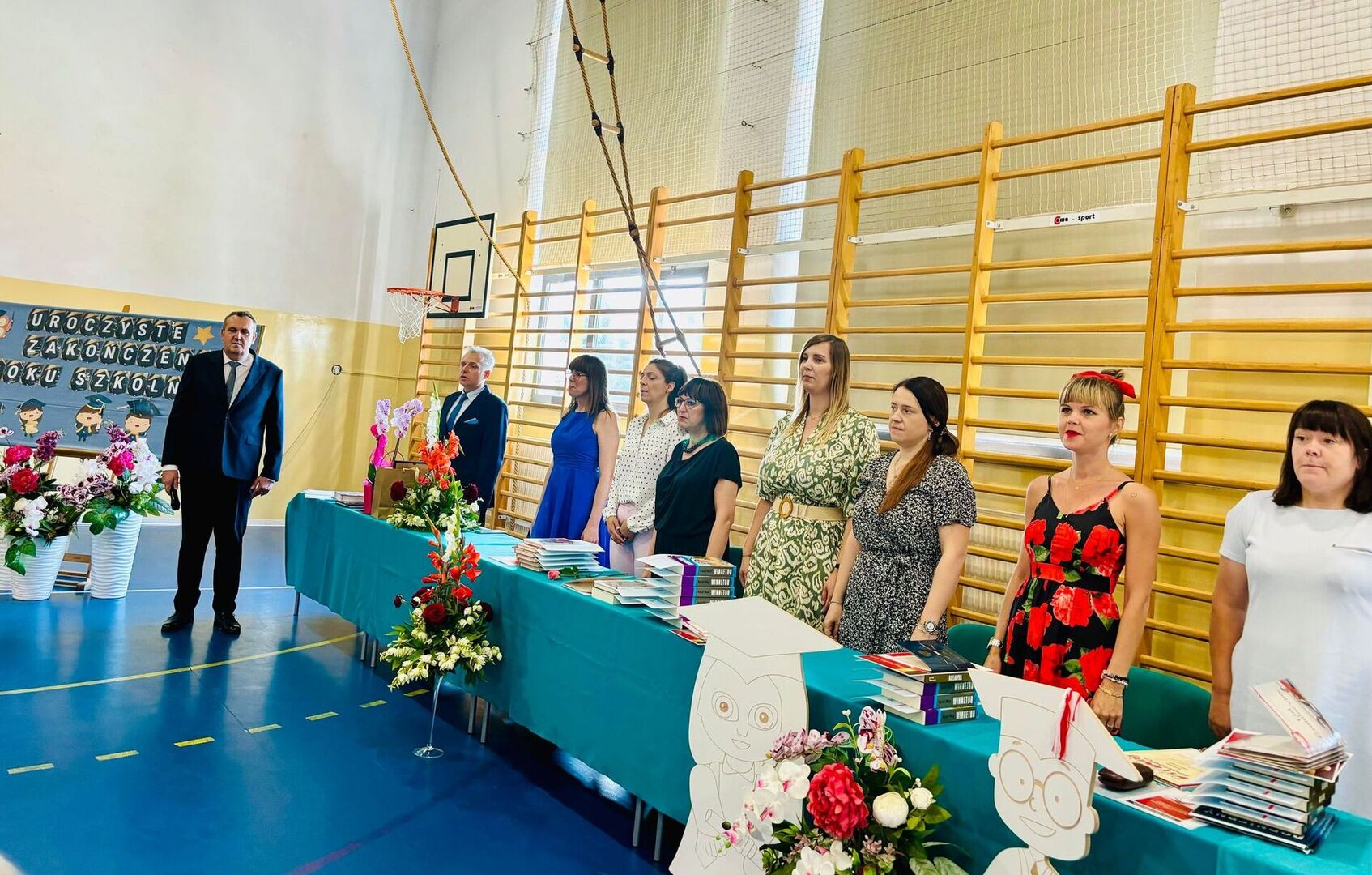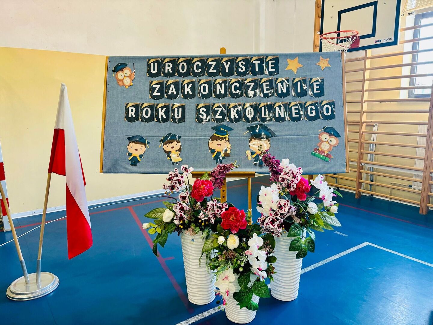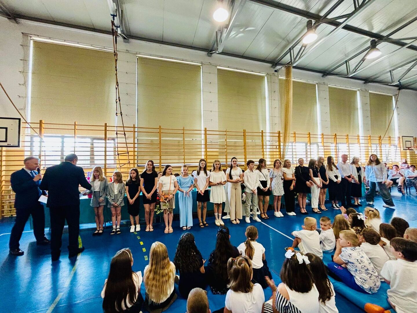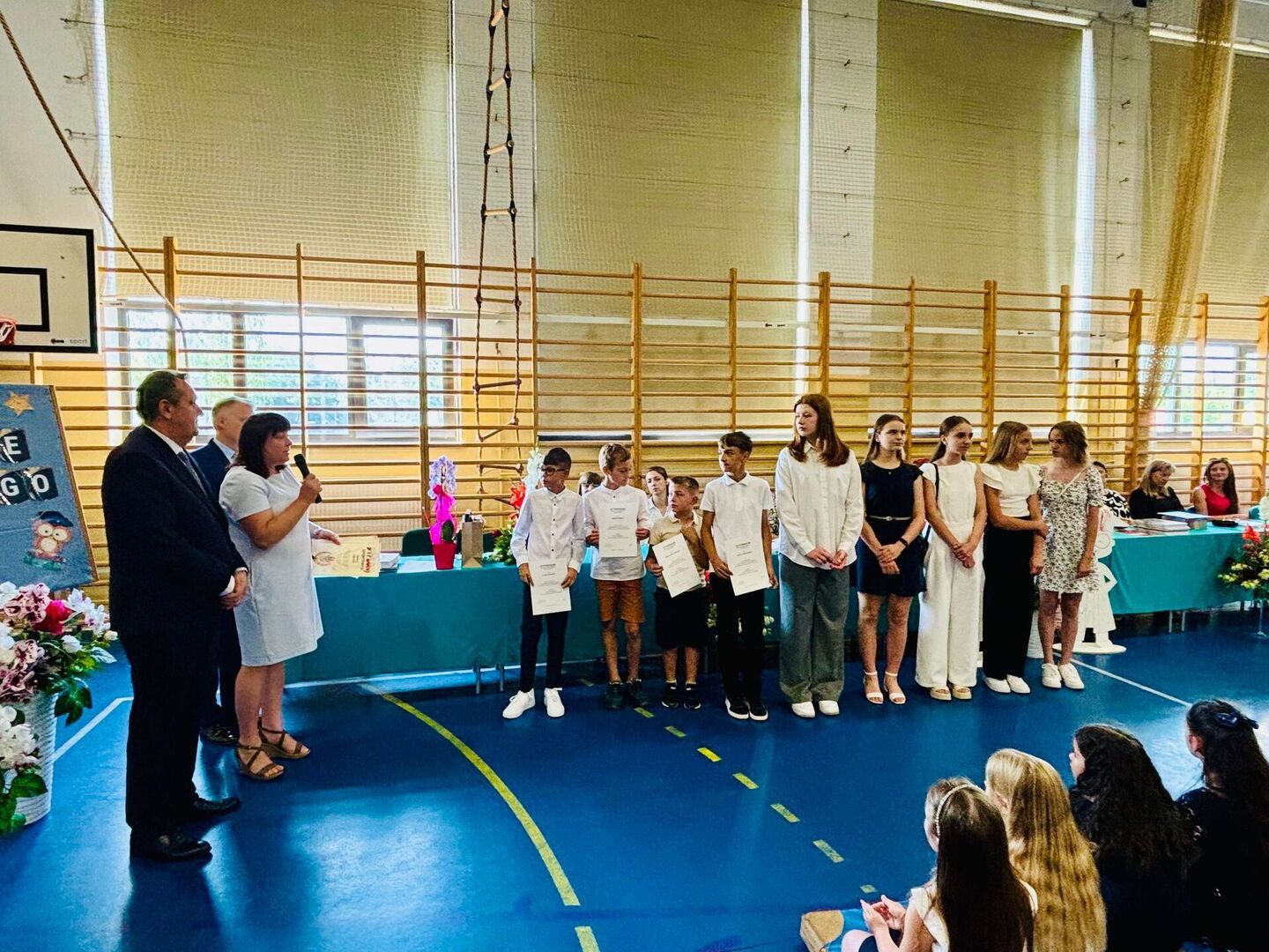 Zakończenie roku szkolnego 2023/2024 było uroczystym wydarzeniem. Dyrektor szkoły podziękował nauczycielom, rodzicom oraz uczniom za ich trud i zaangażowanie w minionym roku. Uroczystość uświetniło rozdanie nagród i stypendiów dla uczniów, którzy osiągnęli wysokie wyniki w nauce oraz sukcesy sportowe. Szczególnym momentem było pożegnanie pani woźnej Zosi Rosy, która po 27 latach pracy przeszła na zasłużoną emeryturę. Wszyscy zgromadzeni odśpiewali jej "Sto lat", wyrażając wdzięczność i życząc wszystkiego najlepszego.