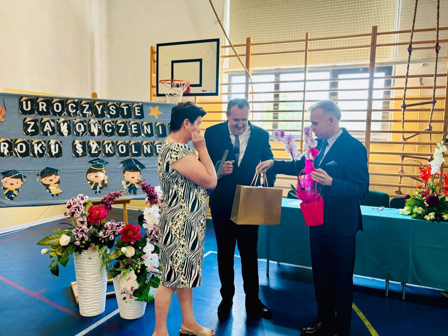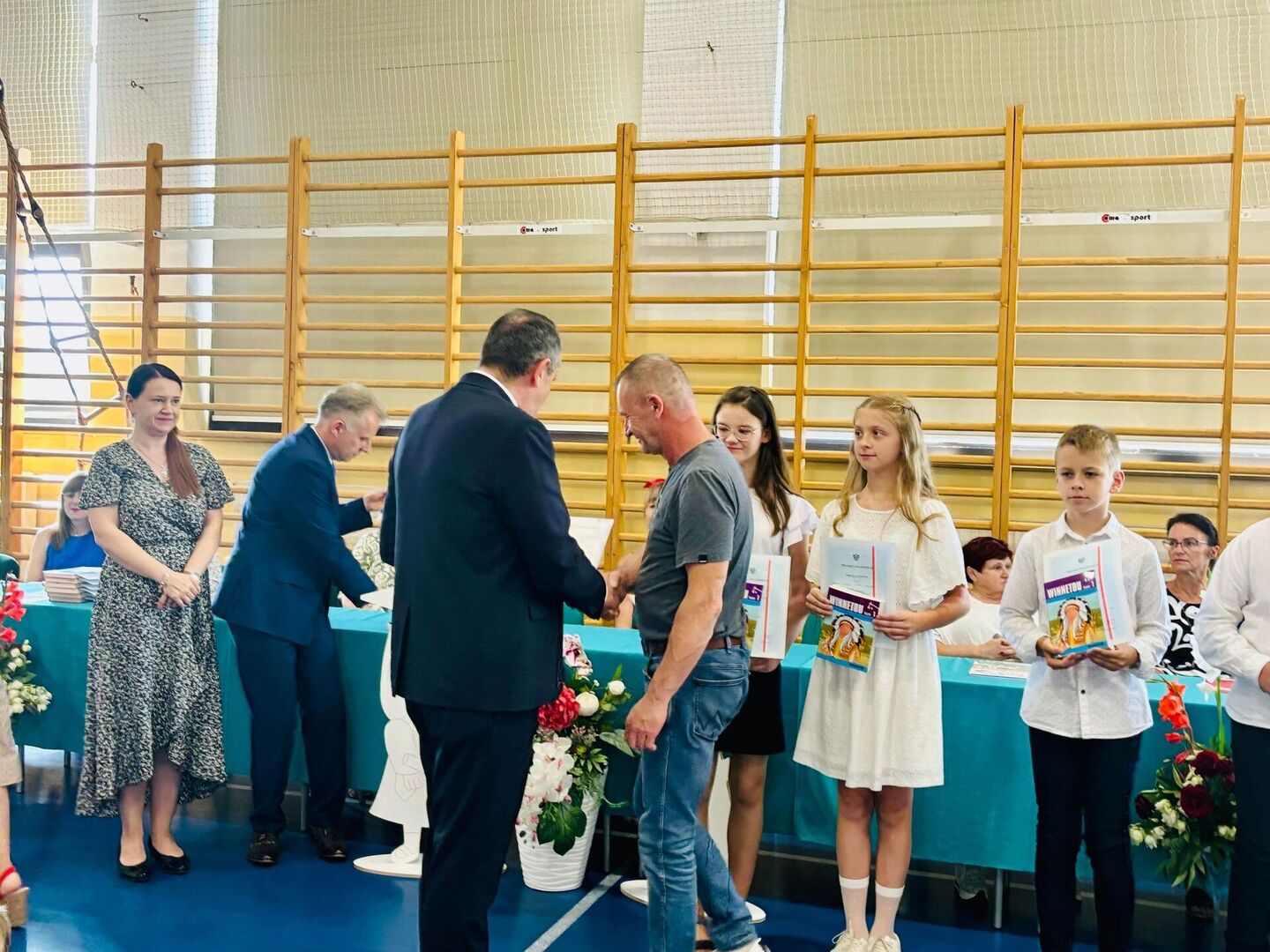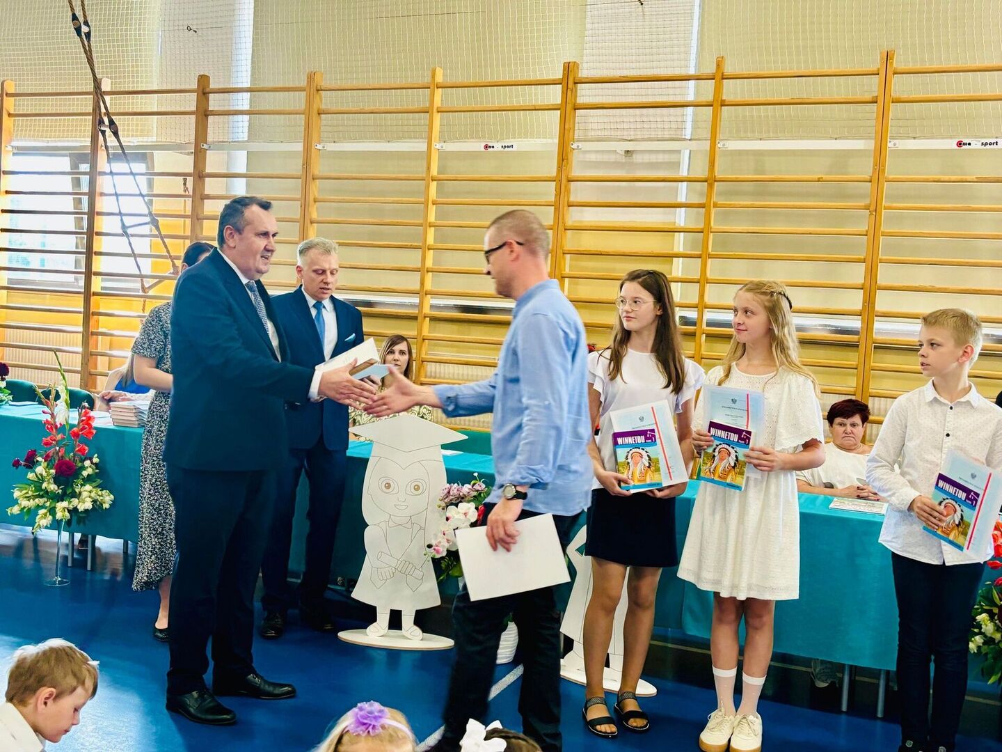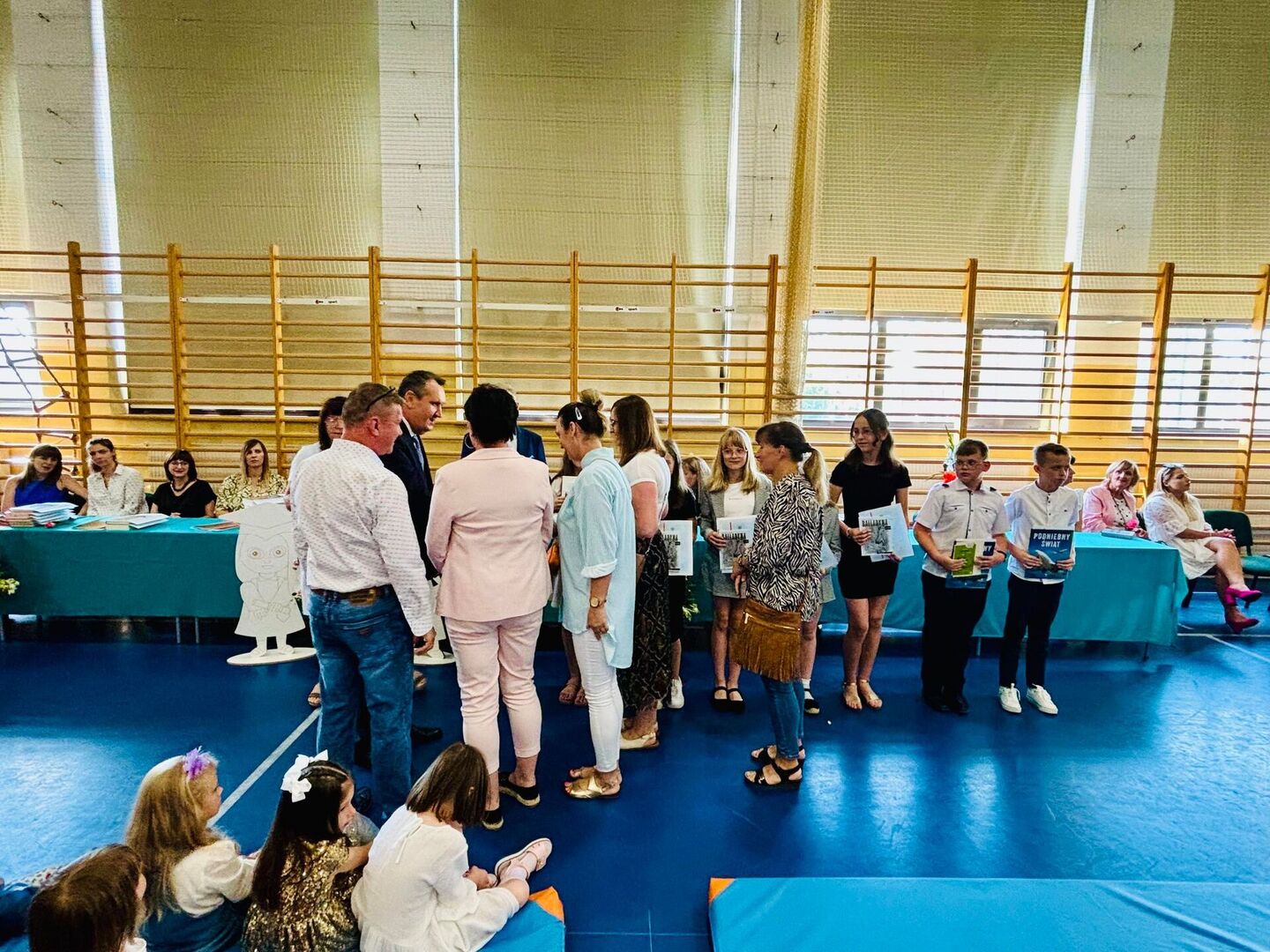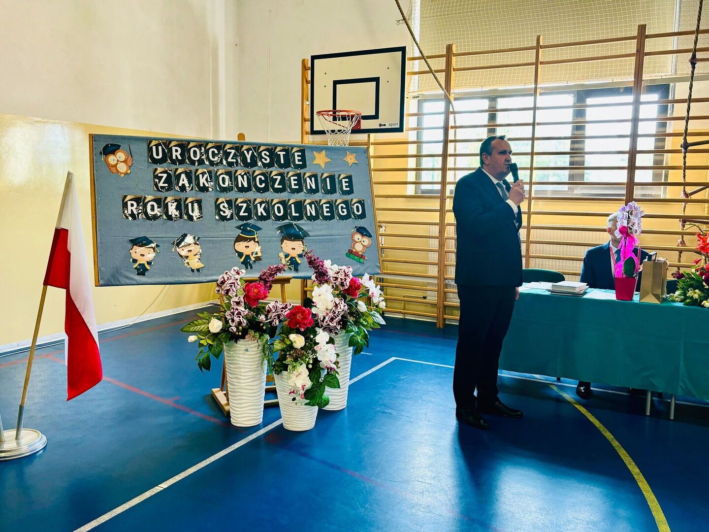 Zakończenie roku szkolnego 2023/2024 było uroczystym wydarzeniem. Dyrektor szkoły podziękował nauczycielom, rodzicom oraz uczniom za ich trud i zaangażowanie w minionym roku. Uroczystość uświetniło rozdanie nagród i stypendiów dla uczniów, którzy osiągnęli wysokie wyniki w nauce oraz sukcesy sportowe. Szczególnym momentem było pożegnanie pani woźnej Zosi Rosy, która po 27 latach pracy przeszła na zasłużoną emeryturę. Wszyscy zgromadzeni odśpiewali jej "Sto lat", wyrażając wdzięczność i życząc wszystkiego najlepszego.