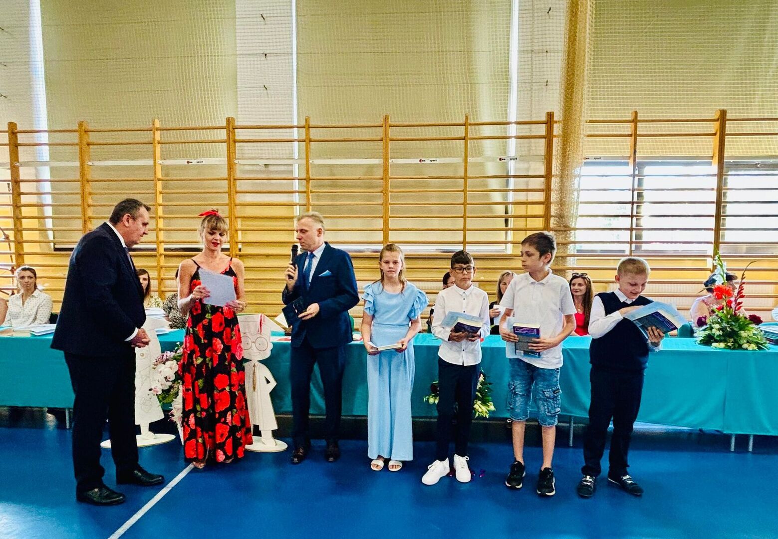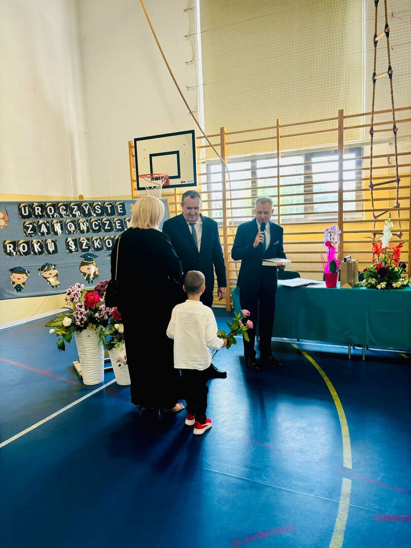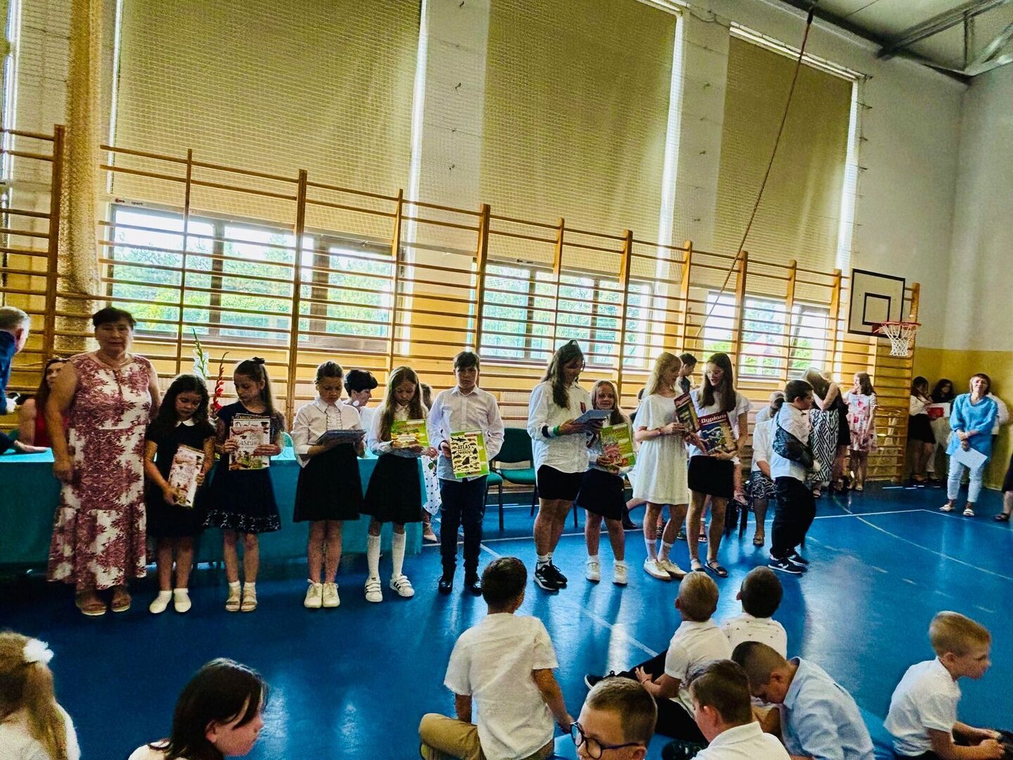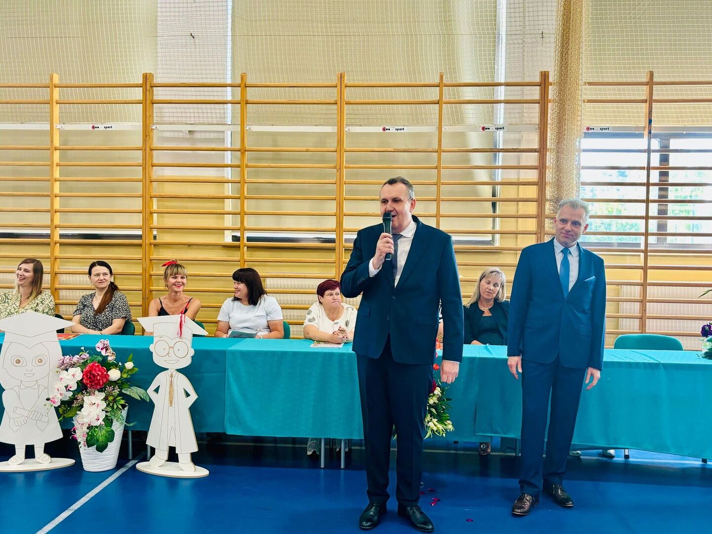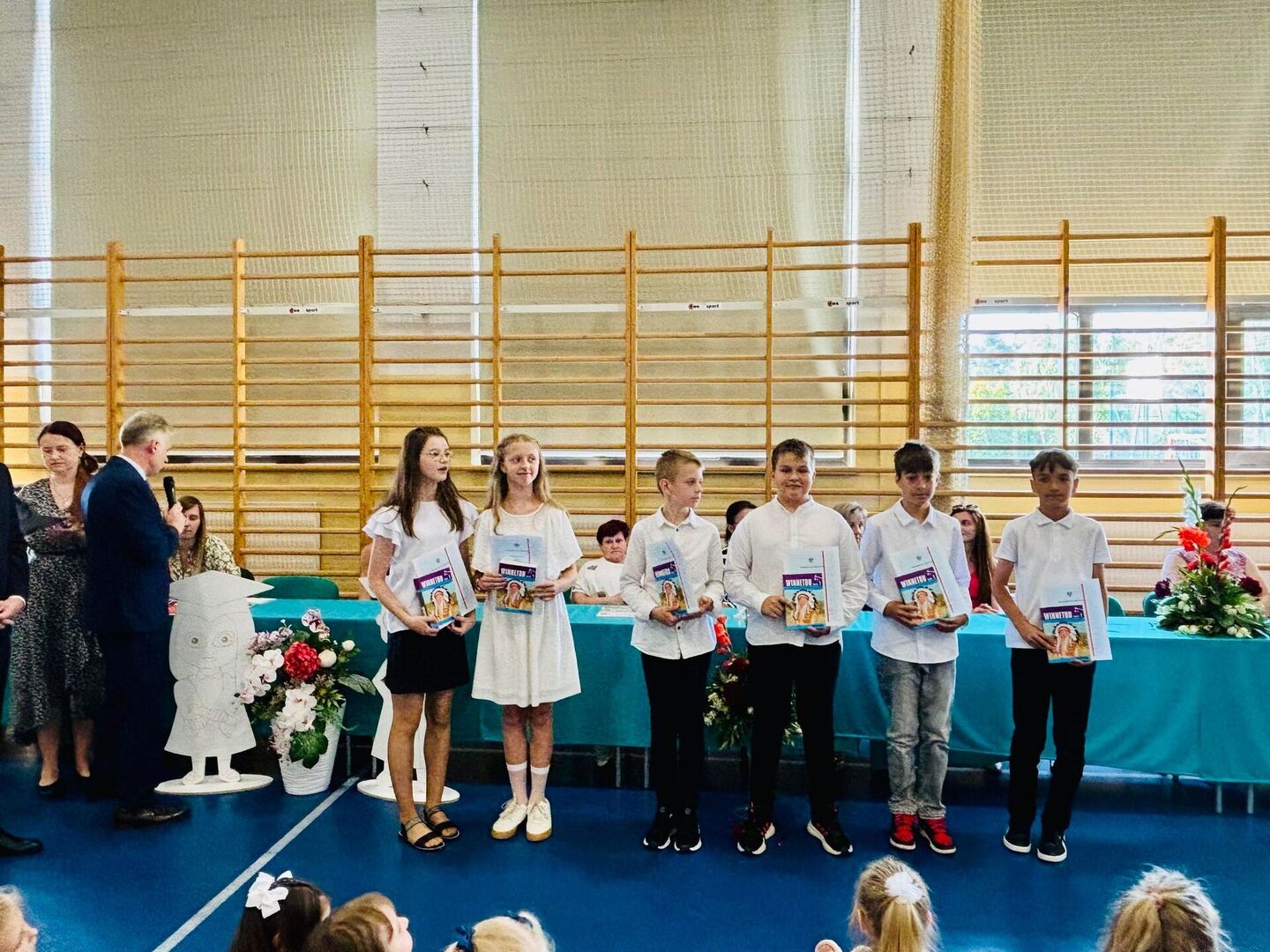 Zakończenie roku szkolnego 2023/2024 było uroczystym wydarzeniem. Dyrektor szkoły podziękował nauczycielom, rodzicom oraz uczniom za ich trud i zaangażowanie w minionym roku. Uroczystość uświetniło rozdanie nagród i stypendiów dla uczniów, którzy osiągnęli wysokie wyniki w nauce oraz sukcesy sportowe. Szczególnym momentem było pożegnanie pani woźnej Zosi Rosy, która po 27 latach pracy przeszła na zasłużoną emeryturę. Wszyscy zgromadzeni odśpiewali jej "Sto lat", wyrażając wdzięczność i życząc wszystkiego najlepszego.