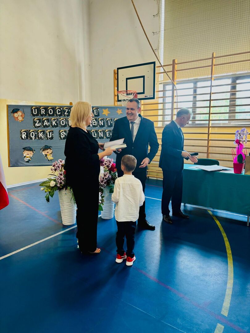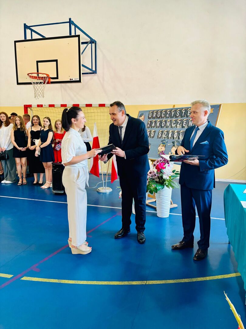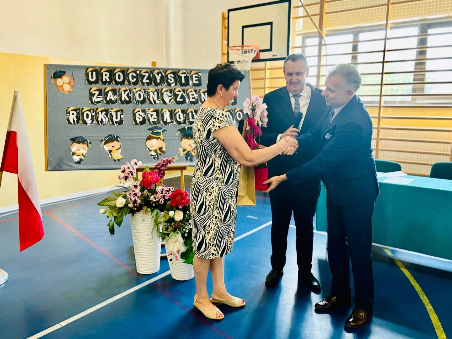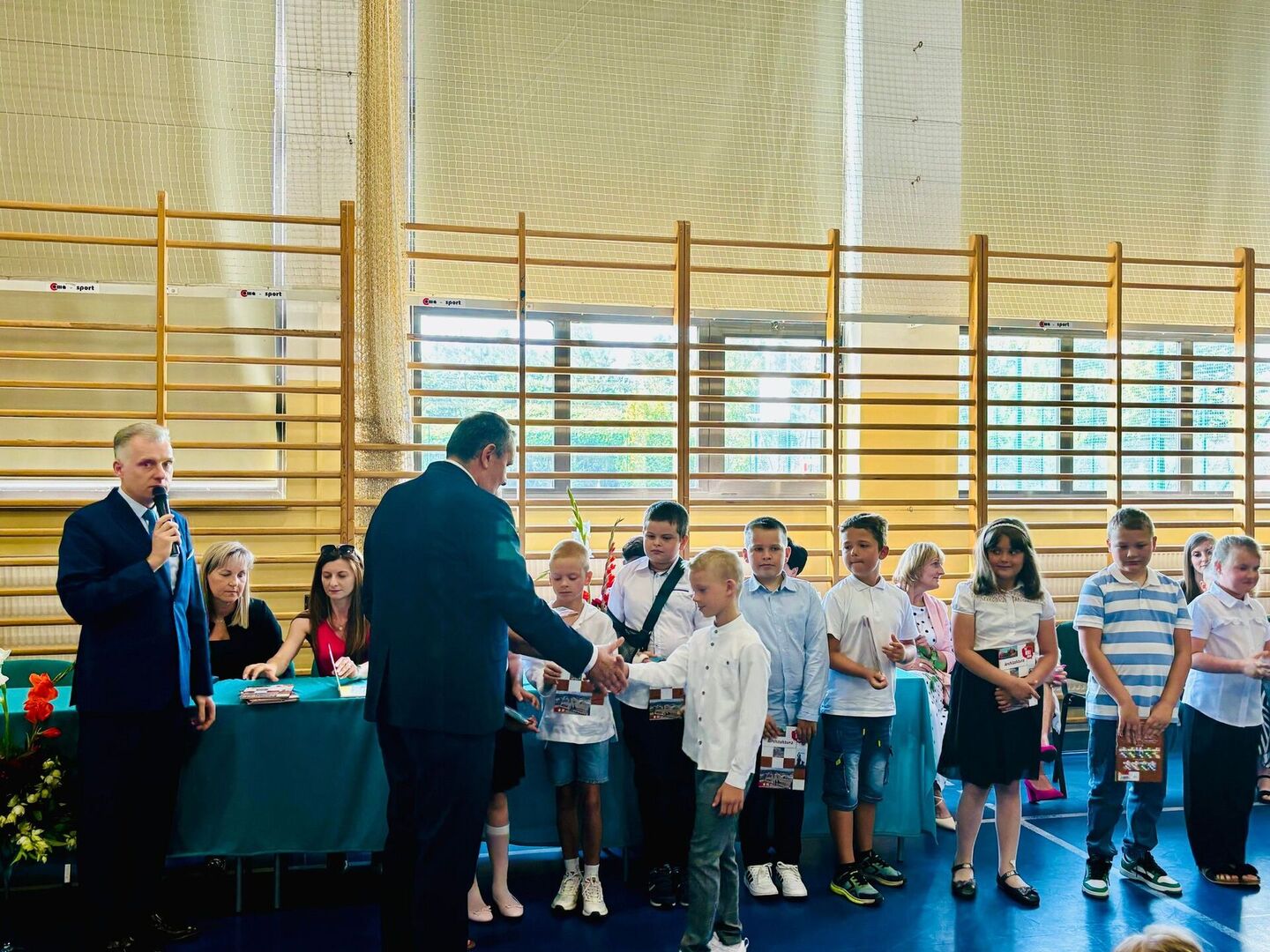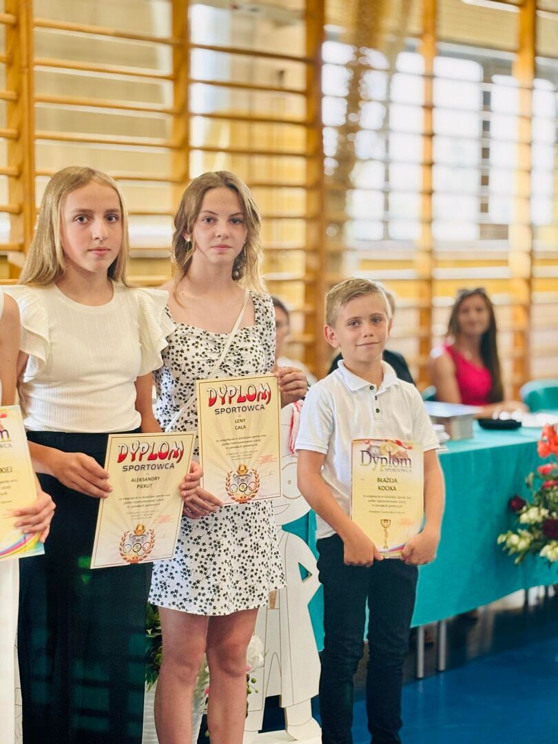 Zakończenie roku szkolnego 2023/2024 było uroczystym wydarzeniem. Dyrektor szkoły podziękował nauczycielom, rodzicom oraz uczniom za ich trud i zaangażowanie w minionym roku. Uroczystość uświetniło rozdanie nagród i stypendiów dla uczniów, którzy osiągnęli wysokie wyniki w nauce oraz sukcesy sportowe. Szczególnym momentem było pożegnanie pani woźnej Zosi Rosy, która po 27 latach pracy przeszła na zasłużoną emeryturę. Wszyscy zgromadzeni odśpiewali jej "Sto lat", wyrażając wdzięczność i życząc wszystkiego najlepszego.
