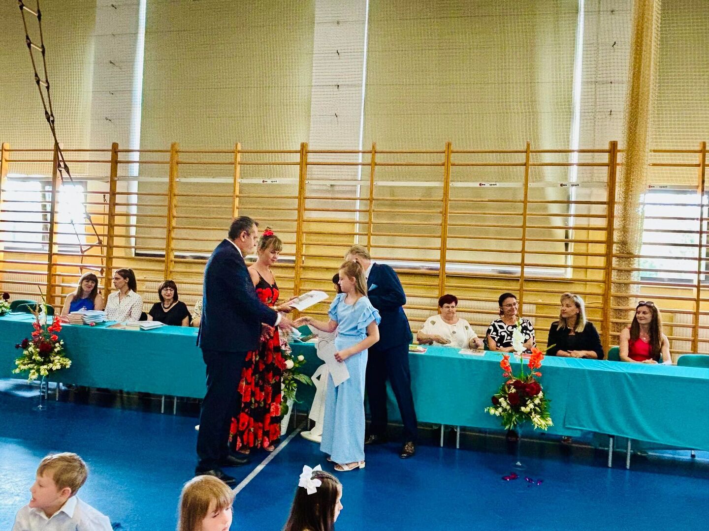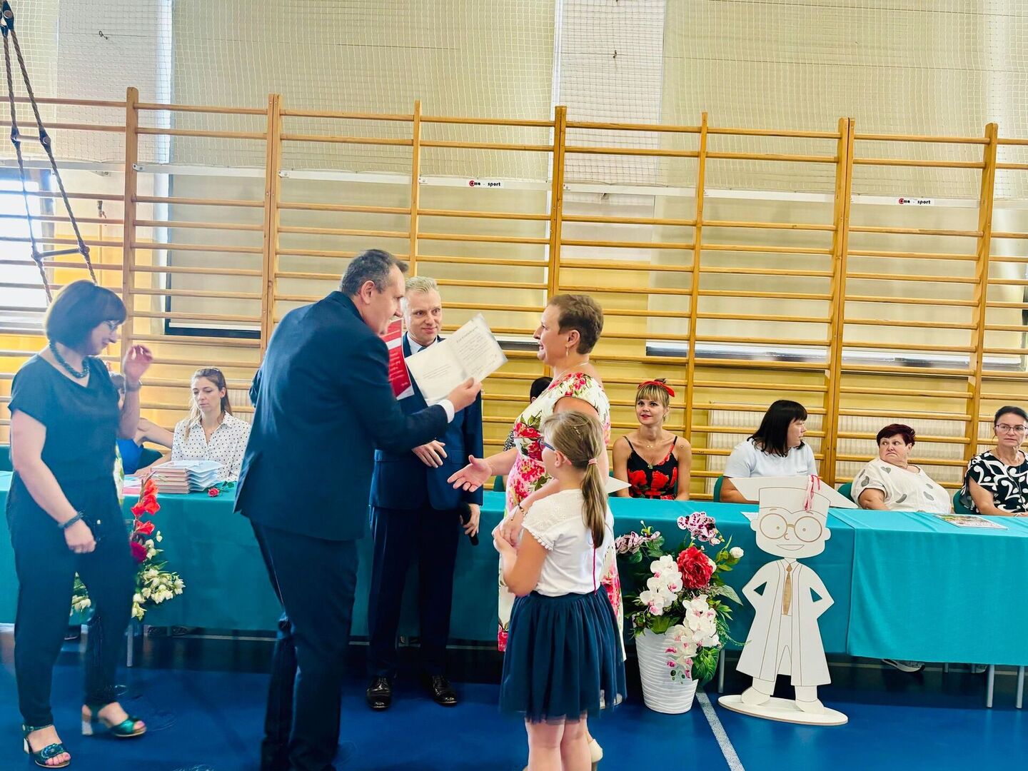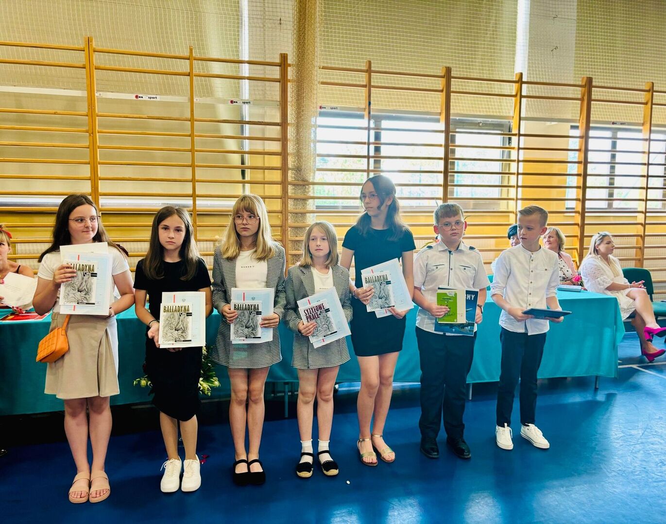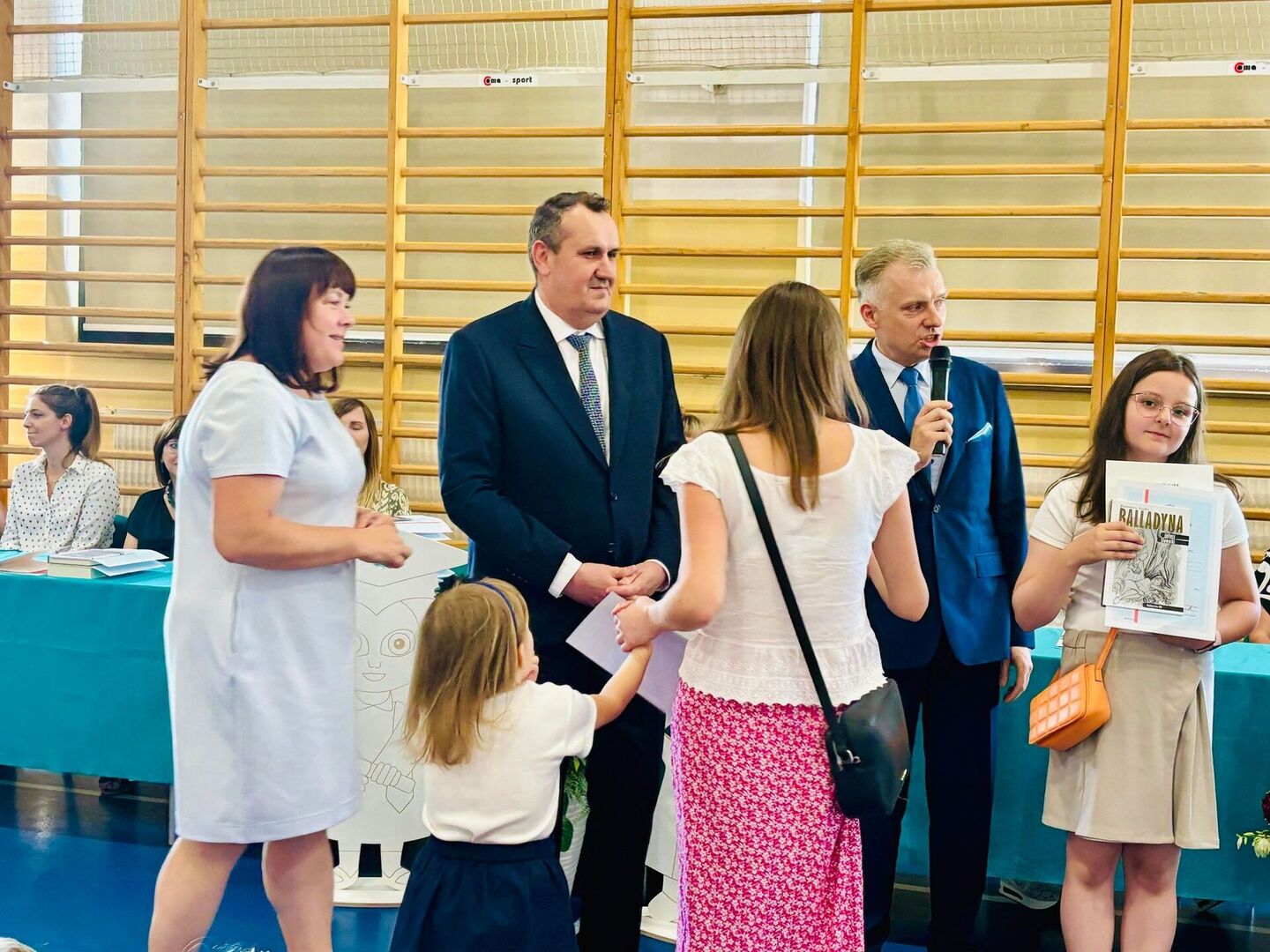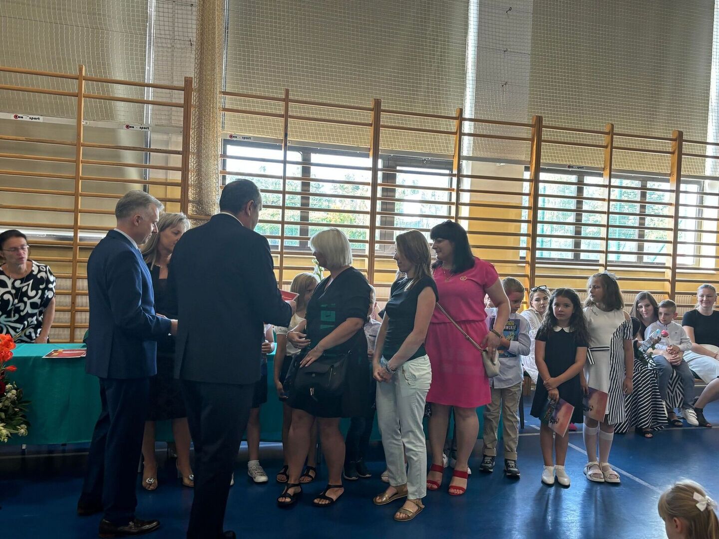 Zakończenie roku szkolnego 2023/2024 było uroczystym wydarzeniem. Dyrektor szkoły podziękował nauczycielom, rodzicom oraz uczniom za ich trud i zaangażowanie w minionym roku. Uroczystość uświetniło rozdanie nagród i stypendiów dla uczniów, którzy osiągnęli wysokie wyniki w nauce oraz sukcesy sportowe. Szczególnym momentem było pożegnanie pani woźnej Zosi Rosy, która po 27 latach pracy przeszła na zasłużoną emeryturę. Wszyscy zgromadzeni odśpiewali jej "Sto lat", wyrażając wdzięczność i życząc wszystkiego najlepszego.