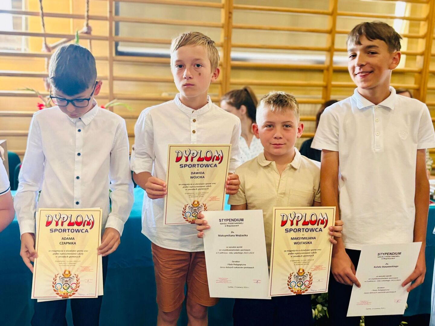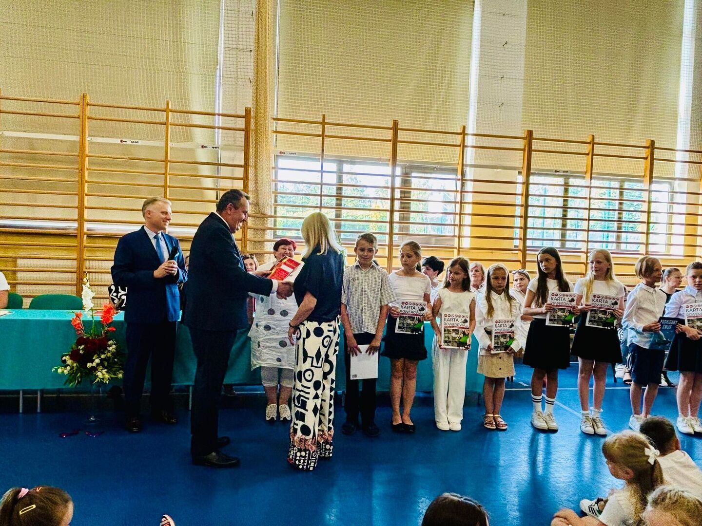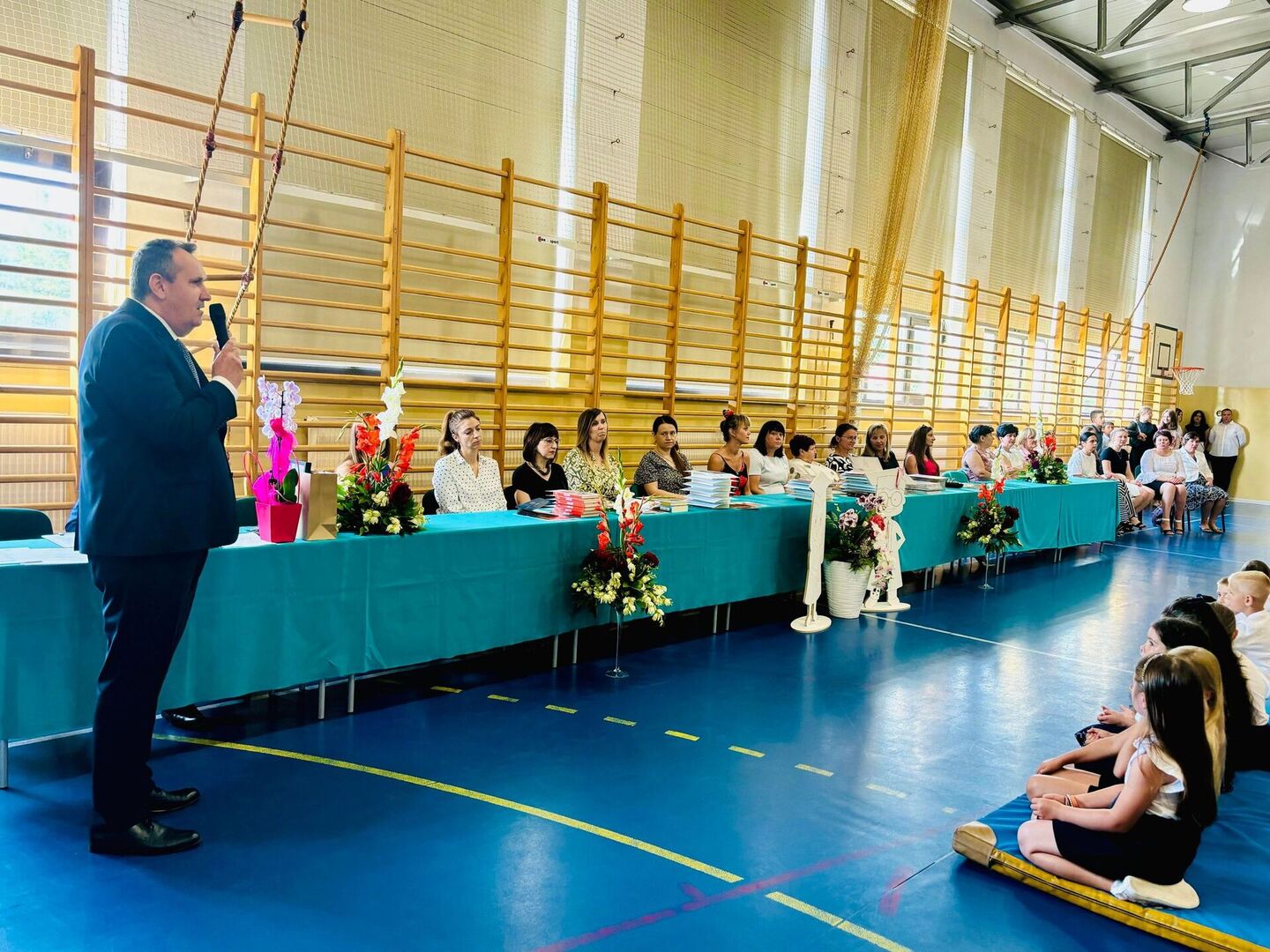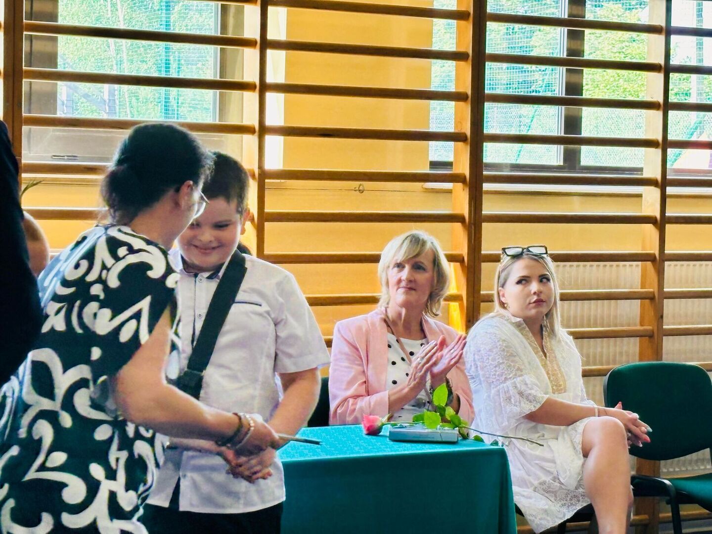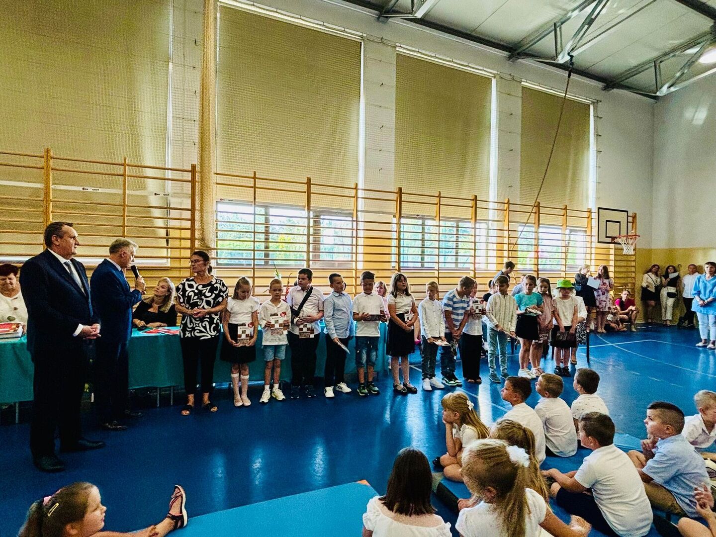 Zakończenie roku szkolnego 2023/2024 było uroczystym wydarzeniem. Dyrektor szkoły podziękował nauczycielom, rodzicom oraz uczniom za ich trud i zaangażowanie w minionym roku. Uroczystość uświetniło rozdanie nagród i stypendiów dla uczniów, którzy osiągnęli wysokie wyniki w nauce oraz sukcesy sportowe. Szczególnym momentem było pożegnanie pani woźnej Zosi Rosy, która po 27 latach pracy przeszła na zasłużoną emeryturę. Wszyscy zgromadzeni odśpiewali jej "Sto lat", wyrażając wdzięczność i życząc wszystkiego najlepszego.