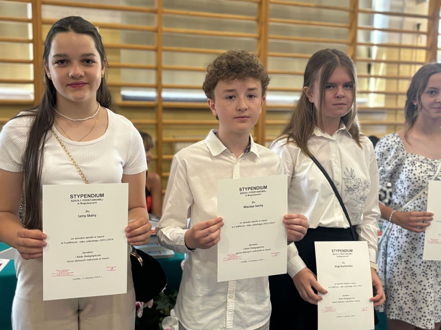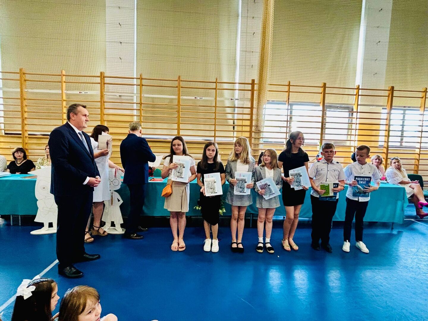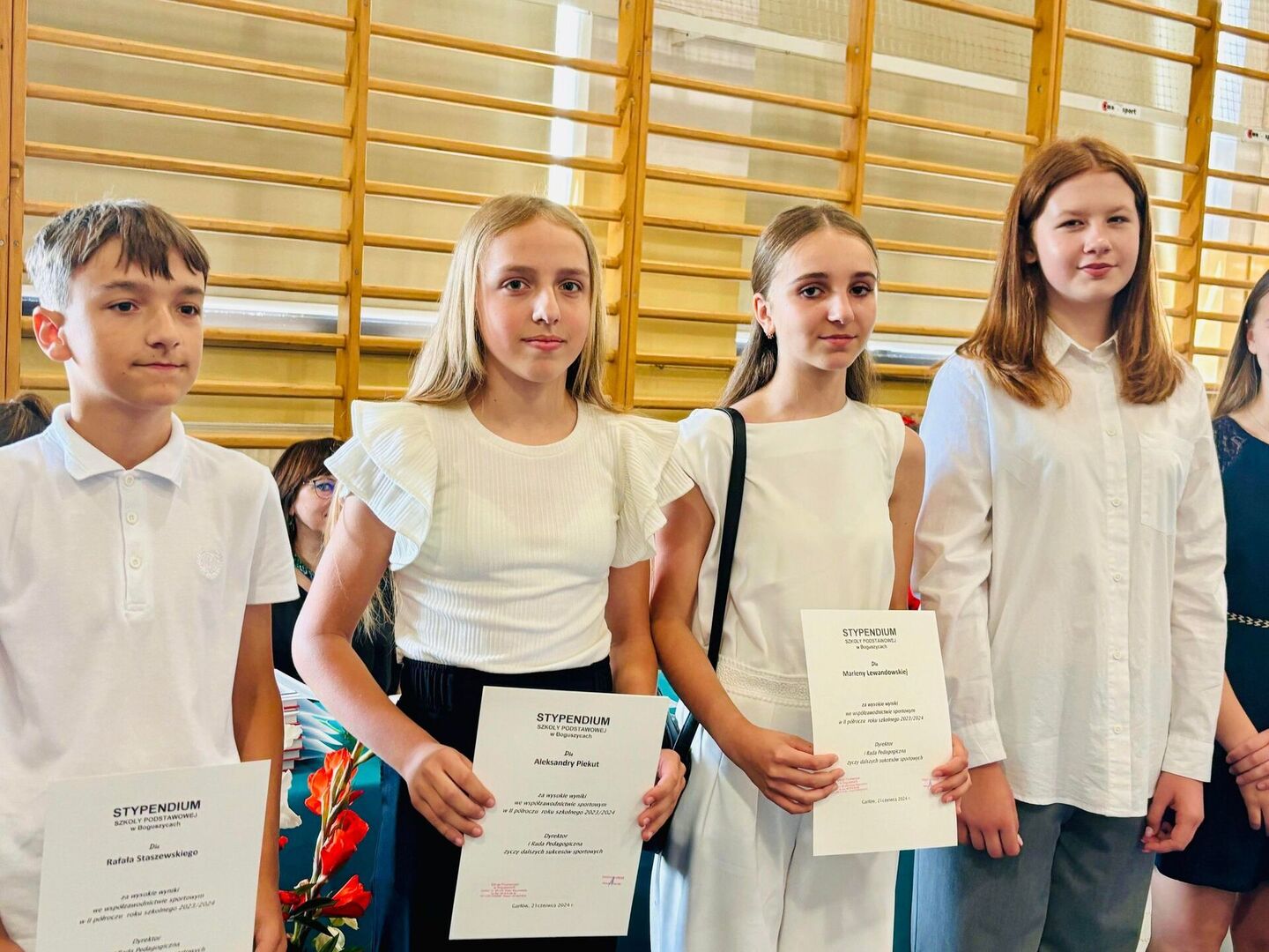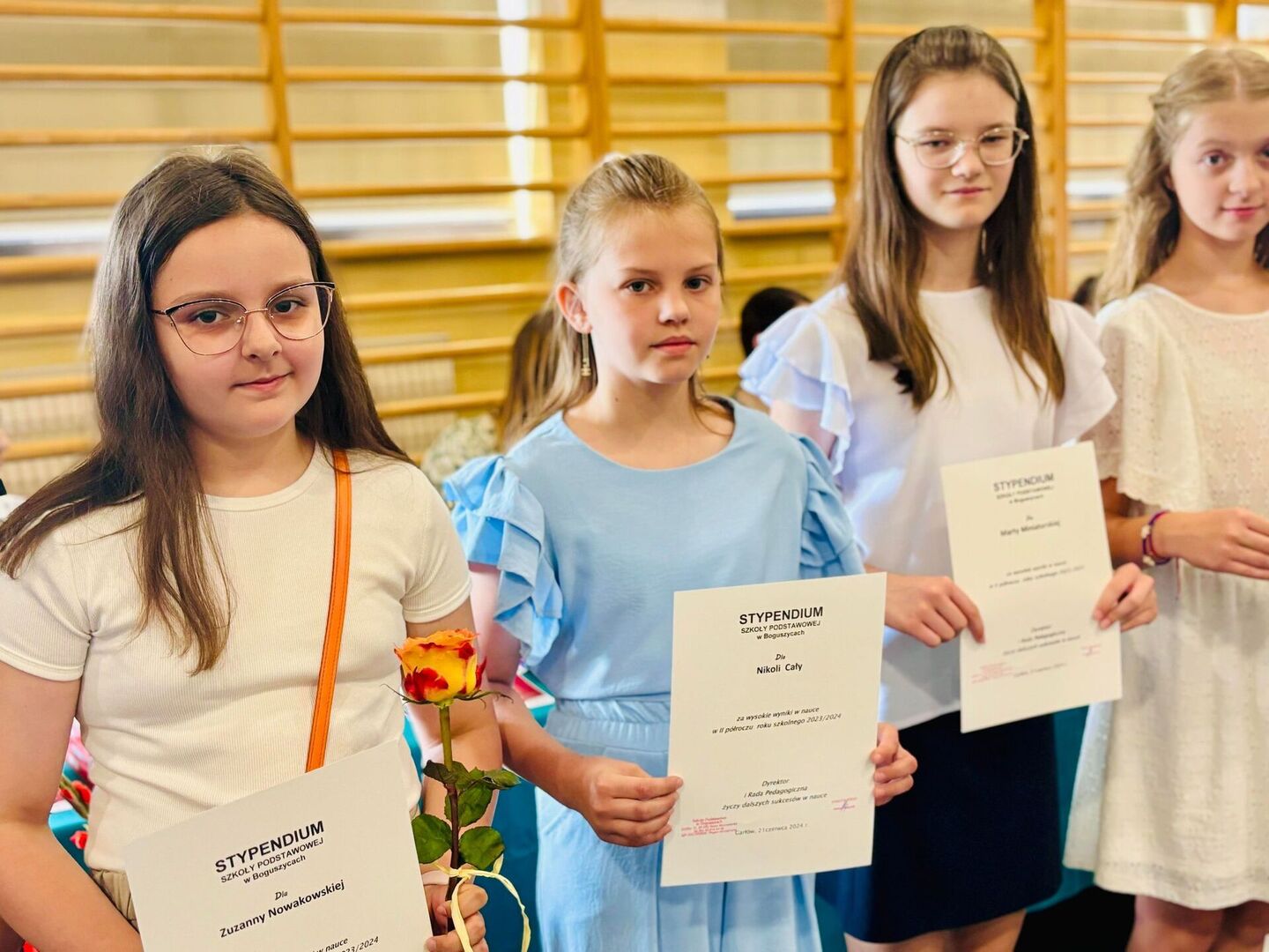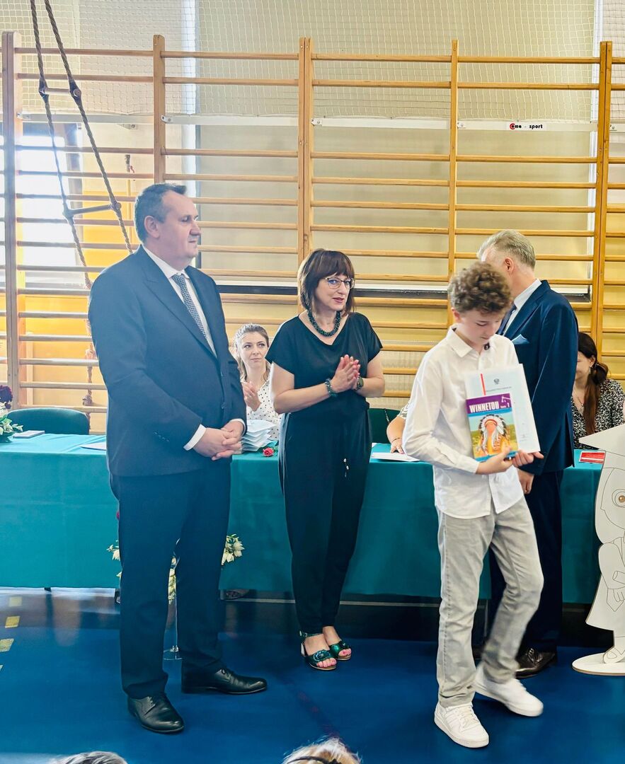 Zakończenie roku szkolnego 2023/2024 było uroczystym wydarzeniem. Dyrektor szkoły podziękował nauczycielom, rodzicom oraz uczniom za ich trud i zaangażowanie w minionym roku. Uroczystość uświetniło rozdanie nagród i stypendiów dla uczniów, którzy osiągnęli wysokie wyniki w nauce oraz sukcesy sportowe. Szczególnym momentem było pożegnanie pani woźnej Zosi Rosy, która po 27 latach pracy przeszła na zasłużoną emeryturę. Wszyscy zgromadzeni odśpiewali jej "Sto lat", wyrażając wdzięczność i życząc wszystkiego najlepszego.