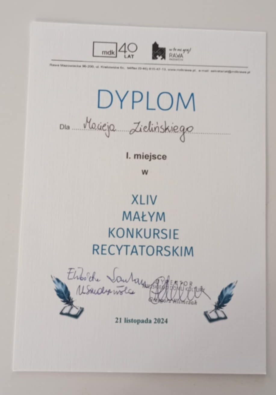 Naszą szkołę reprezentował uczeń klasy VI, Maciej Zieliński, który zajął I. miejsce