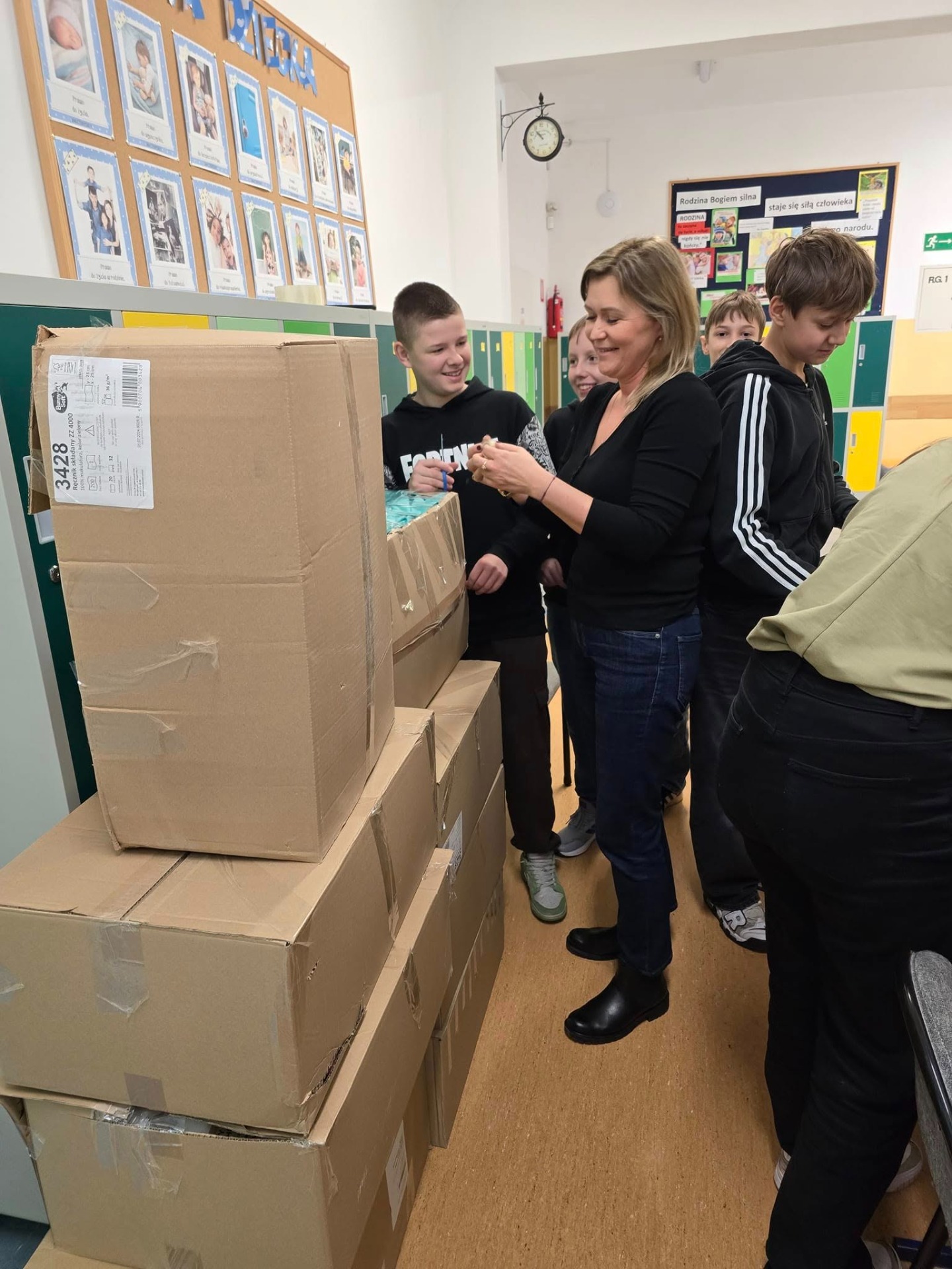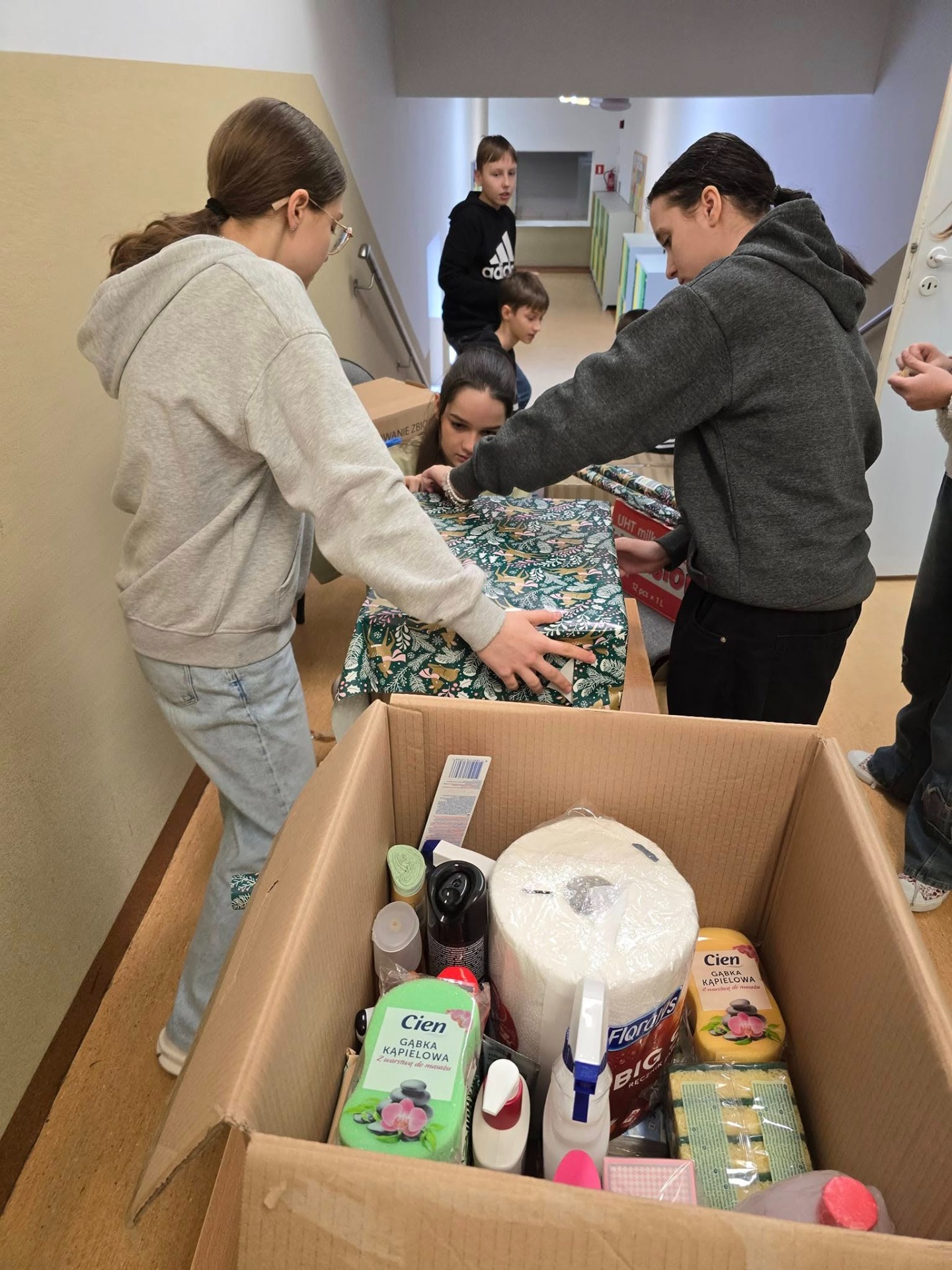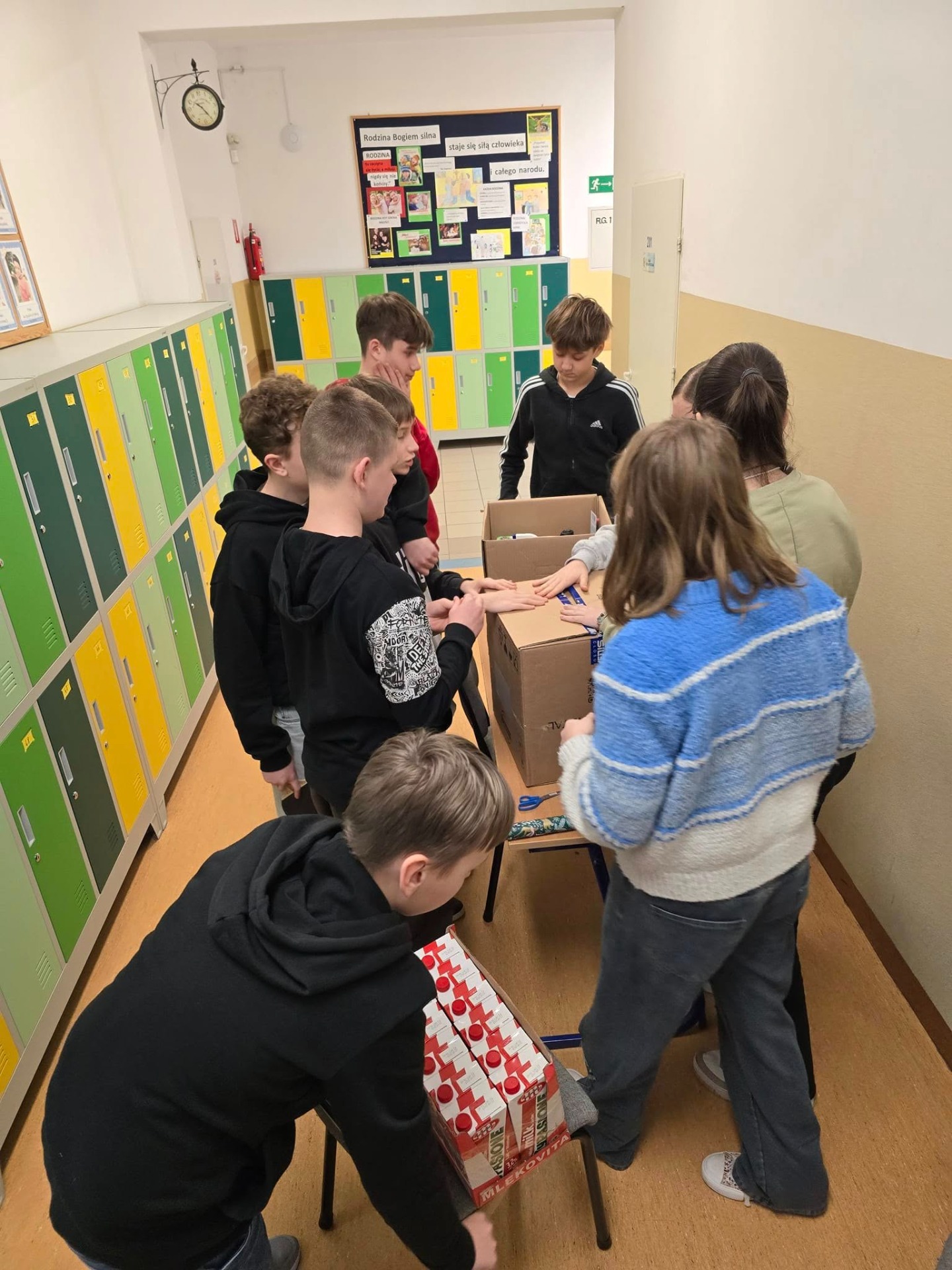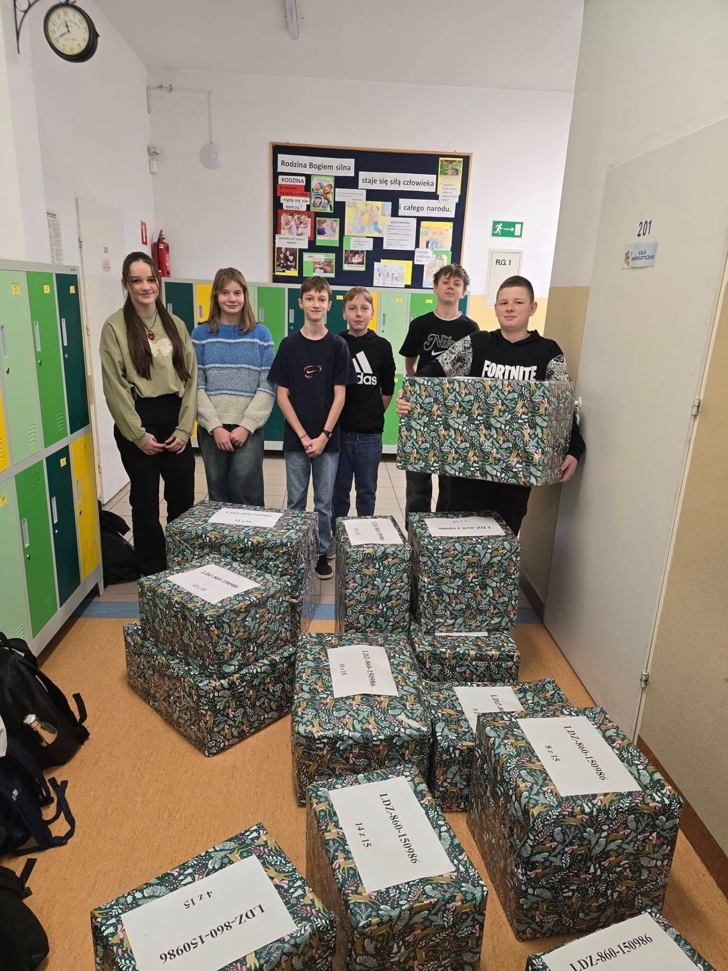 została dziś spakowana przez uczniów klasy VII. Liczy aż 15 paczek! Dziękujemy darczyńcom za produkty i pieniądze wrzucane do puszki. Jesteście niesamowici! To dzięki Wam wszystkie niezbędne artykuły bedą mogły trafić do potrzebującej rodziny