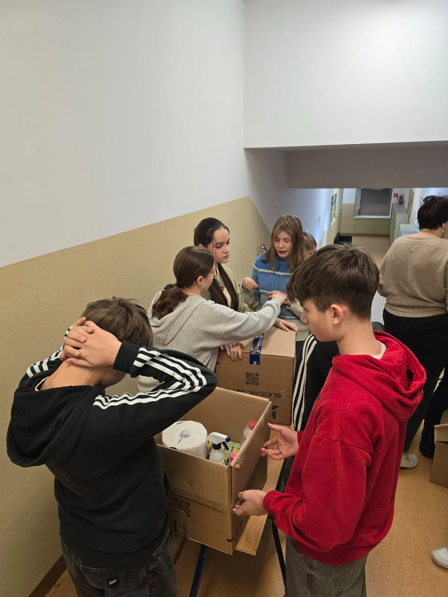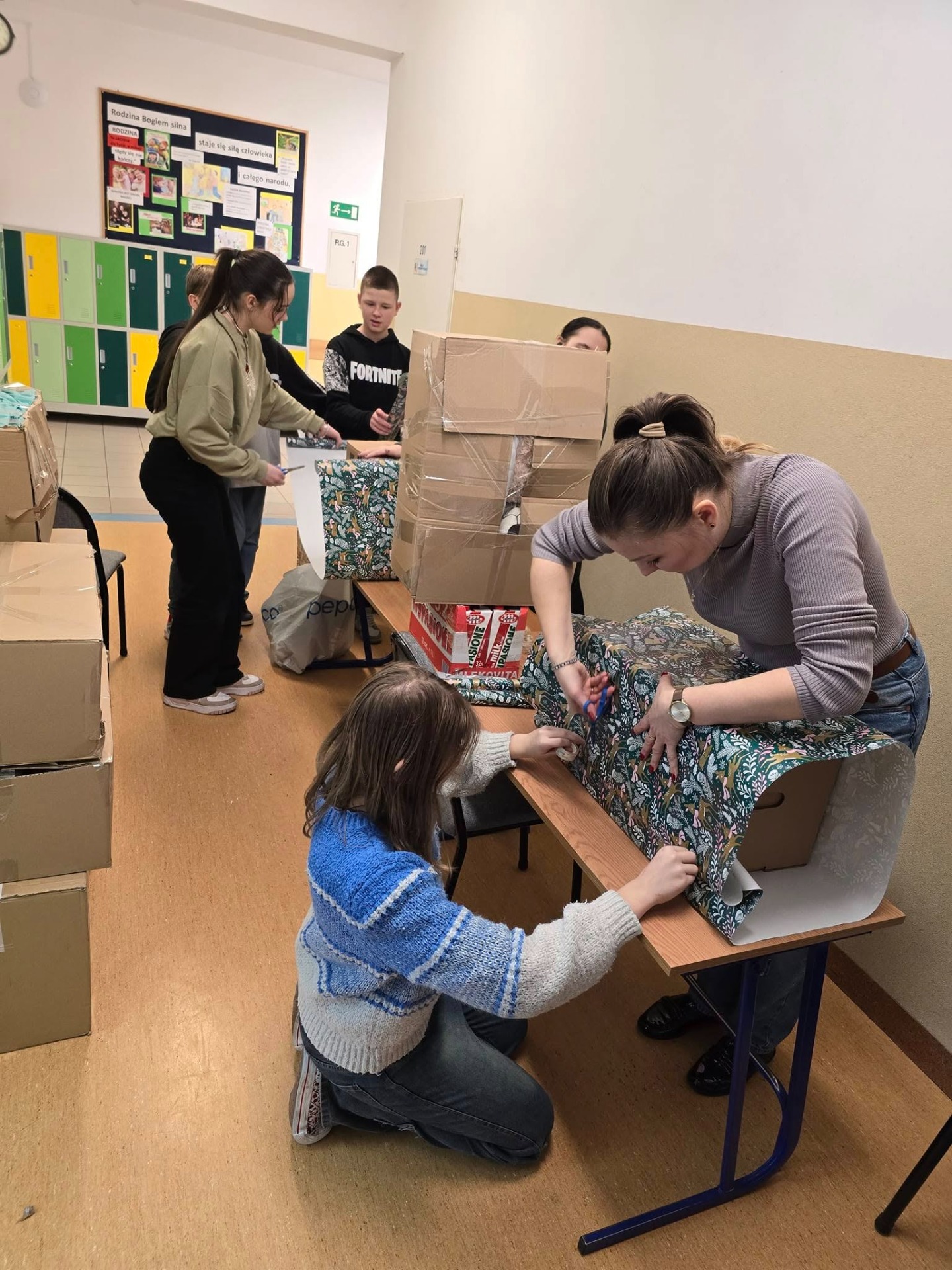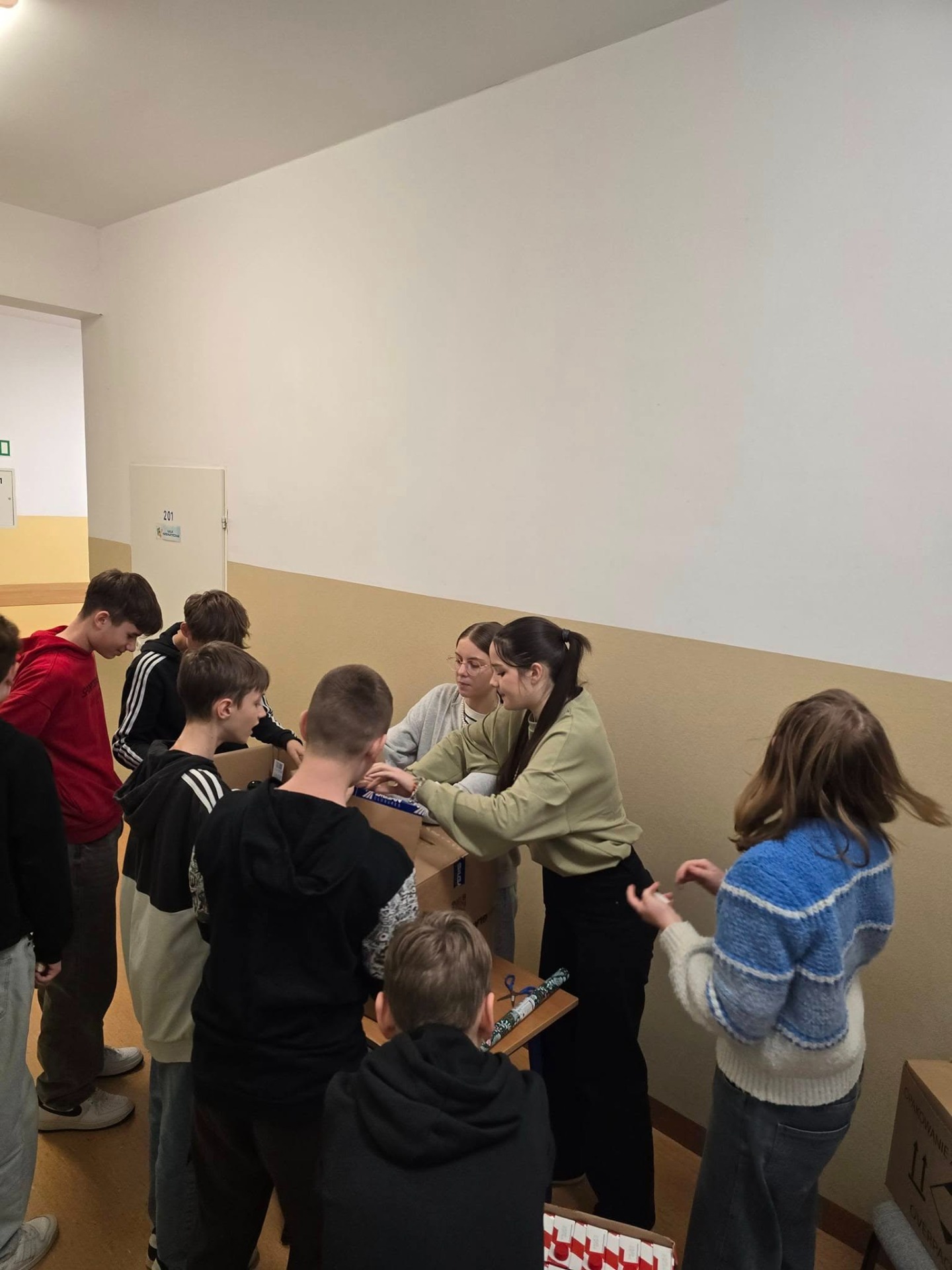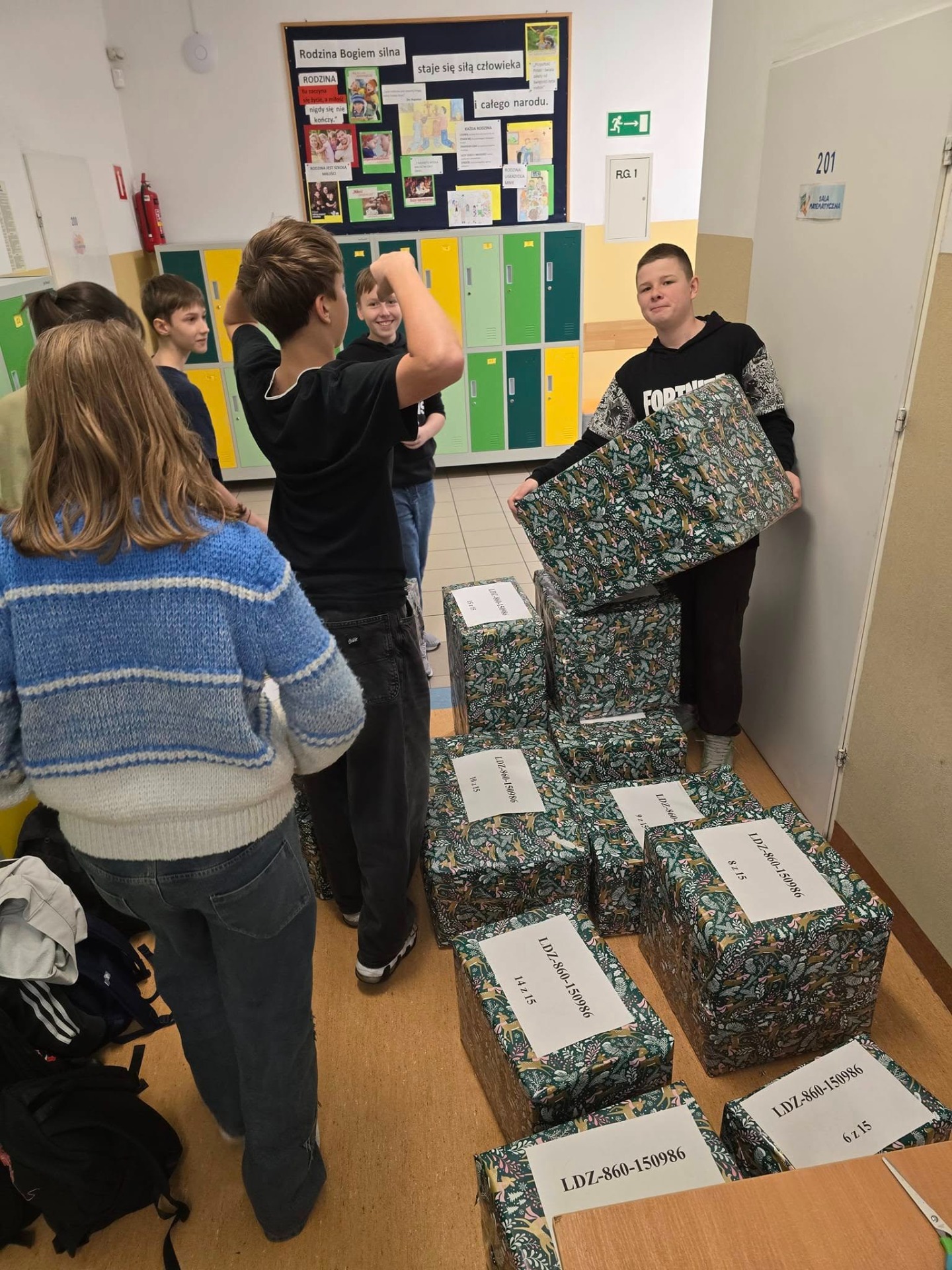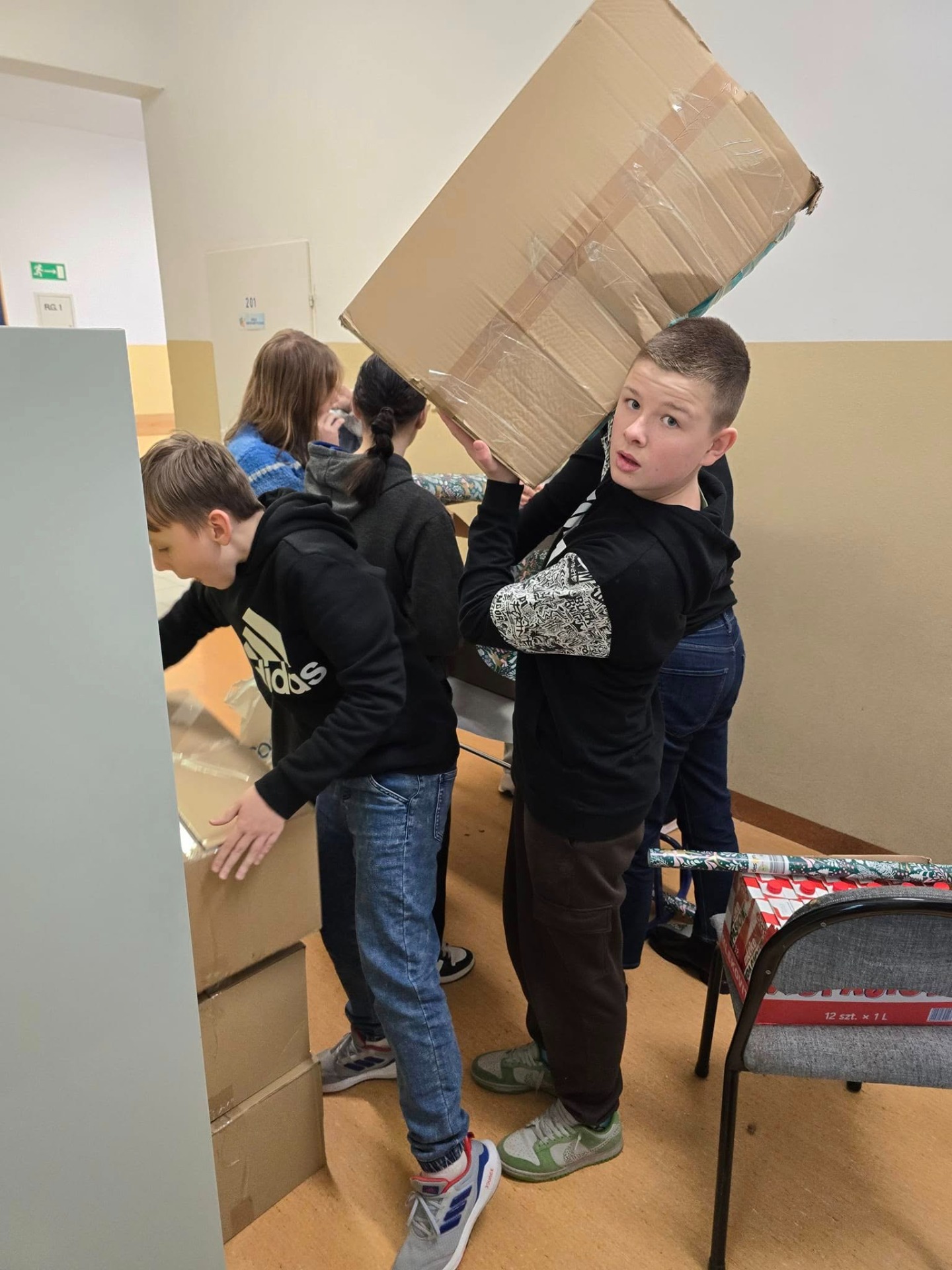 została dziś spakowana przez uczniów klasy VII. Liczy aż 15 paczek! Dziękujemy darczyńcom za produkty i pieniądze wrzucane do puszki. Jesteście niesamowici! To dzięki Wam wszystkie niezbędne artykuły bedą mogły trafić do potrzebującej rodziny