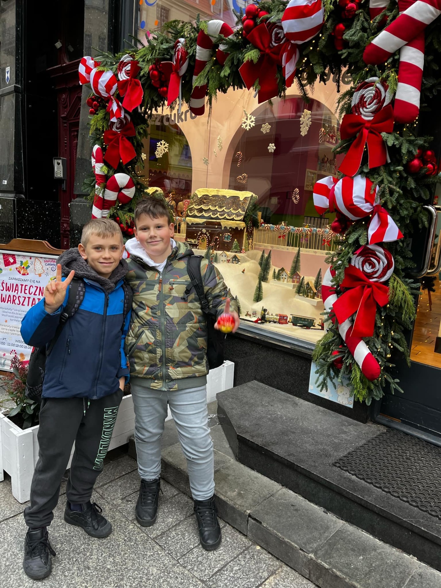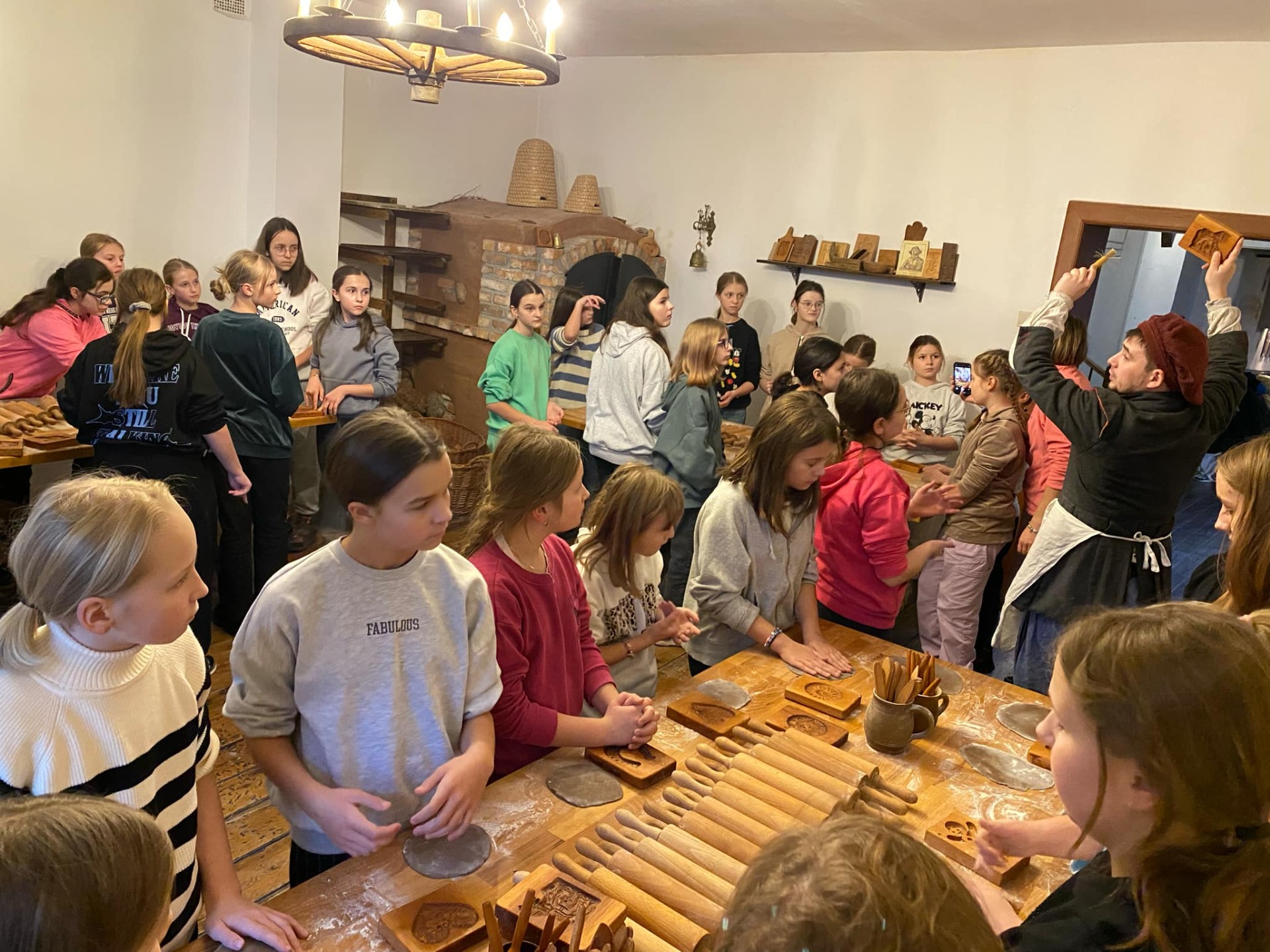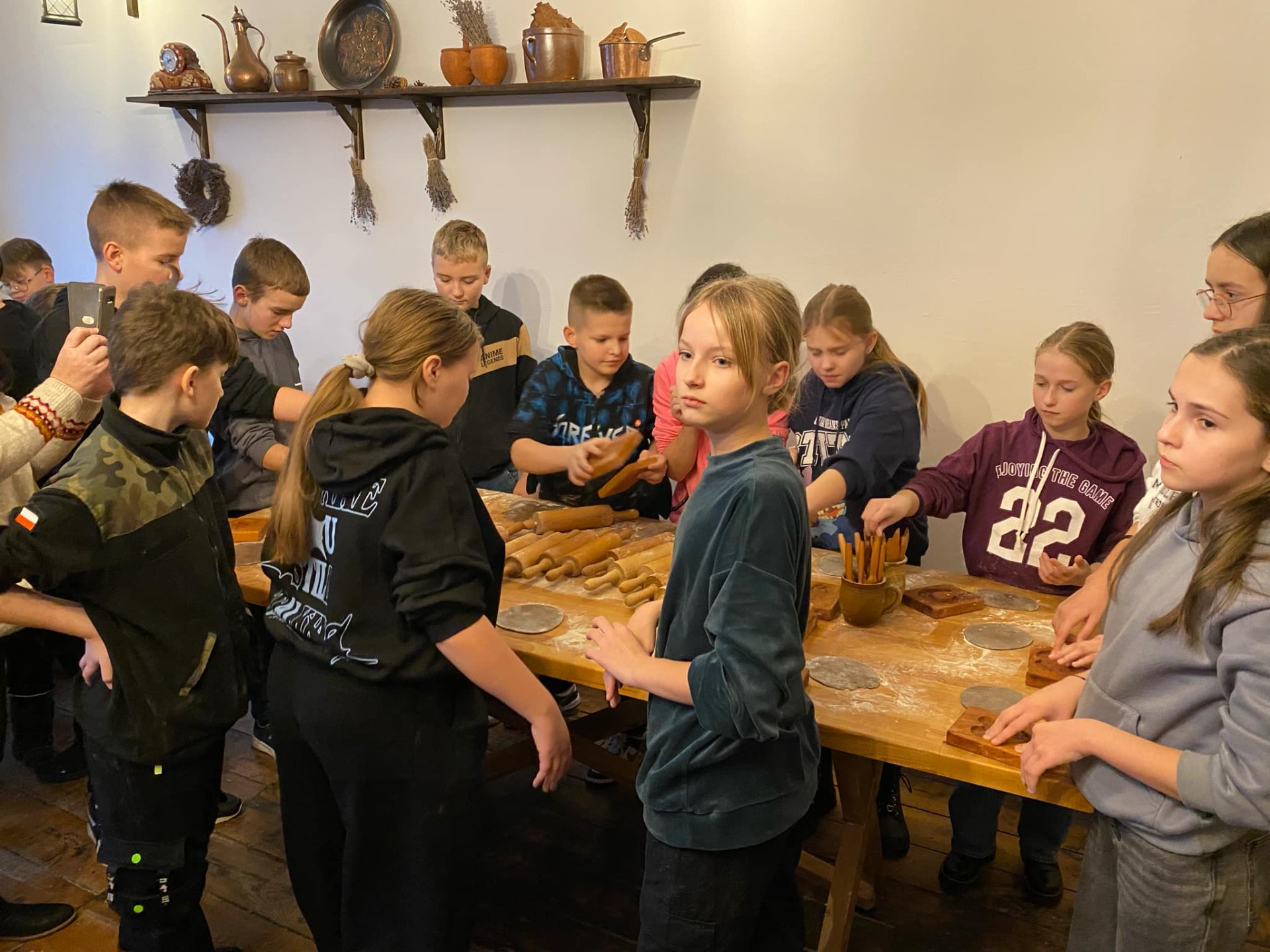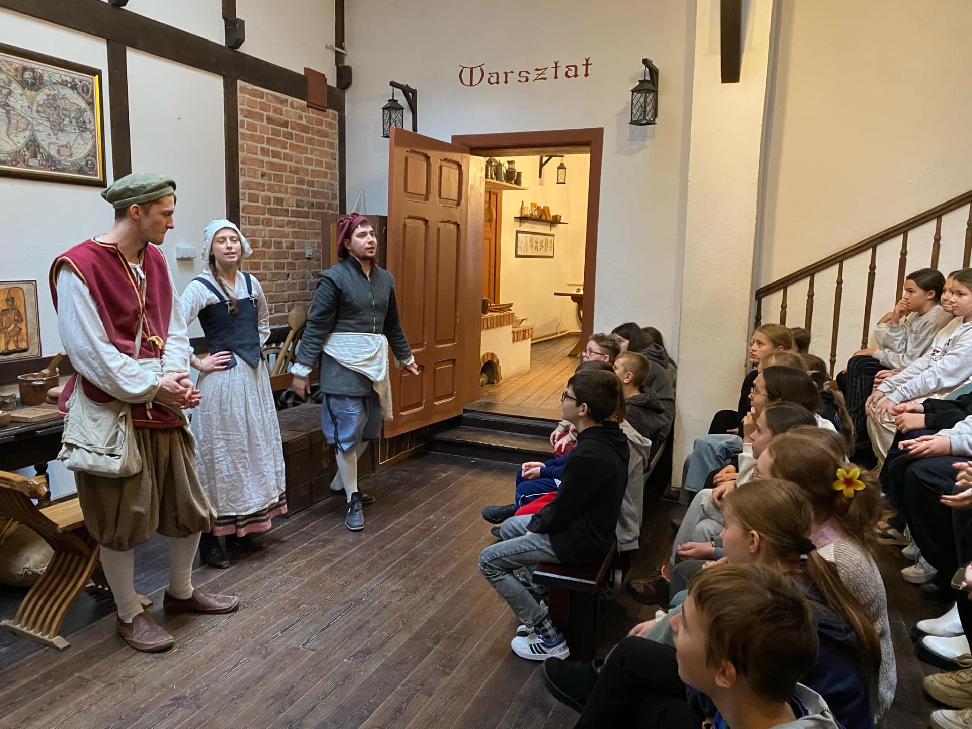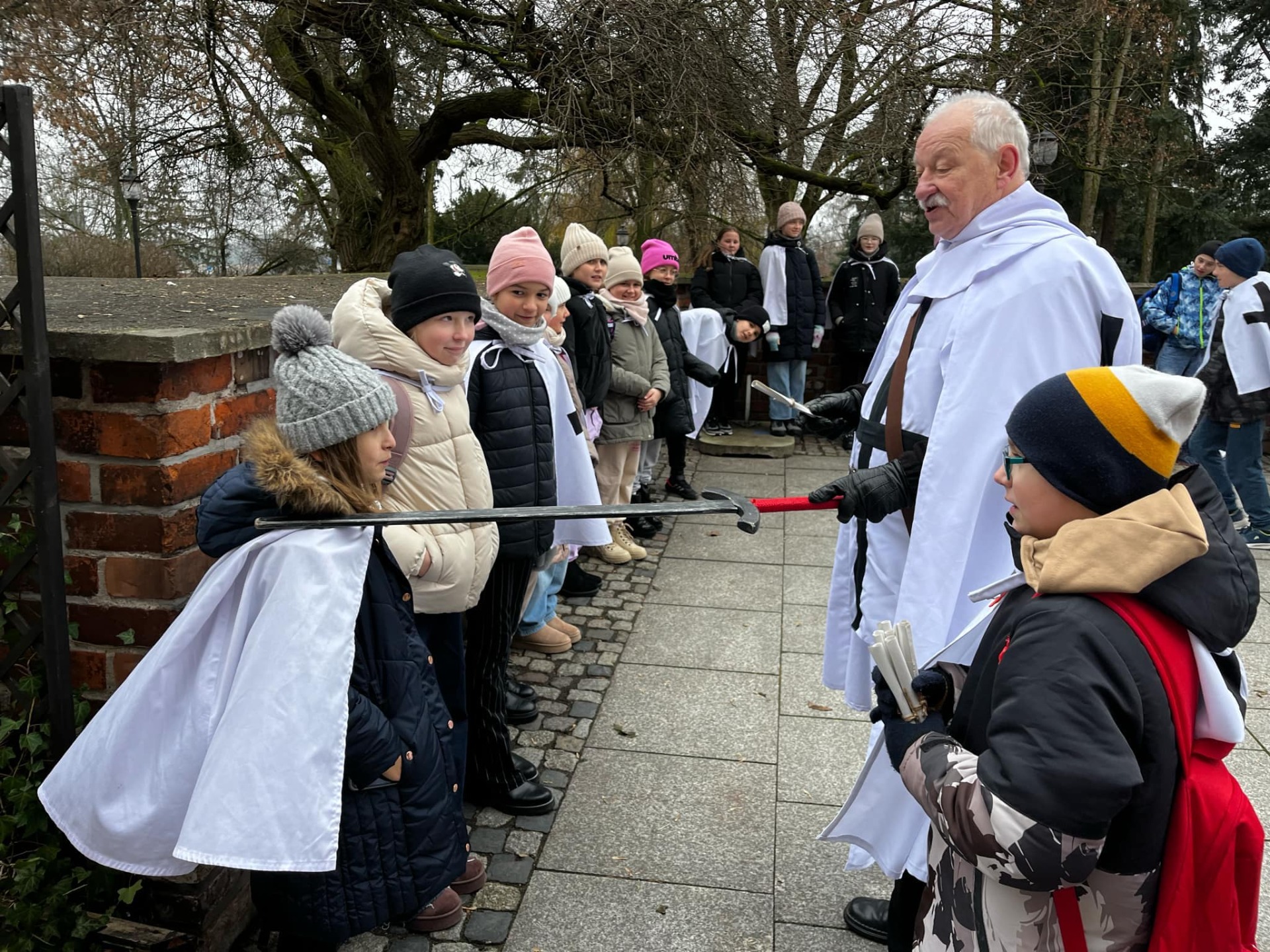 11 grudnia uczniowie klas IV-VI odwiedzili piękne miasto Toruń. Po spotkaniu z przewodnikami w dwóch grupach udali się na zwiedzanie przebrani w krzyżackie stroje. Podczas spaceru uliczkami miasta poznali Toruń z epoki średniowiecza. Usłyszeli anegdoty i przypowieści z codziennego życia torunian, zobaczyli Katedrę św. Janów, Dom Mikołaja Kopernika, Krzywą Wieżę, Rynek Staromiejski z gotyckim Ratuszem i pomnikiem Kopernika.Mieli okazję zobaczyć również pracę aktorów: p. Olgi Bołądź, p. Barbary Kurdej-Szatan podczas nagrywania scen do filmu „Piernikowe serce” w reżyserii Piotra Wereśniaka. Minęli również znanego dziennikarza, kucharza i podróżnika p. Roberta Makłowicza. Po zakończeniu zwiedzania odpoczęli w wygodnych fotelach w sali Planetarium i obejrzeli seans „Zostać astronomem”. Po seansie mogli kupić pamiątki, pierniki i pooglądać stoiska Jarmarku Bozonarodzeniowego. Głównym punktem wyjazdu były odwiedziny w Piekarni Starotoruńskiej. Podczas pokazu i zajęć poznali historię wypiekania pierników, a także mogli samodzielnie przygotować te słodkie ciastka i po upieczeniu zabrać do domu.W drodze powrotnej nie mogło oczywiście zabraknąć pobytu w restauracji McDonald’s. Podczas jazdy autokarem uczniowie śpiewali kolędy i ulubione piosenki. Zadowoleni i zmęczeni podróżą o godzinie 19.00 spotkali się pod szkołą z rodzicami.
