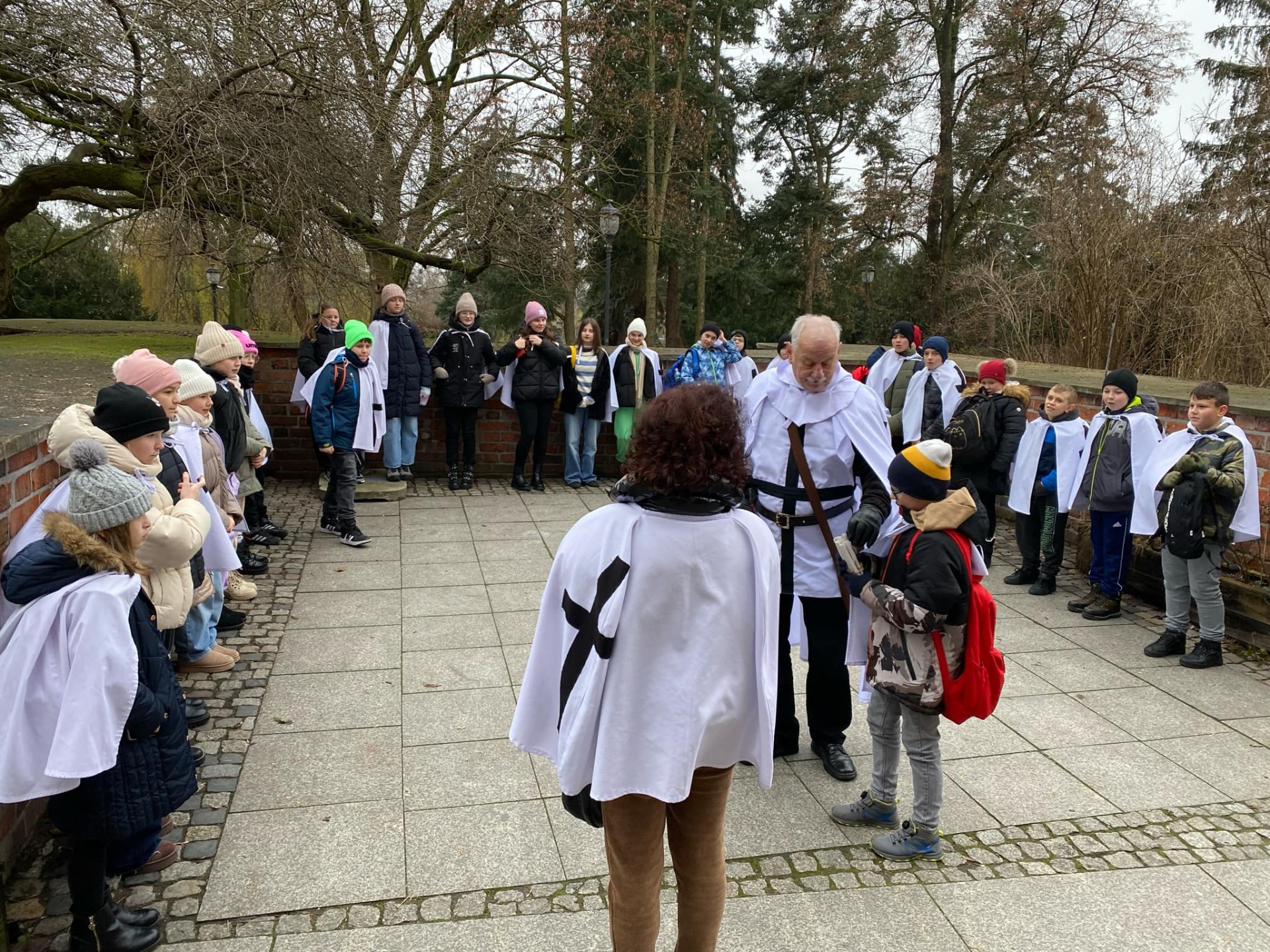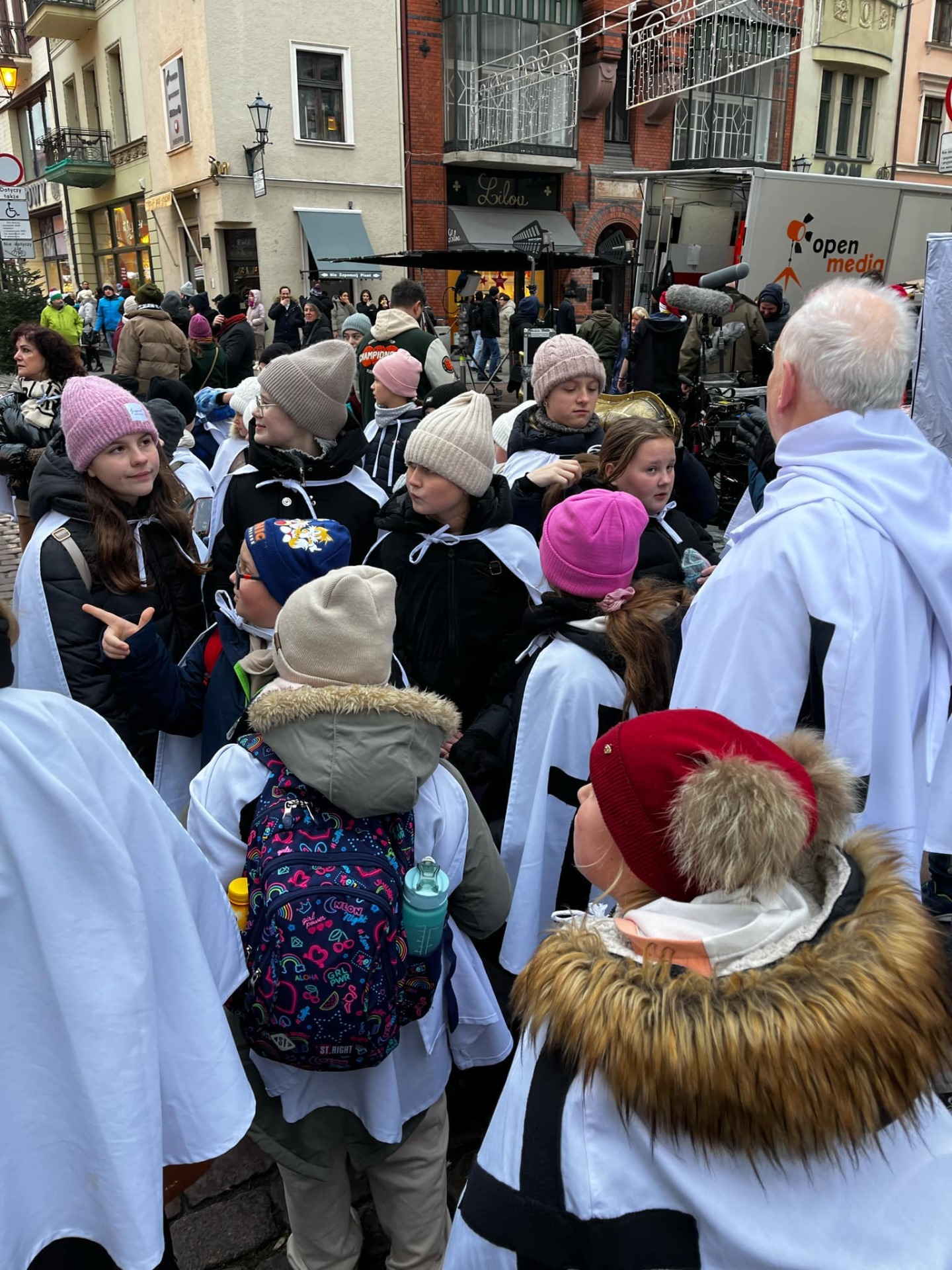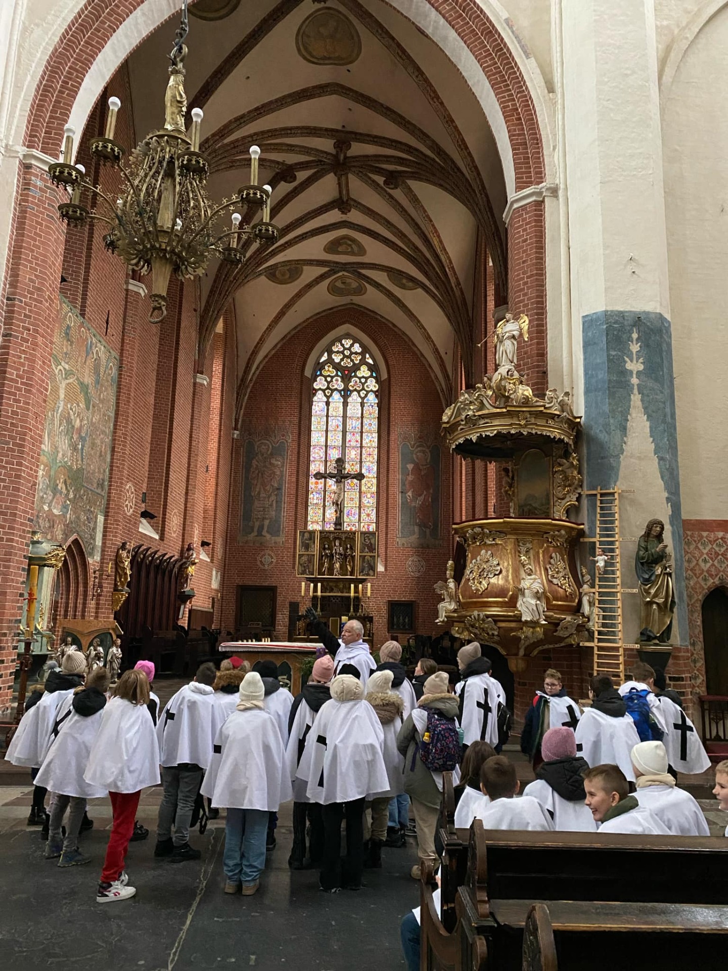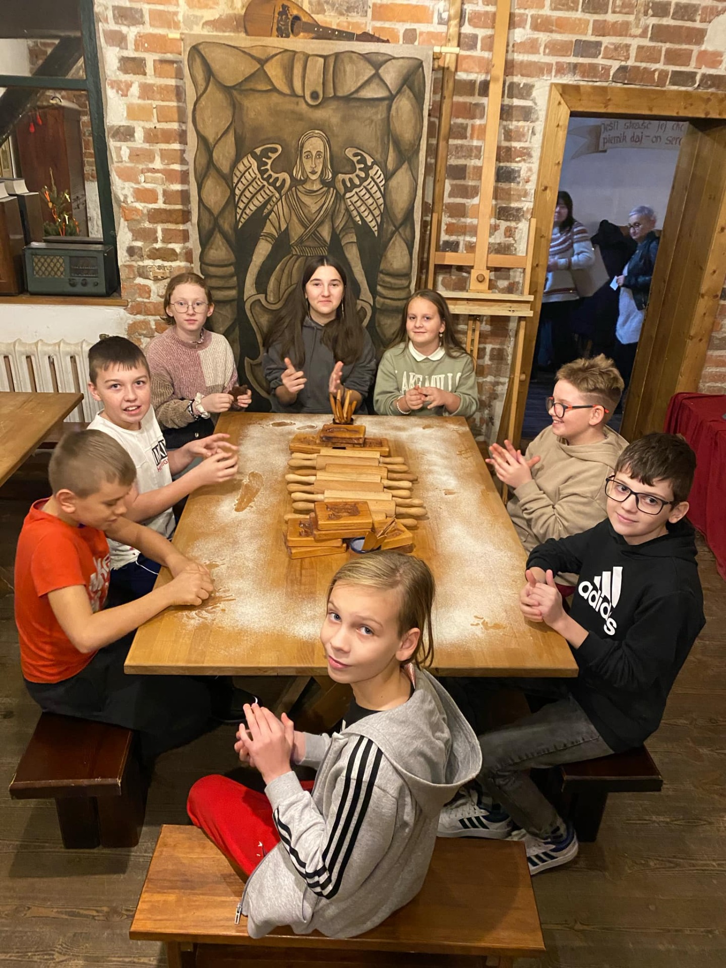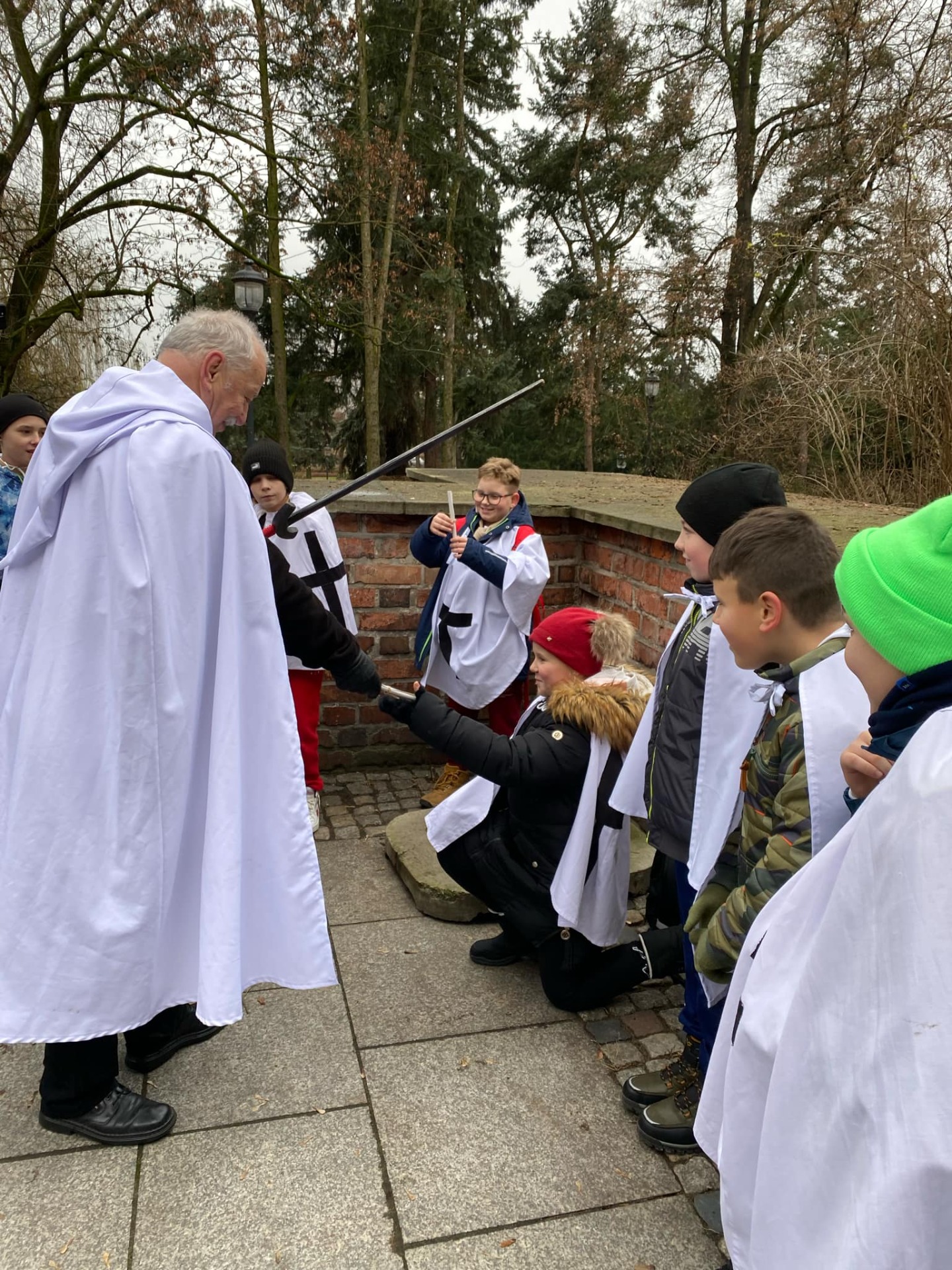 11 grudnia uczniowie klas IV-VI odwiedzili piękne miasto Toruń. Po spotkaniu z przewodnikami w dwóch grupach udali się na zwiedzanie przebrani w krzyżackie stroje. Podczas spaceru uliczkami miasta poznali Toruń z epoki średniowiecza. Usłyszeli anegdoty i przypowieści z codziennego życia torunian, zobaczyli Katedrę św. Janów, Dom Mikołaja Kopernika, Krzywą Wieżę, Rynek Staromiejski z gotyckim Ratuszem i pomnikiem Kopernika.Mieli okazję zobaczyć również pracę aktorów: p. Olgi Bołądź, p. Barbary Kurdej-Szatan podczas nagrywania scen do filmu „Piernikowe serce” w reżyserii Piotra Wereśniaka. Minęli również znanego dziennikarza, kucharza i podróżnika p. Roberta Makłowicza. Po zakończeniu zwiedzania odpoczęli w wygodnych fotelach w sali Planetarium i obejrzeli seans „Zostać astronomem”. Po seansie mogli kupić pamiątki, pierniki i pooglądać stoiska Jarmarku Bozonarodzeniowego. Głównym punktem wyjazdu były odwiedziny w Piekarni Starotoruńskiej. Podczas pokazu i zajęć poznali historię wypiekania pierników, a także mogli samodzielnie przygotować te słodkie ciastka i po upieczeniu zabrać do domu.W drodze powrotnej nie mogło oczywiście zabraknąć pobytu w restauracji McDonald’s. Podczas jazdy autokarem uczniowie śpiewali kolędy i ulubione piosenki. Zadowoleni i zmęczeni podróżą o godzinie 19.00 spotkali się pod szkołą z rodzicami.