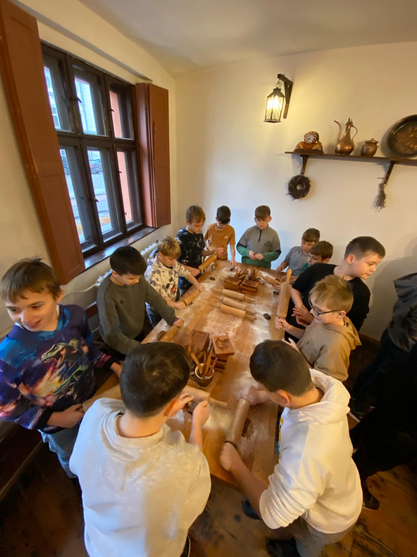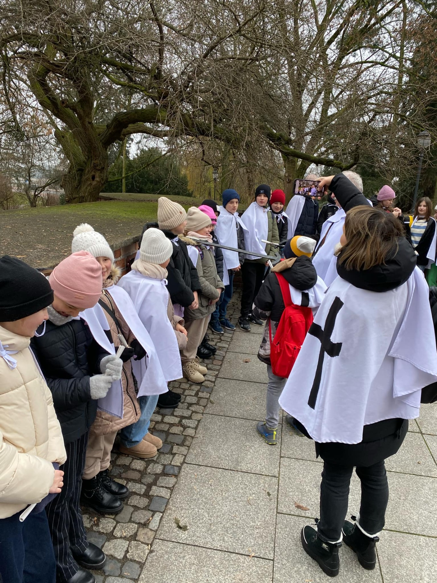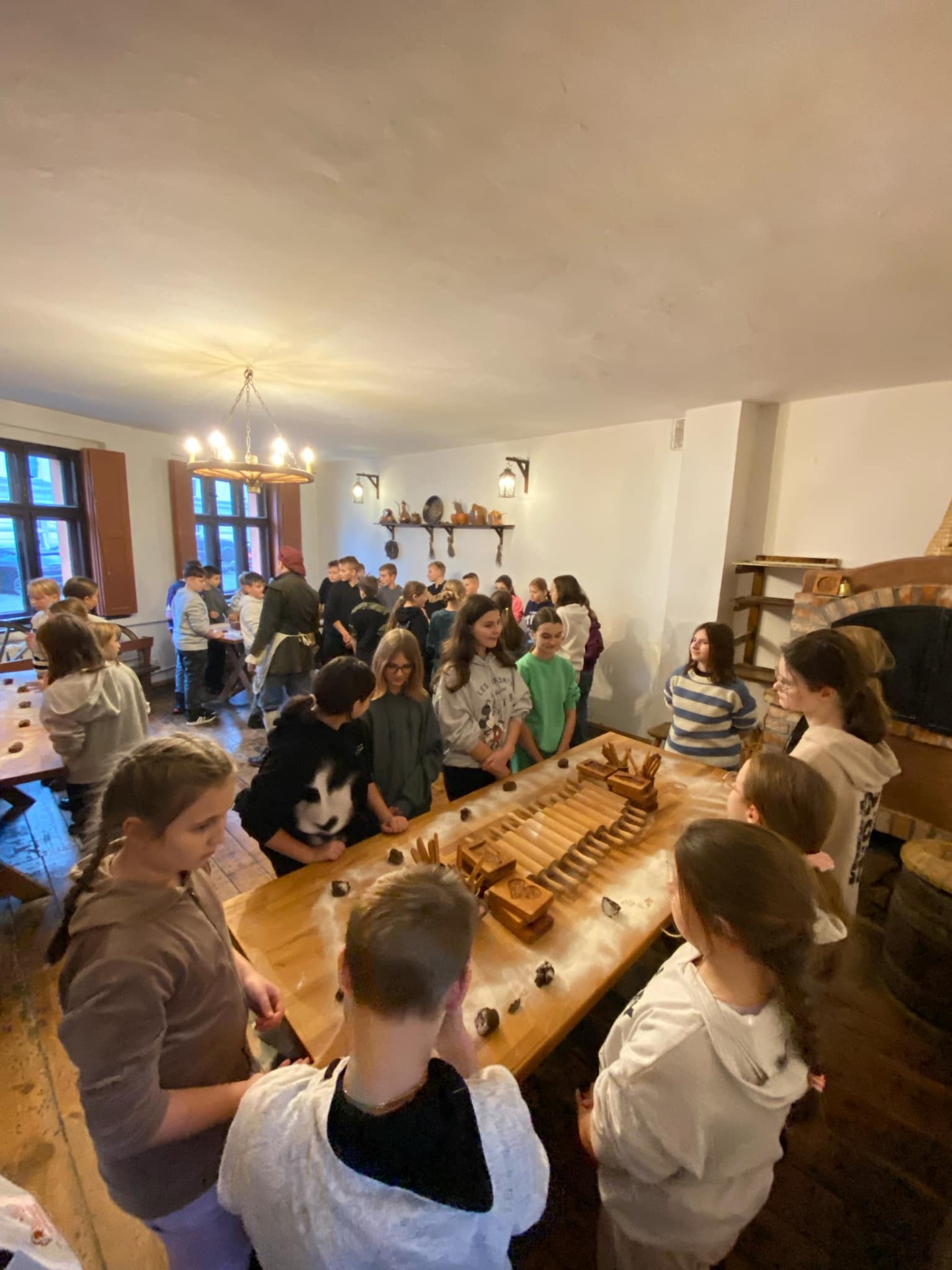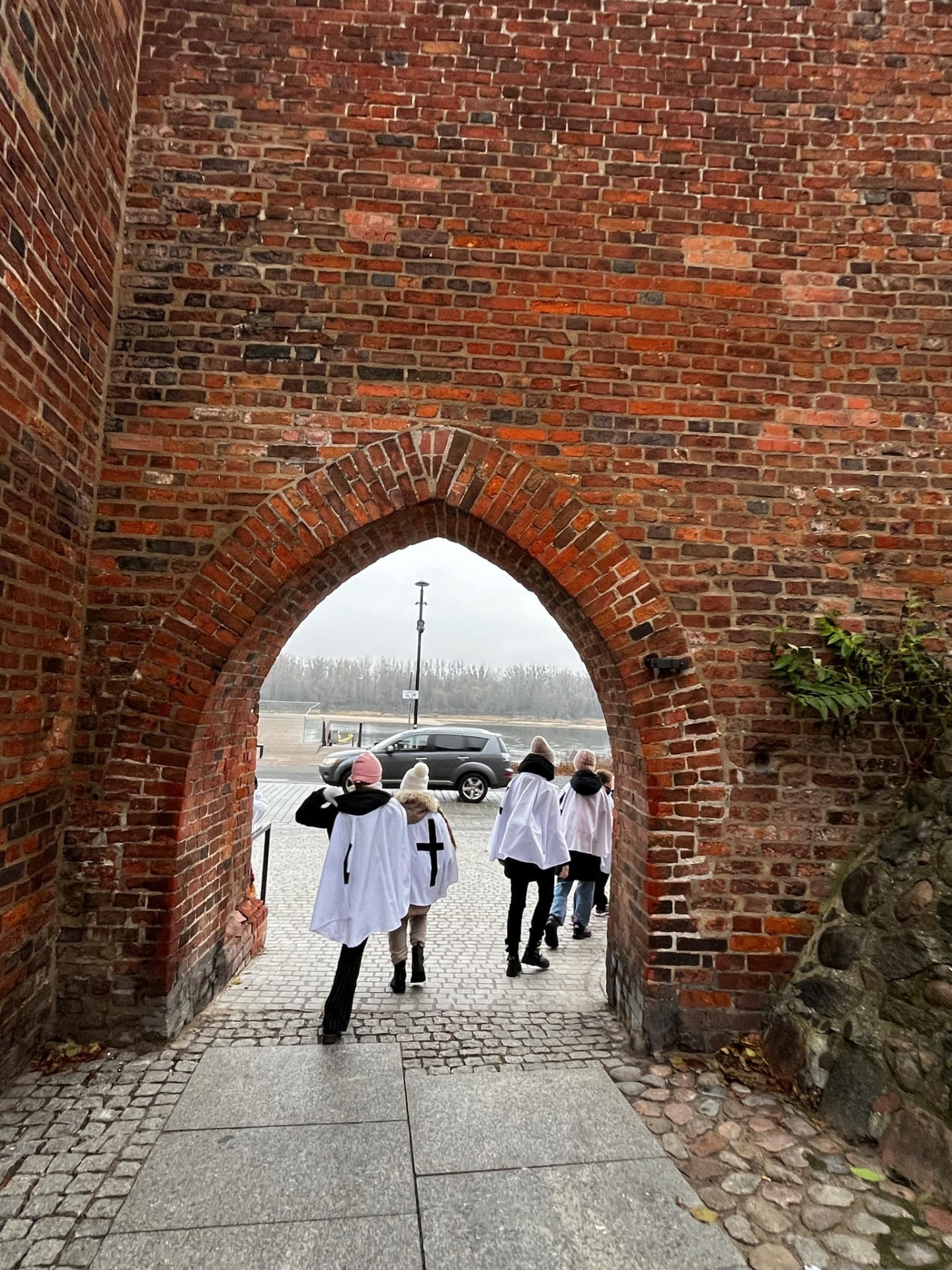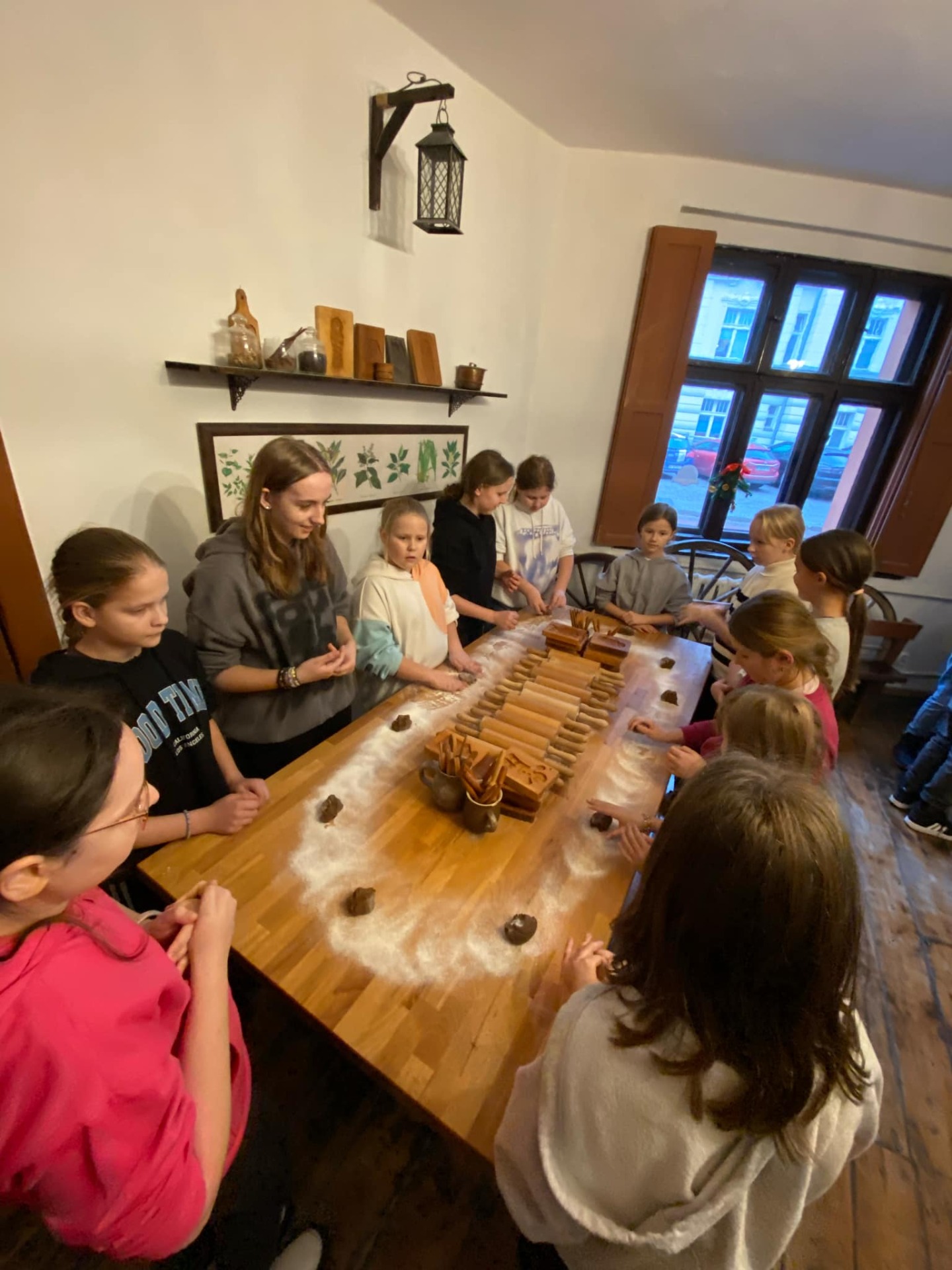 11 grudnia uczniowie klas IV-VI odwiedzili piękne miasto Toruń. Po spotkaniu z przewodnikami w dwóch grupach udali się na zwiedzanie przebrani w krzyżackie stroje. Podczas spaceru uliczkami miasta poznali Toruń z epoki średniowiecza. Usłyszeli anegdoty i przypowieści z codziennego życia torunian, zobaczyli Katedrę św. Janów, Dom Mikołaja Kopernika, Krzywą Wieżę, Rynek Staromiejski z gotyckim Ratuszem i pomnikiem Kopernika.Mieli okazję zobaczyć również pracę aktorów: p. Olgi Bołądź, p. Barbary Kurdej-Szatan podczas nagrywania scen do filmu „Piernikowe serce” w reżyserii Piotra Wereśniaka. Minęli również znanego dziennikarza, kucharza i podróżnika p. Roberta Makłowicza. Po zakończeniu zwiedzania odpoczęli w wygodnych fotelach w sali Planetarium i obejrzeli seans „Zostać astronomem”. Po seansie mogli kupić pamiątki, pierniki i pooglądać stoiska Jarmarku Bozonarodzeniowego. Głównym punktem wyjazdu były odwiedziny w Piekarni Starotoruńskiej. Podczas pokazu i zajęć poznali historię wypiekania pierników, a także mogli samodzielnie przygotować te słodkie ciastka i po upieczeniu zabrać do domu.W drodze powrotnej nie mogło oczywiście zabraknąć pobytu w restauracji McDonald’s. Podczas jazdy autokarem uczniowie śpiewali kolędy i ulubione piosenki. Zadowoleni i zmęczeni podróżą o godzinie 19.00 spotkali się pod szkołą z rodzicami.
