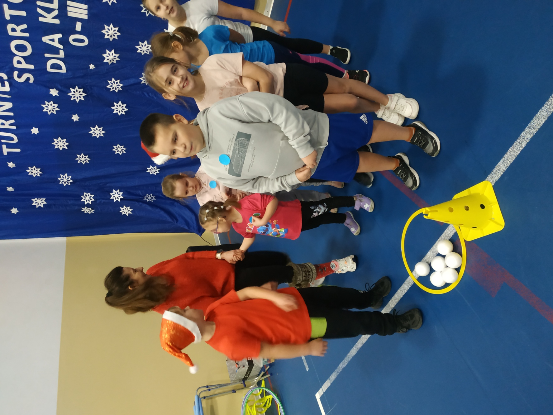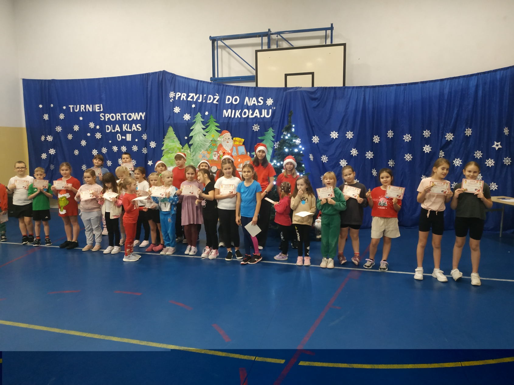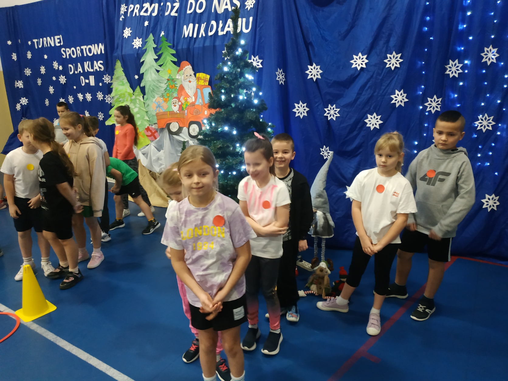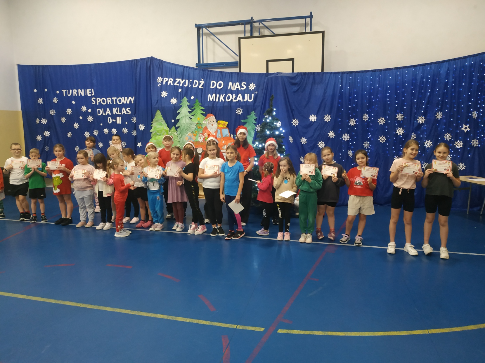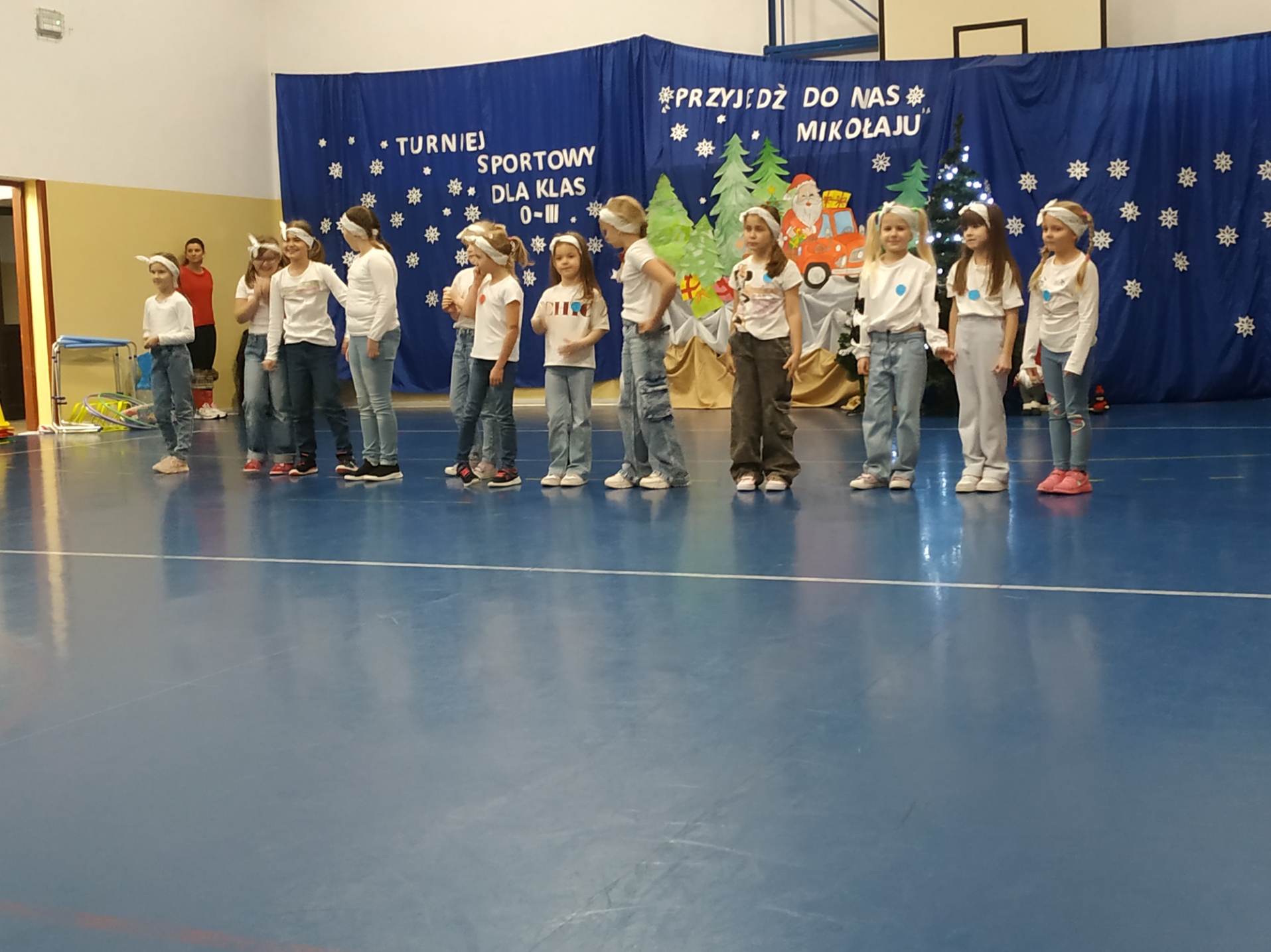 W dniu 16 grudnia w naszej szkole odbył się Mikołajkowy Turniej Sportowy, w którym wzięli udział uczniowie zerówki oraz klas I-III. Turniej zorganizowała Pani Dorota Supeł przy wsparciu klasy Vb. Uczniowie mieli okazję zmierzyć się w różnych konkurencjach sportowych, takich jak wyścigi w kocach, slalom z kijem hokejowym oraz układanie piłek z pozycji leżącej. Wspaniała atmosfera i radość z rywalizacji sprawiły, że wydarzenie na długo pozostanie w pamięci uczestników.