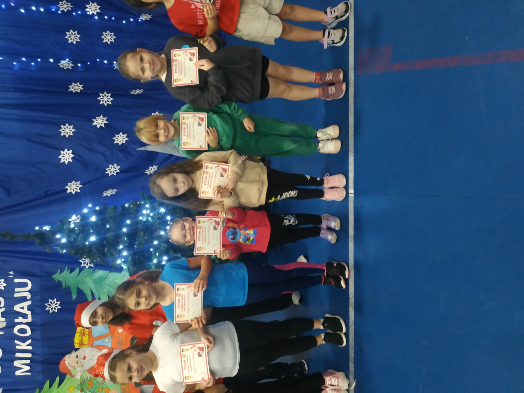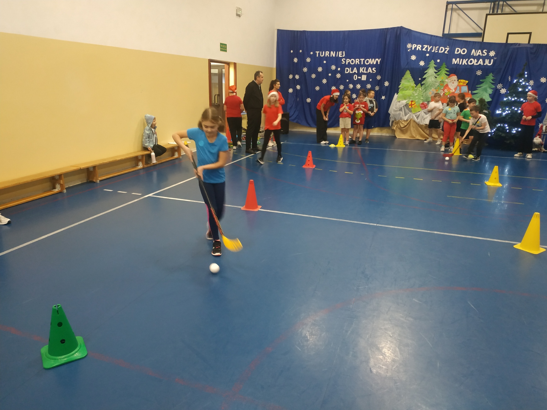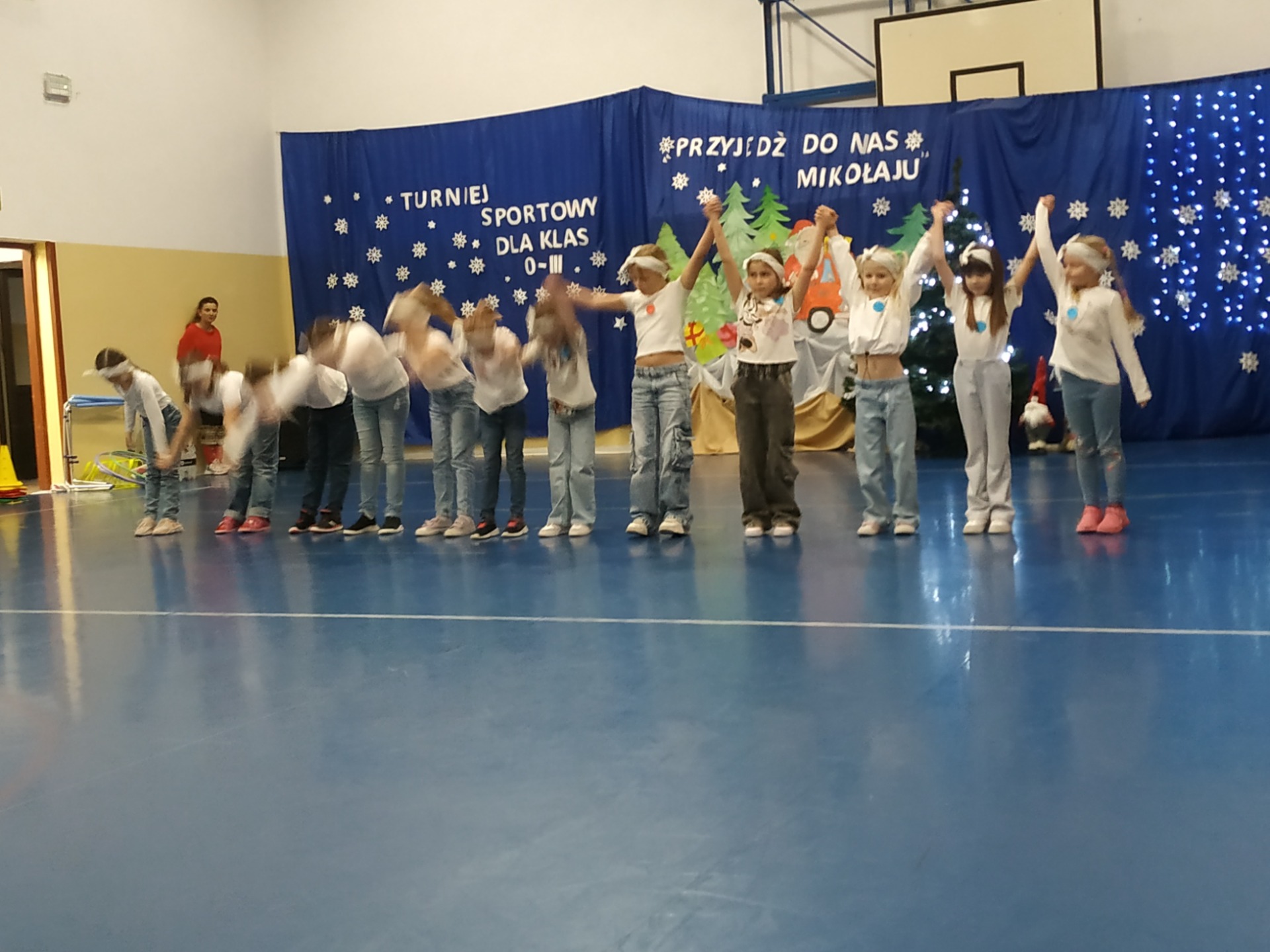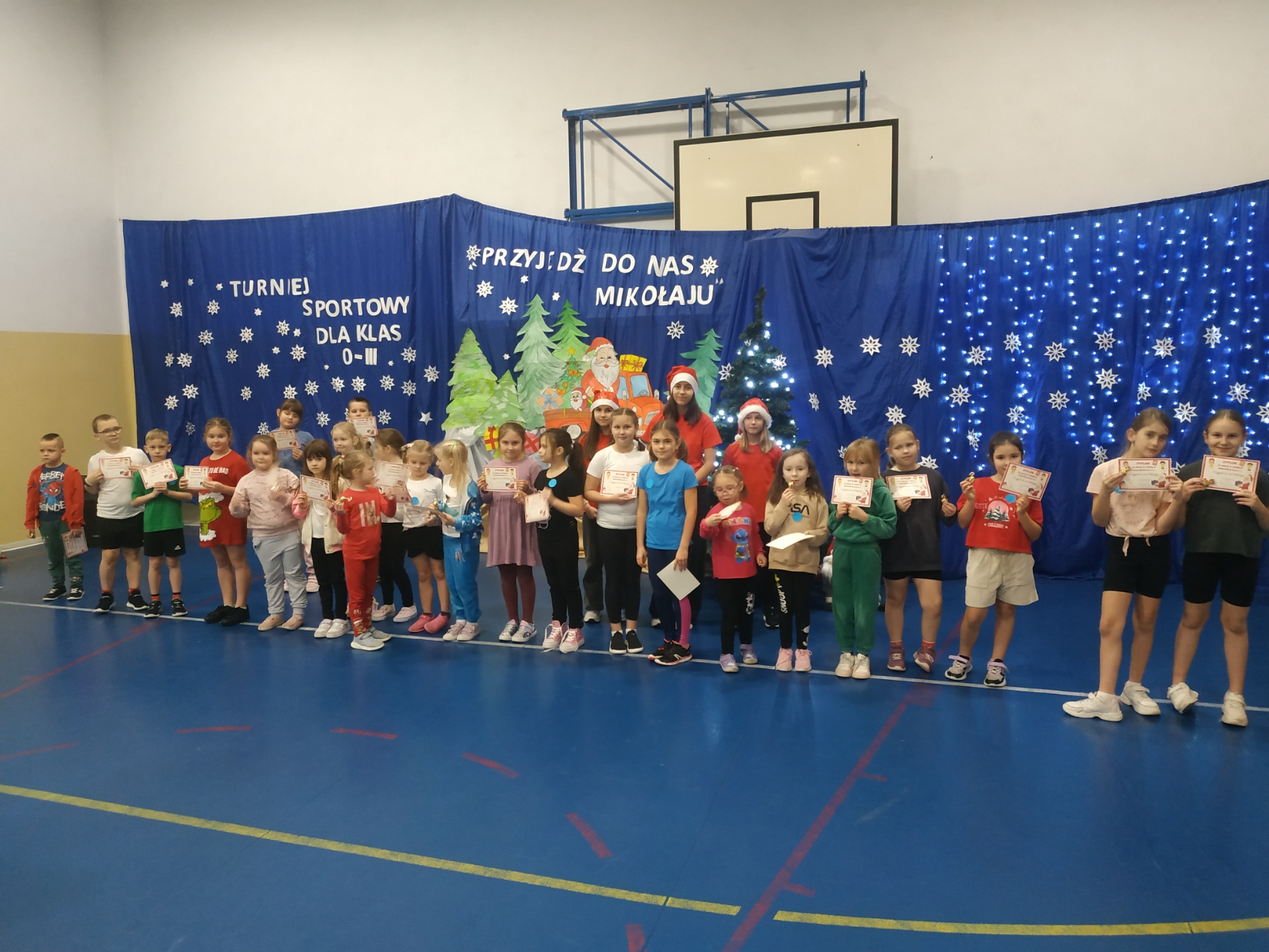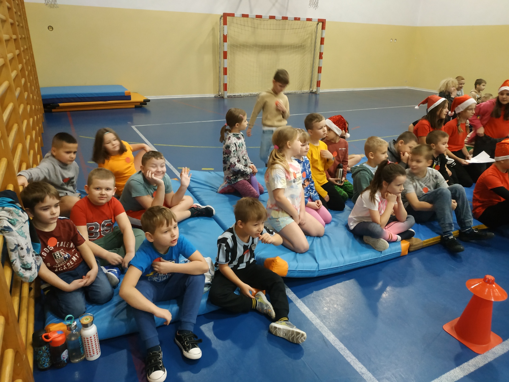 W dniu 16 grudnia w naszej szkole odbył się Mikołajkowy Turniej Sportowy, w którym wzięli udział uczniowie zerówki oraz klas I-III. Turniej zorganizowała Pani Dorota Supeł przy wsparciu klasy Vb. Uczniowie mieli okazję zmierzyć się w różnych konkurencjach sportowych, takich jak wyścigi w kocach, slalom z kijem hokejowym oraz układanie piłek z pozycji leżącej. Wspaniała atmosfera i radość z rywalizacji sprawiły, że wydarzenie na długo pozostanie w pamięci uczestników.