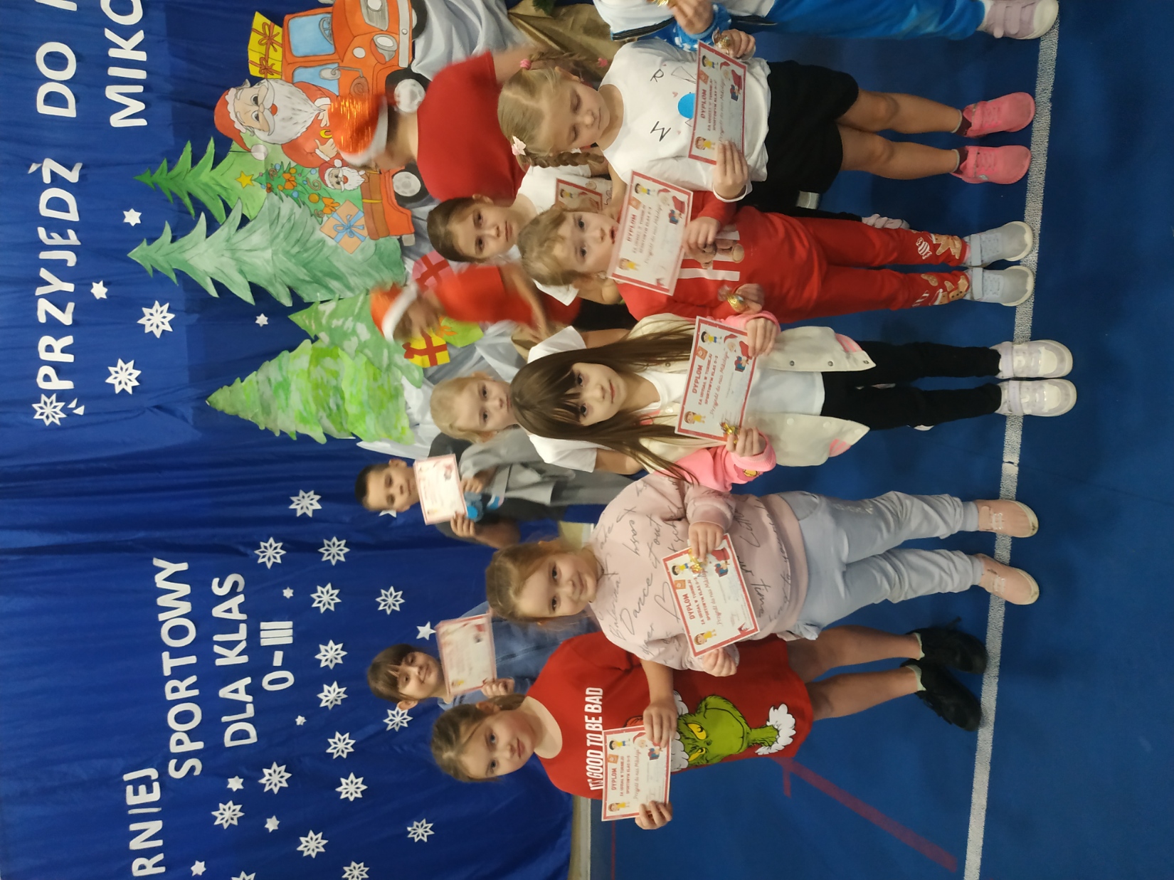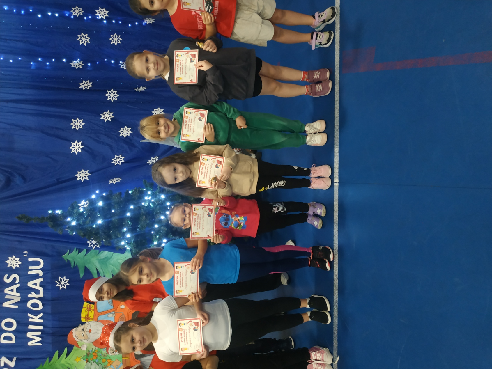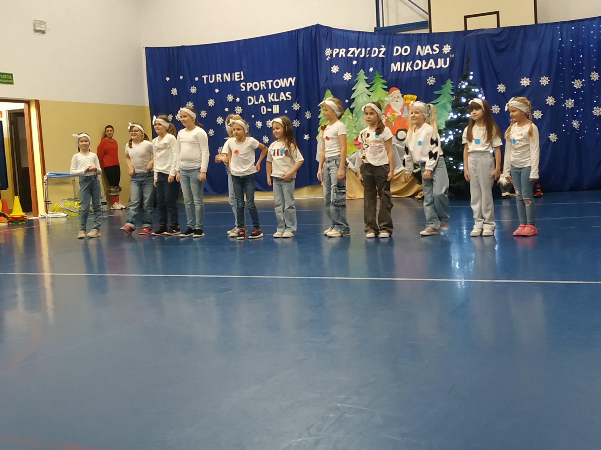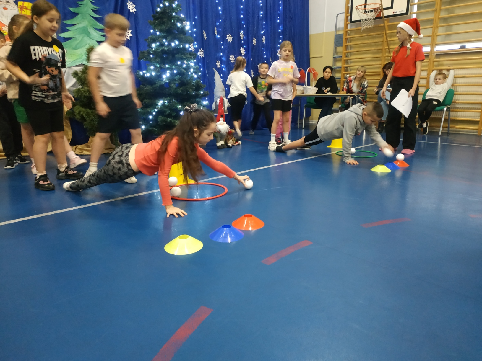 W dniu 16 grudnia w naszej szkole odbył się Mikołajkowy Turniej Sportowy, w którym wzięli udział uczniowie zerówki oraz klas I-III. Turniej zorganizowała Pani Dorota Supeł przy wsparciu klasy Vb. Uczniowie mieli okazję zmierzyć się w różnych konkurencjach sportowych, takich jak wyścigi w kocach, slalom z kijem hokejowym oraz układanie piłek z pozycji leżącej. Wspaniała atmosfera i radość z rywalizacji sprawiły, że wydarzenie na długo pozostanie w pamięci uczestników.
