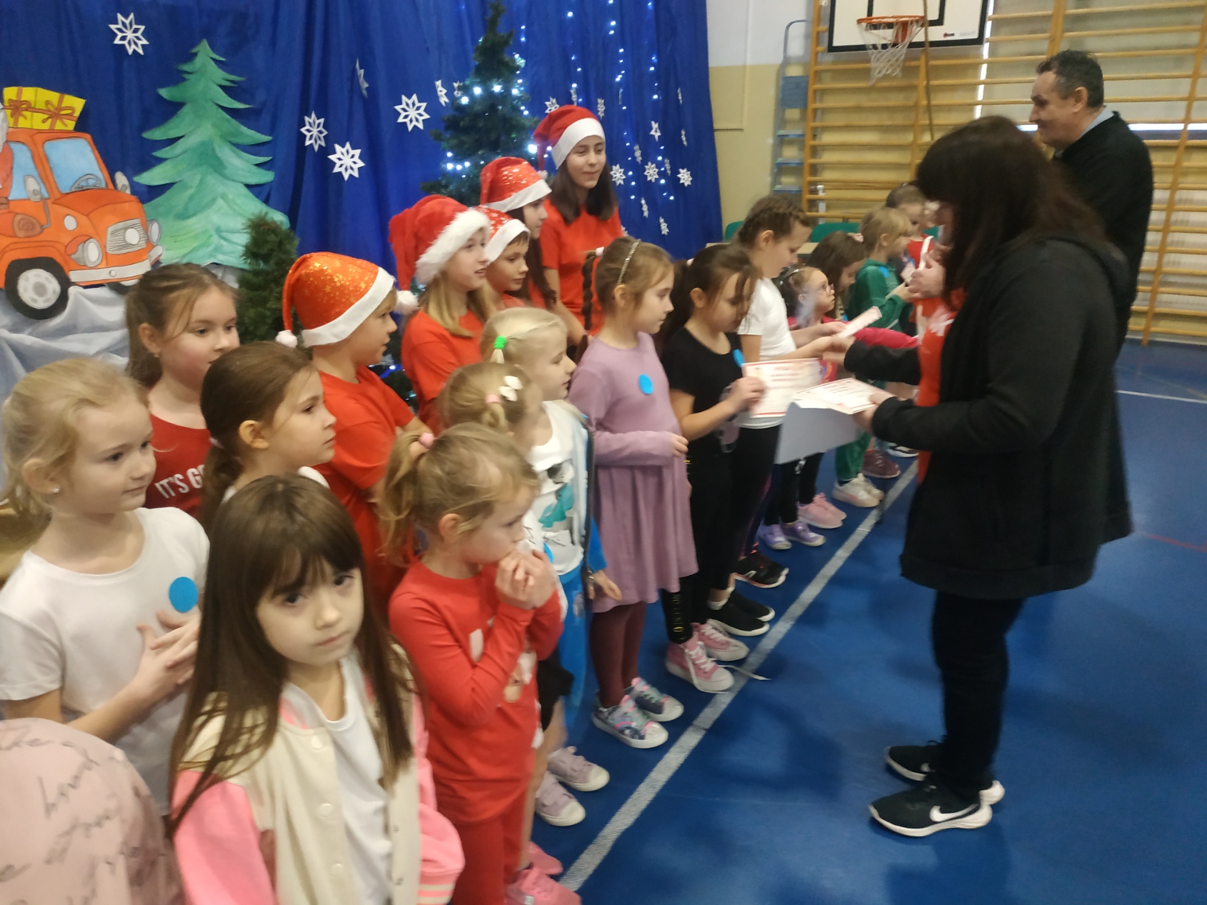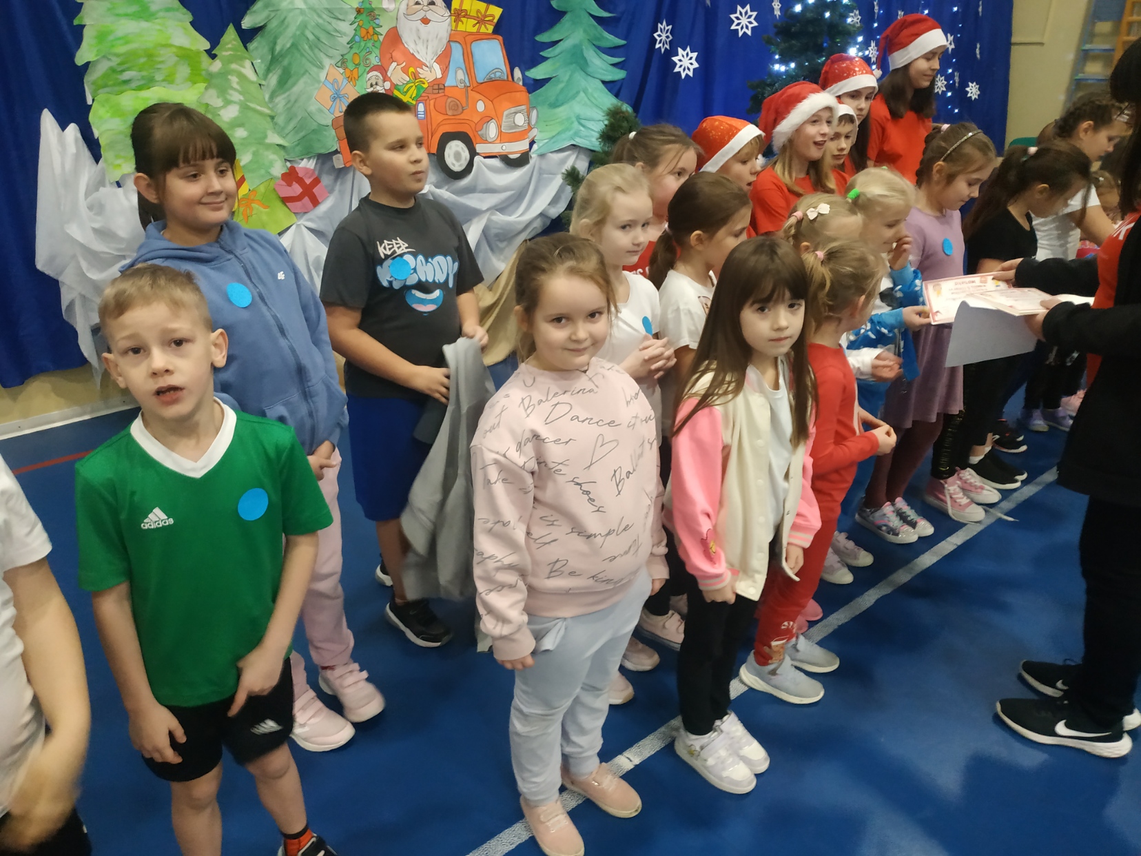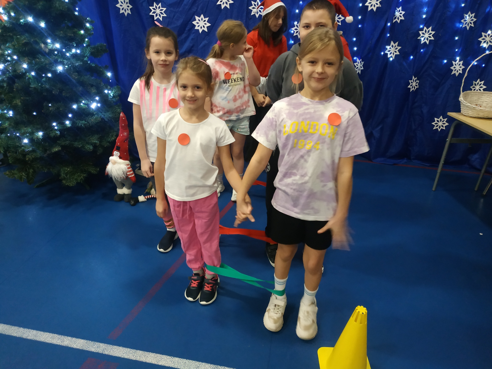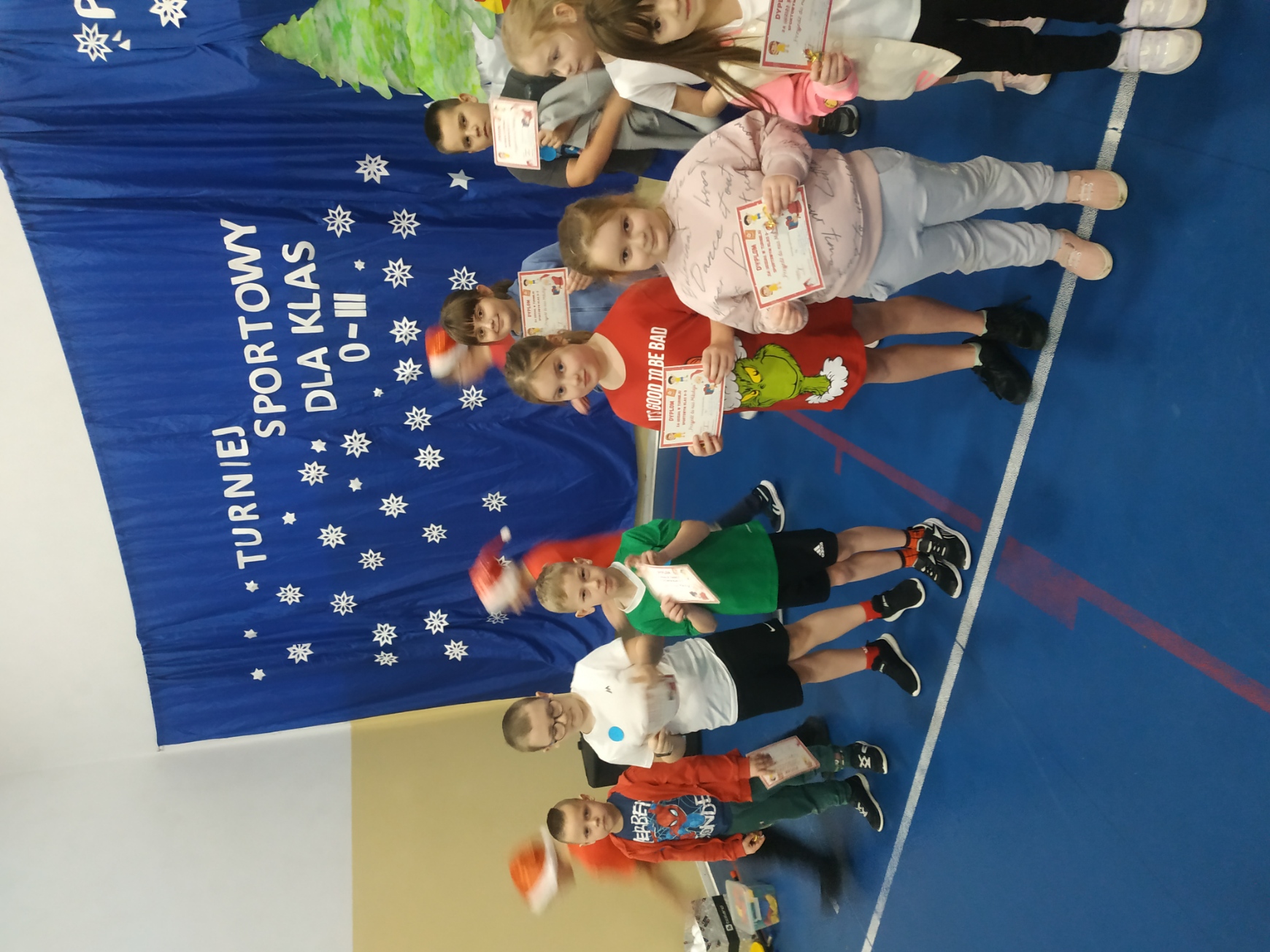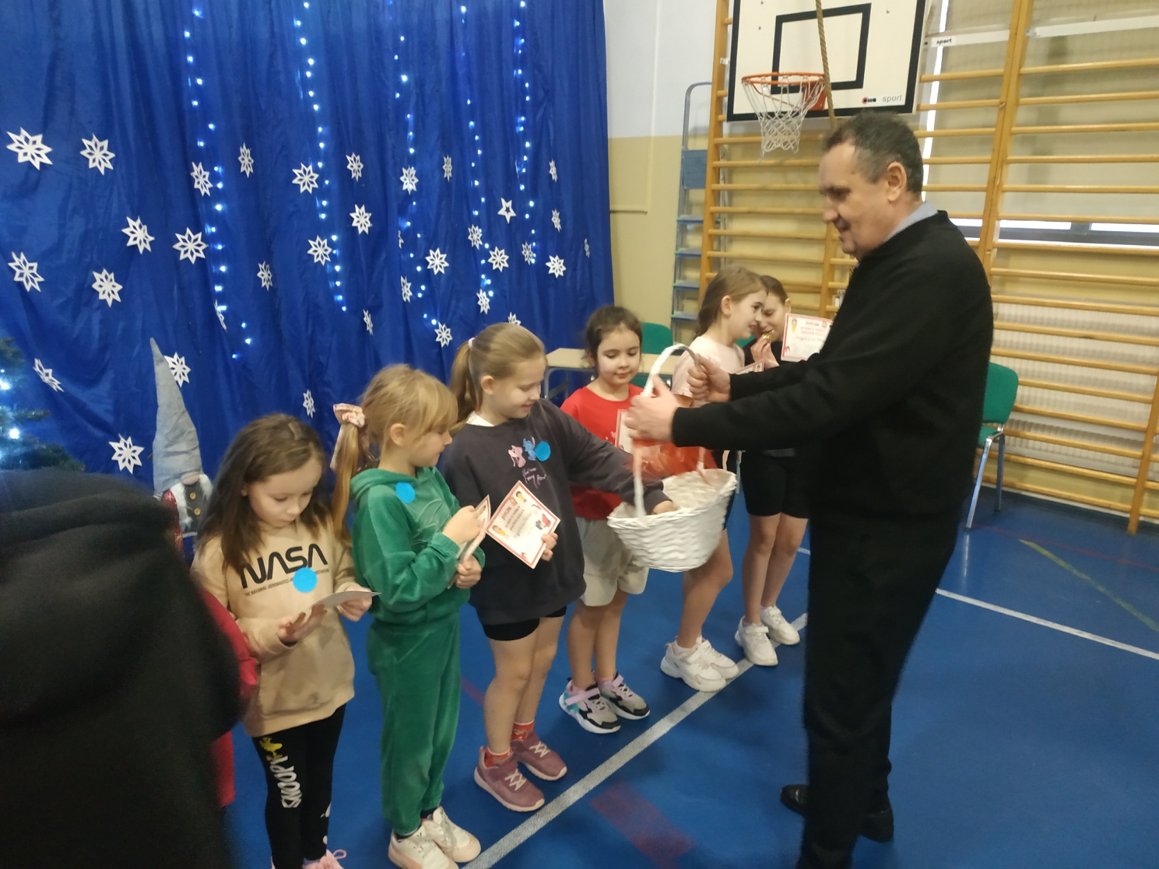 W dniu 16 grudnia w naszej szkole odbył się Mikołajkowy Turniej Sportowy, w którym wzięli udział uczniowie zerówki oraz klas I-III. Turniej zorganizowała Pani Dorota Supeł przy wsparciu klasy Vb. Uczniowie mieli okazję zmierzyć się w różnych konkurencjach sportowych, takich jak wyścigi w kocach, slalom z kijem hokejowym oraz układanie piłek z pozycji leżącej. Wspaniała atmosfera i radość z rywalizacji sprawiły, że wydarzenie na długo pozostanie w pamięci uczestników.