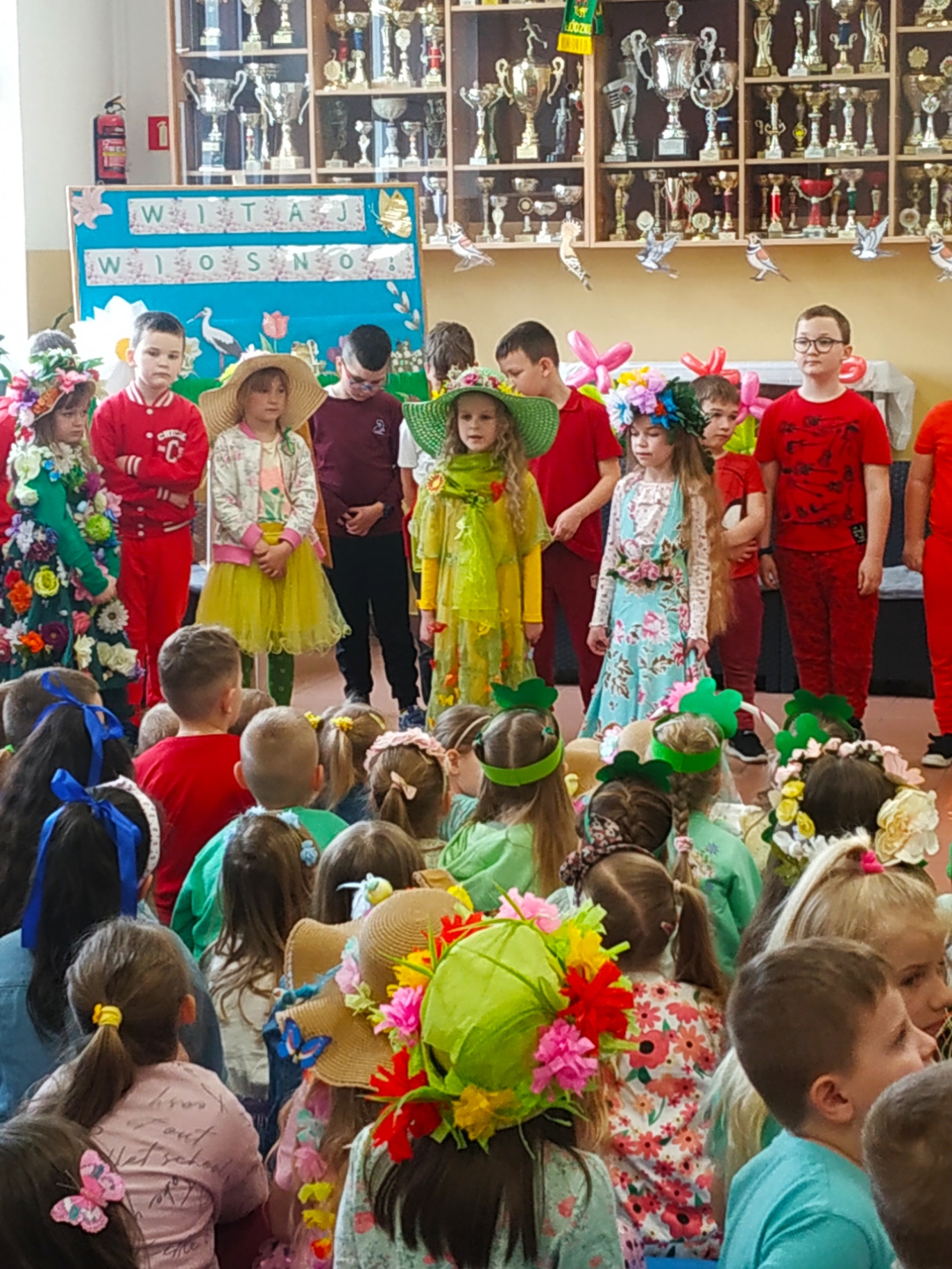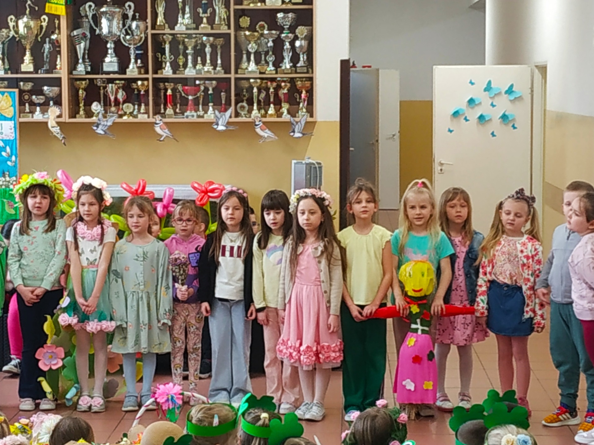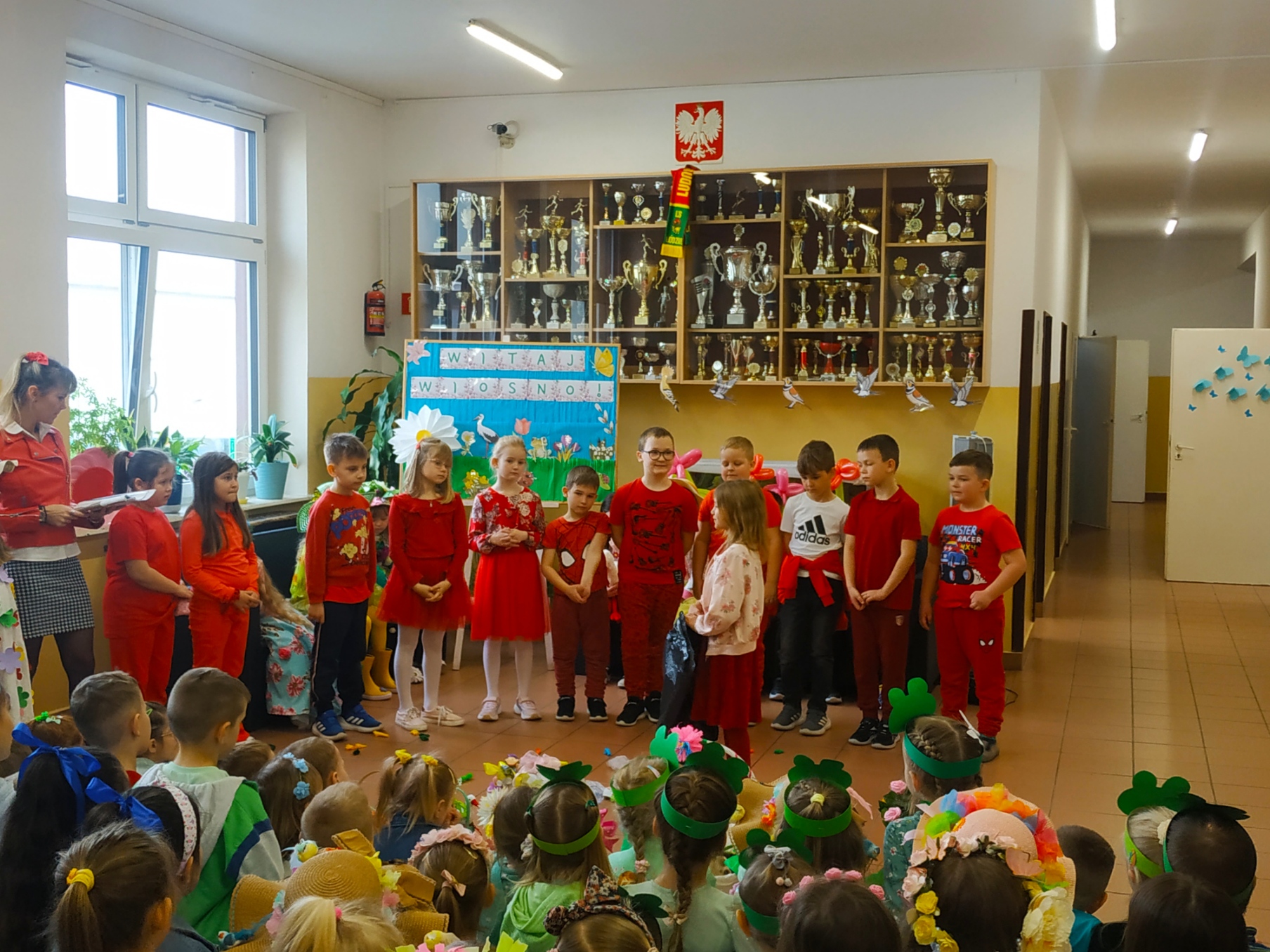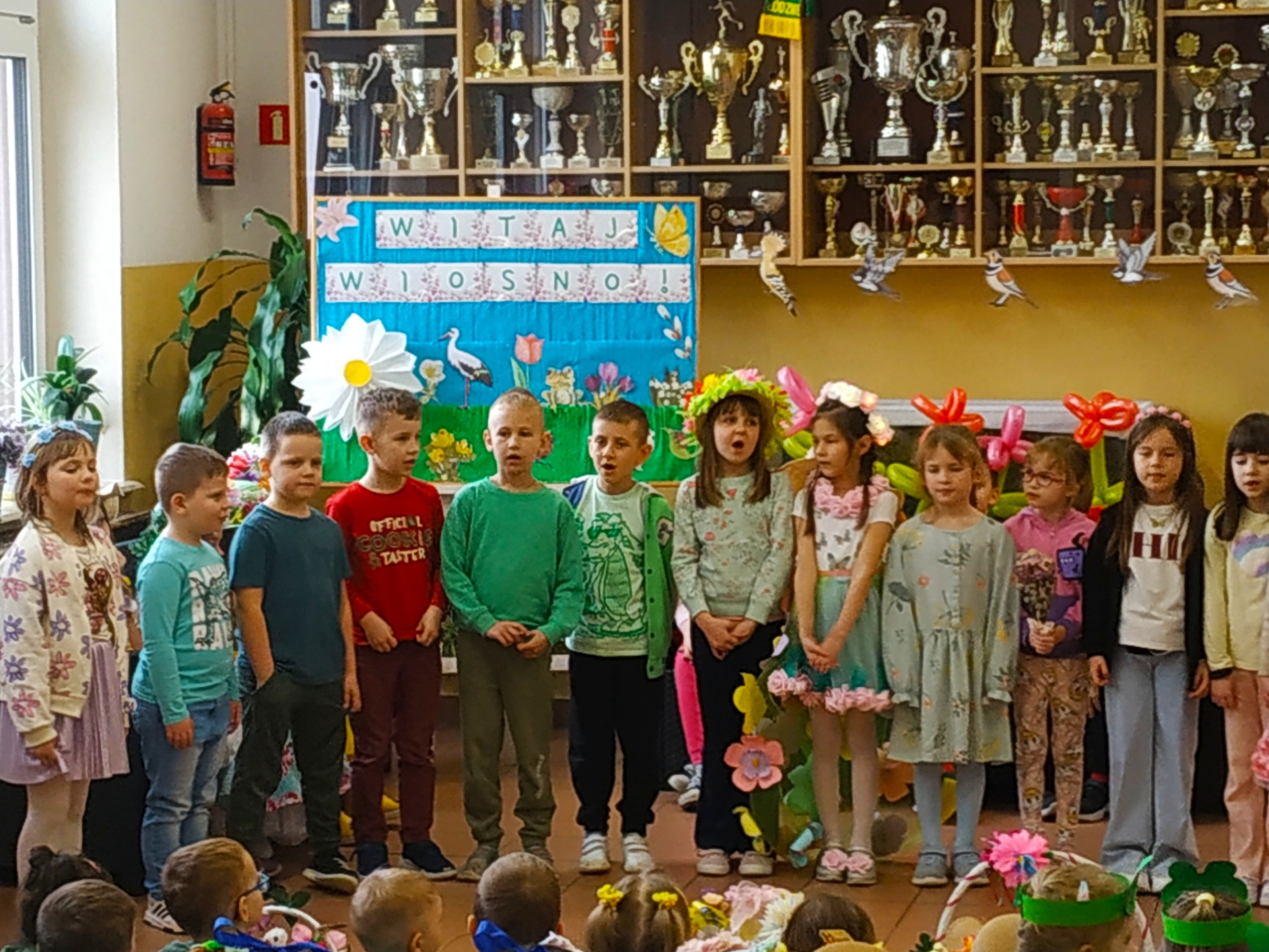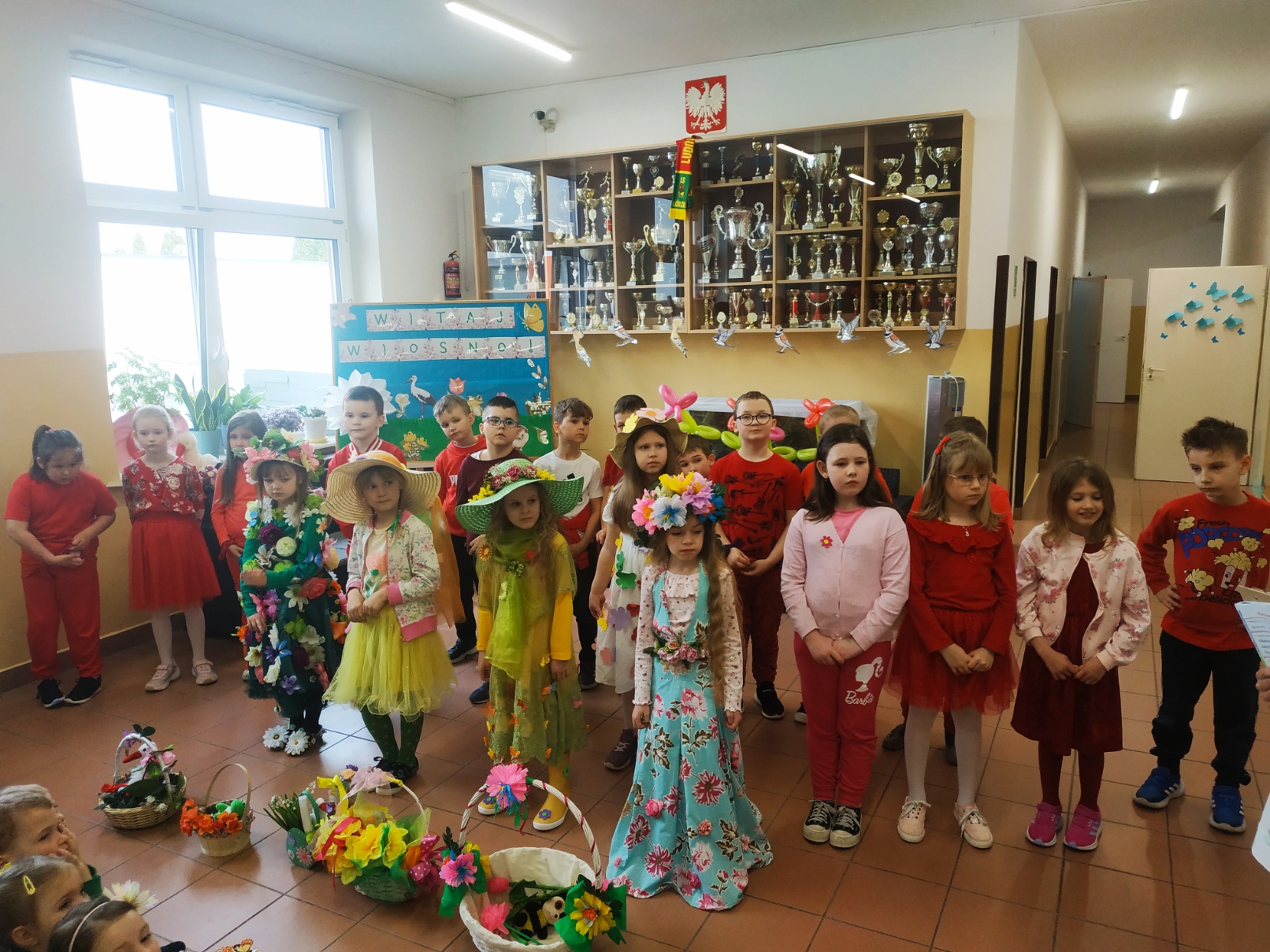 26 marca w naszej szkole odbyły się uroczyste obchody pierwszego dnia wiosny. Organizacją wydarzenia zajęły się pani Anna Rzeźnicka i pani Katarzyna Wróblewska, które wraz z uczniami klas Ia i Ib przygotowały krótkie występy artystyczne. Wspólnie z Samorządem Uczniowskim zadbały także o liczne konkursy i atrakcje, które zaangażowały całą społeczność szkolną.