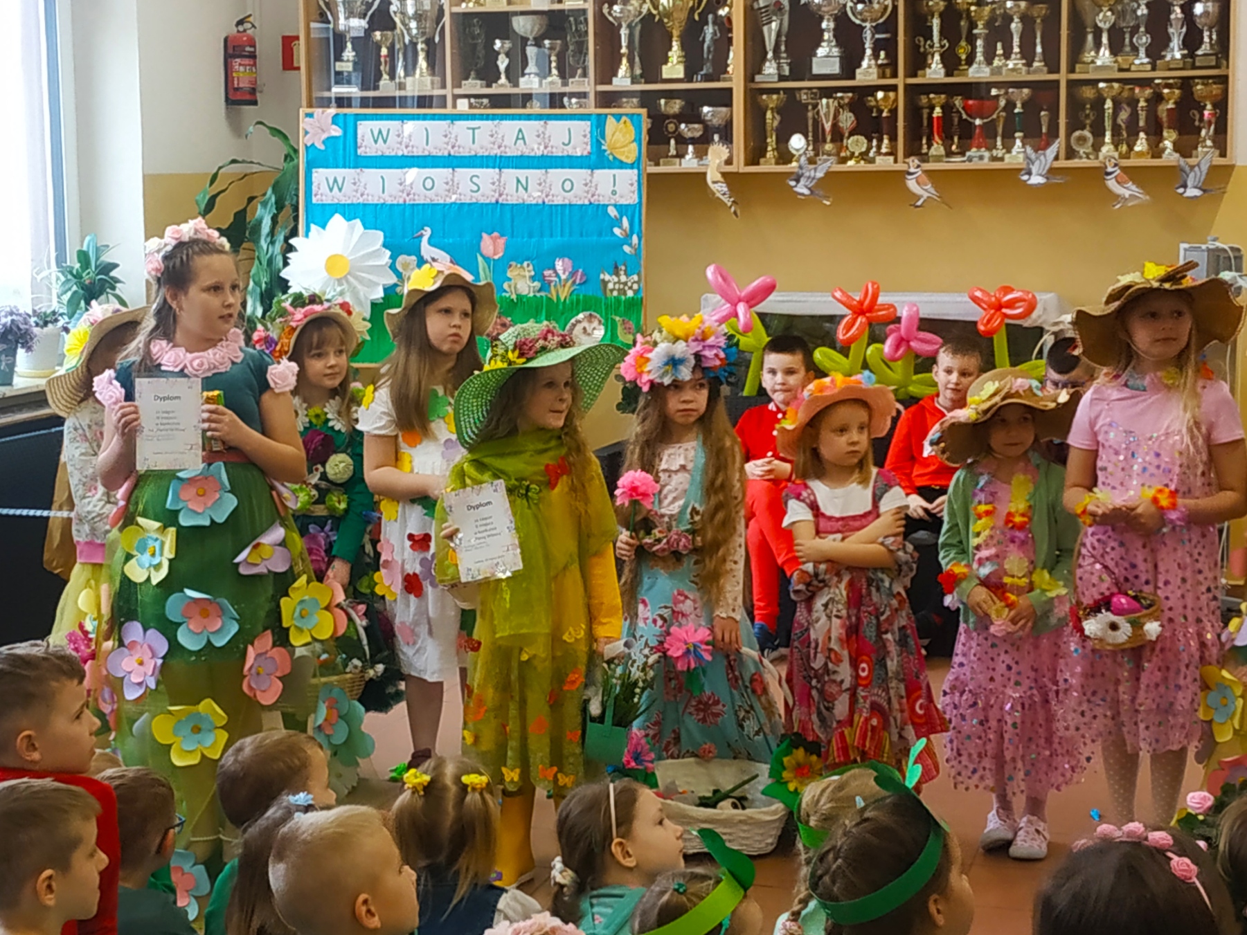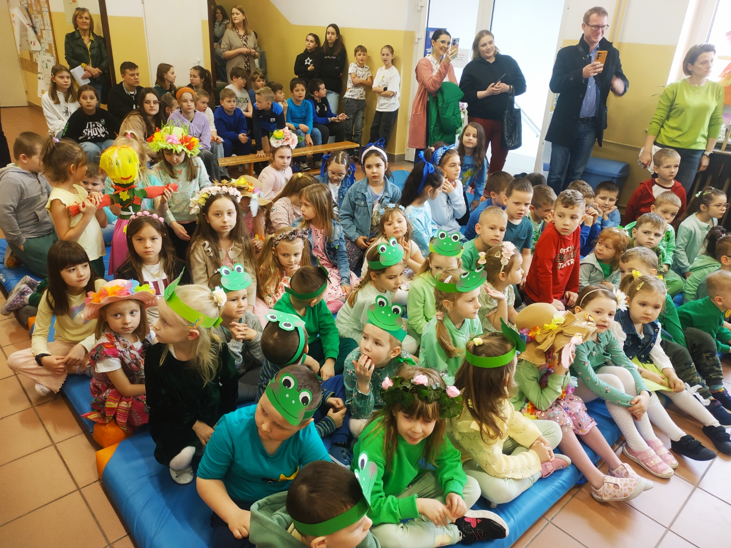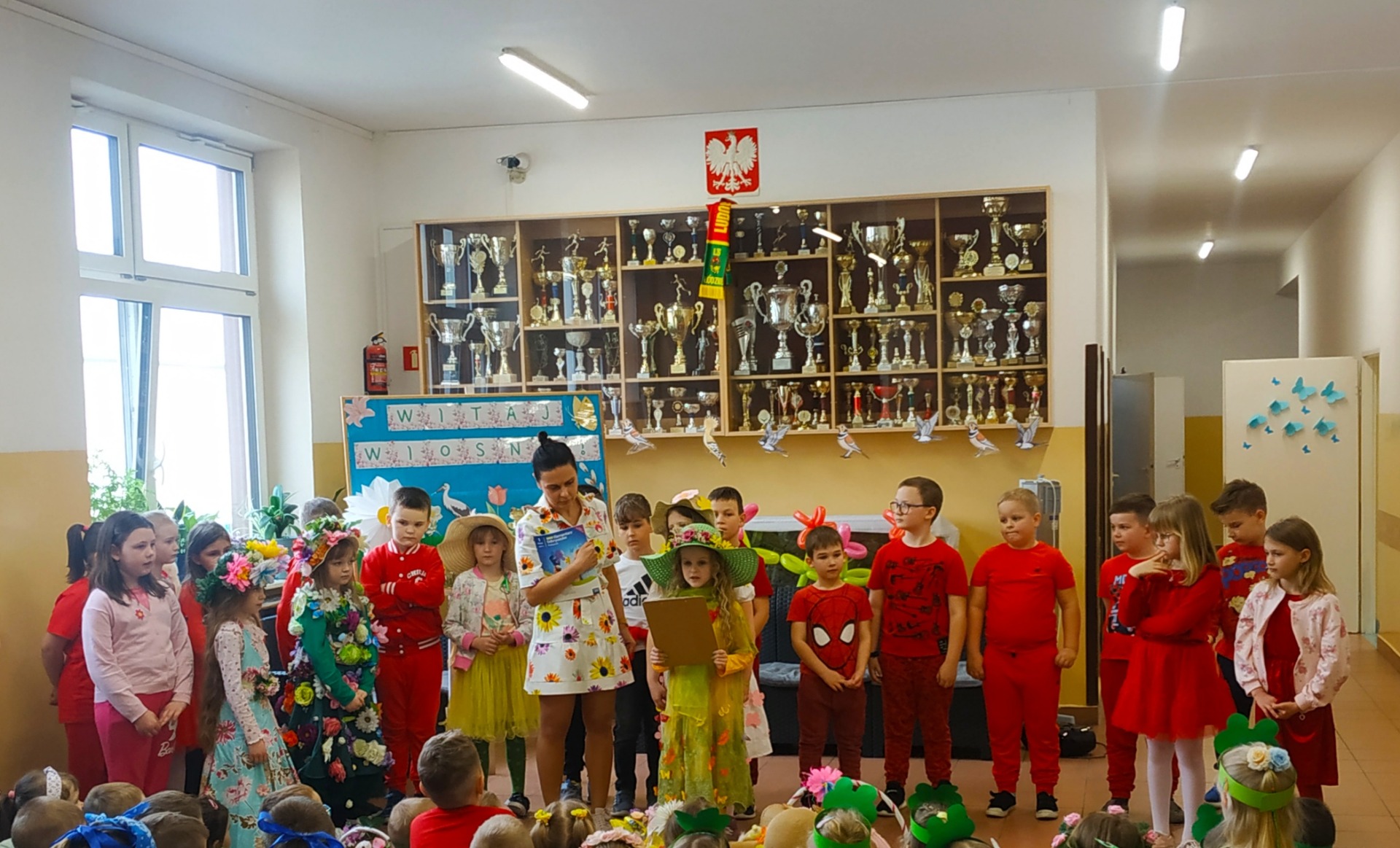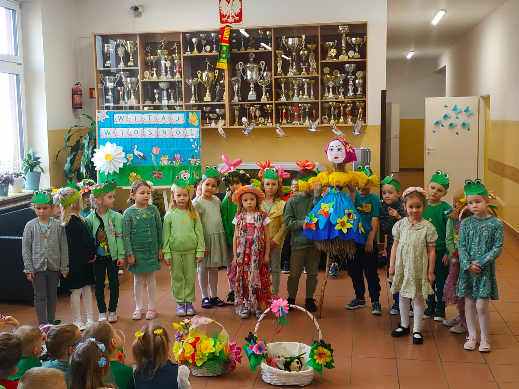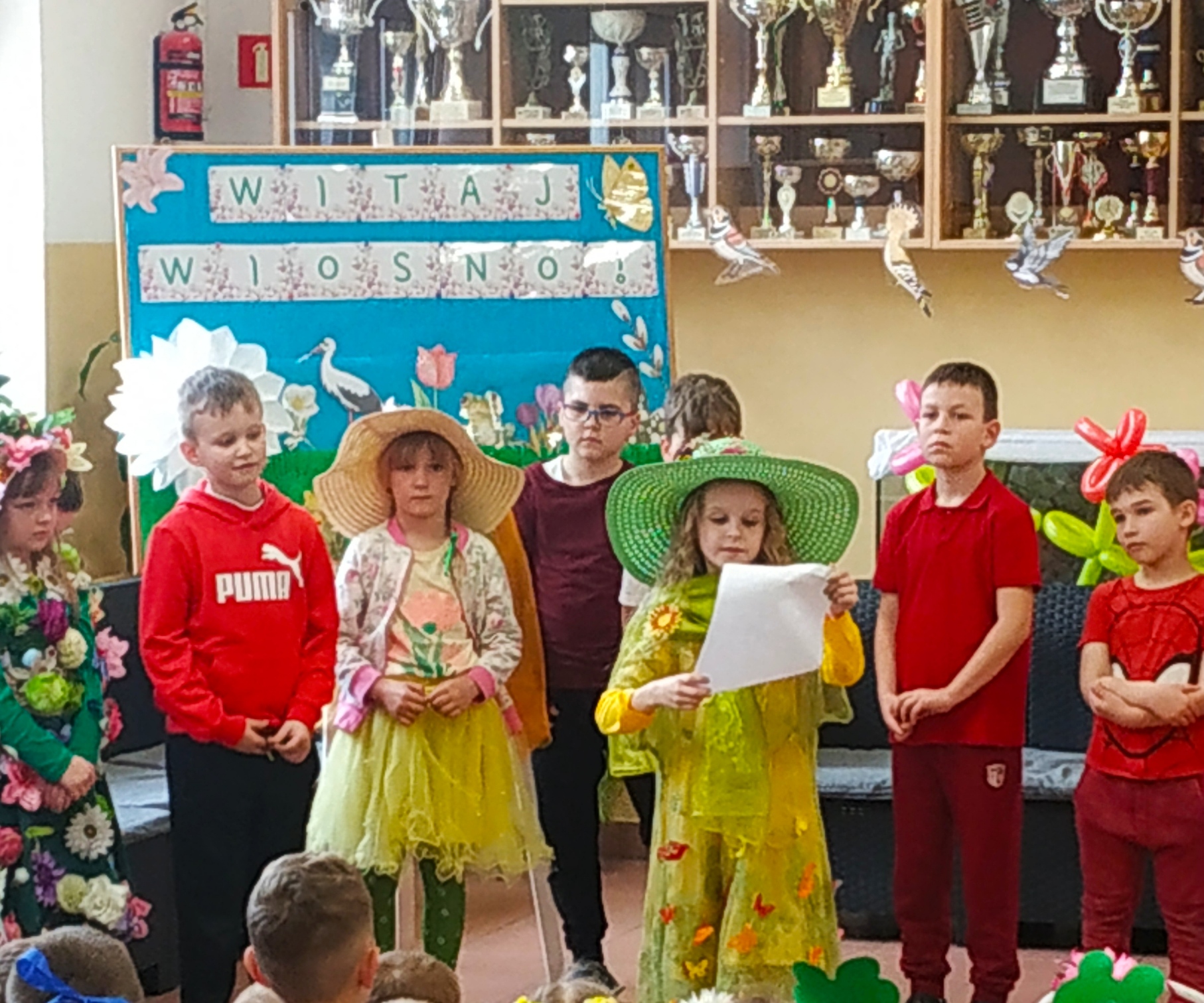 26 marca w naszej szkole odbyły się uroczyste obchody pierwszego dnia wiosny. Organizacją wydarzenia zajęły się pani Anna Rzeźnicka i pani Katarzyna Wróblewska, które wraz z uczniami klas Ia i Ib przygotowały krótkie występy artystyczne. Wspólnie z Samorządem Uczniowskim zadbały także o liczne konkursy i atrakcje, które zaangażowały całą społeczność szkolną.