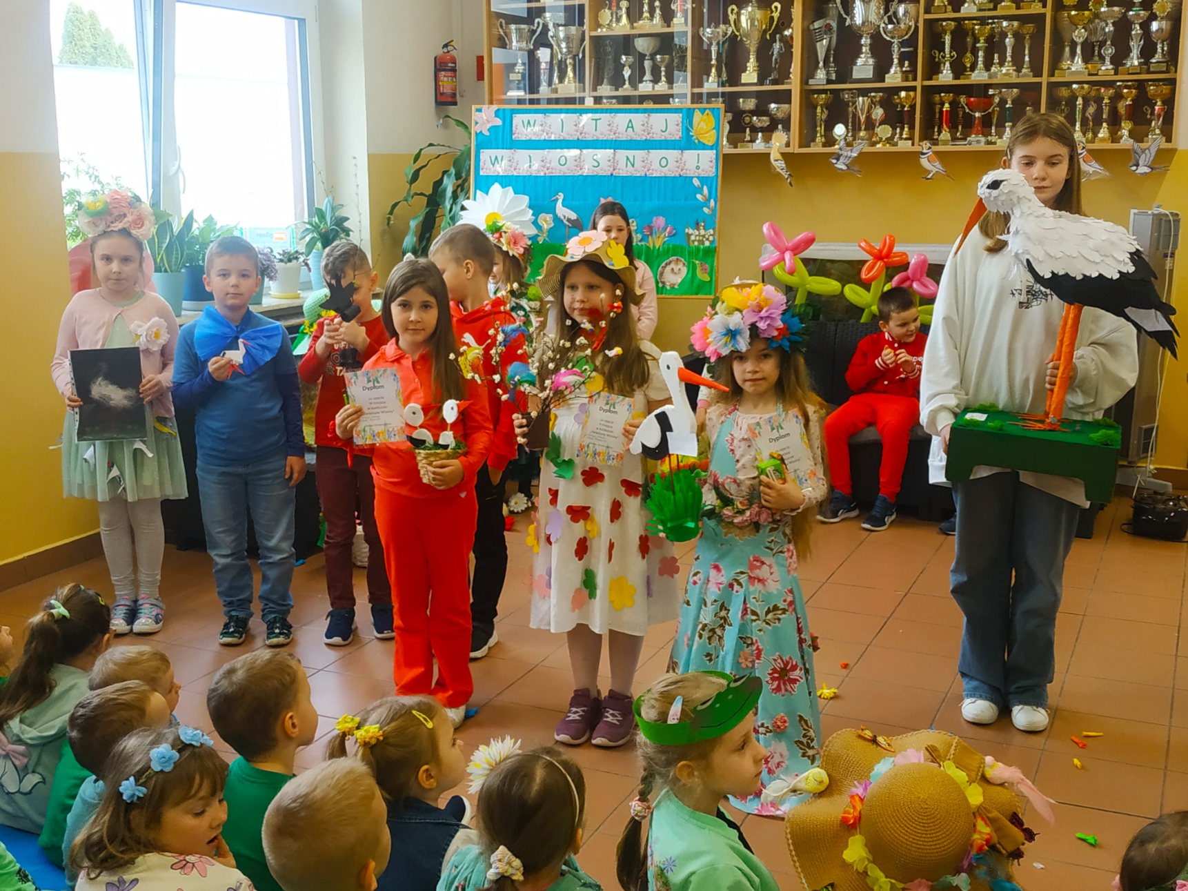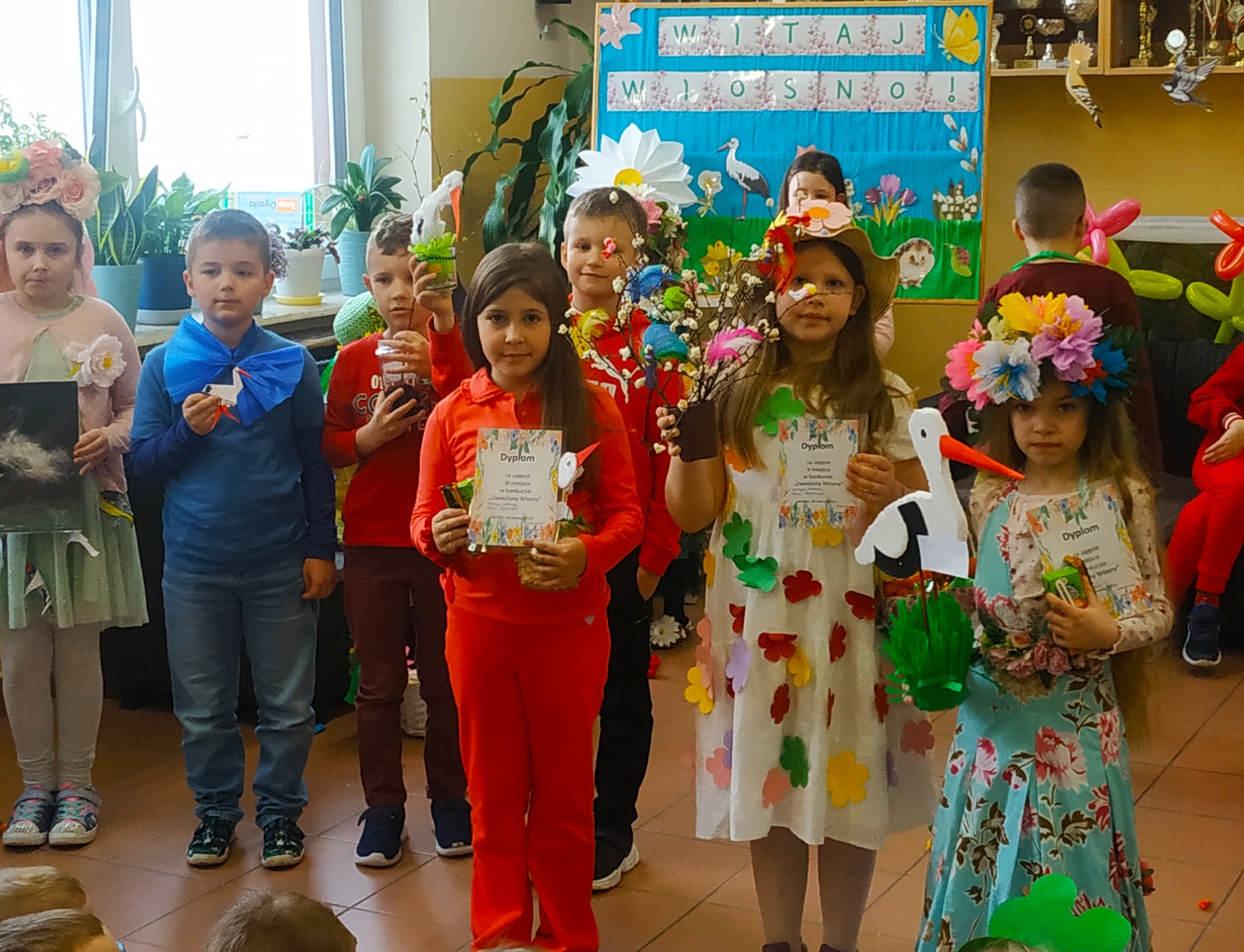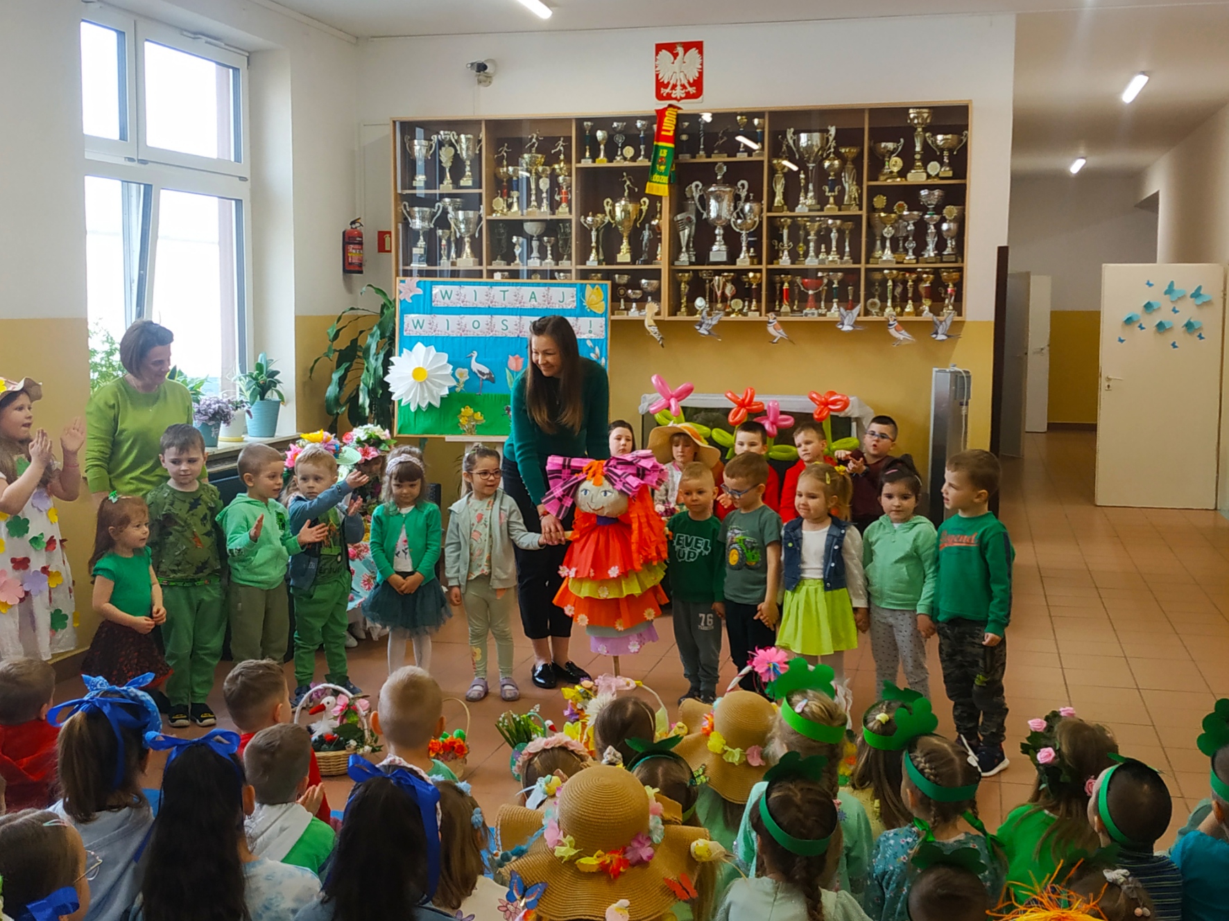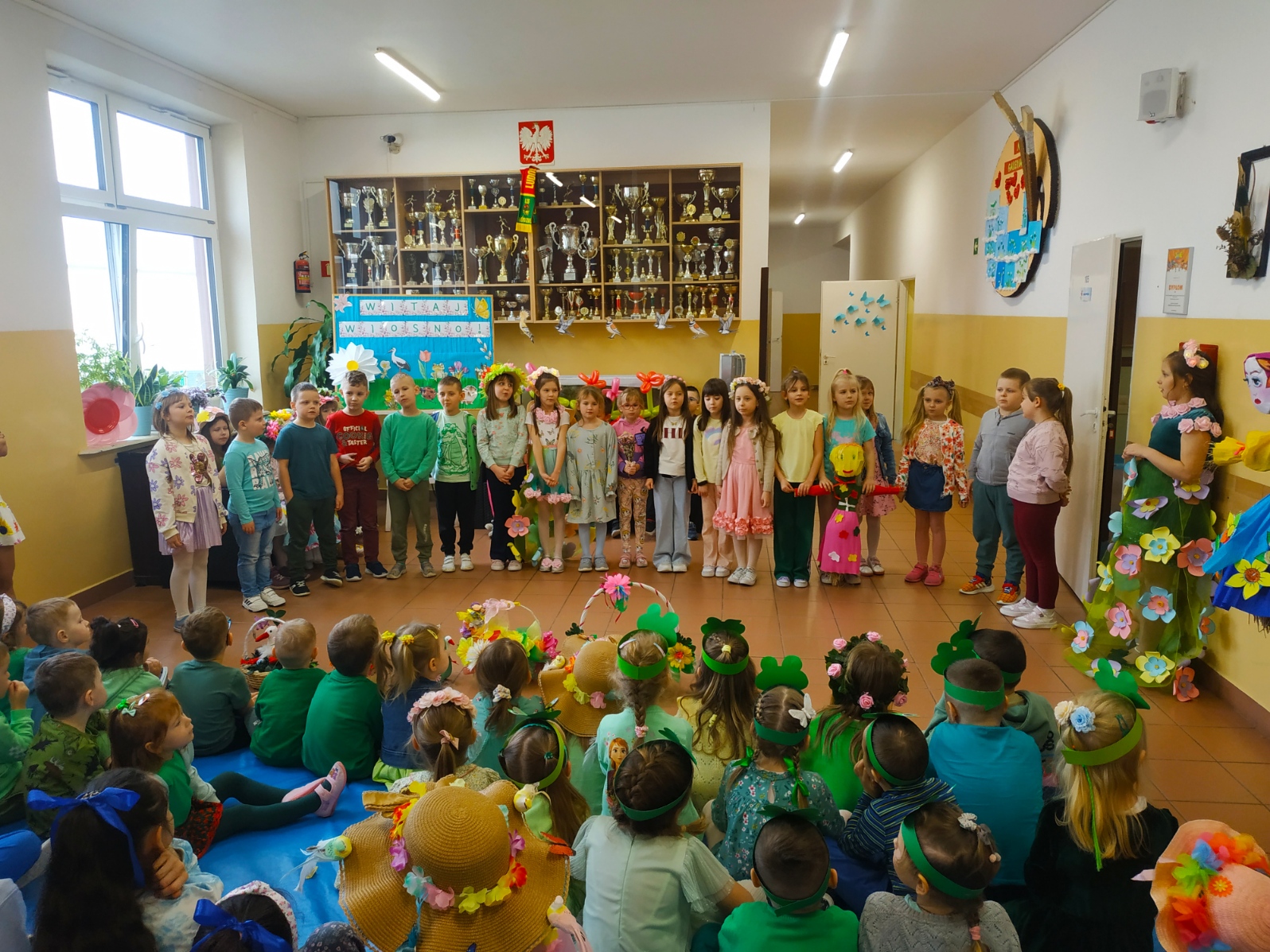 26 marca w naszej szkole odbyły się uroczyste obchody pierwszego dnia wiosny. Organizacją wydarzenia zajęły się pani Anna Rzeźnicka i pani Katarzyna Wróblewska, które wraz z uczniami klas Ia i Ib przygotowały krótkie występy artystyczne. Wspólnie z Samorządem Uczniowskim zadbały także o liczne konkursy i atrakcje, które zaangażowały całą społeczność szkolną.