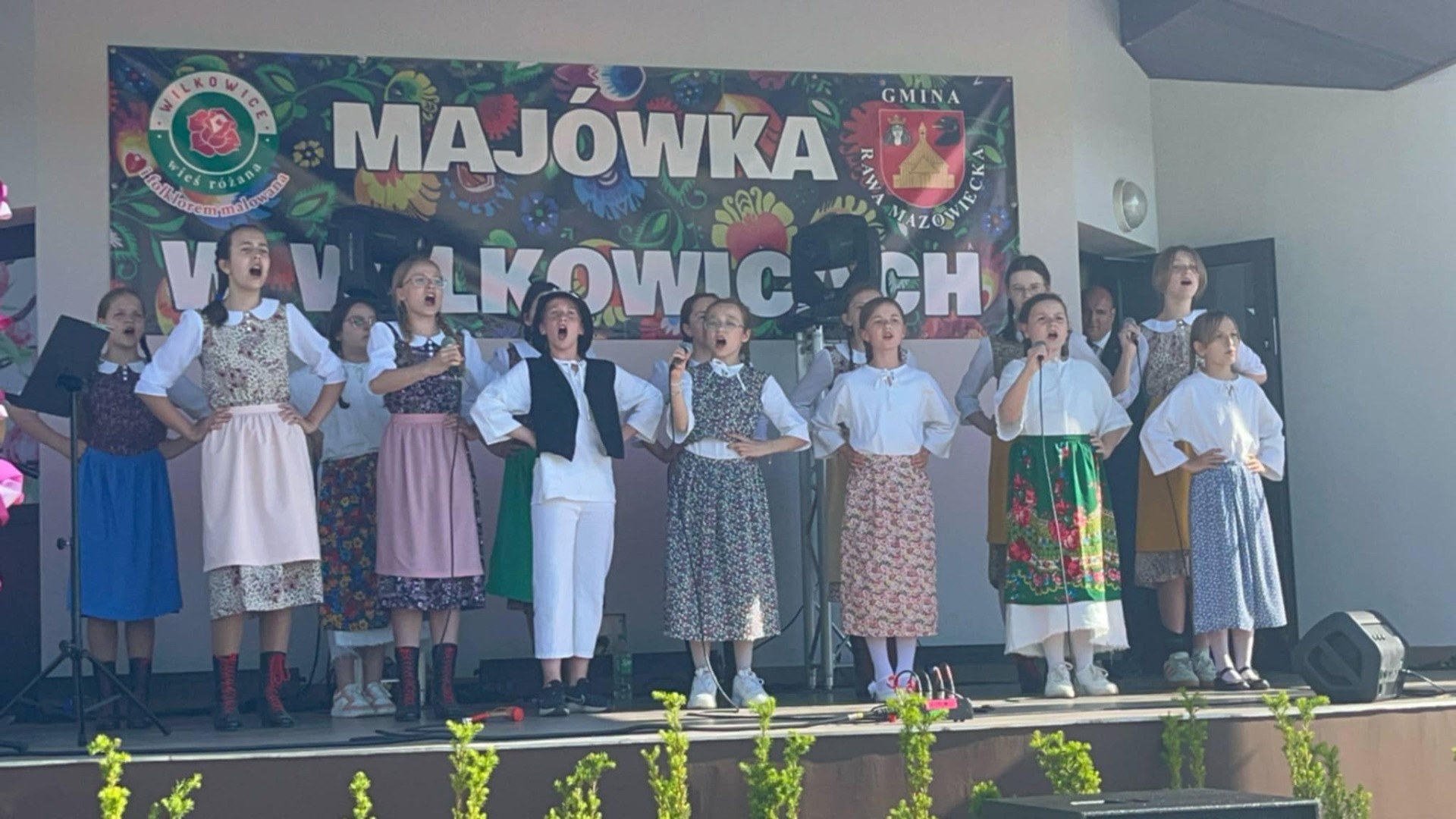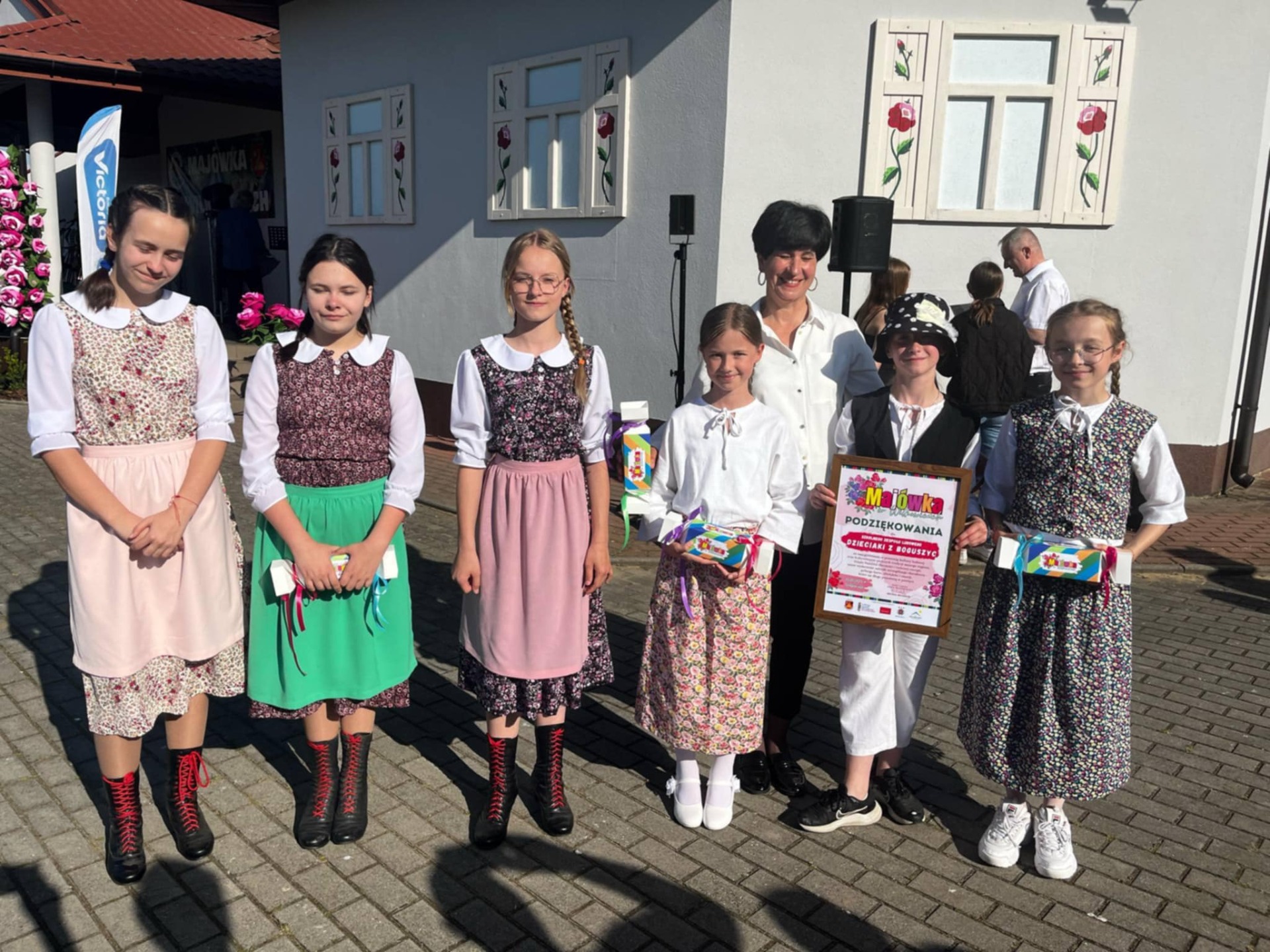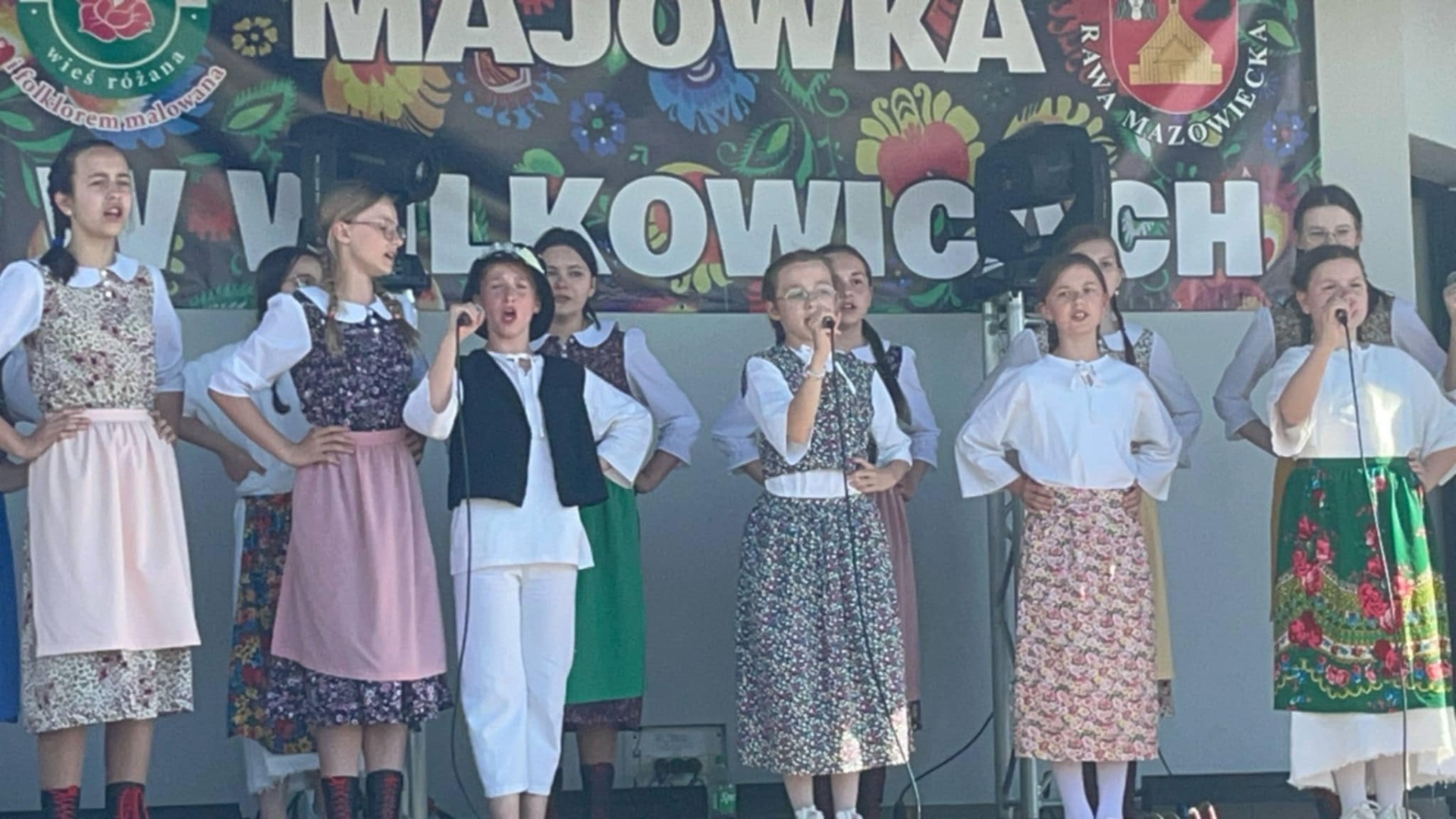 Szkolny Zespół Ludowy "Dzieciaki z Boguszyc" podczas występu "Majówka w Wilkowicach" w dn. 25.05.2025 r.