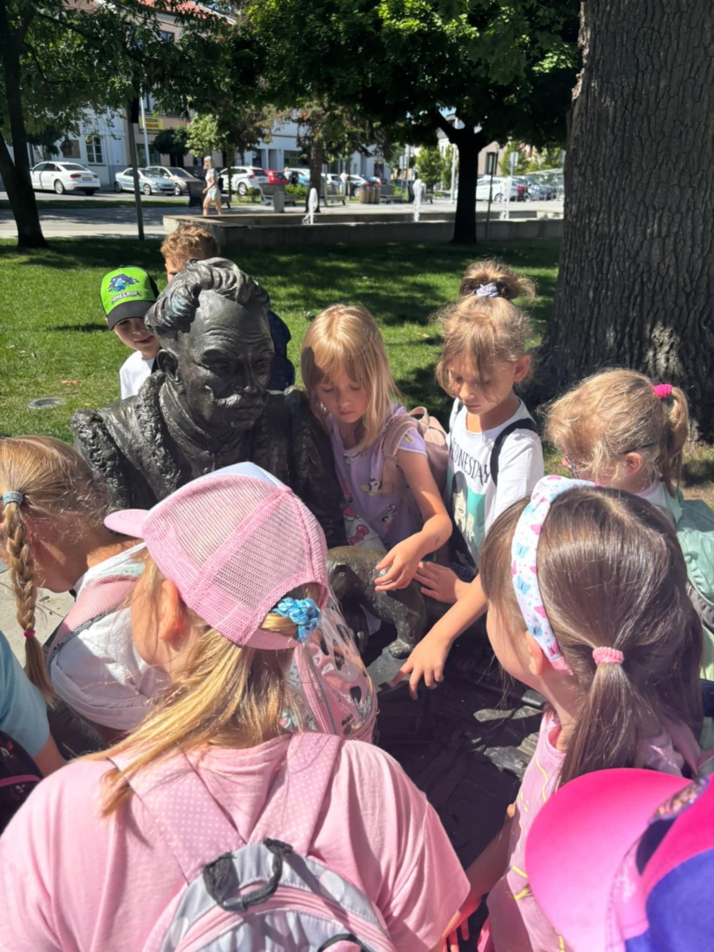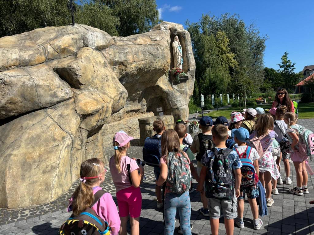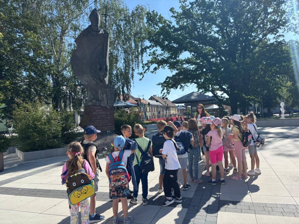 Dzień był pełen słońca, dobrej energii i znakomitych humorów. Pierwszym przystankiem był Park Miejski. Dzieci rozpoznawały drzewa i słuchały ciekawostek przyrodniczych. Potem Ogród Dialogu- alejka ze stacjami Drogi Krzyżowej zrobiła ogromne wrażenie, szczególnie 15 stacja- Zmartwychwstanie. Dlaczego? Bo dzieci zobaczyły w niej... same siebie!