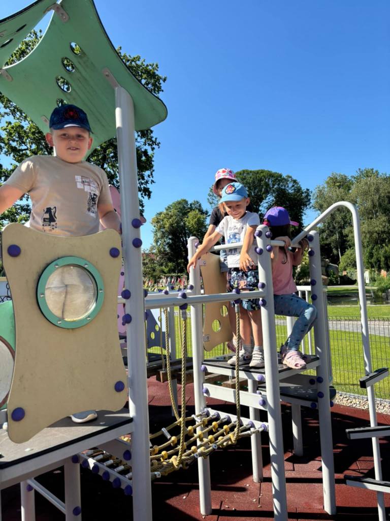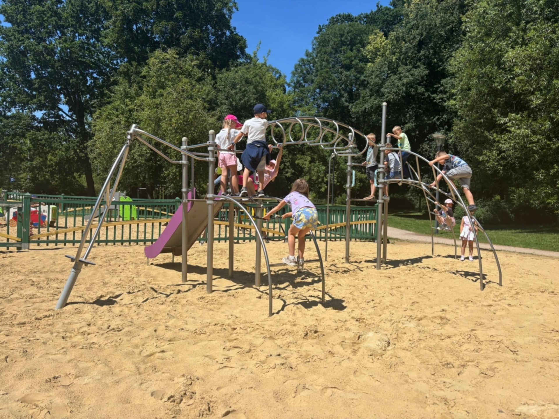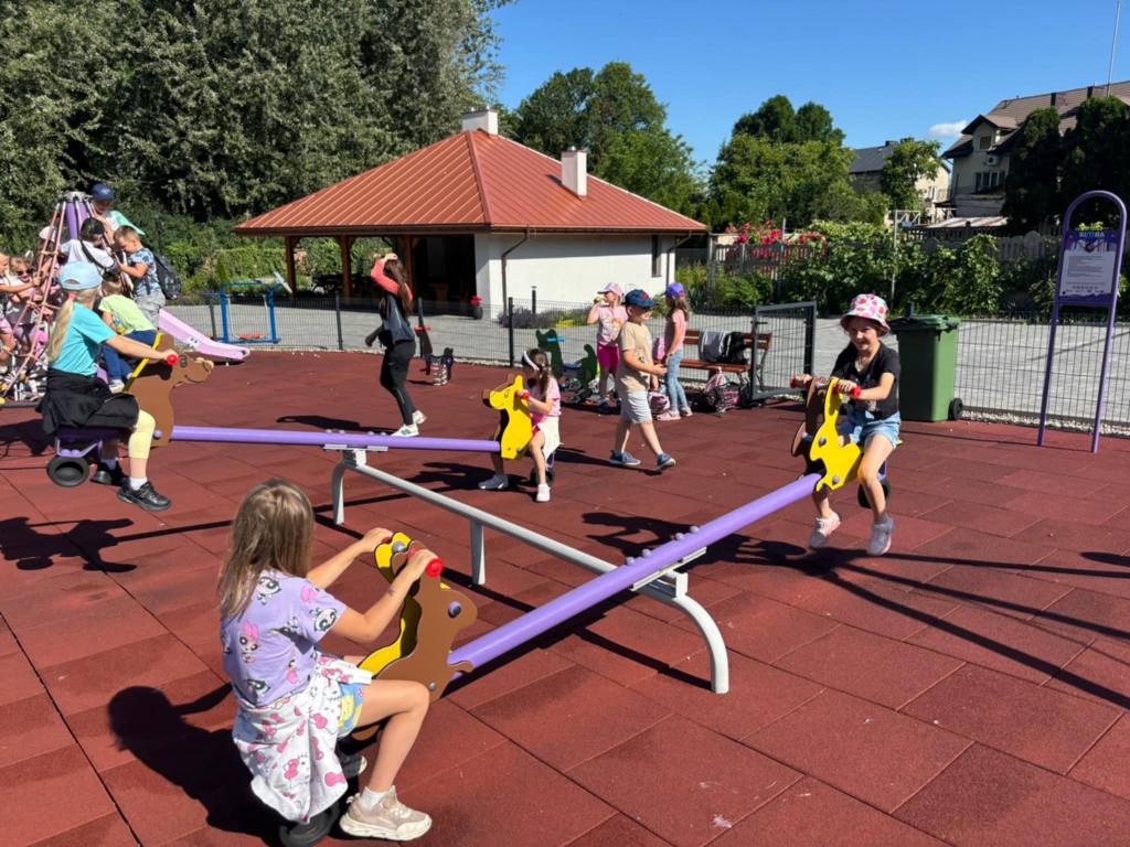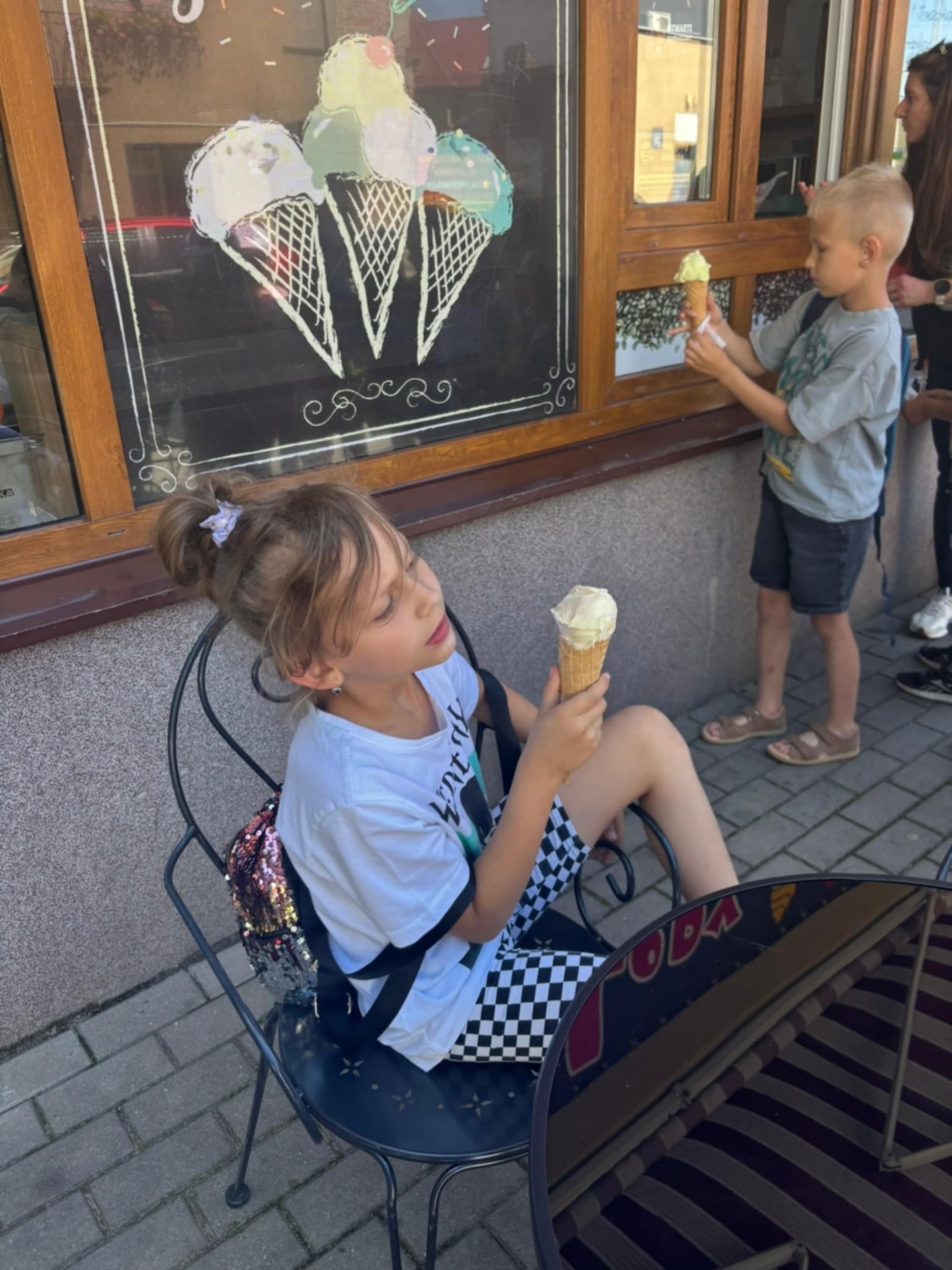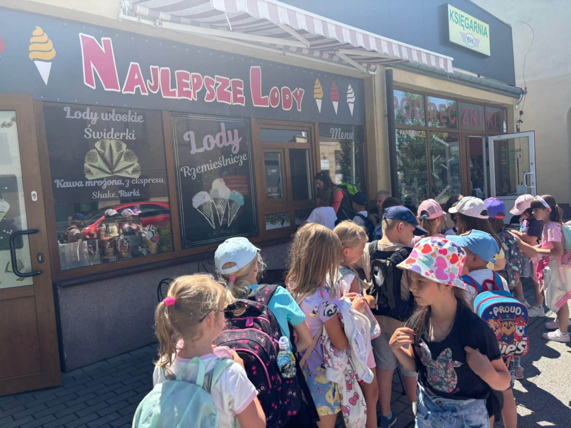 Na koniec- coś słodkiego! Lody wszystkim smakowały. W drodze powrotnej dzieci nie mogły odmówić sobie jeszcze jednego przystanku- placu zabaw. Bo jak się bawić, to na całego!