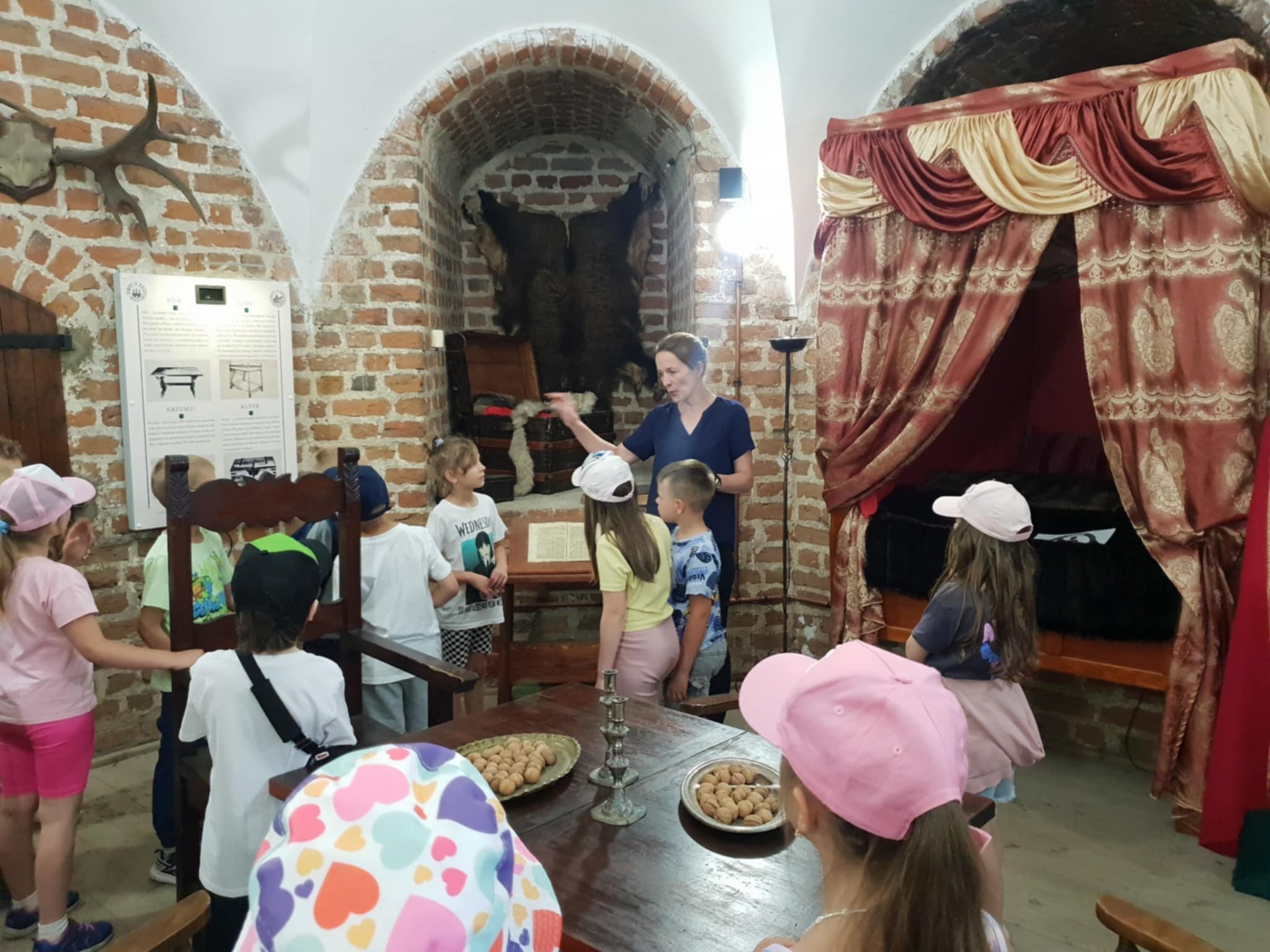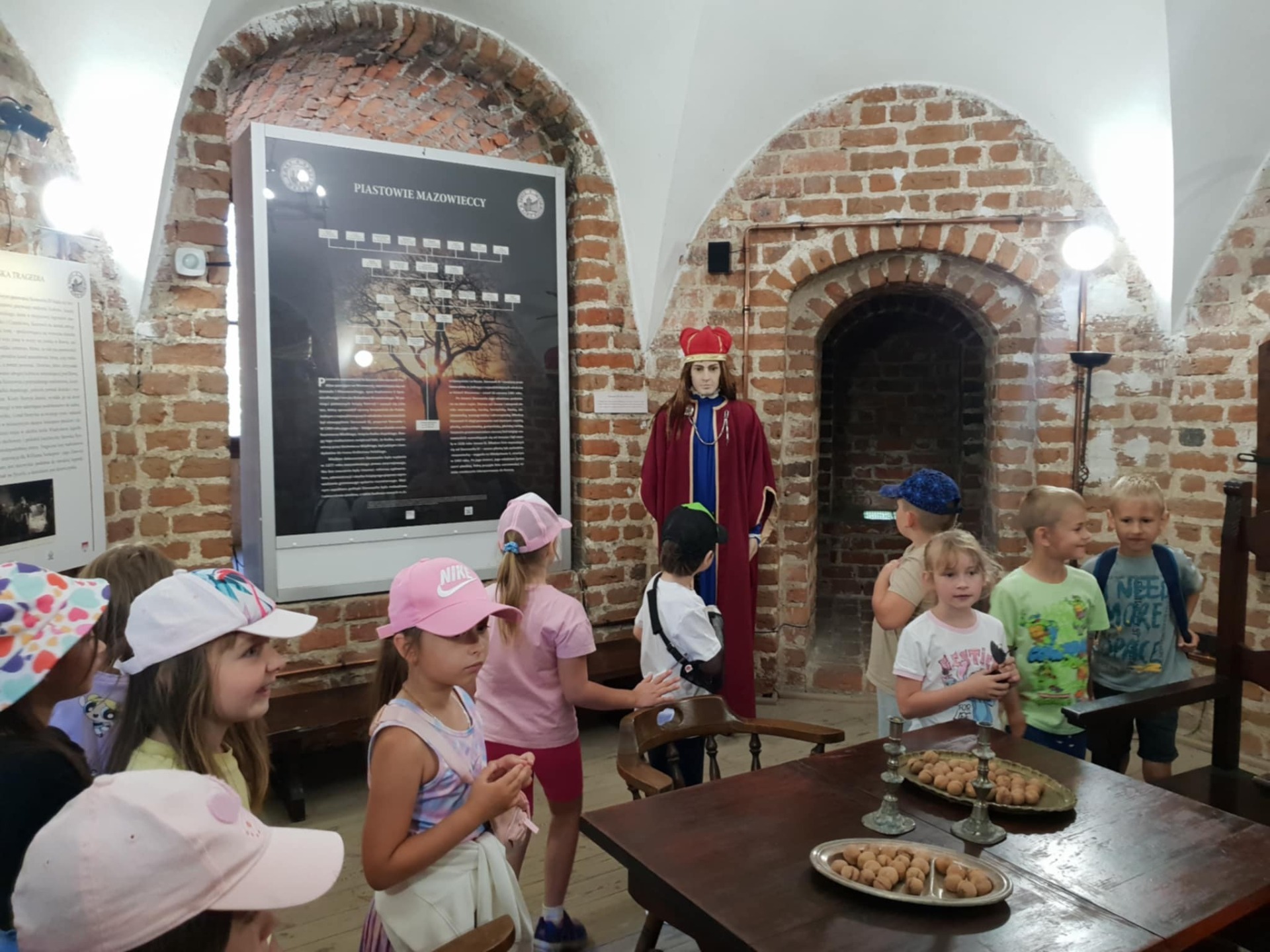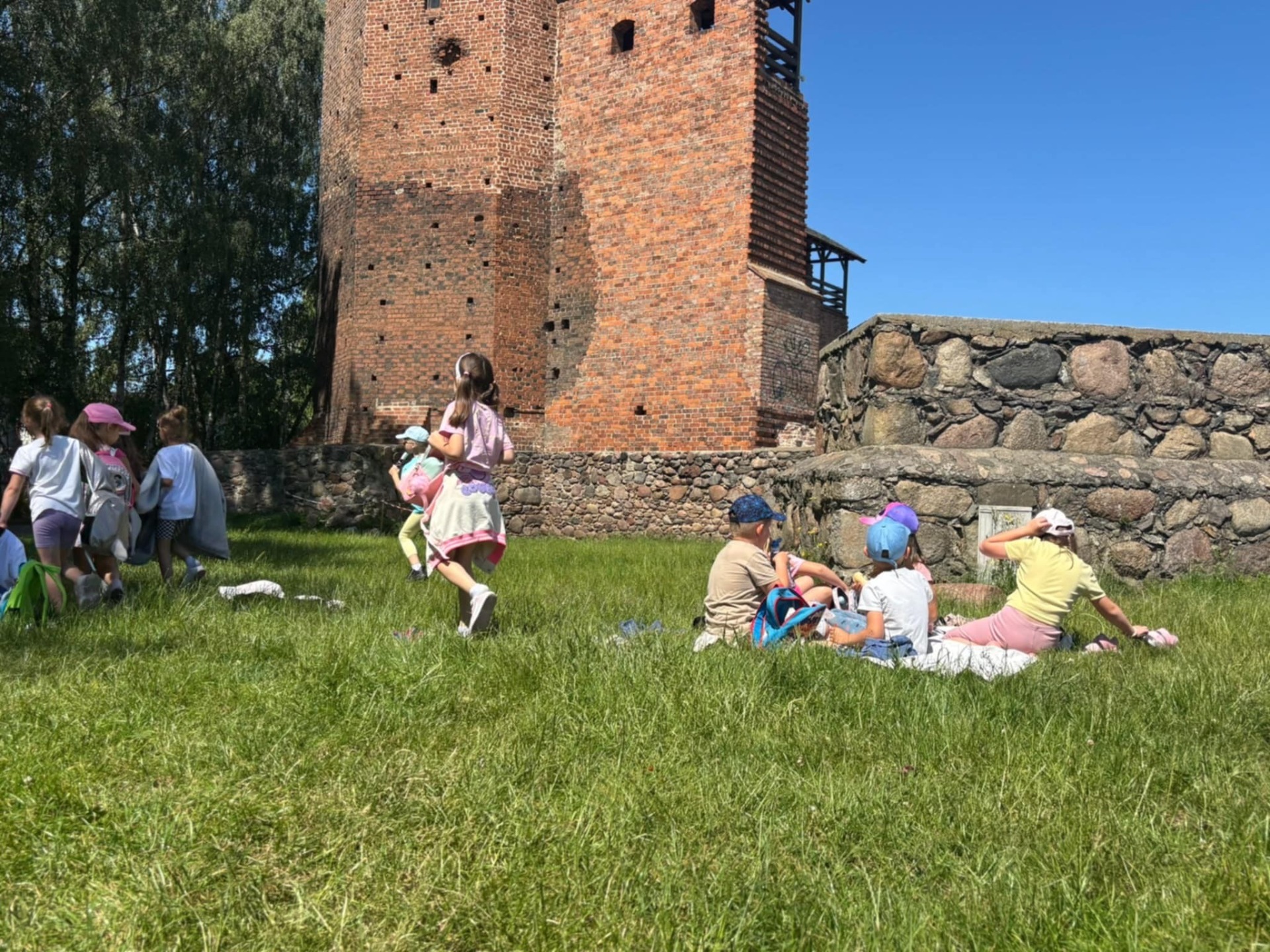 Grupa zajrzała jeszcze do Miejskich Jatek, a potem ruszyli na Zamek Książąt Mazowieckich. Tam- piknik na trawie, śmiech, przekąski i trochę odpoczynku w cieniu brzózek
