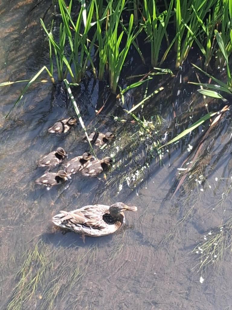 W oczku wodnym czekał żółw i piękne nenufary, a tuż obok- niespodzianka- mama kaczka z gromadką kaczątek