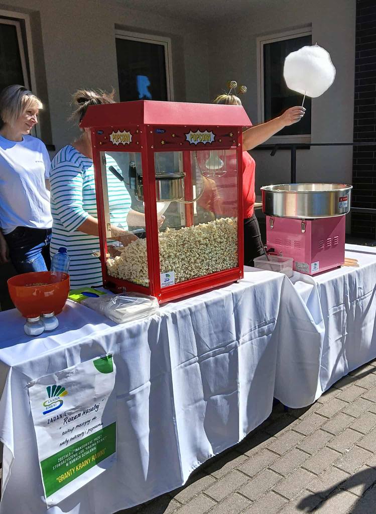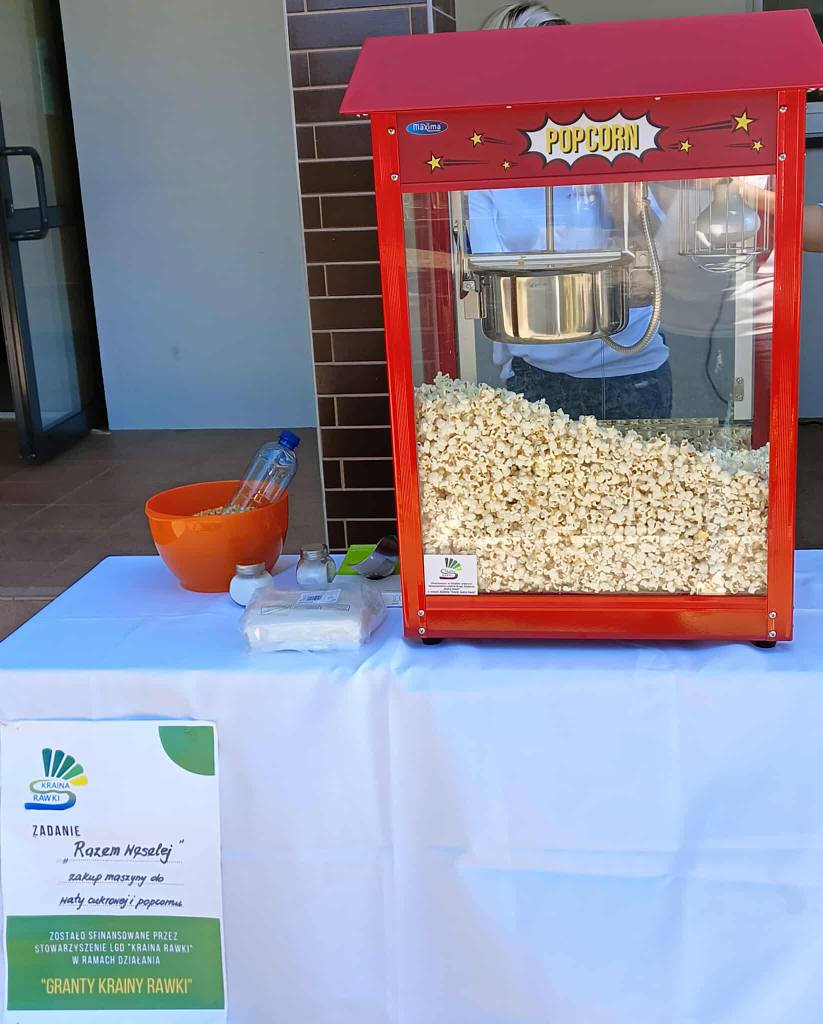 Warto podkreślić, że dzięki projektowi Rady Rodziców „Razem Weselej”, realizowanemu z grantów LGD "Kraina Rawki", udało się zakupić nowoczesny sprzęt do przygotowywania waty cukrowej i popcornu. Dzięki temu mogliśmy nie tylko wzbogacić festiwal, ale także zyskać wyposażenie, które z pewnością będzie służyć podczas kolejnych imprez i uroczystości w naszej szkole i gminie.